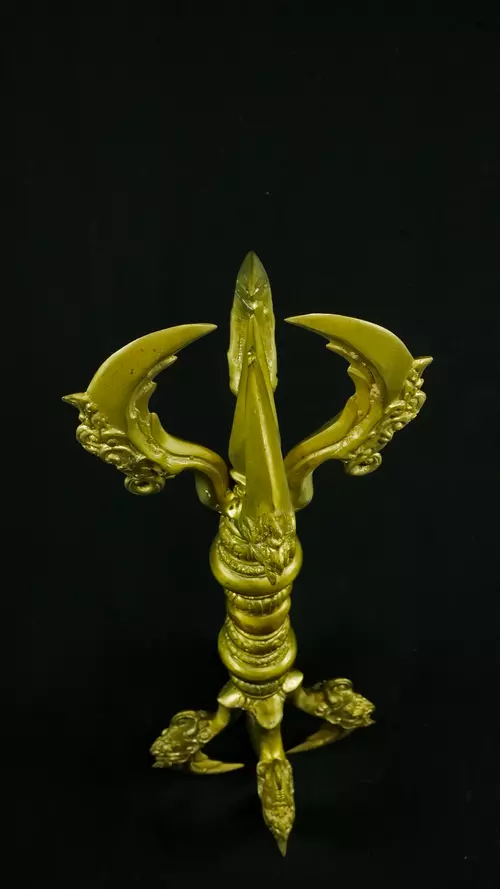Les griffes de dragons à chaque extrémité rappellent la vigilance spirituelle et la puissance gardienne du Dharma. Elles saisissent symboliquement les forces du chaos pour les dompter et les transmuter. Dans ce contexte, le Dorje devient un instrument d’harmonisation : il concentre, canalise et stabilise les énergies environnantes.