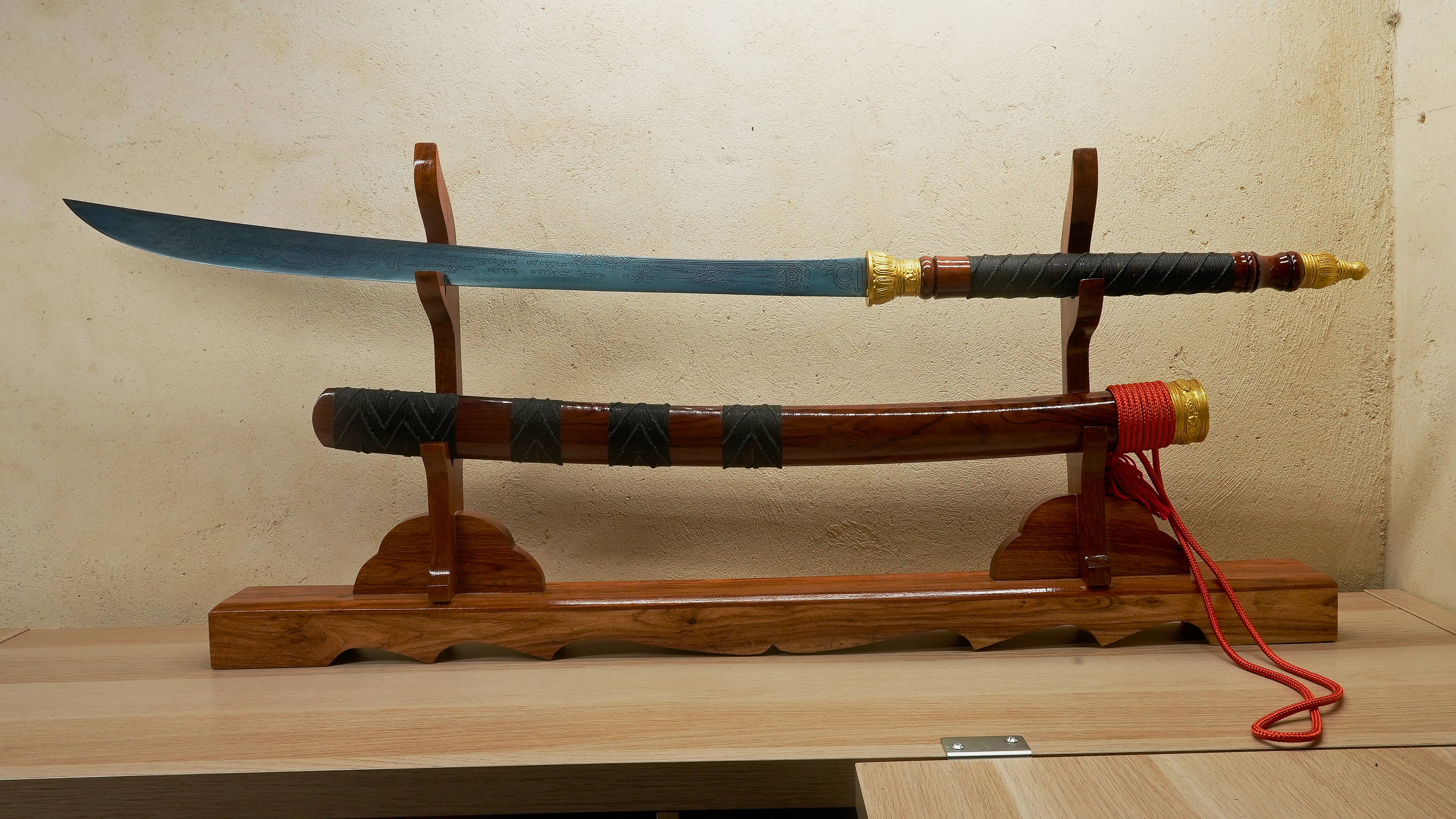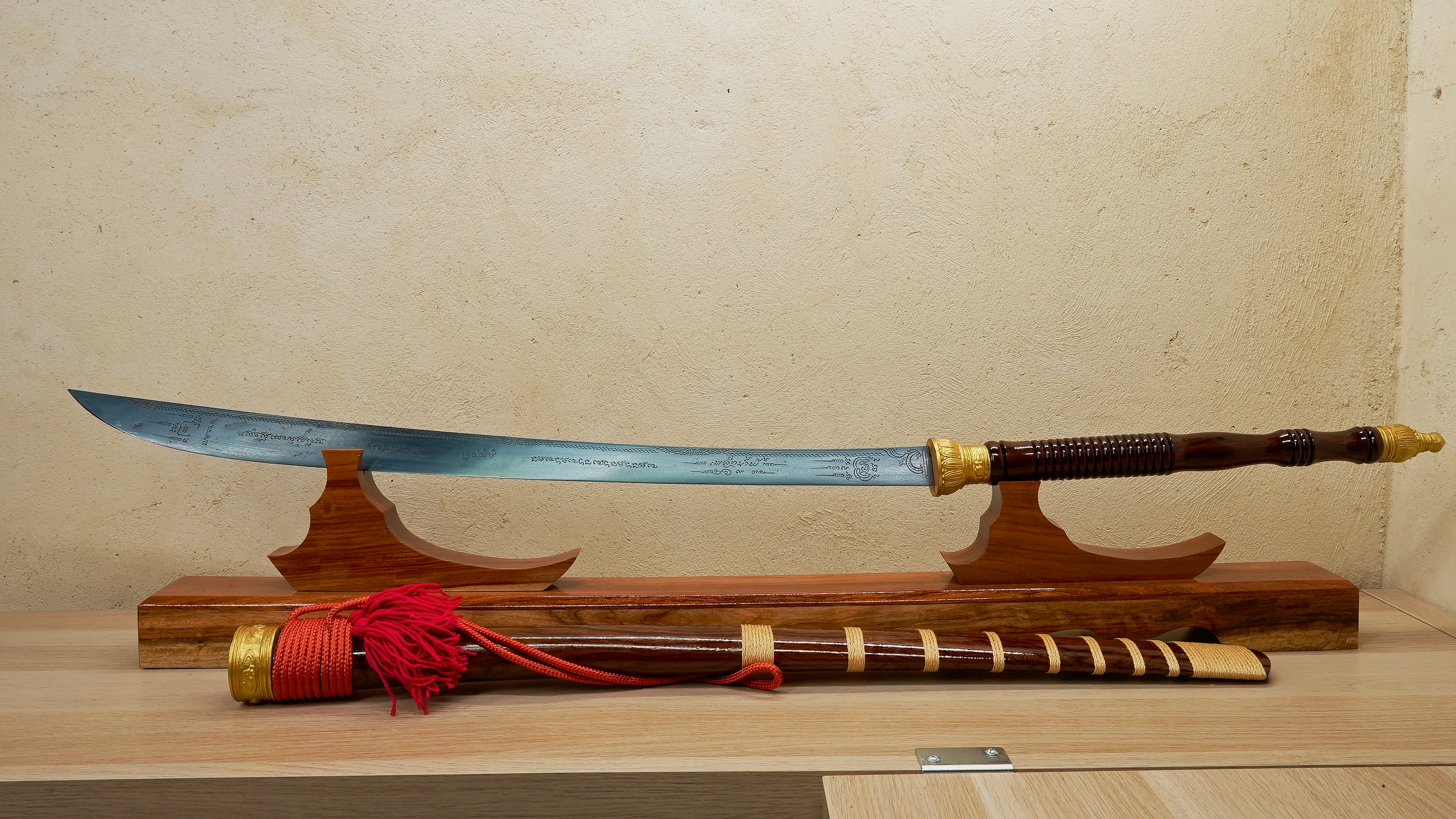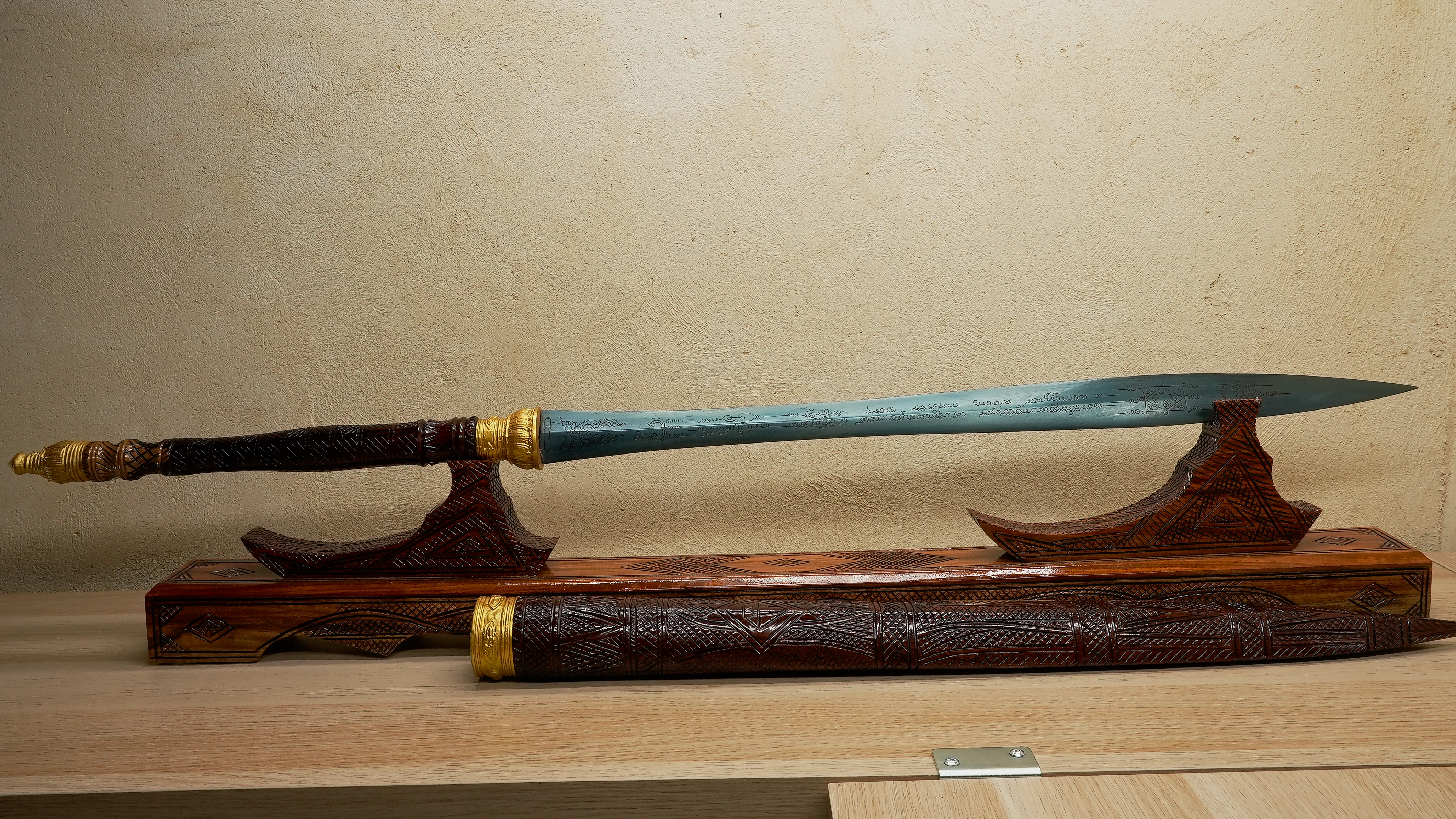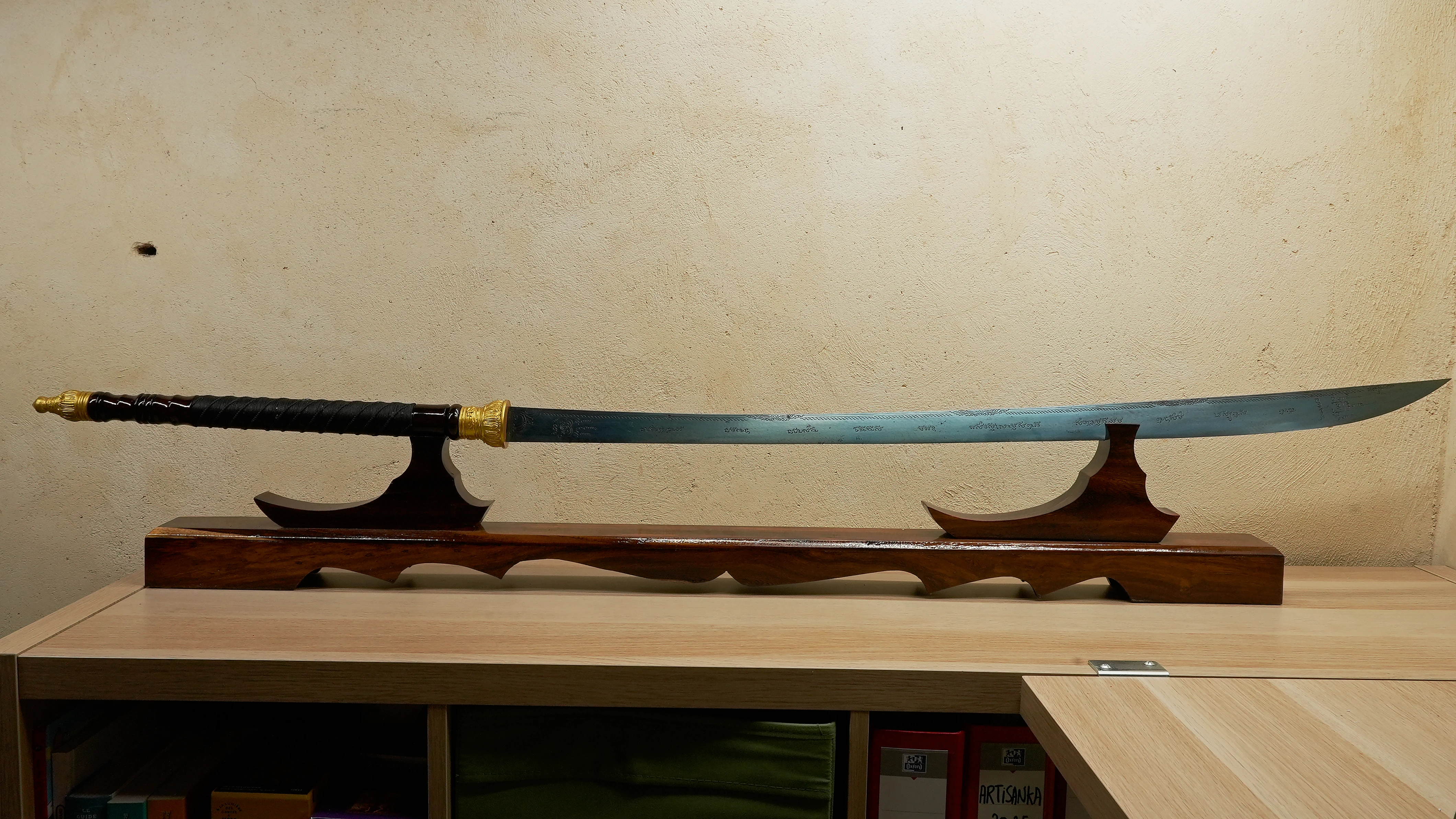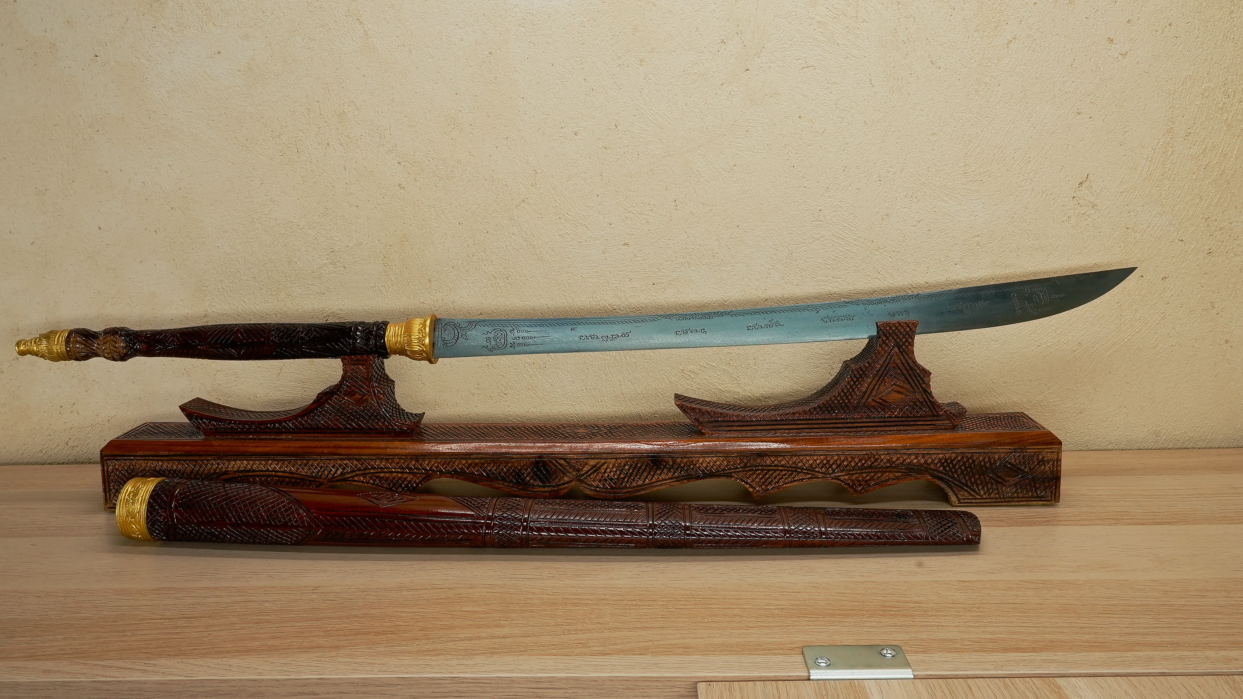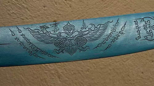 Chaque épée de cette lignée est une œuvre d’alliance entre la matière et la conscience, un outil d’évolution et de service, dont la portée reste connue uniquement de celui ou celle à qui elle est destinée. Je collectionne ces épées depuis plus de douze ans et j’en possède plusieurs exemplaires. Parmi toutes, ce type d’épée en Leknam Phe se distingue par sa vibration, sa profondeur et la rigueur extrême avec laquelle elle est créée. Elle représente probablement le plus haut niveau d’artefact spirituel dans cette catégorie.