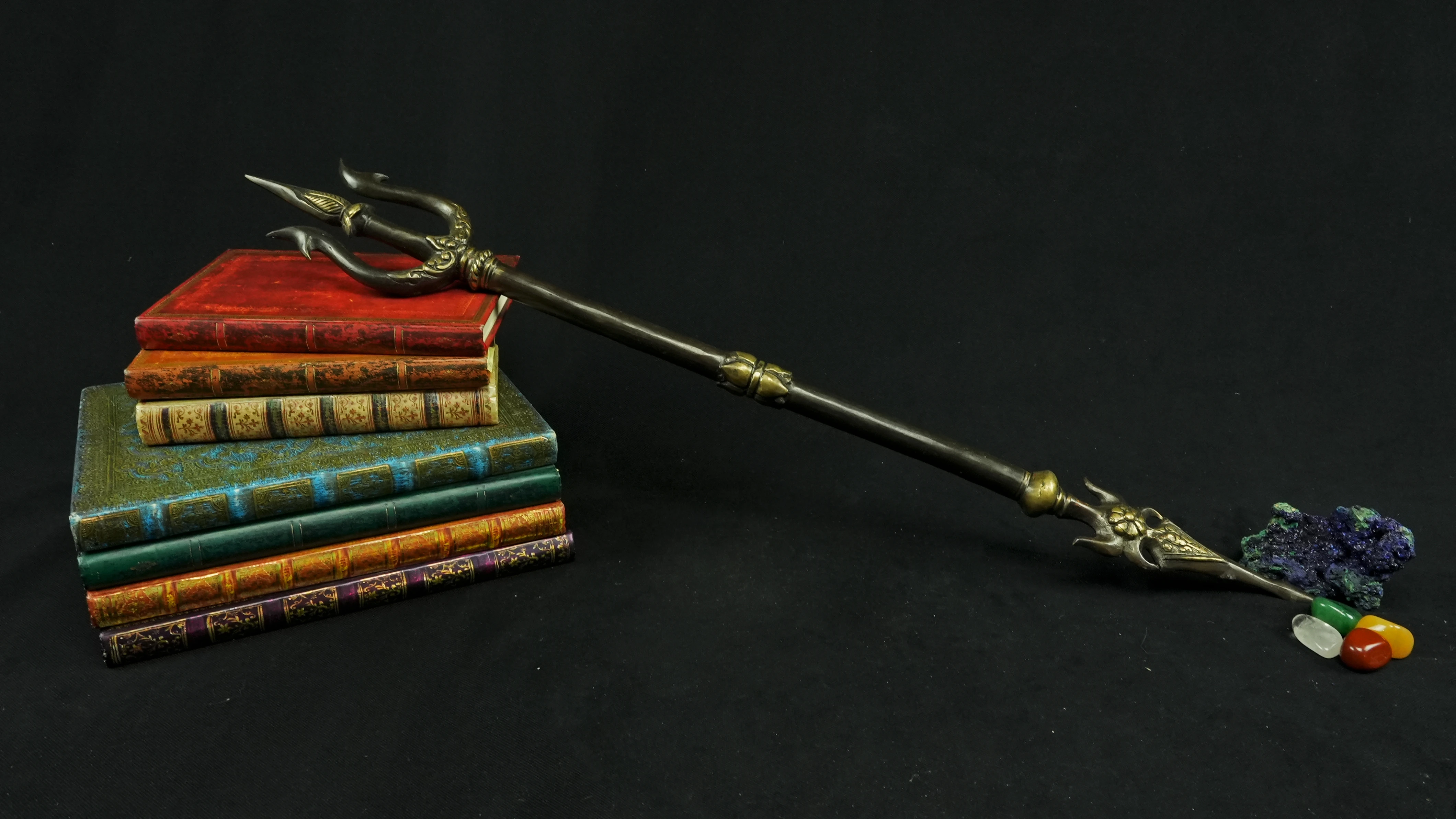 Sur le plan spirituel, le Triśūla est un instrument de purification et de maîtrise. Il dissout les énergies négatives, perce les illusions et agit comme une antenne reliant celui qui le porte aux flux cosmiques. Les traditions ésotériques l’associent aussi aux trois canaux subtils du corps énergétique : ida, piṅgala et suṣumṇā. Dans cette lecture, le trident devient le symbole de l’éveil de la kundalinī et de son alignement parfait dans l’axe central de l’être.