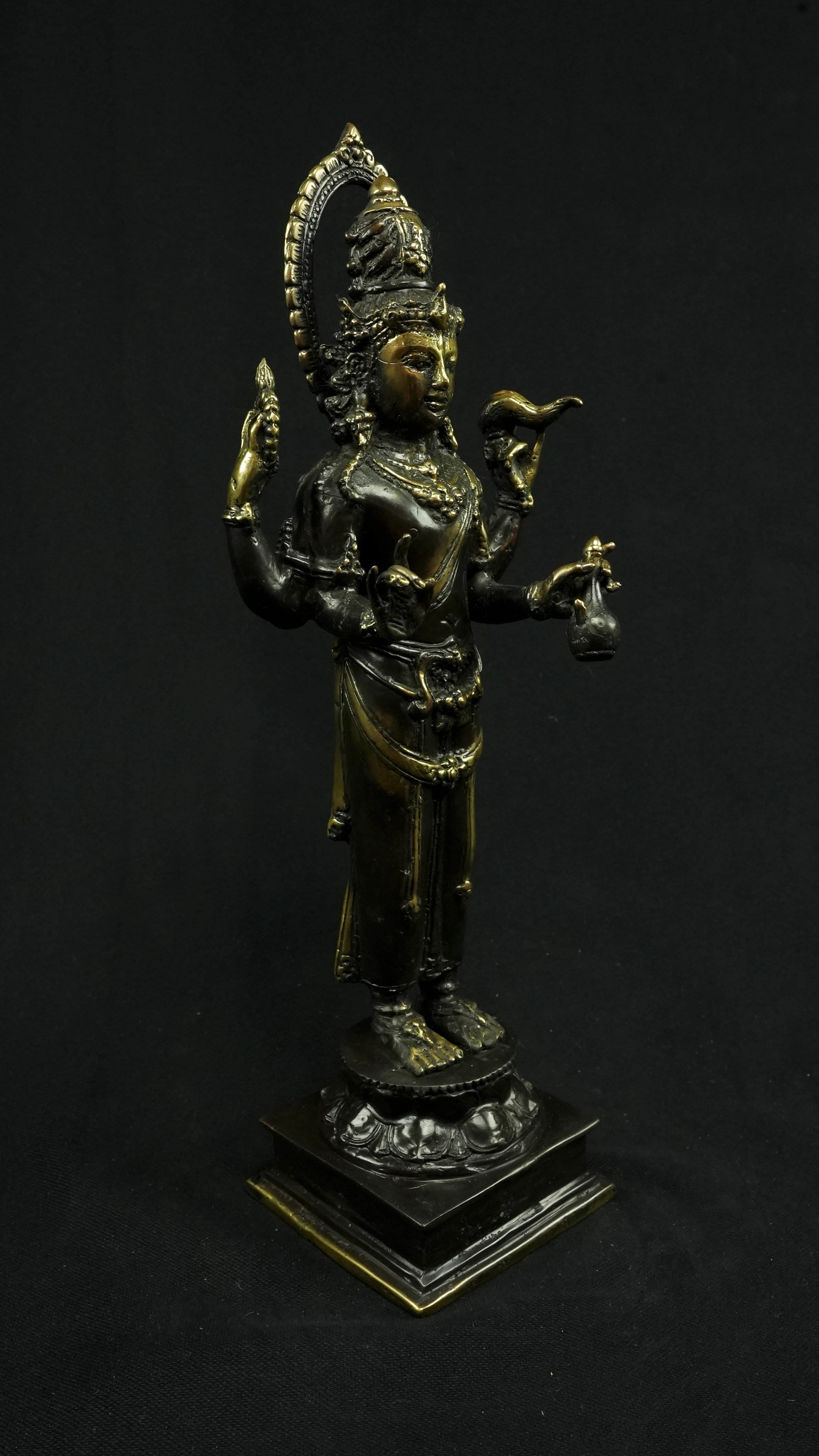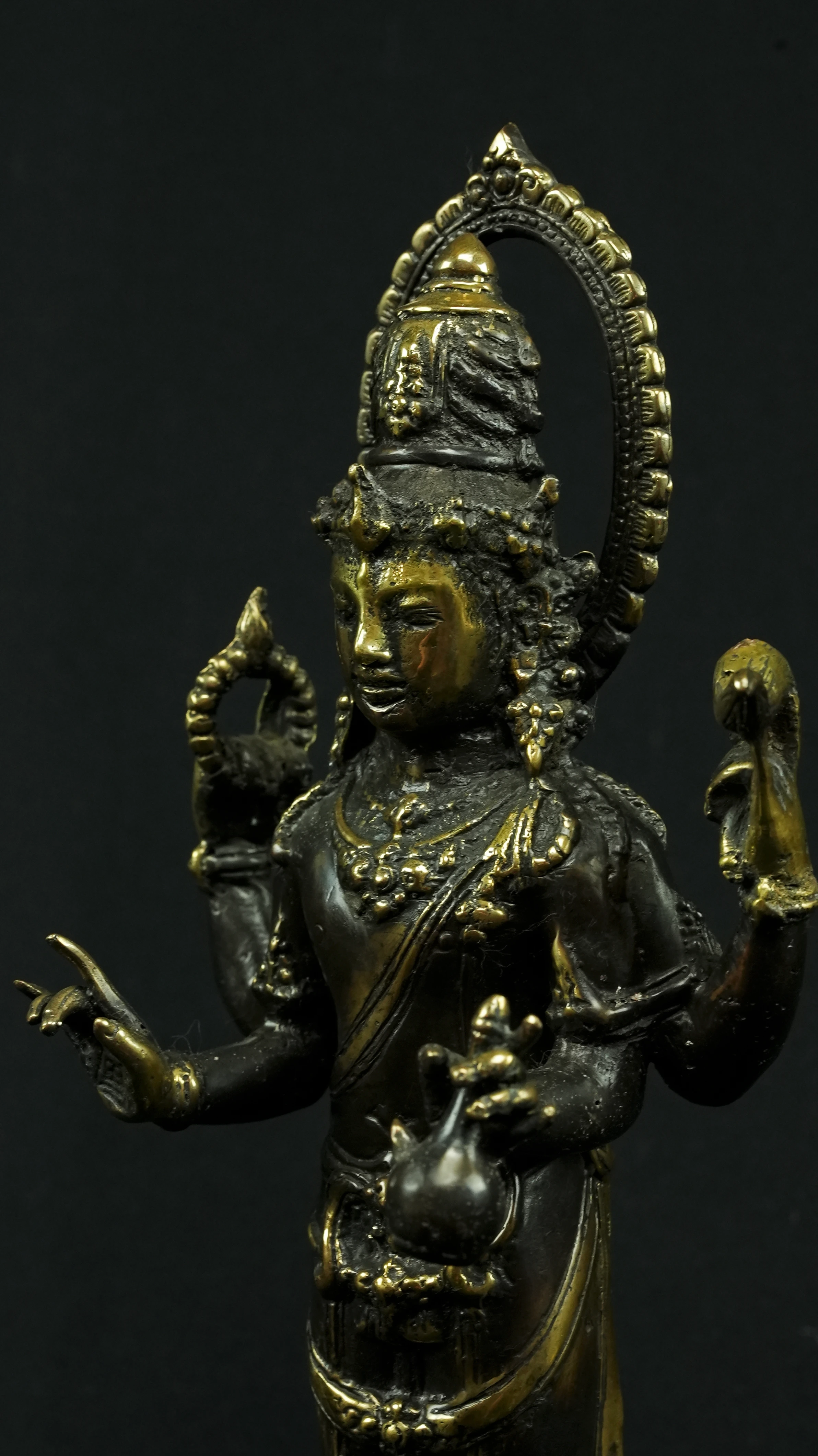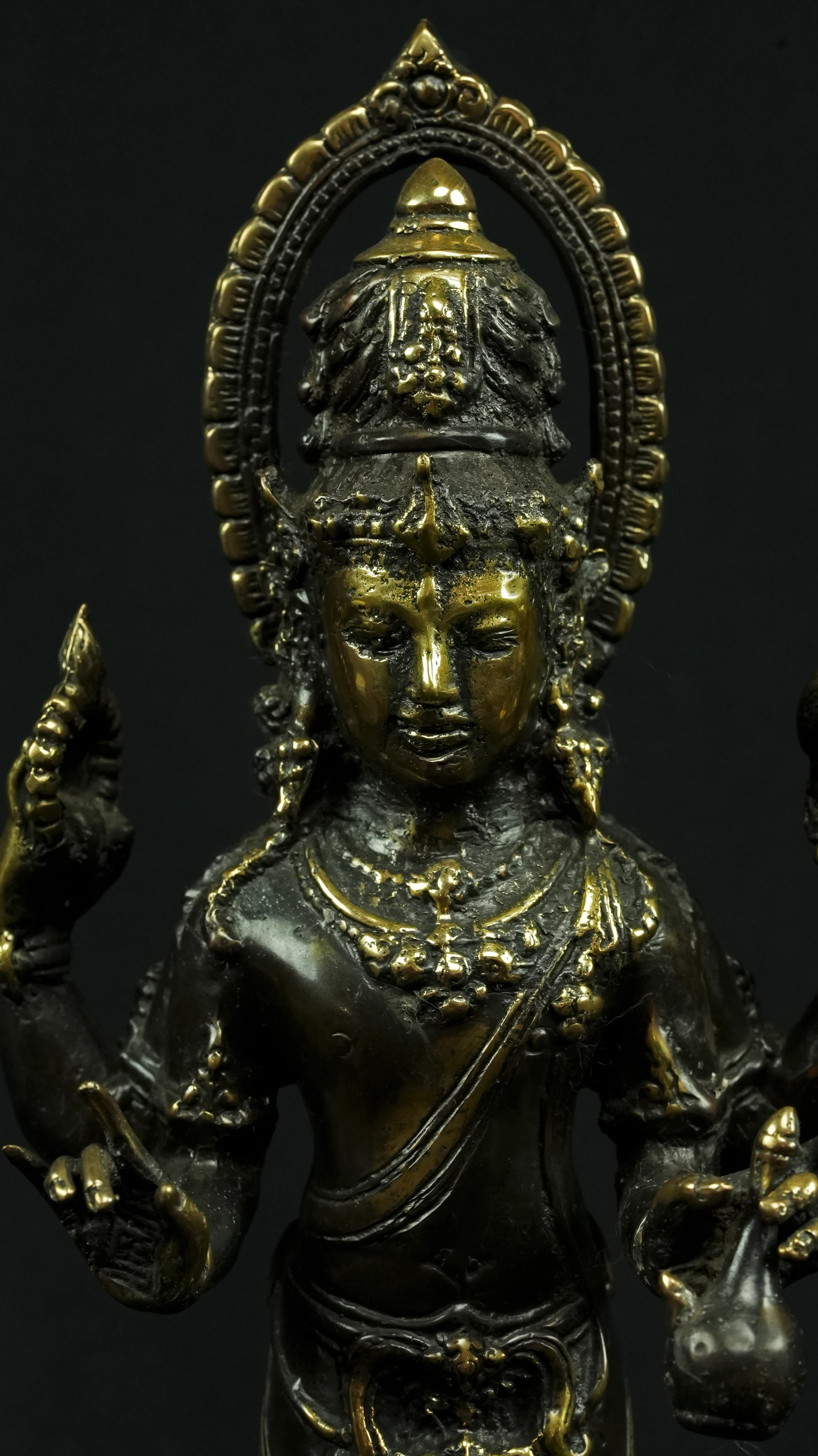 - 1x Statue avatarisée de Brahma : 2.5 kg, 30cm de hauteur, 16 cm de diamètre. Méthode de la cire perdue en Laiton réalisé à Java, Indonésie.