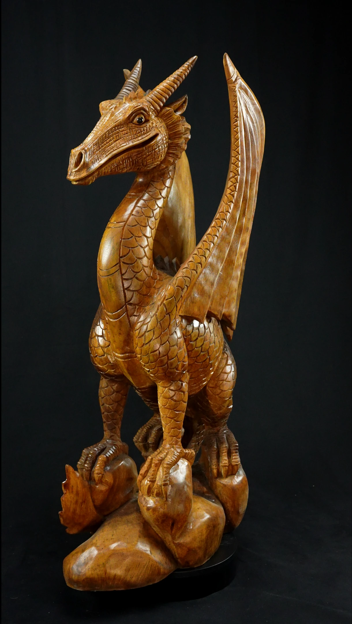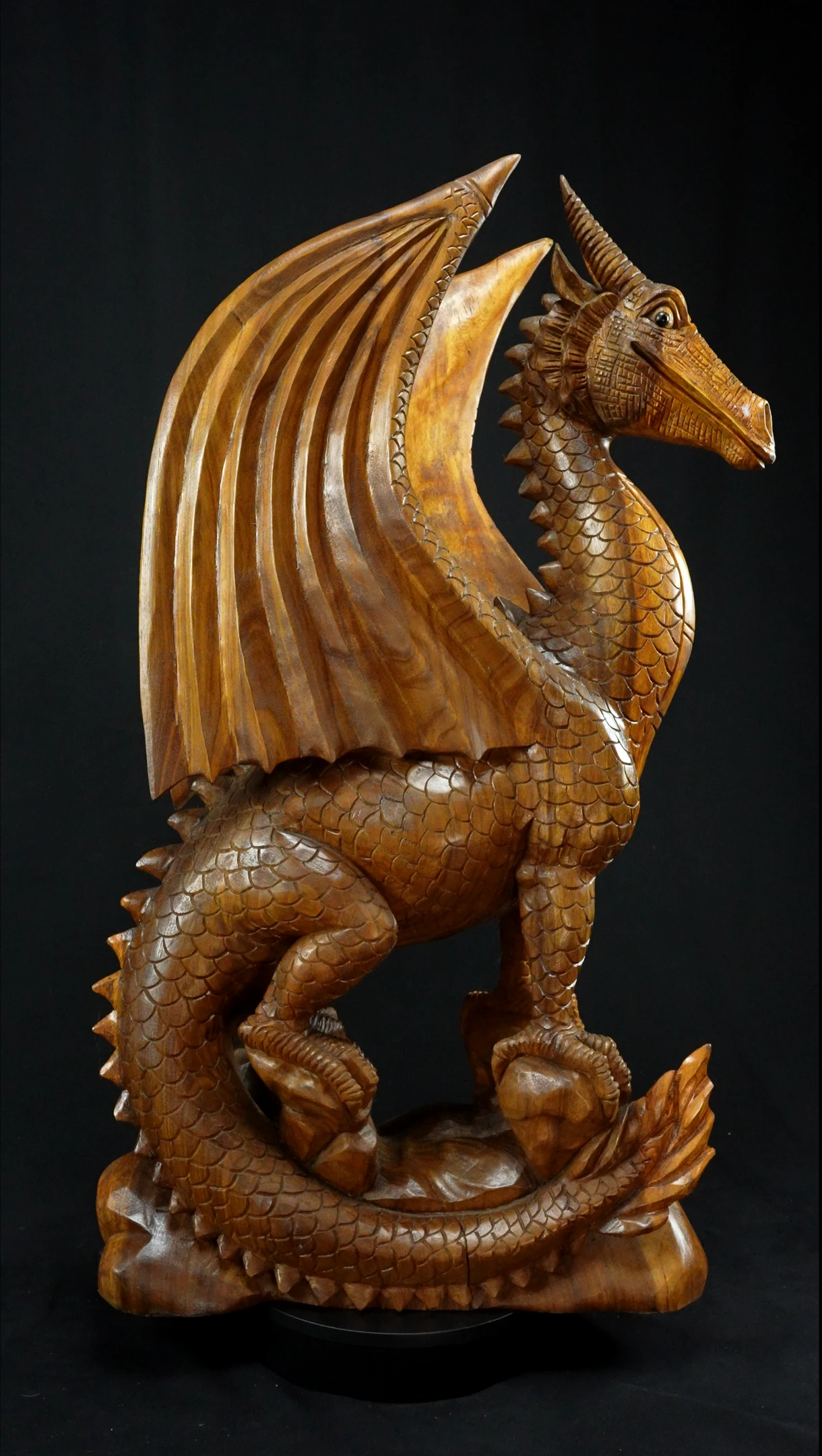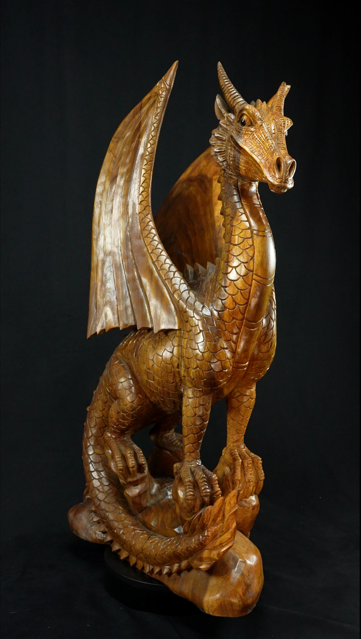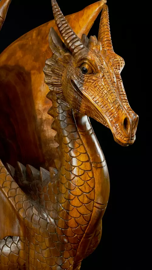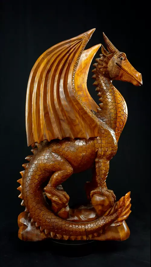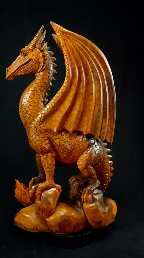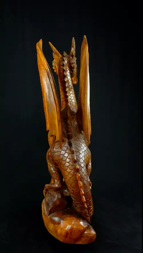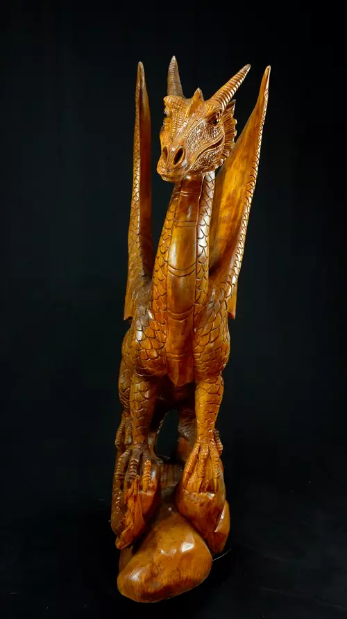 Grande Statue Sacrée et Avatarisée - Dragon 100cm n°5. - En bois de Suar