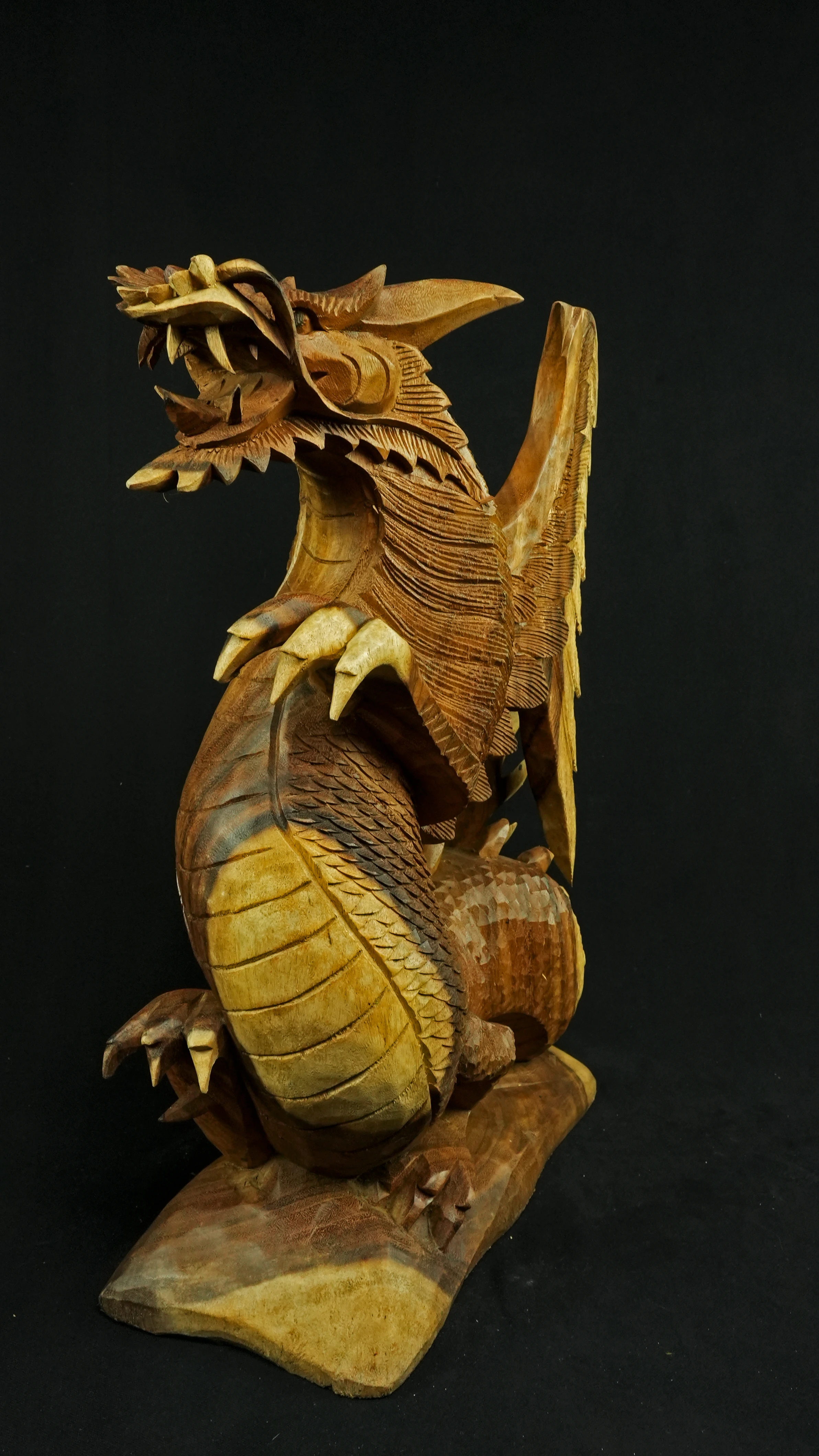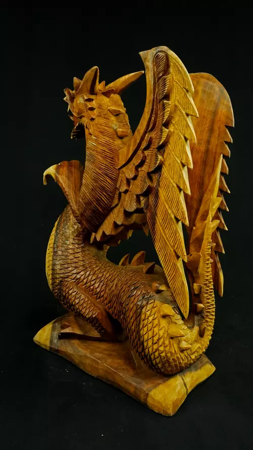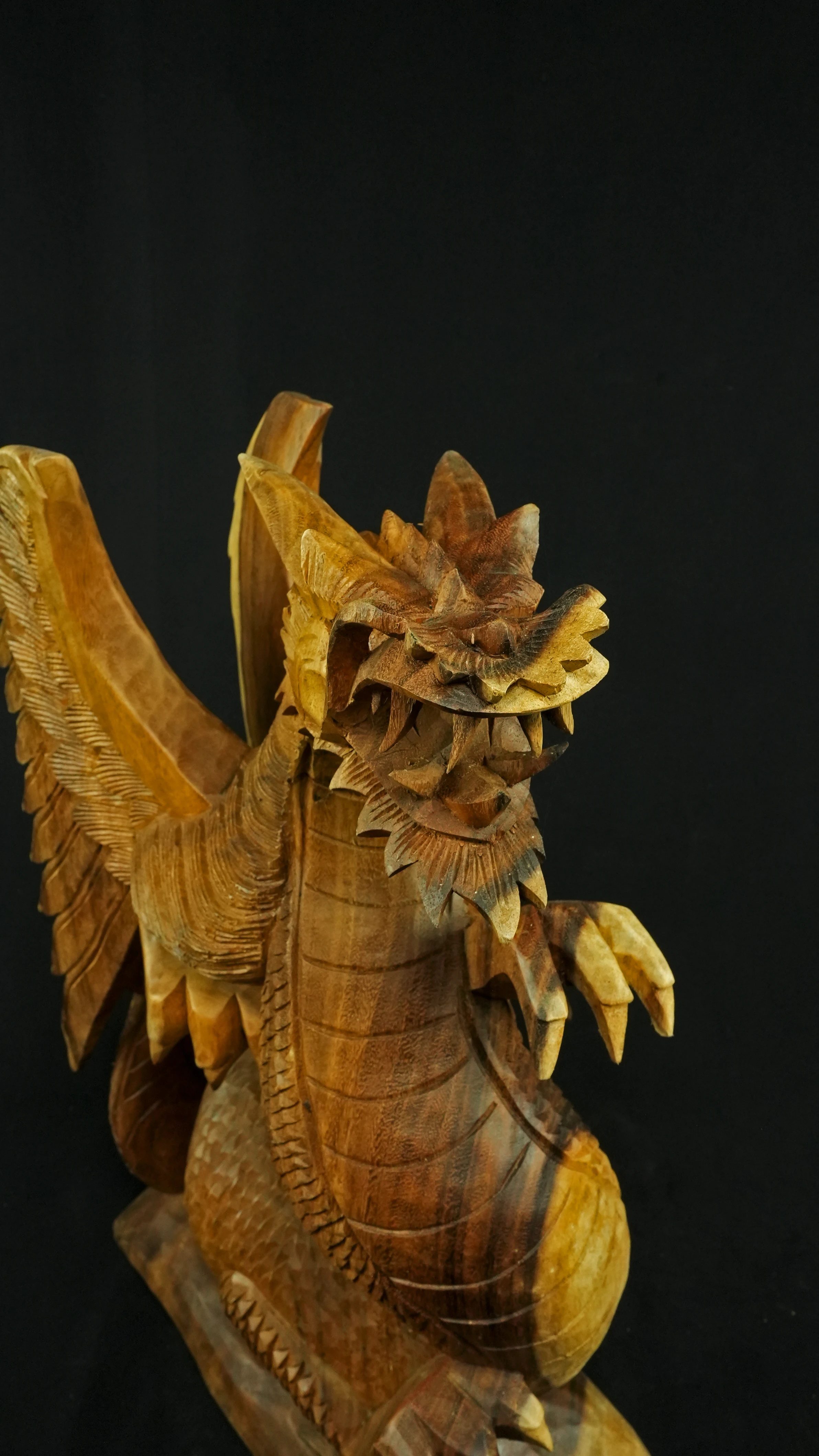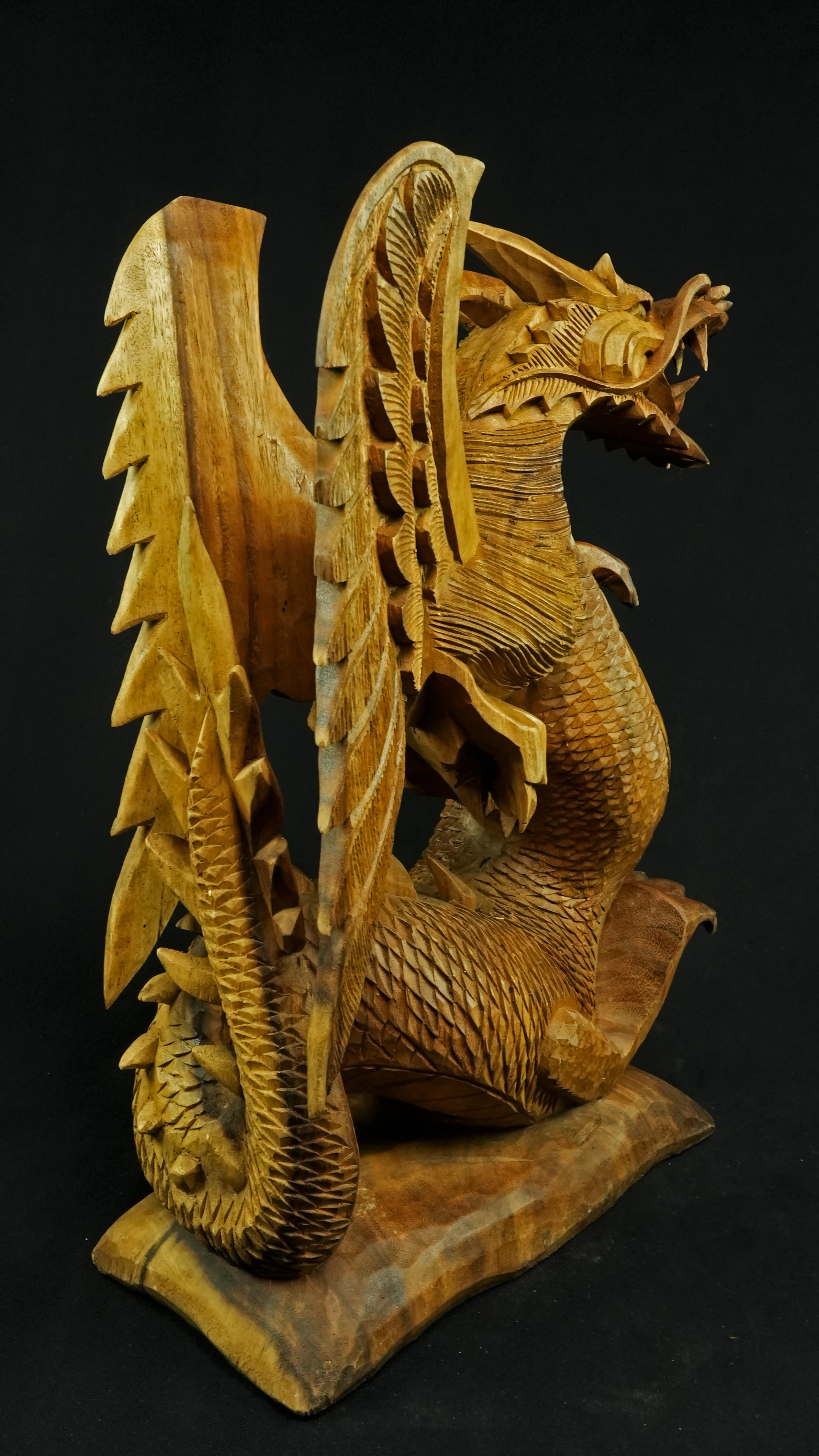 Statue Sacrée et Avatarisée - Dragon 50cm n°1 - en Bois de Suar