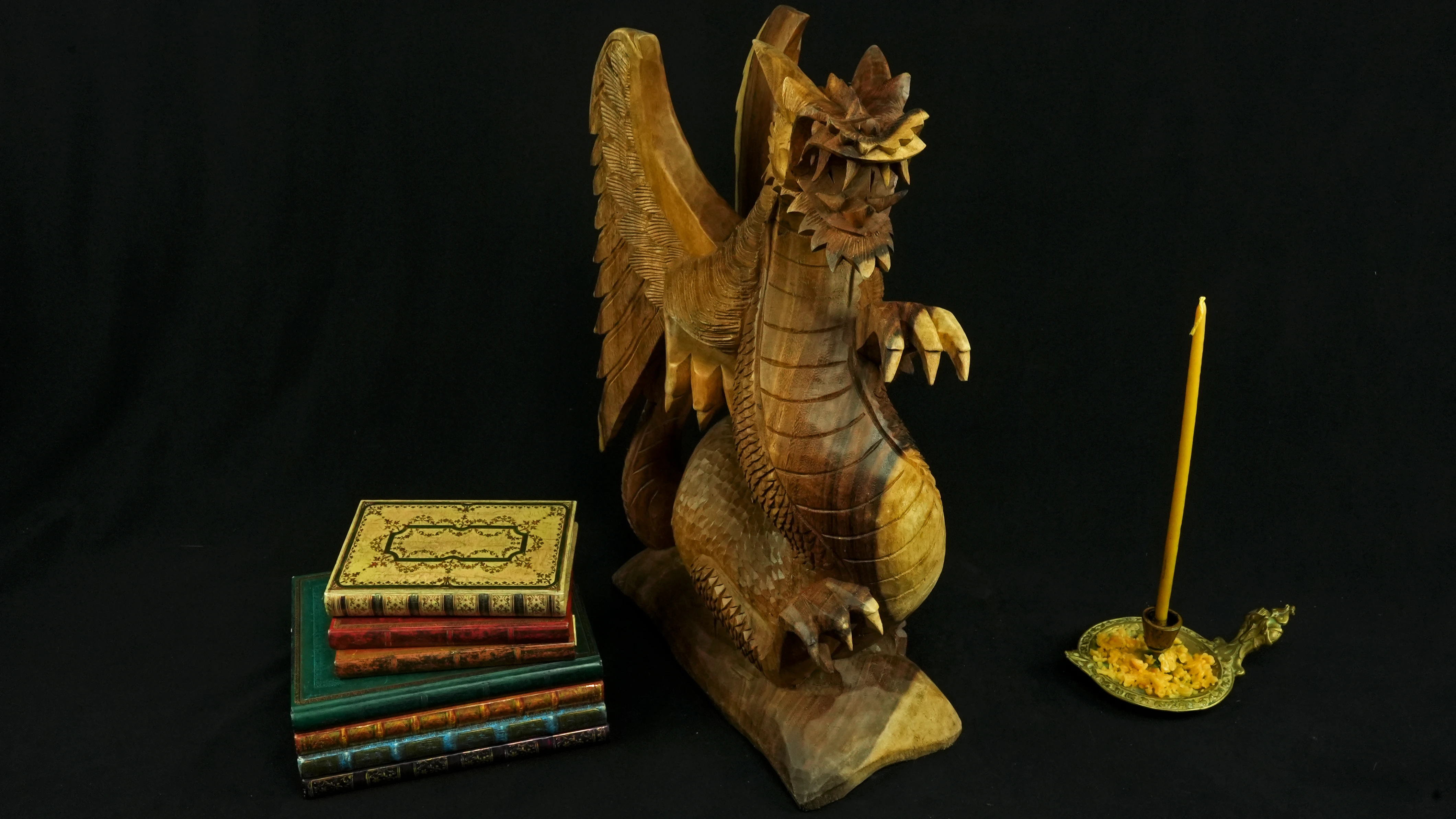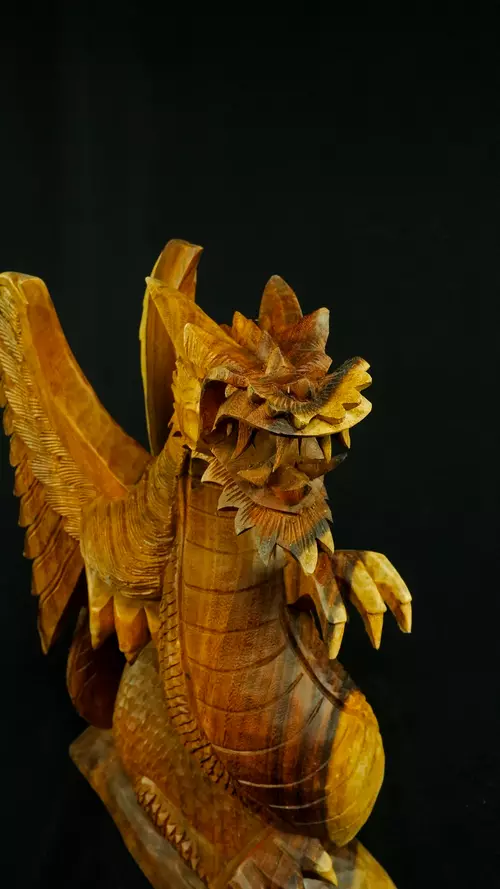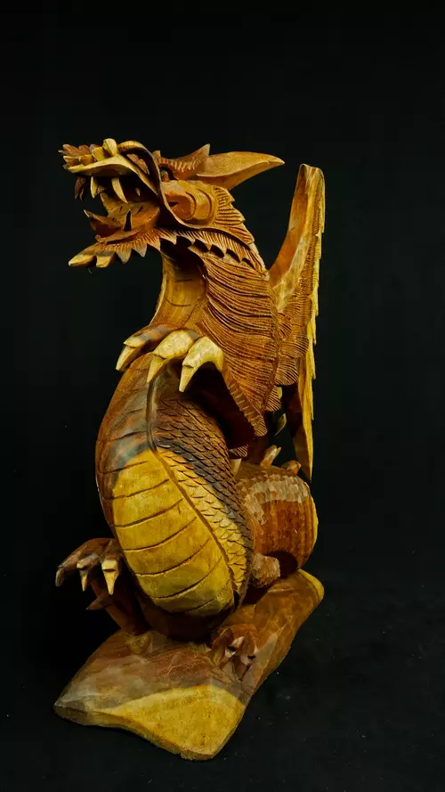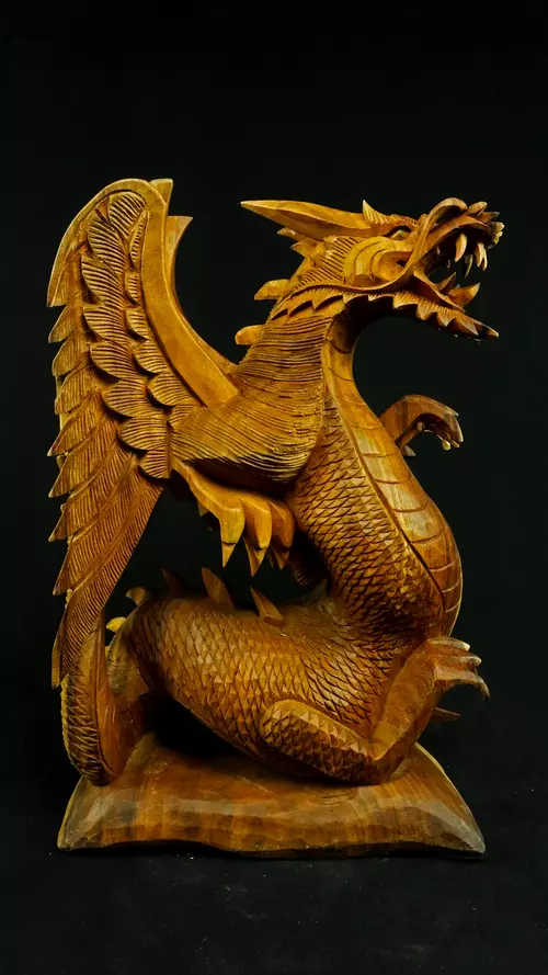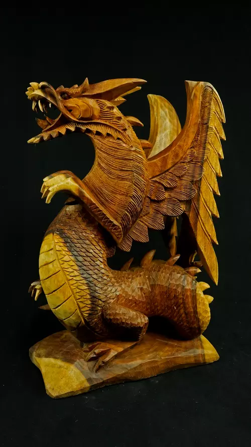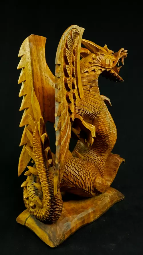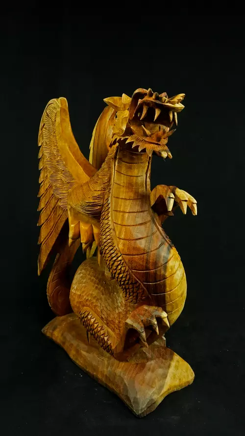 Statue Sacrée et Avatarisée - Dragon 50cm n°1 - en Bois de Suar