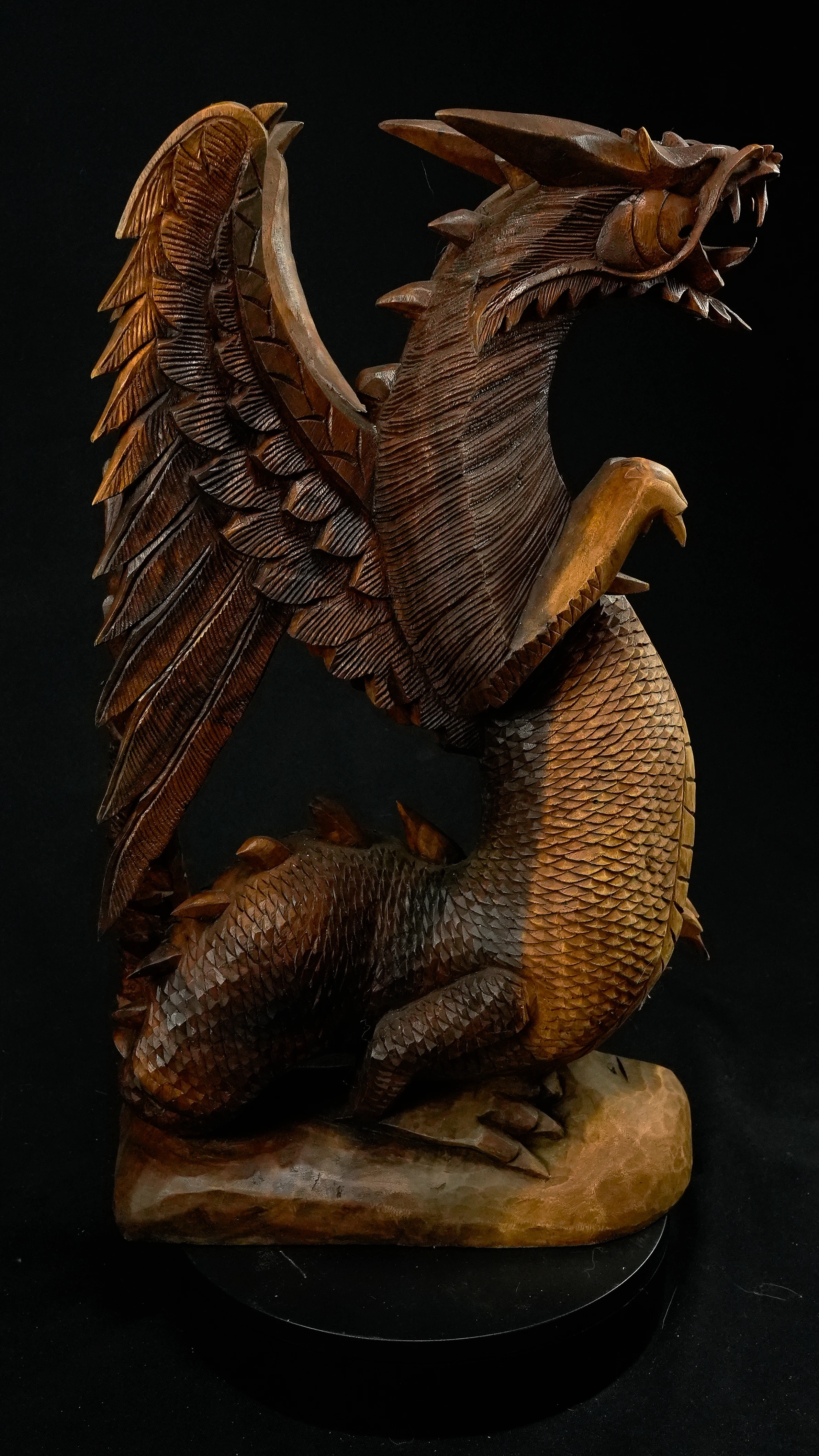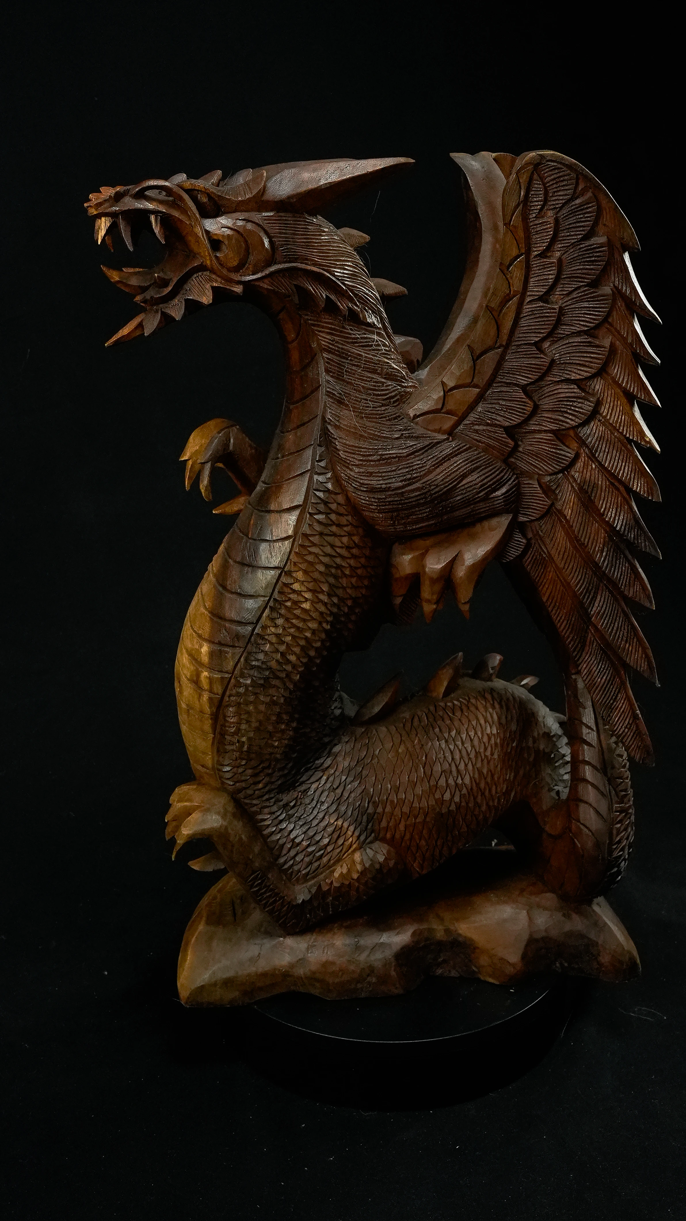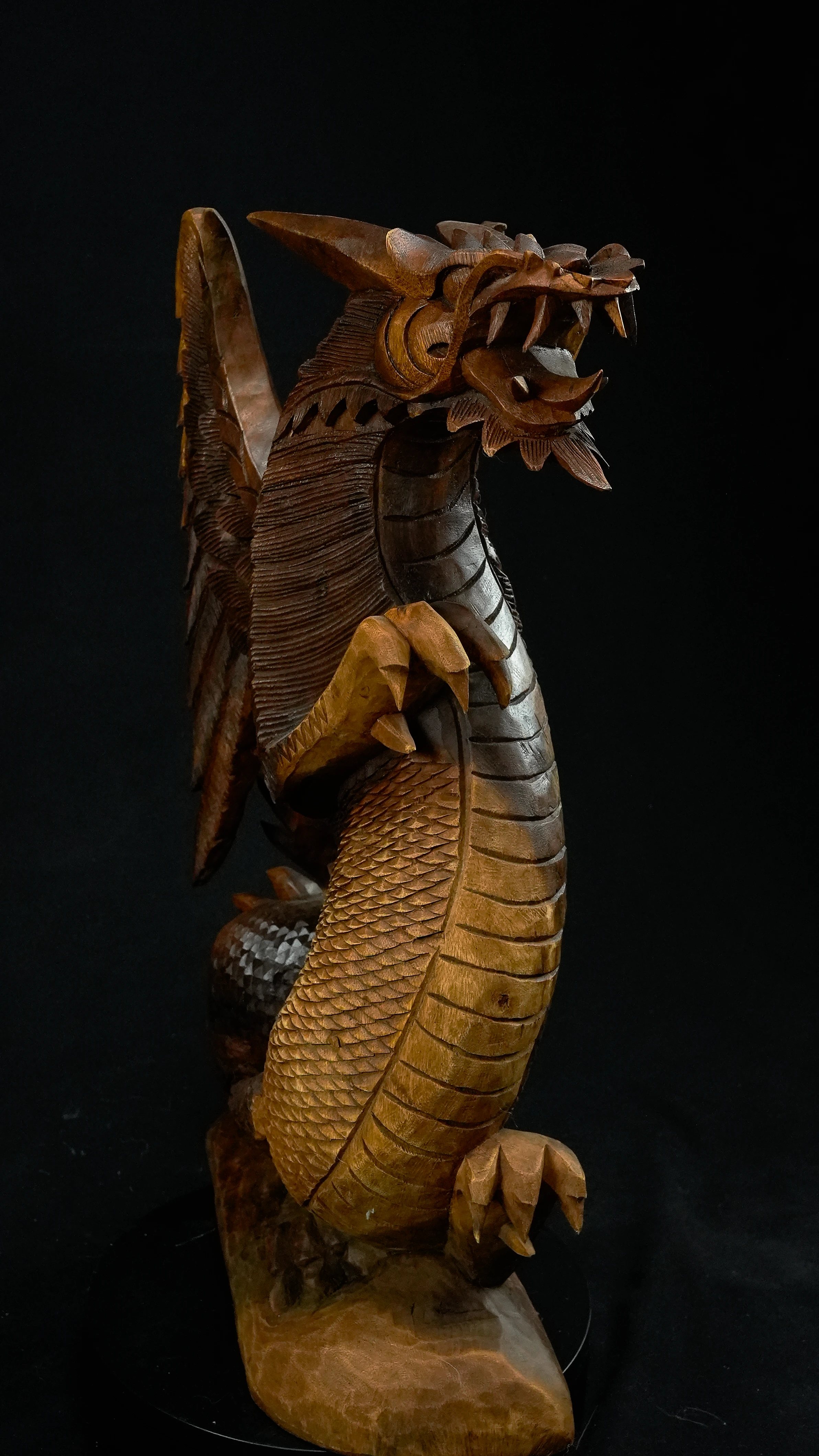 Statue Sacrée et Avatarisée - Dragon 60cm n°3 - en Bois de Suar