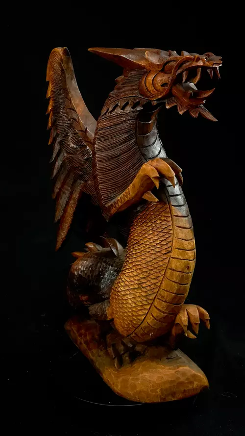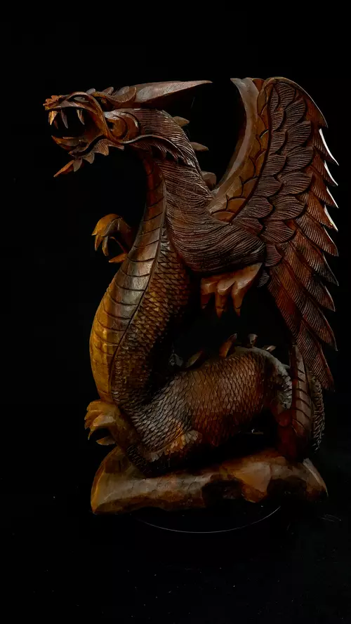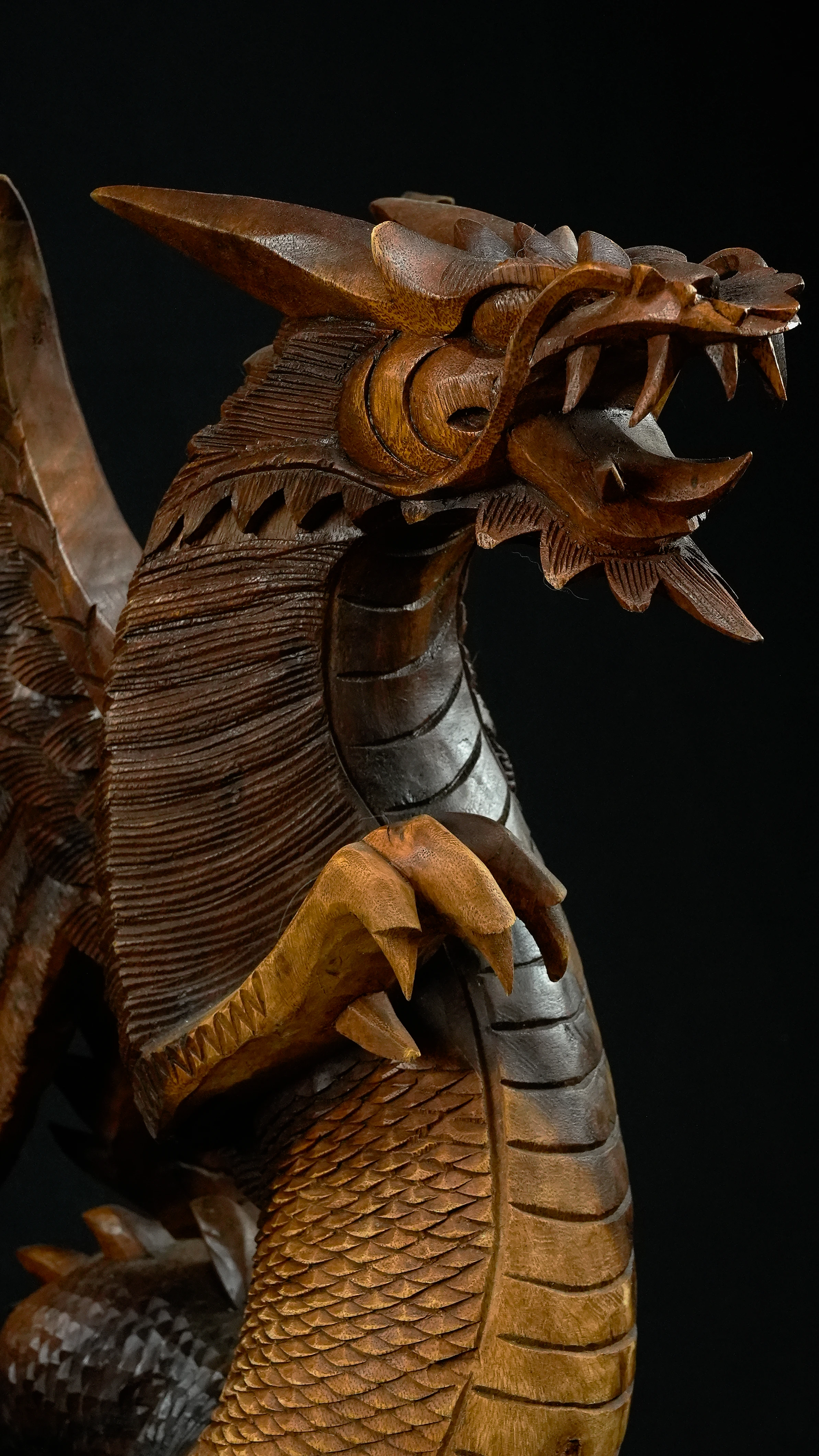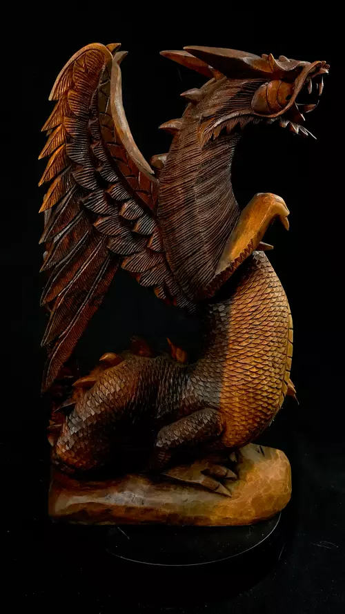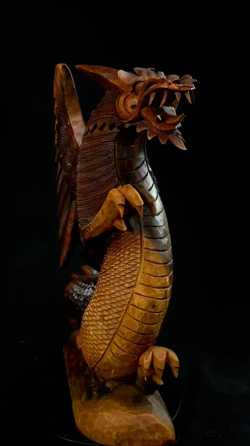 Statue Sacrée et Avatarisée - Dragon 60cm n°3 - en Bois de Suar