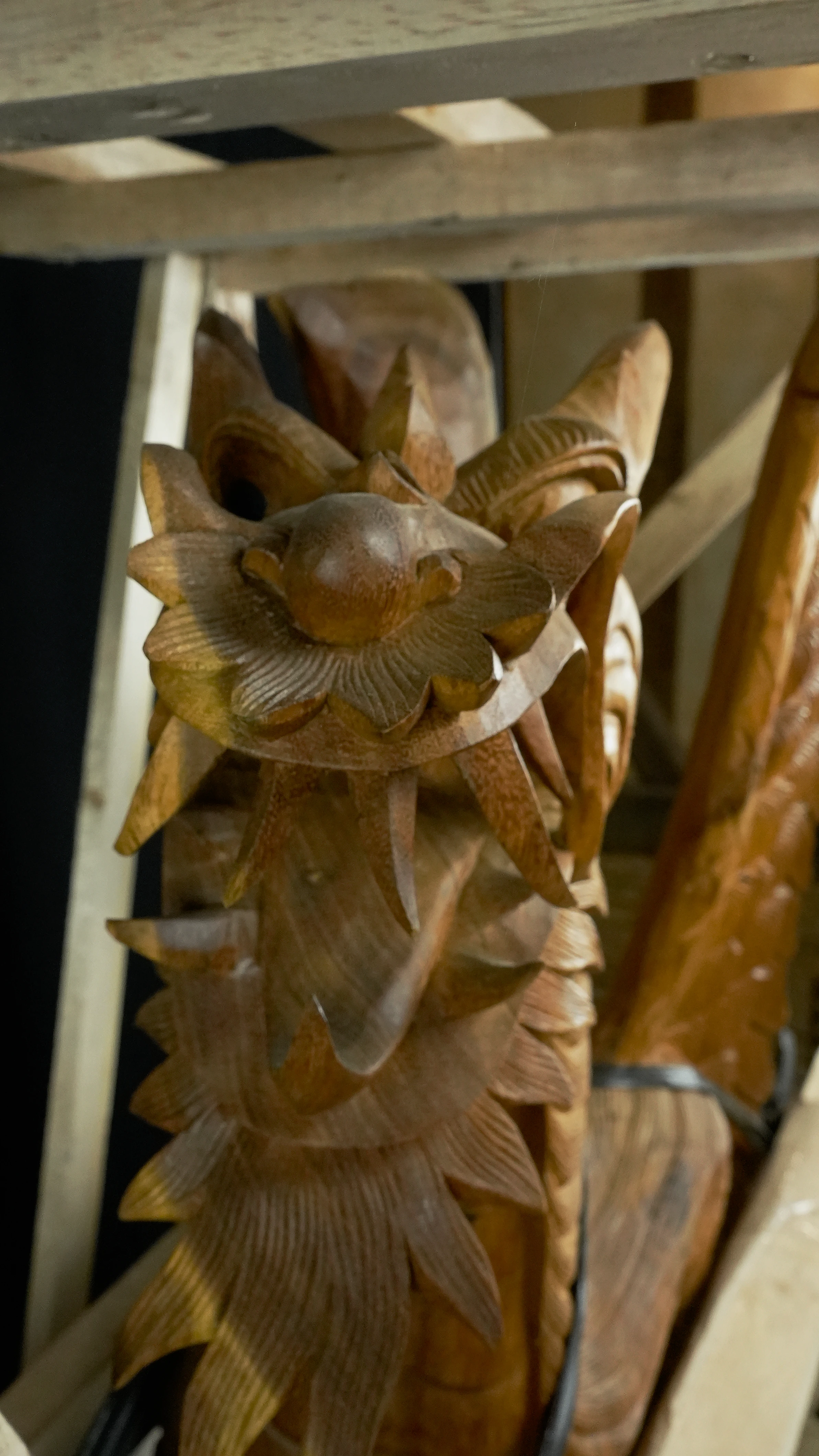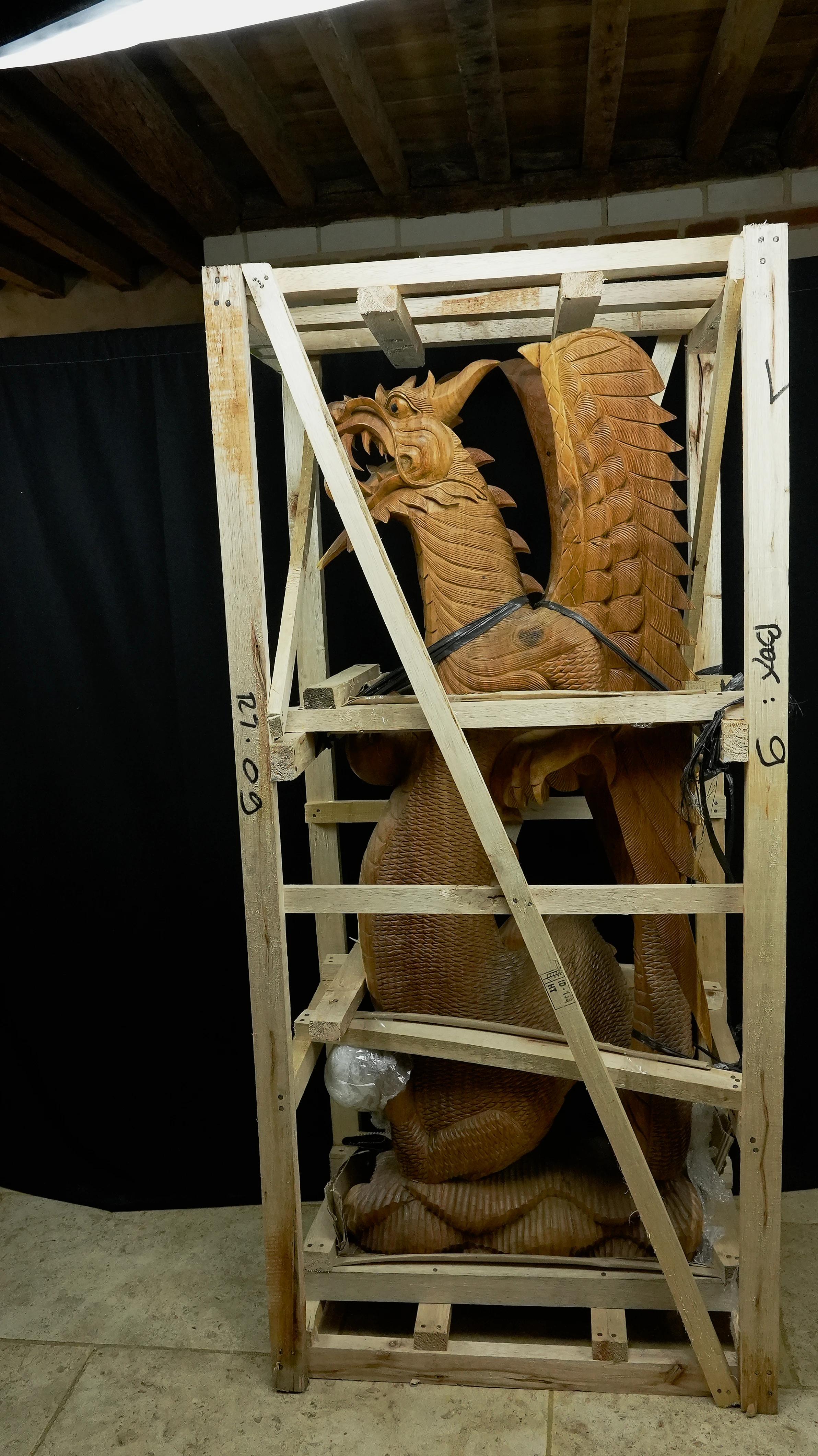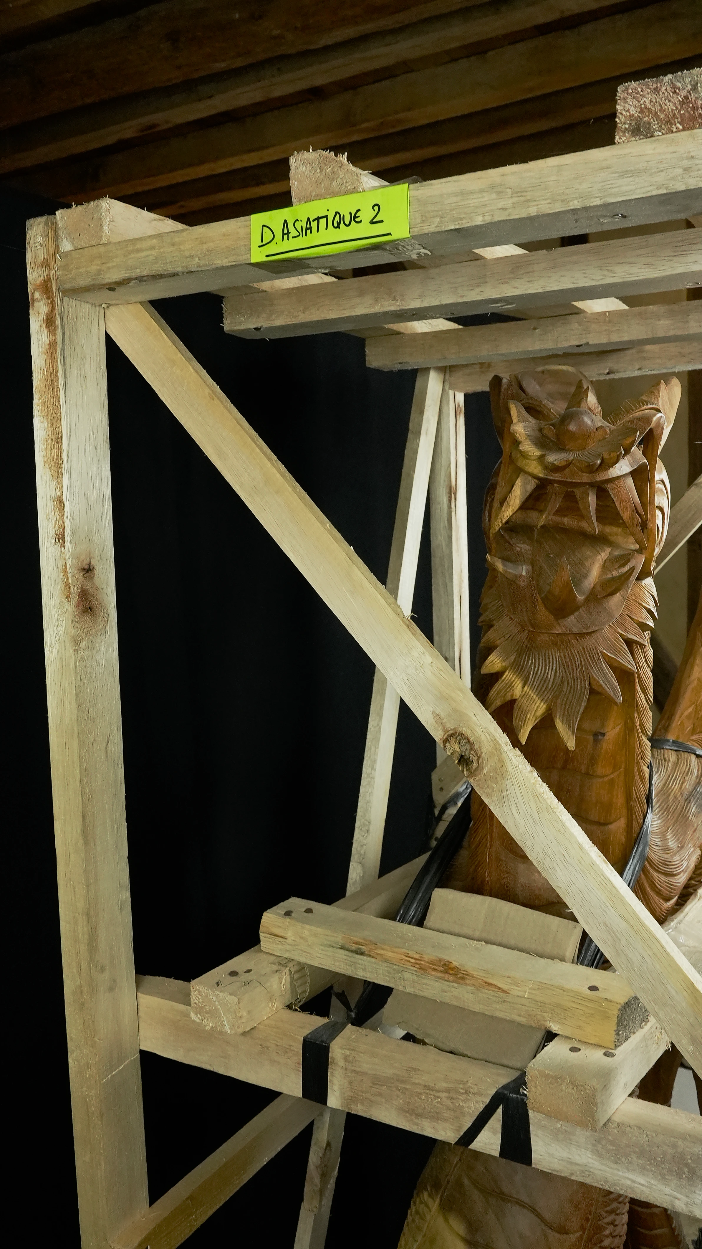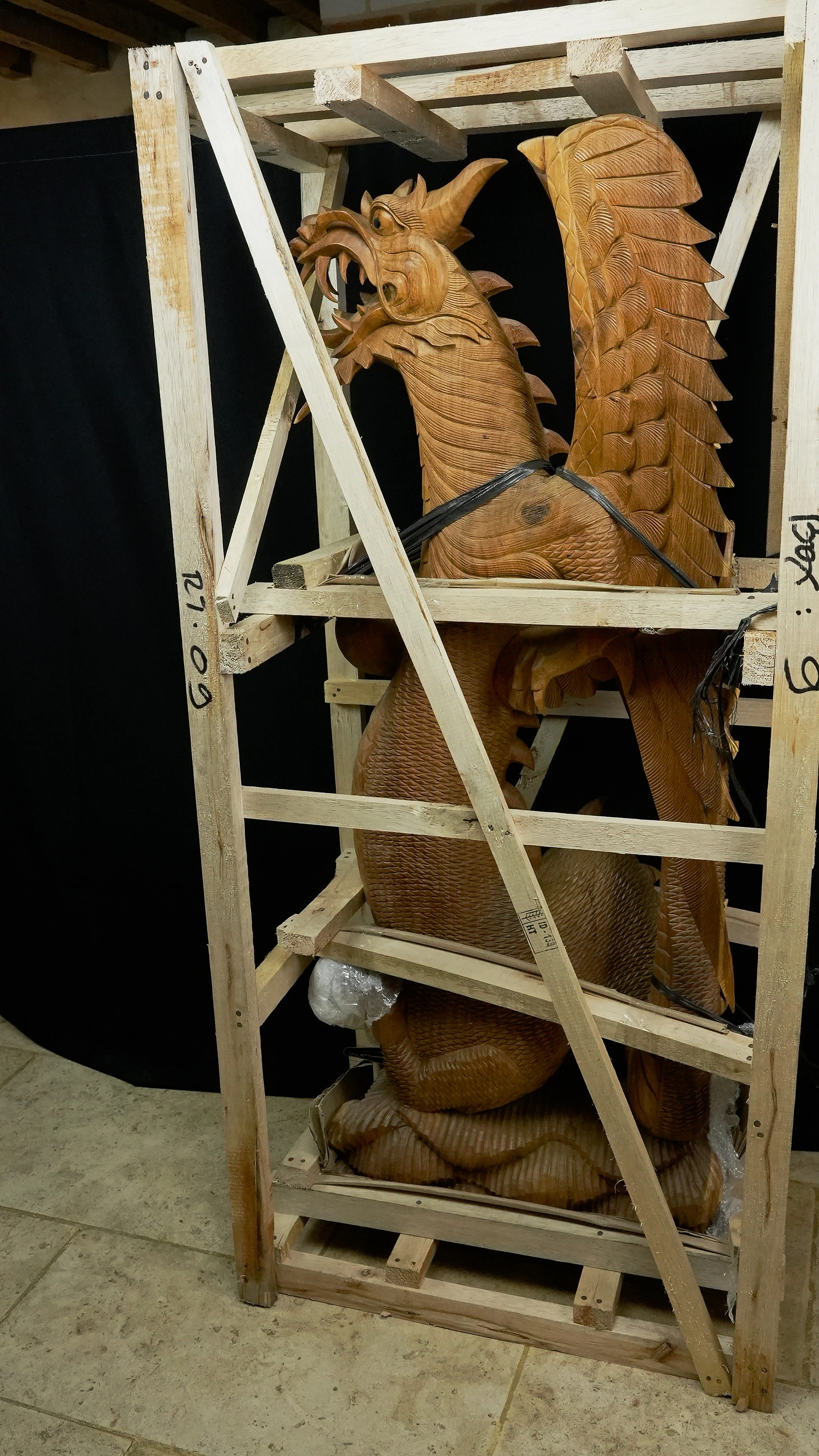 - 1x Statue avatarisée de Dragon en Bois de Suar : 58.8 kg, 148 cm de hauteur, 42 cm de longueur et 60 cm de largeur. Origine : Java, Indonésia.
