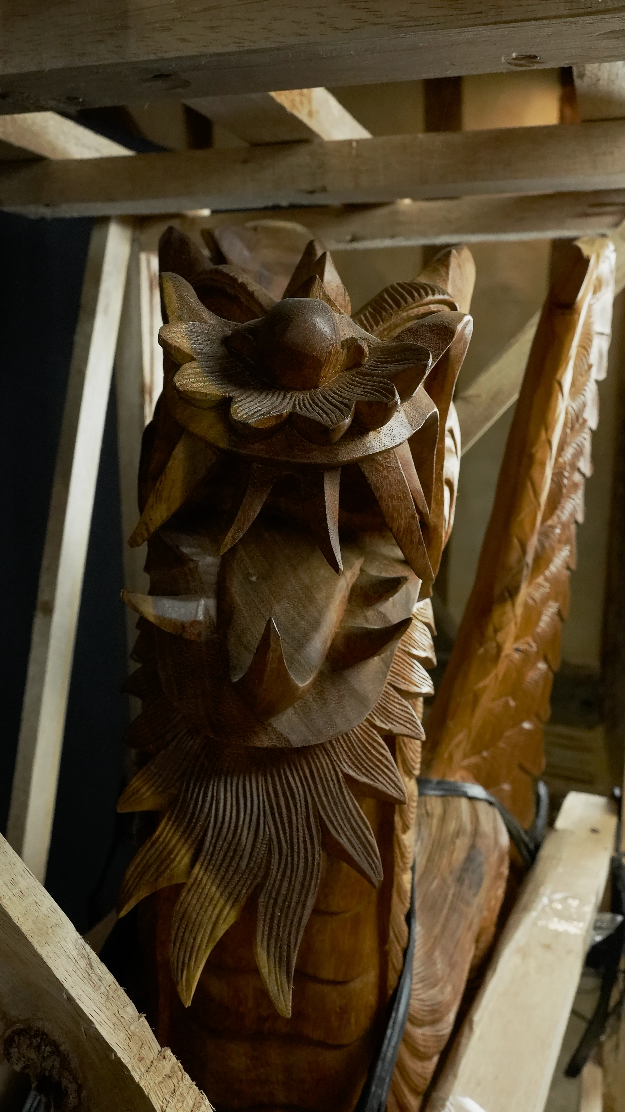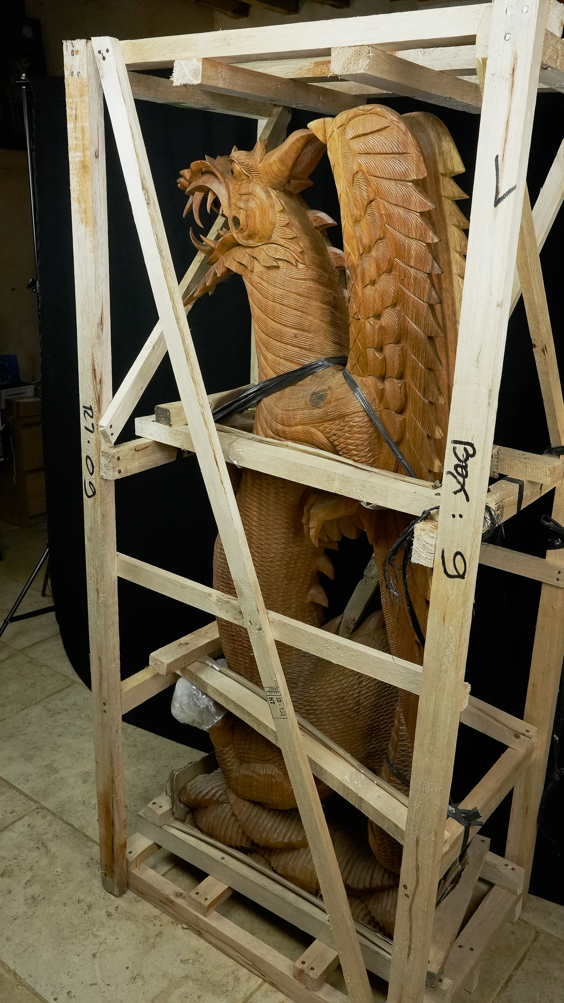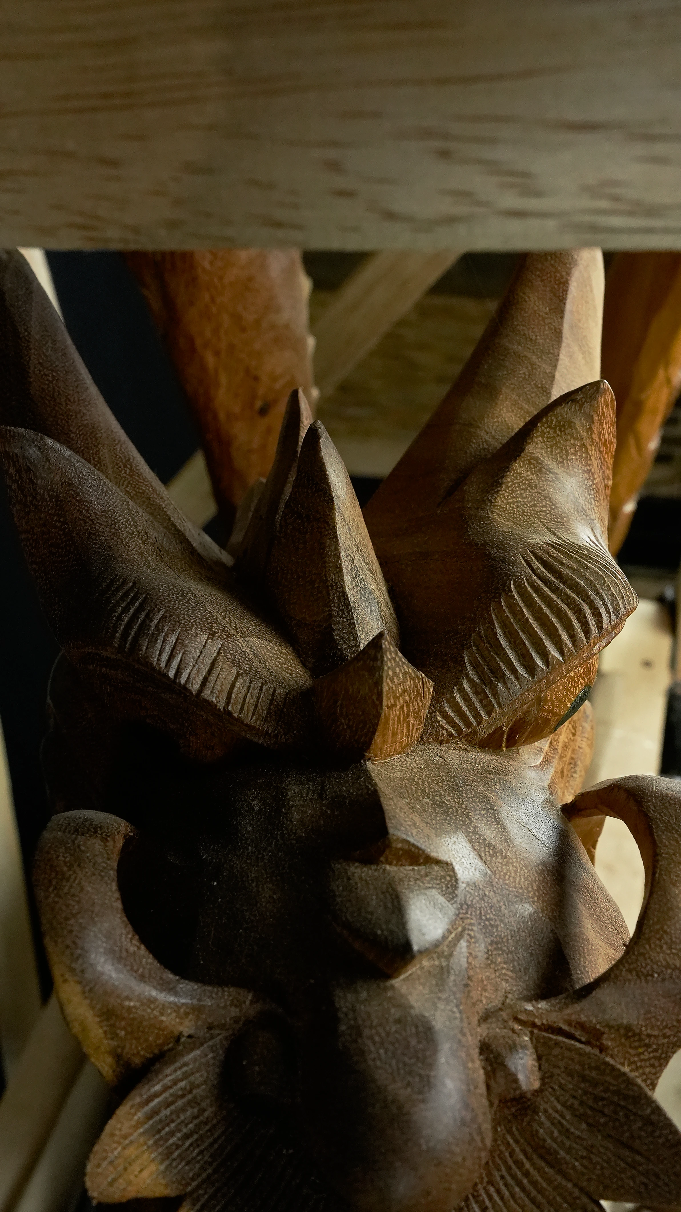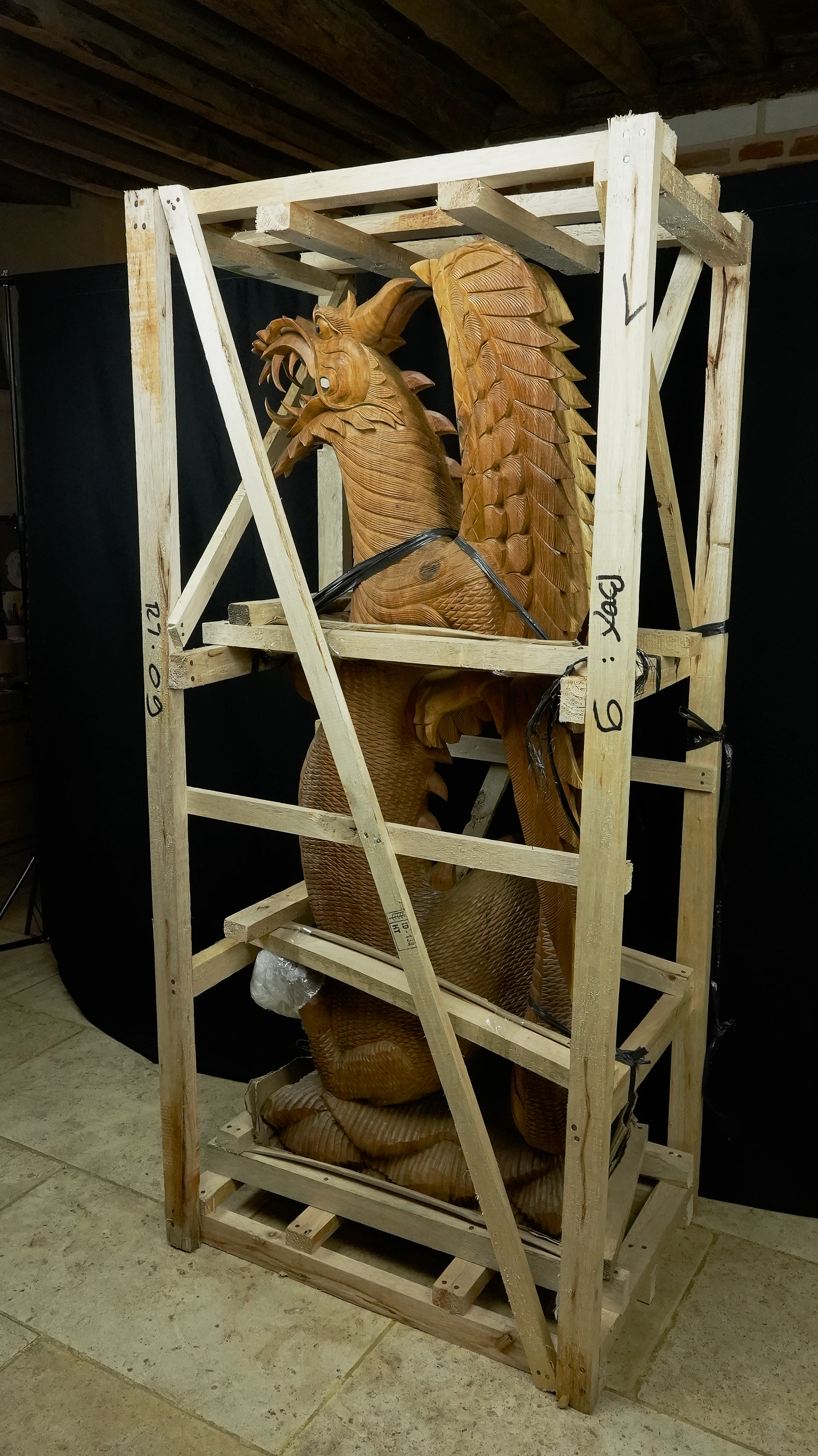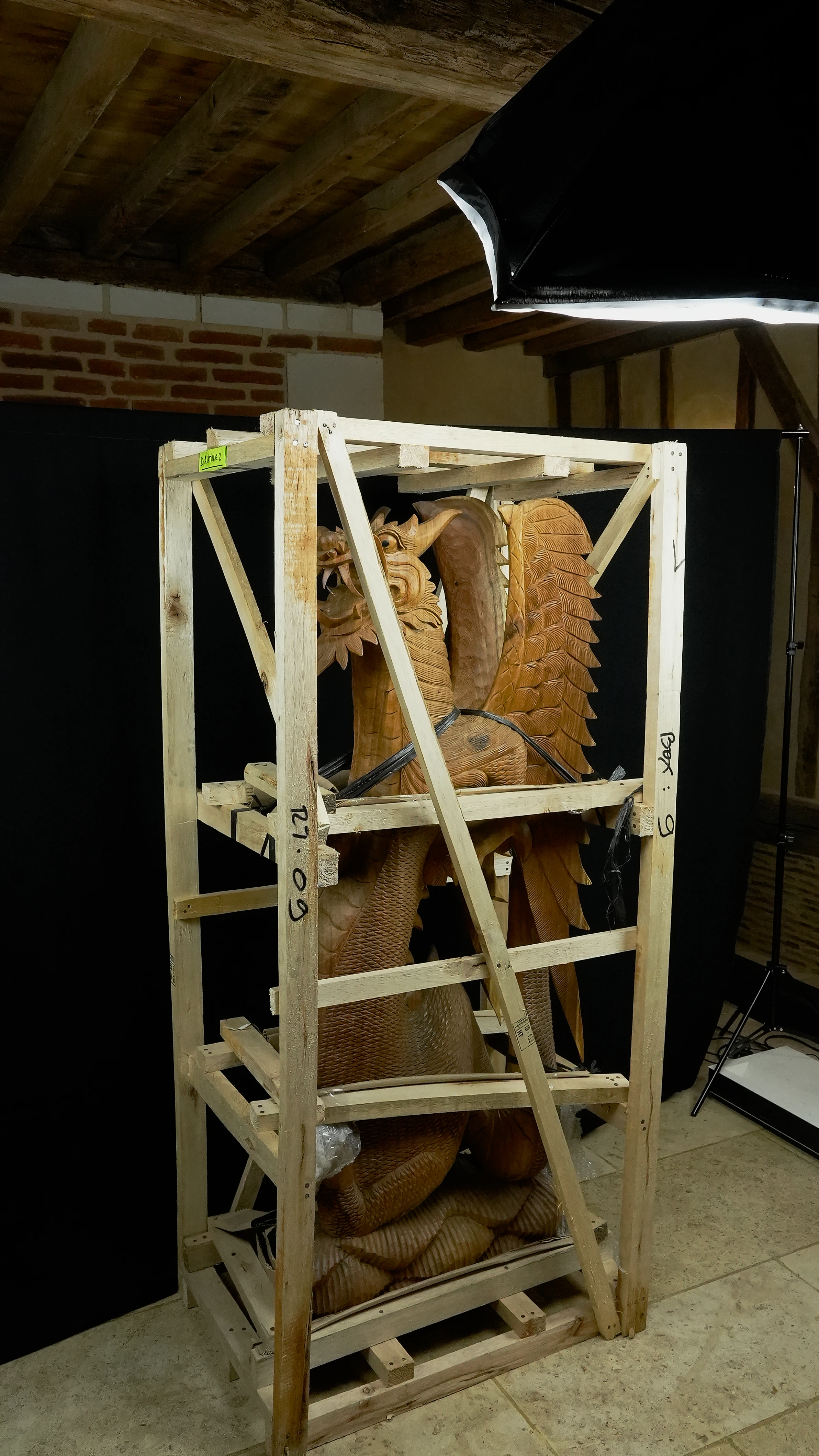 - 1x Statue avatarisée de Dragon en Bois de Suar : 58.8 kg, 148 cm de hauteur, 42 cm de longueur et 60 cm de largeur. Origine : Java, Indonésia.