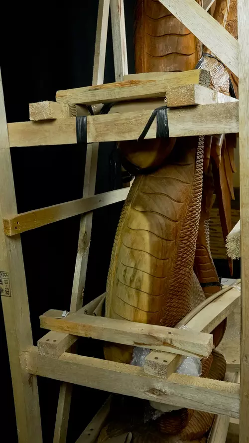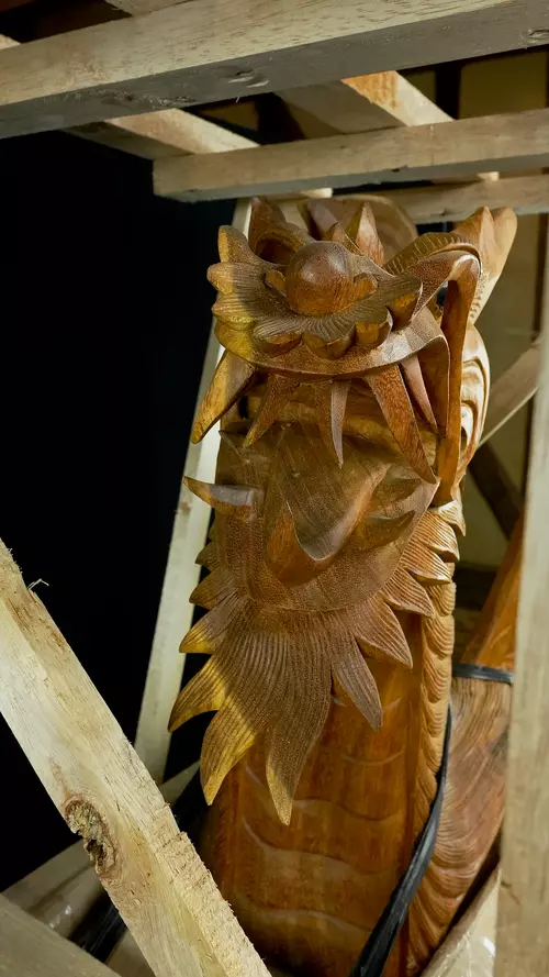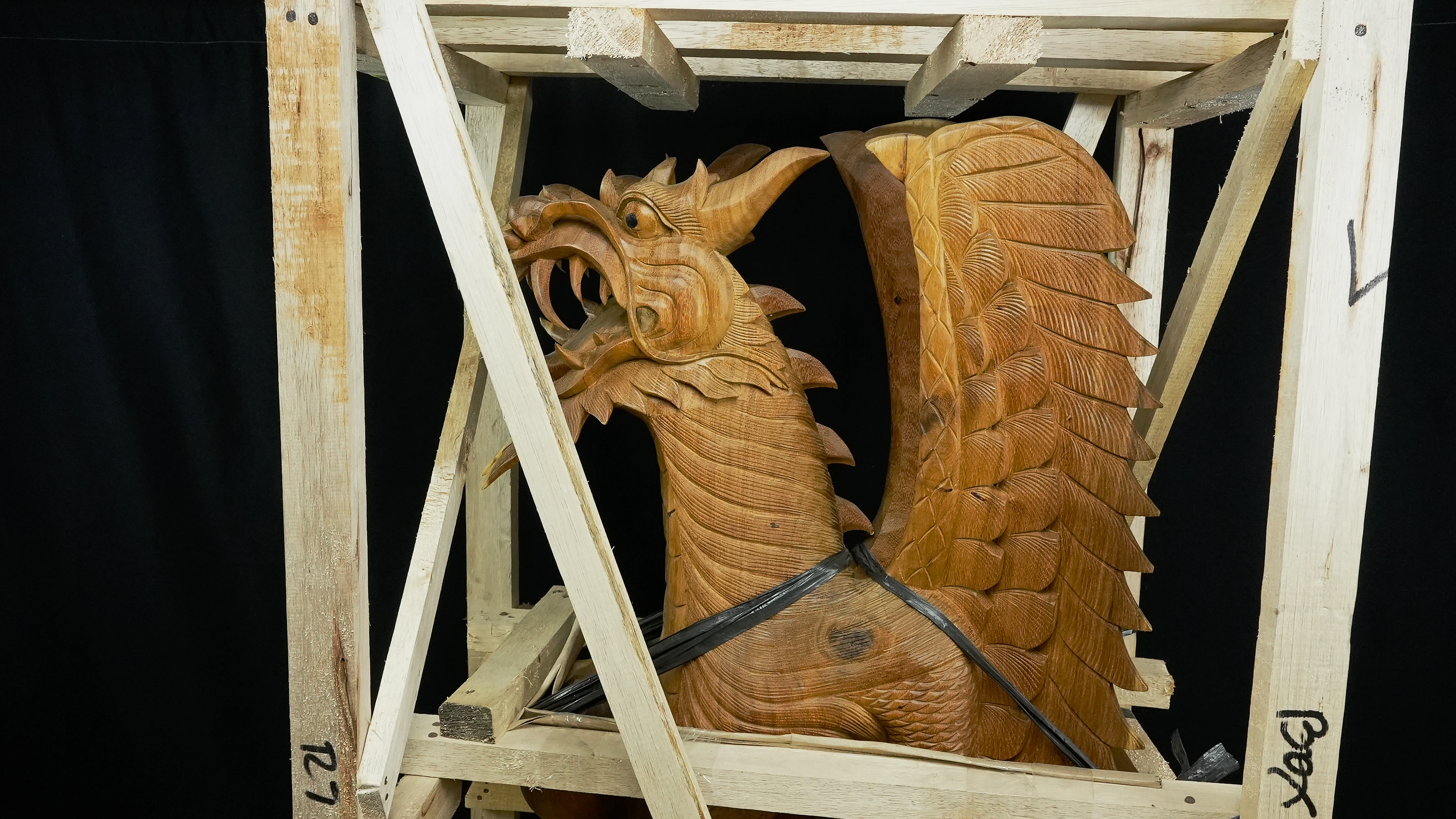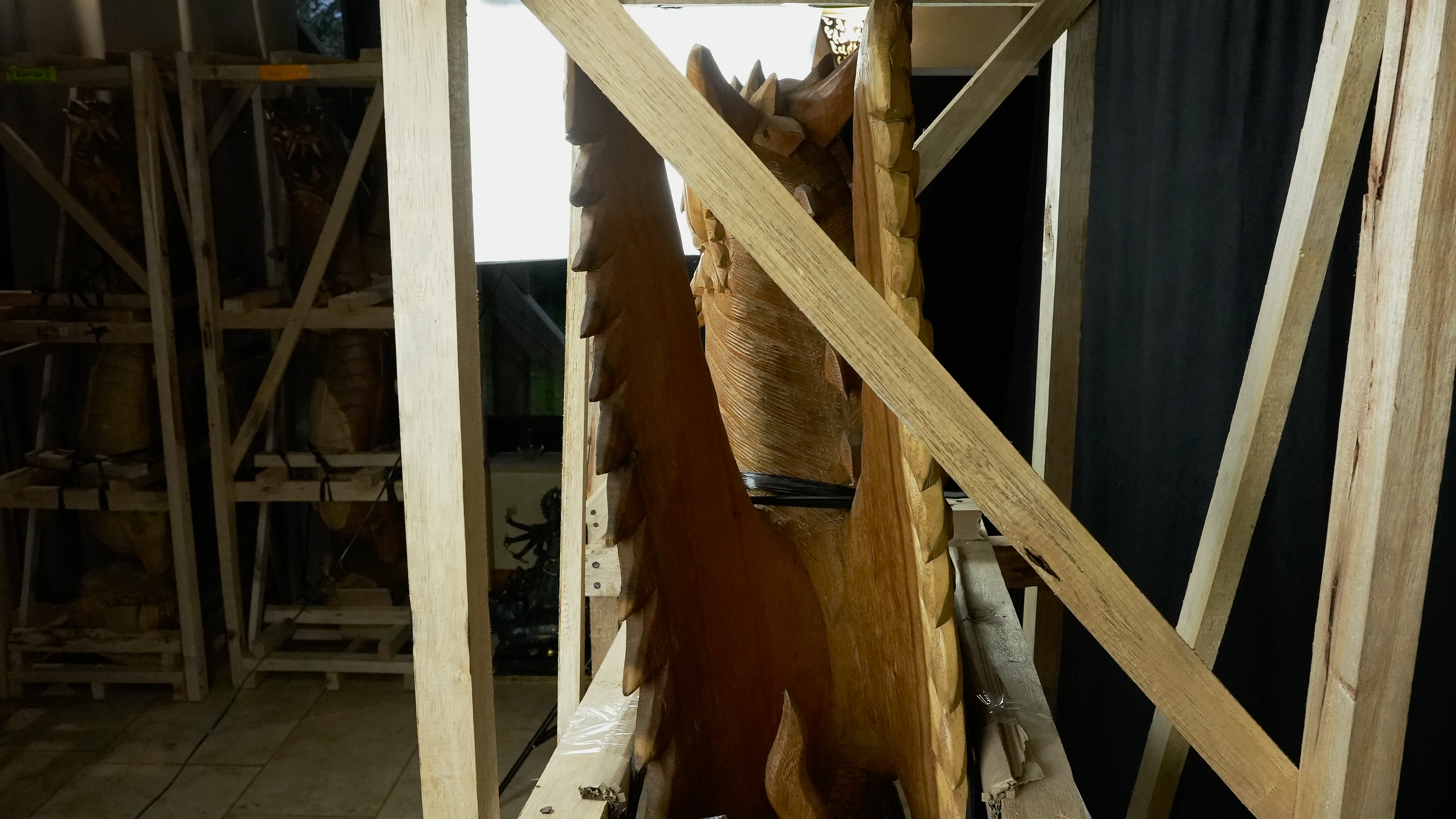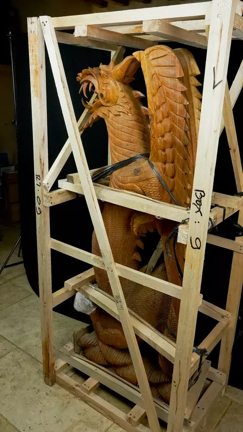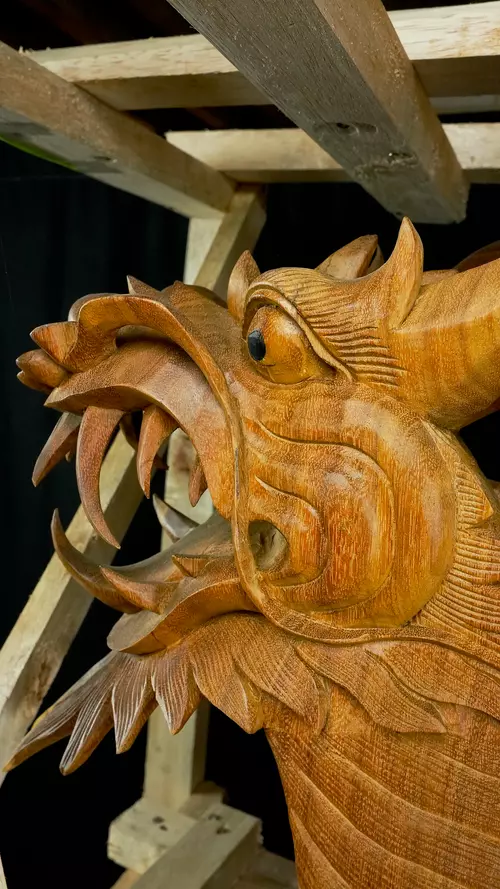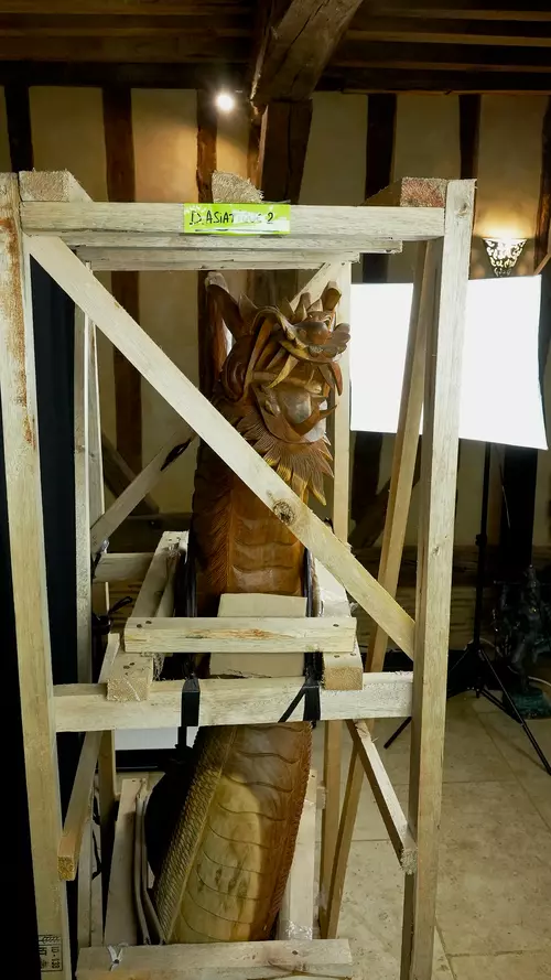- 1x Statue avatarisée de Dragon en Bois de Suar : 58.8 kg, 148 cm de hauteur, 42 cm de longueur et 60 cm de largeur. Origine : Java, Indonésia.