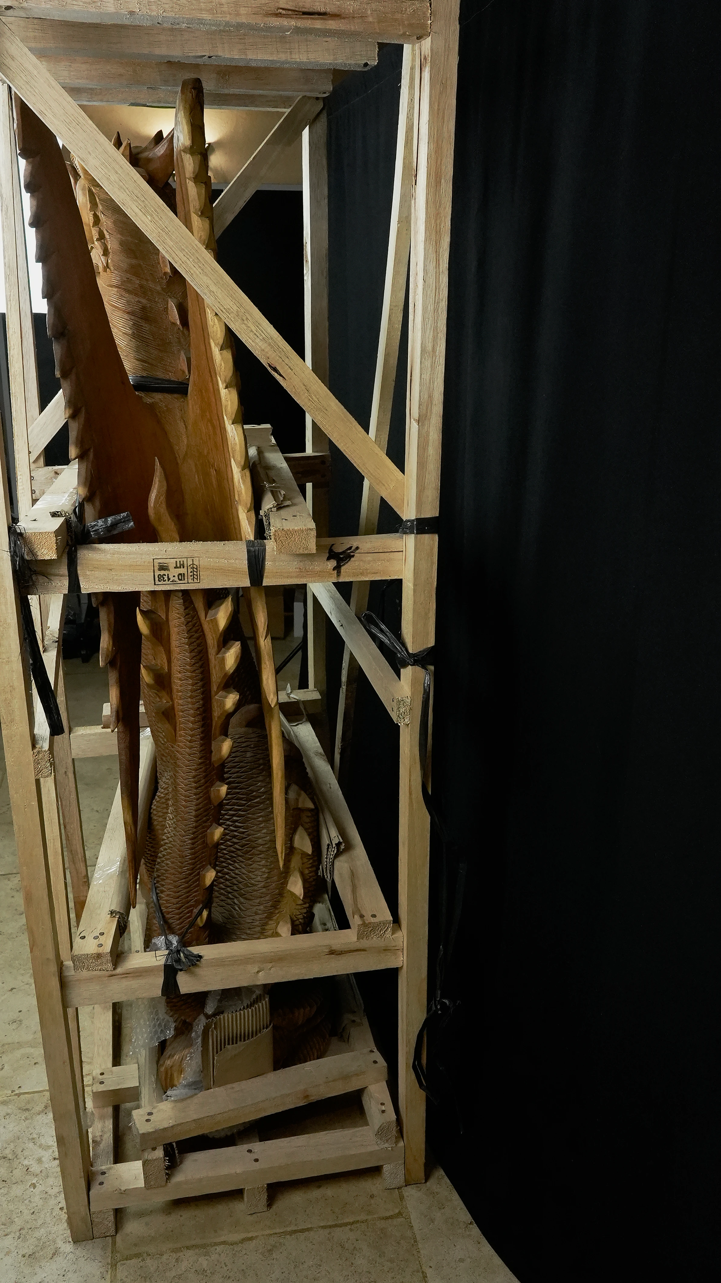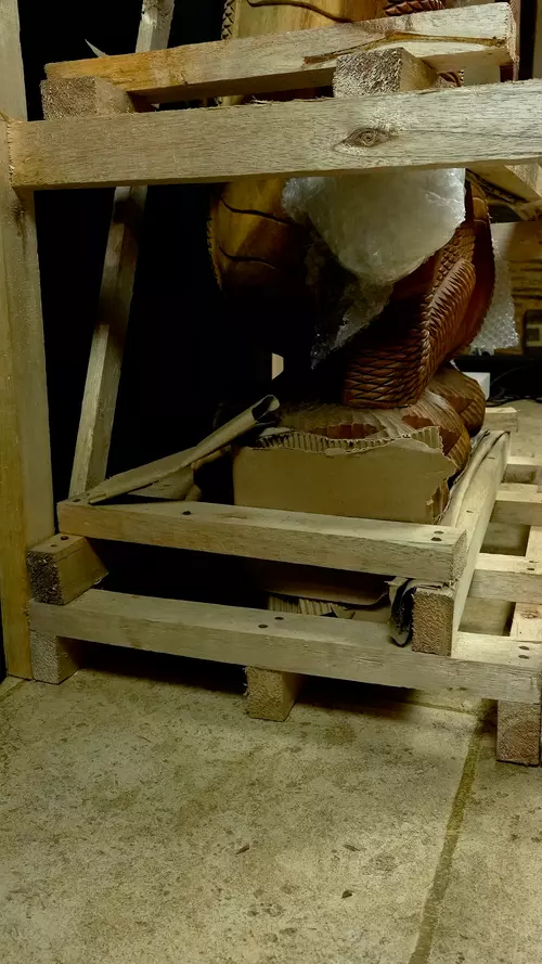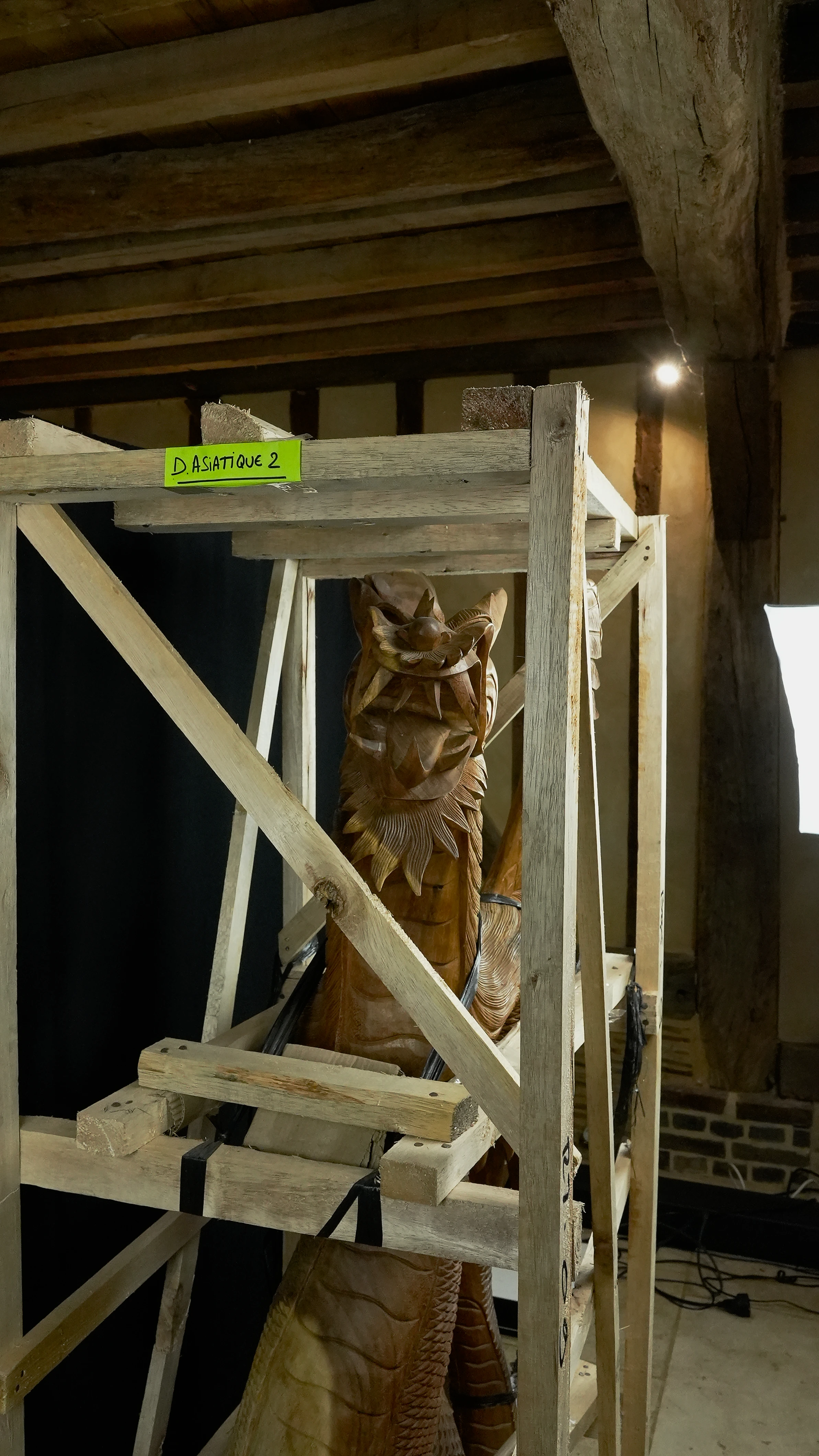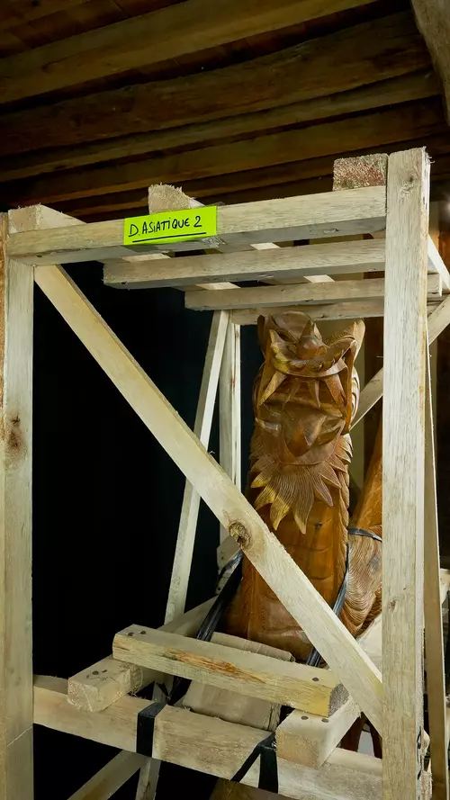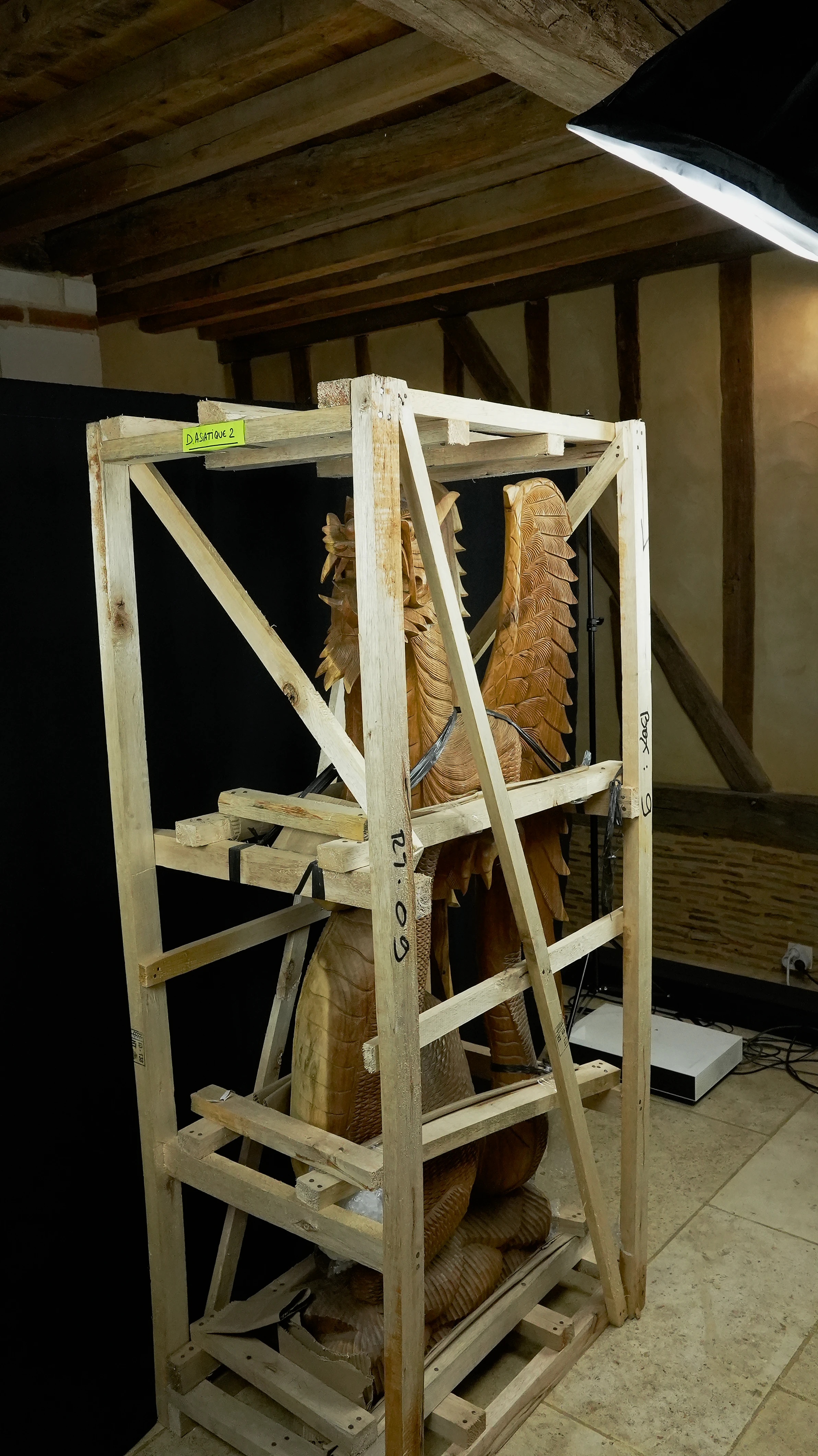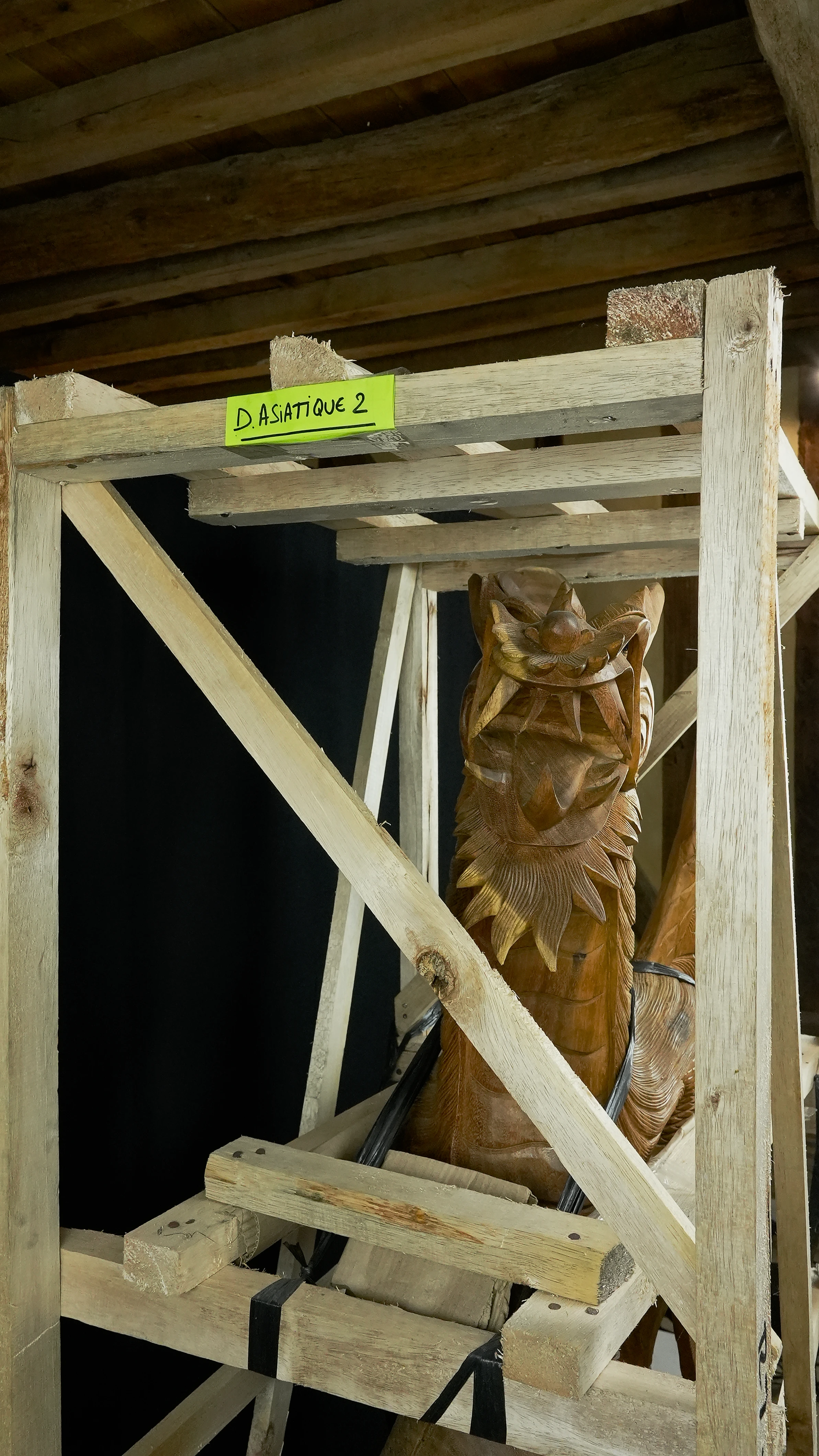 Note importante Cette statue est disponible en 4 exemplaires. Elles sont toutes uniques : les teintes, nuances et veinures du bois peuvent varier légèrement d’une pièce à l’autre. Habituellement, je photographie chaque statue individuellement, mais ces modèles sont livrés dans des caisses en bois clouées pour assurer leur protection. Elles sont impossibles à transporter sans leur caisse, c’est pourquoi je n’ai pas pu les déclouer pour faire des photos séparées. Je ferais mieux la prochaine fois, si j'en retrouve un jour.