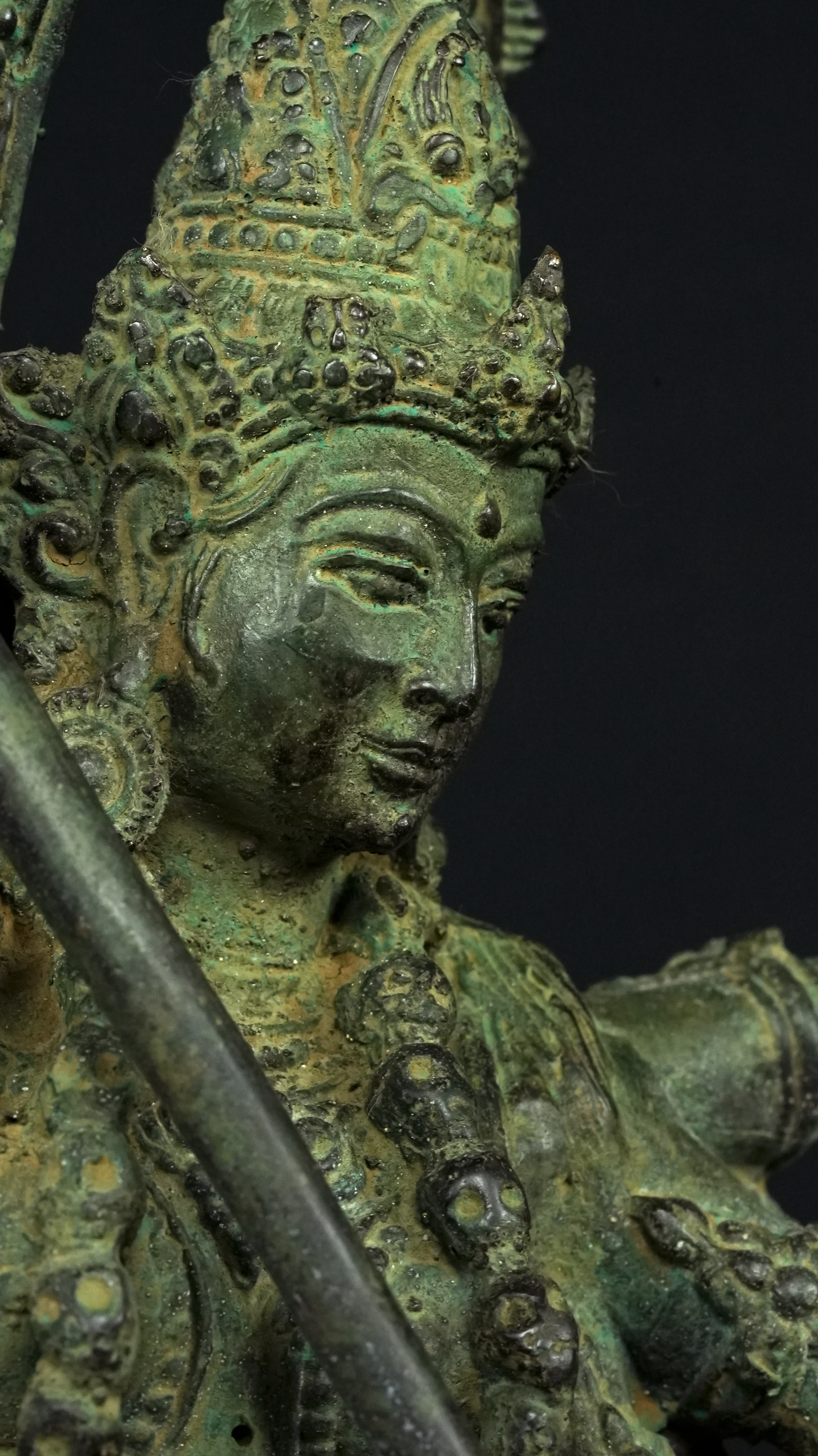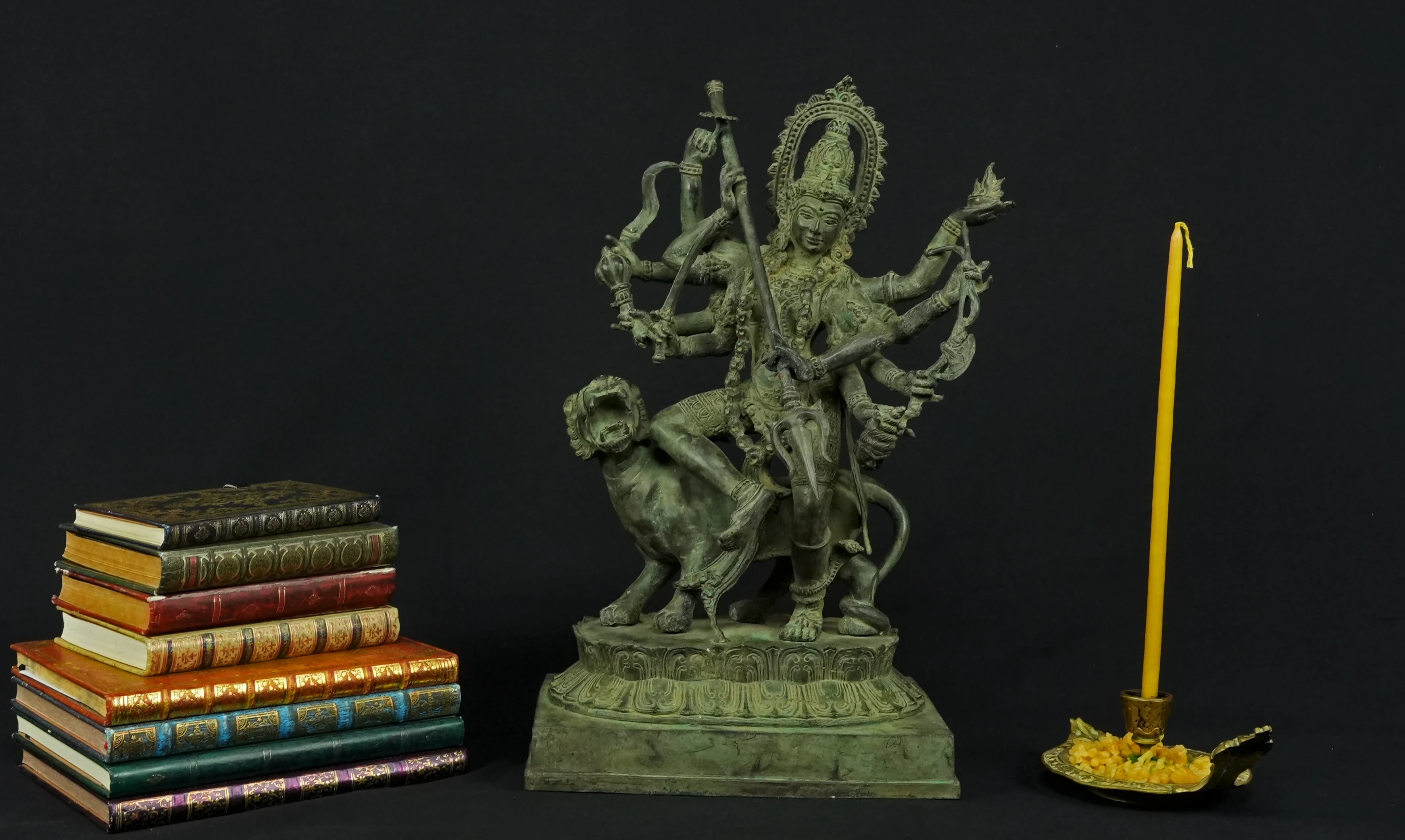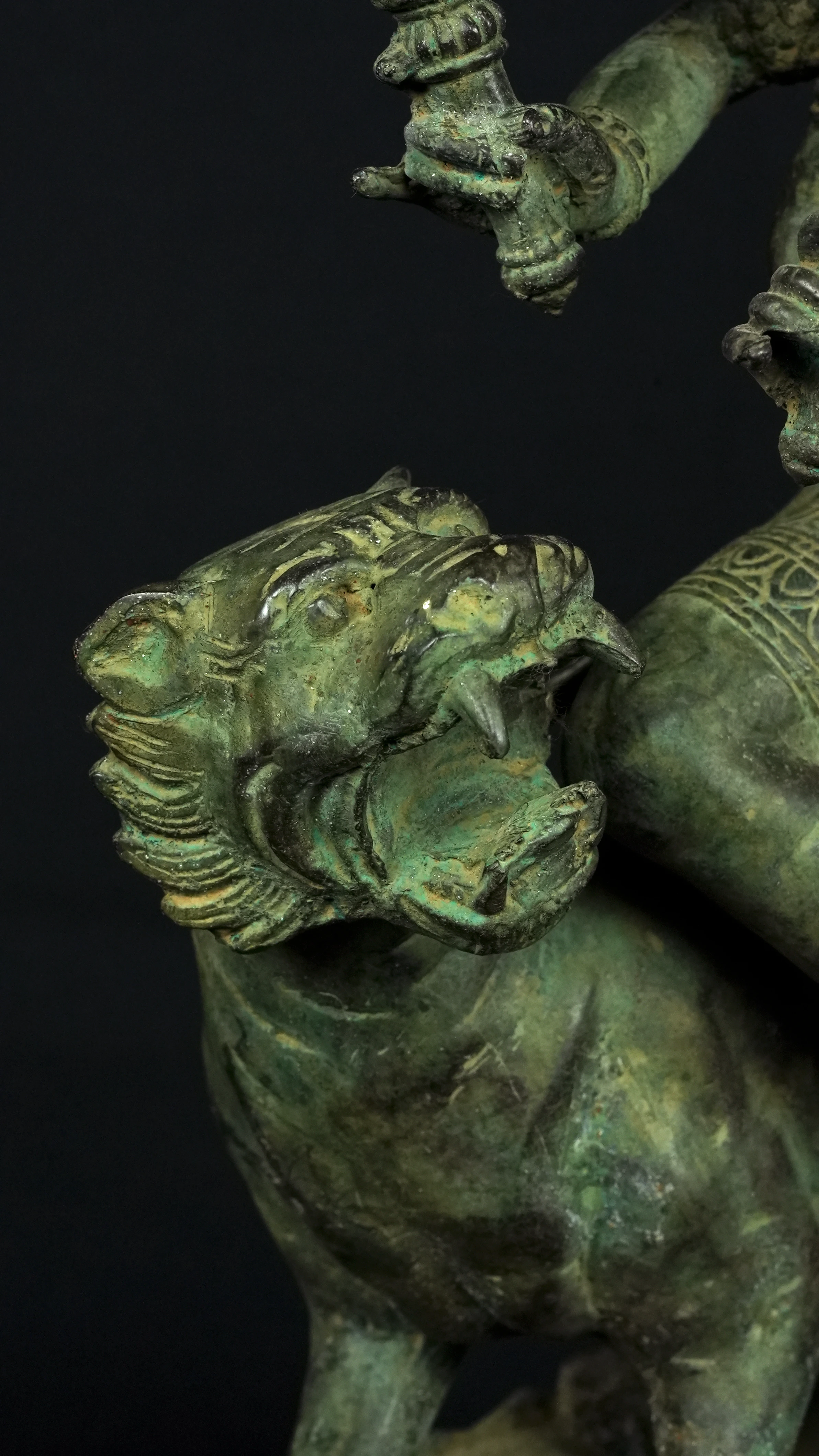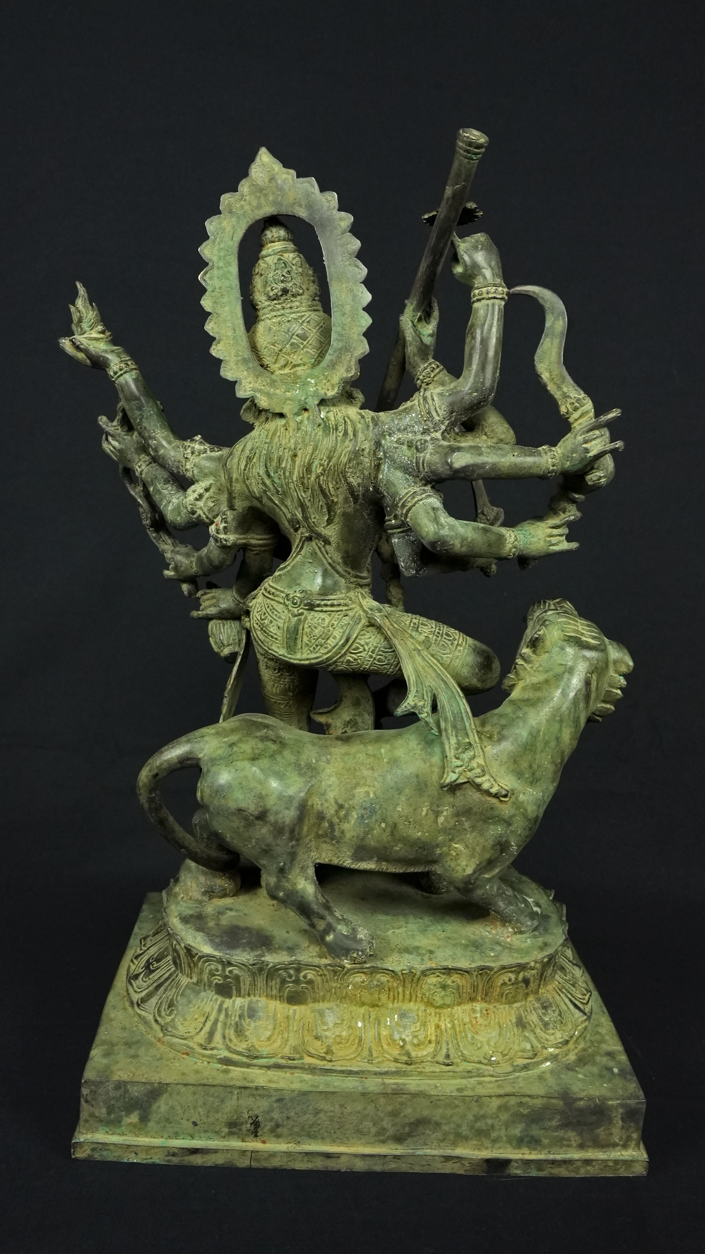 - 1x Statue avatarisée de Durga : 4.7 kg, 47 cm de hauteur, 29 cm de diamètre. Méthode de la cire perdue en Laiton réalisé à Java, Indonésie.