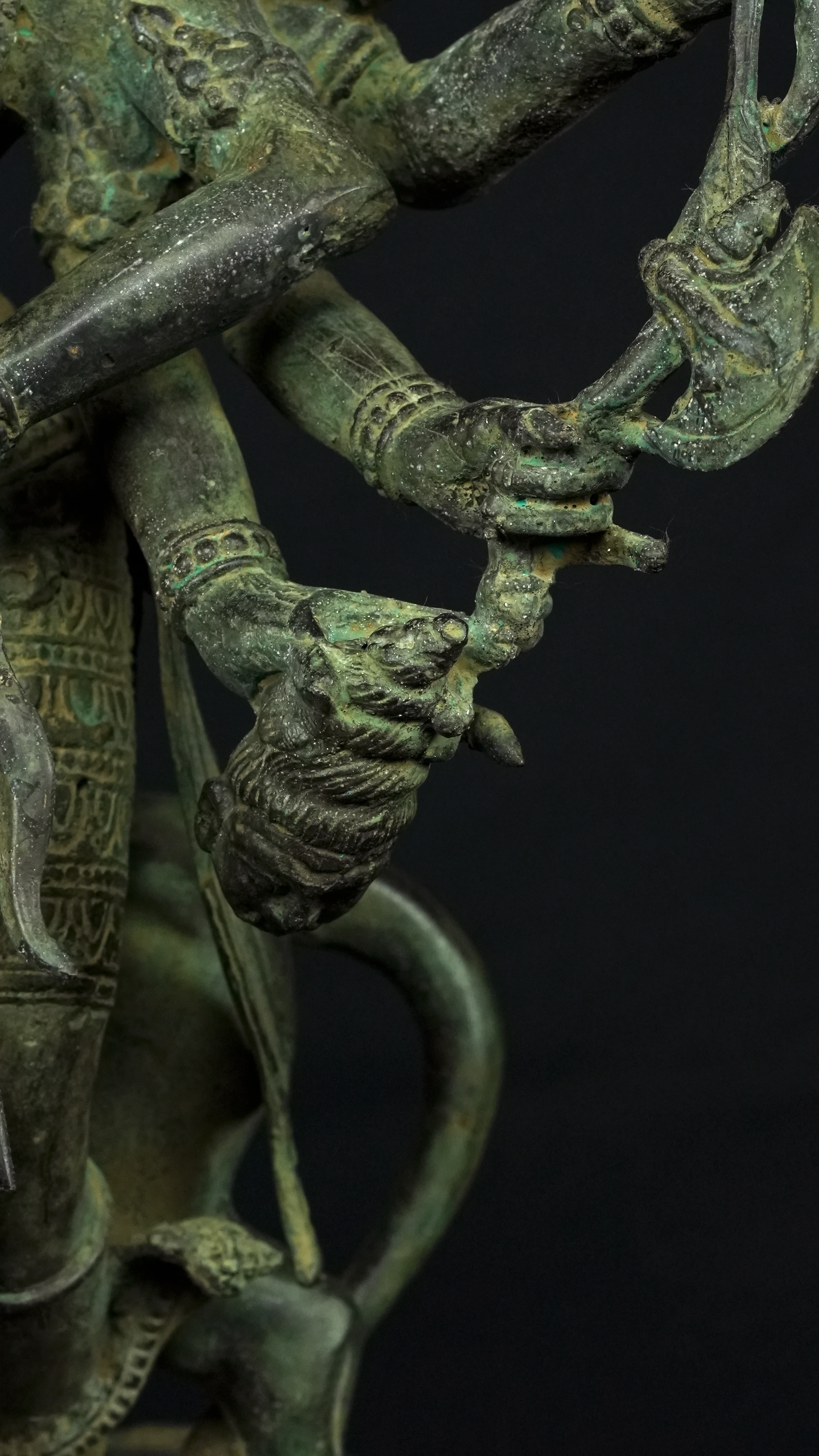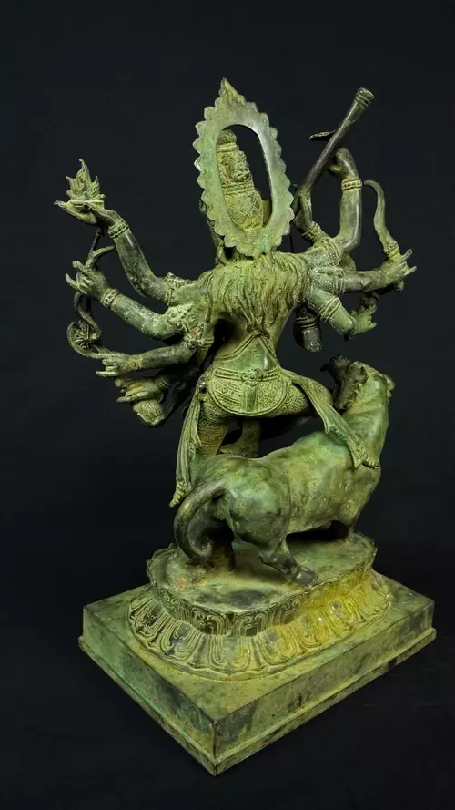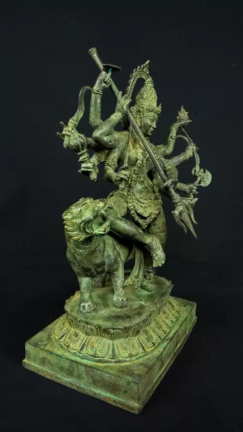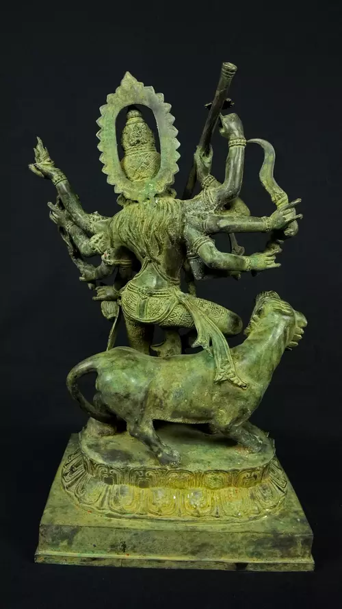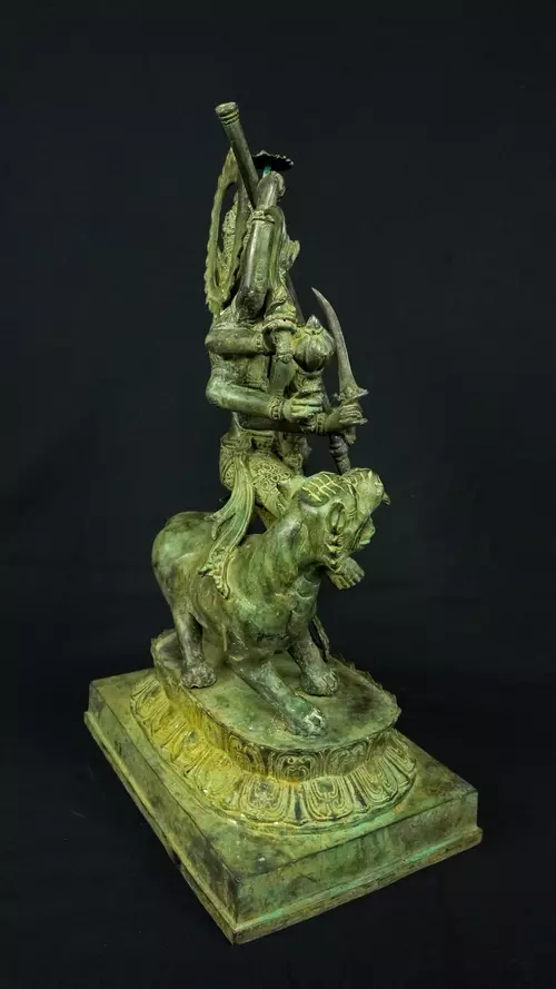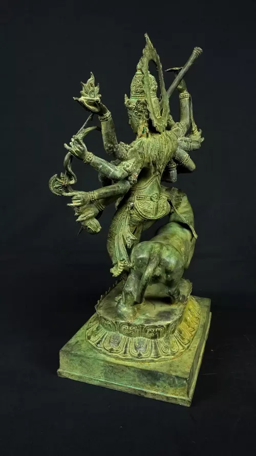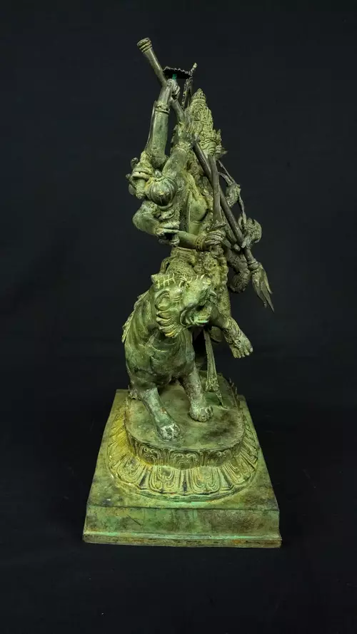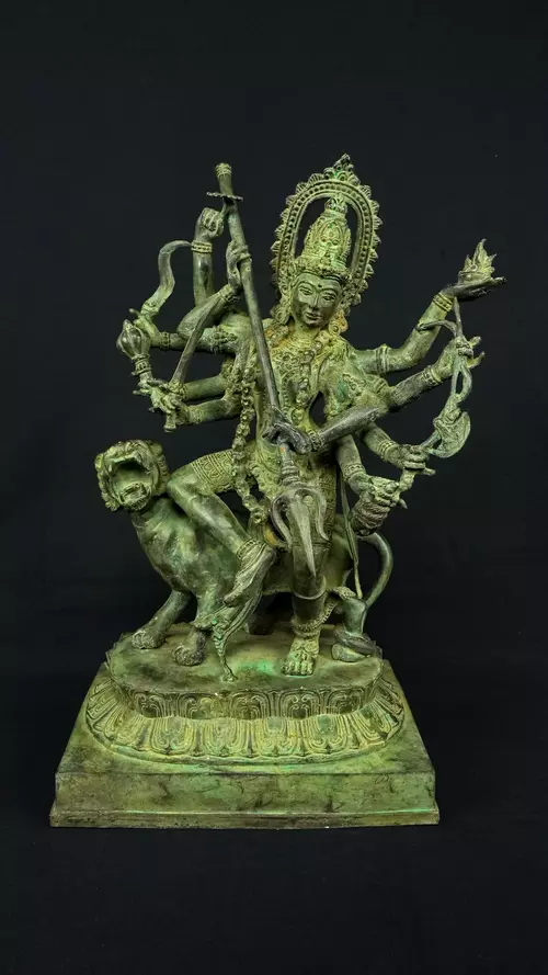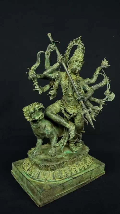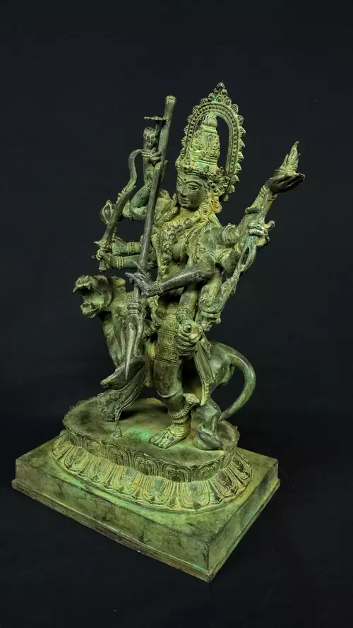 - 1x Statue avatarisée de Durga : 4.7 kg, 47 cm de hauteur, 29 cm de diamètre. Méthode de la cire perdue en Laiton réalisé à Java, Indonésie.