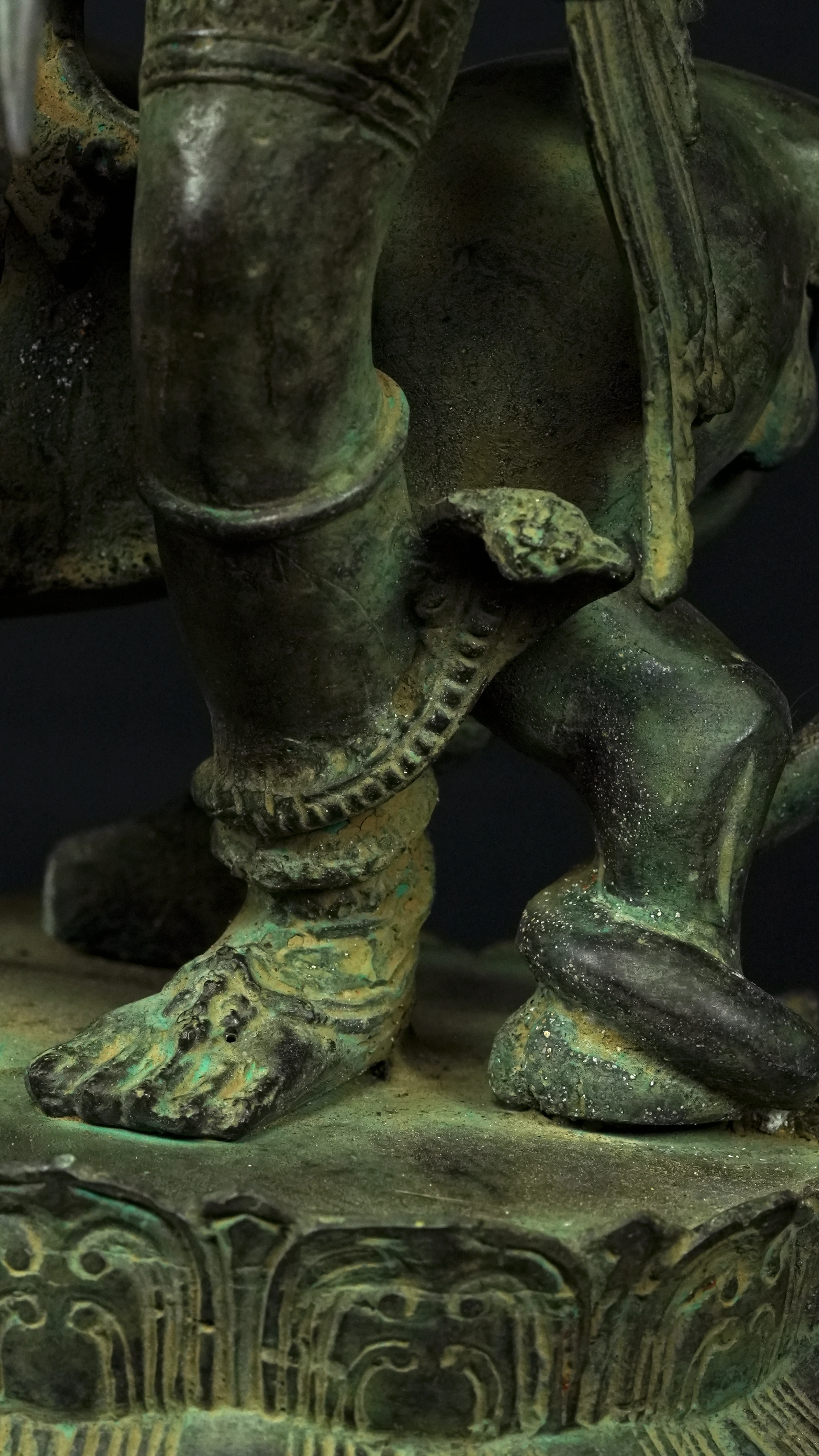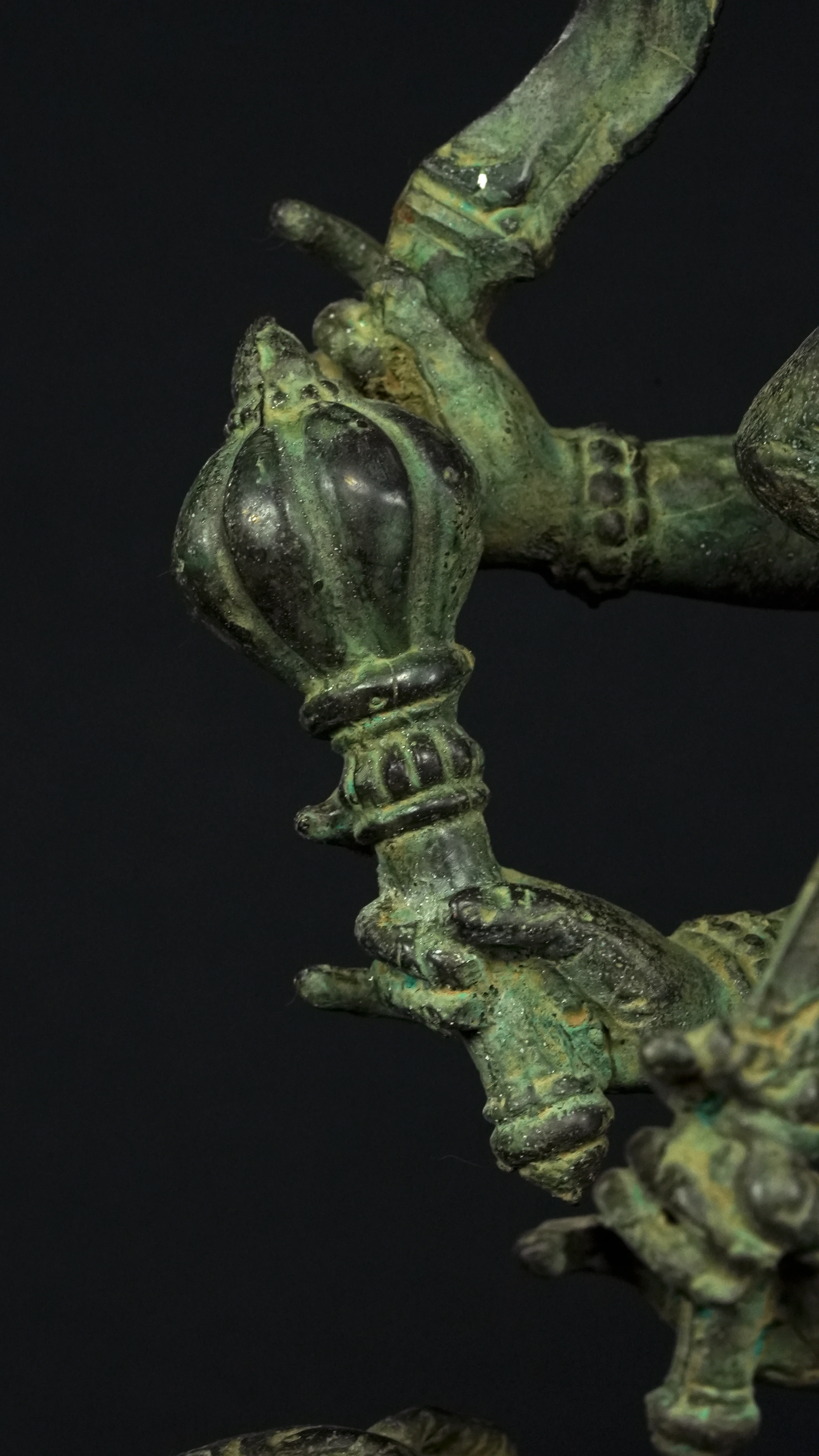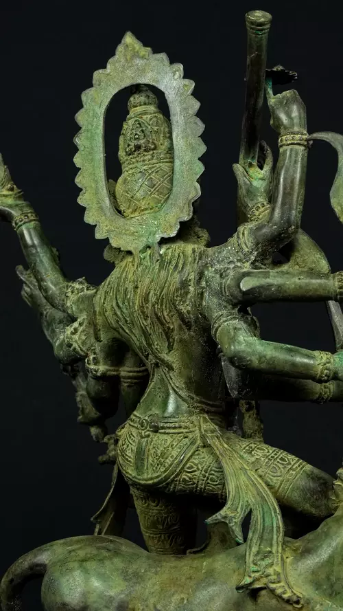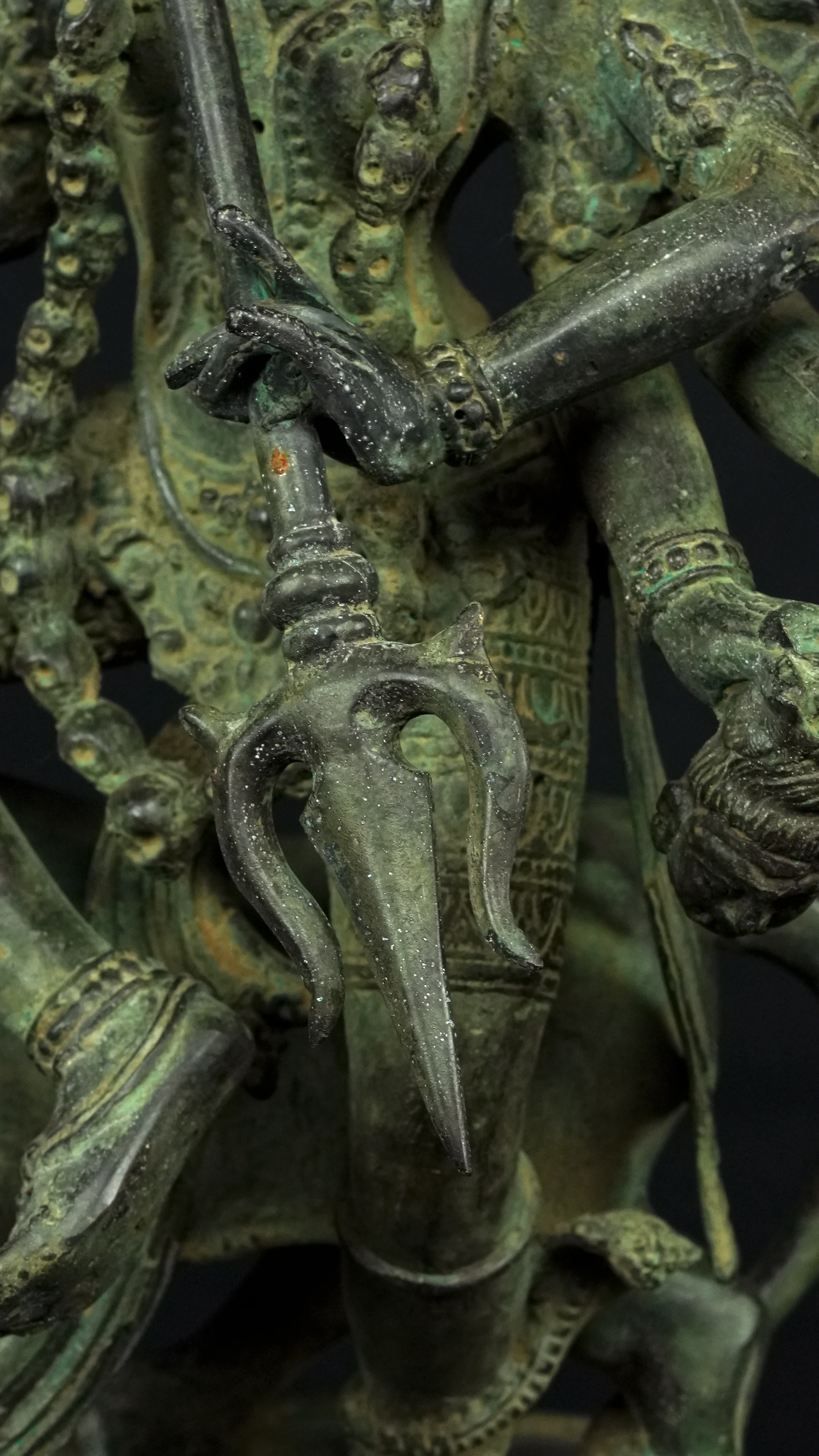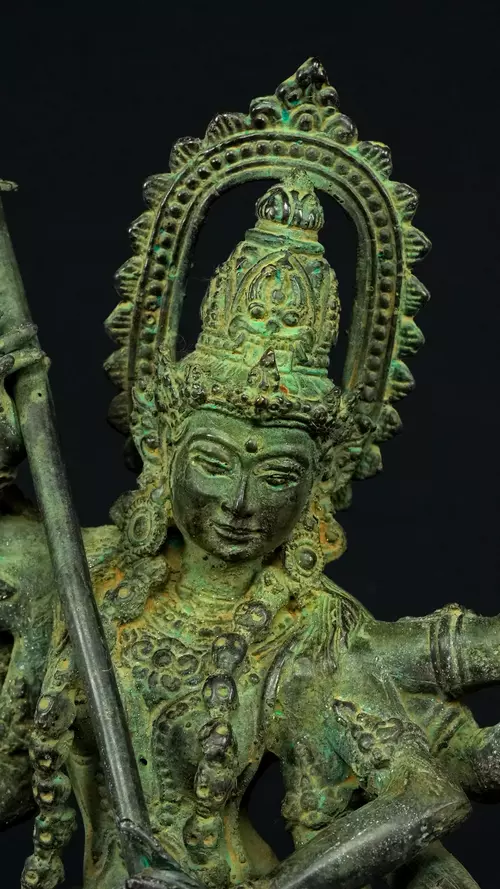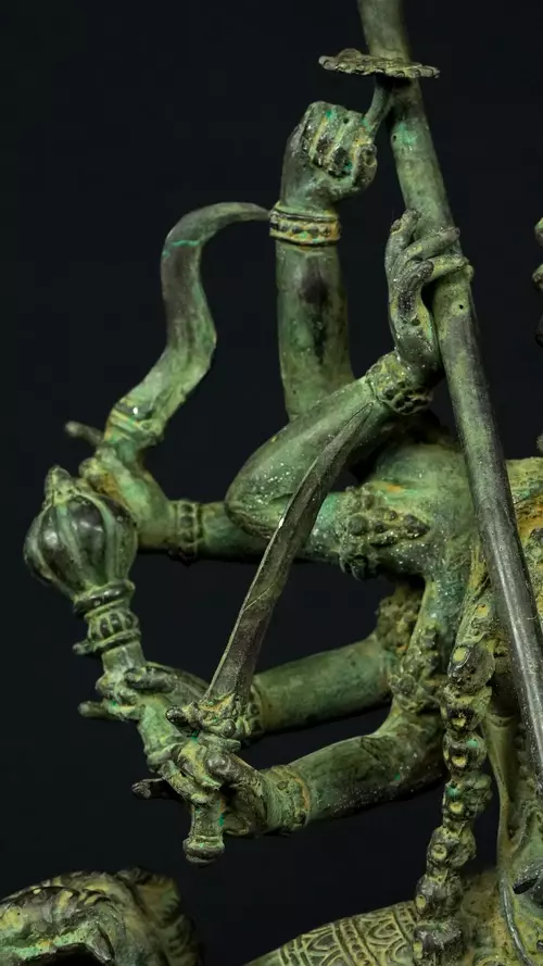 - 1x Statue avatarisée de Durga : 4.7 kg, 47 cm de hauteur, 29 cm de diamètre. Méthode de la cire perdue en Laiton réalisé à Java, Indonésie.