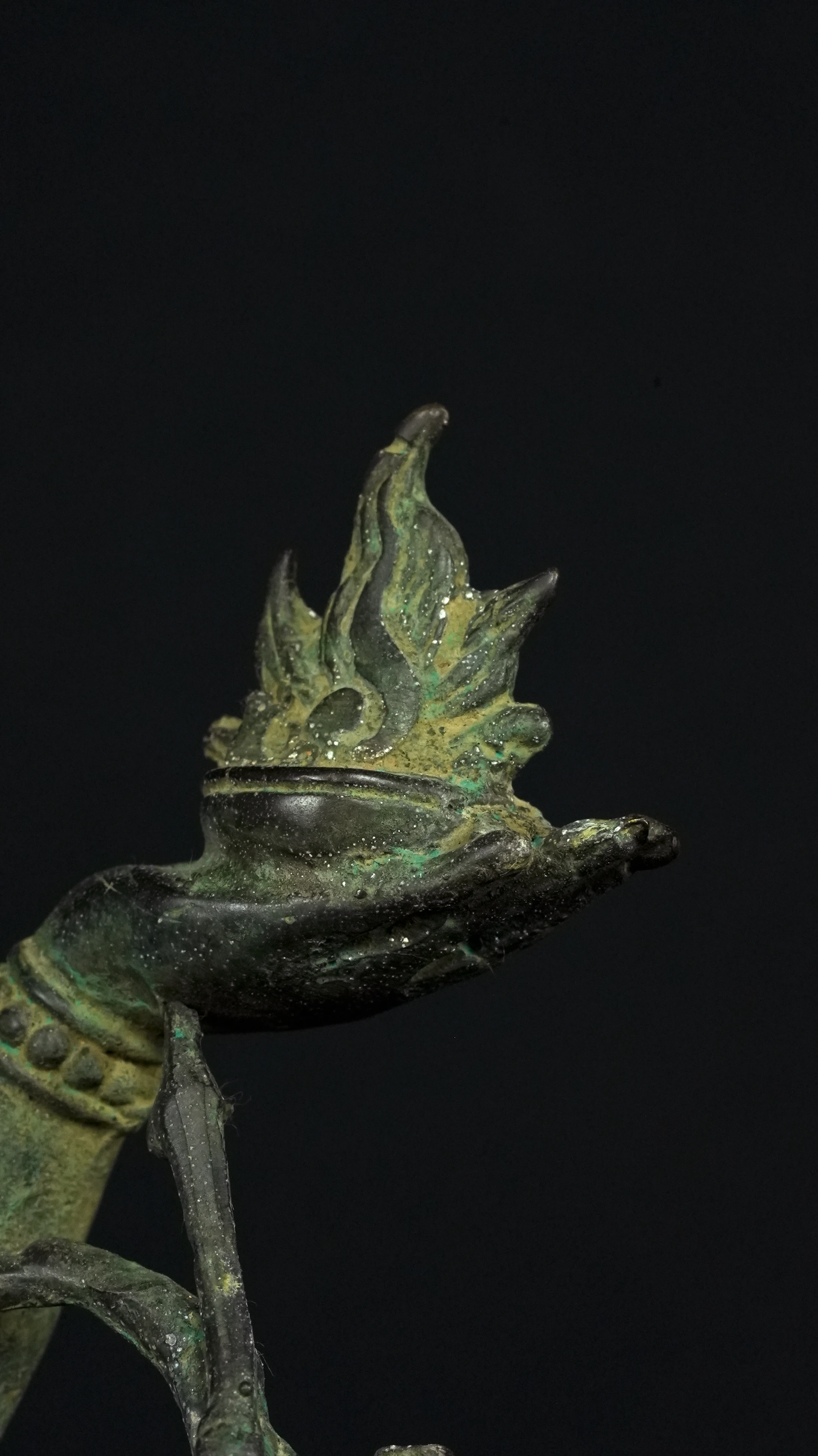 Réalisée à Java selon la méthode traditionnelle de la cire perdue, cette statue en laiton sacré est une œuvre d’équilibre et de rayonnement. Chaque détail de sa posture et de ses attributs rappelle la sagesse en mouvement : la discipline, la beauté, la force tranquille et la conscience éveillée.