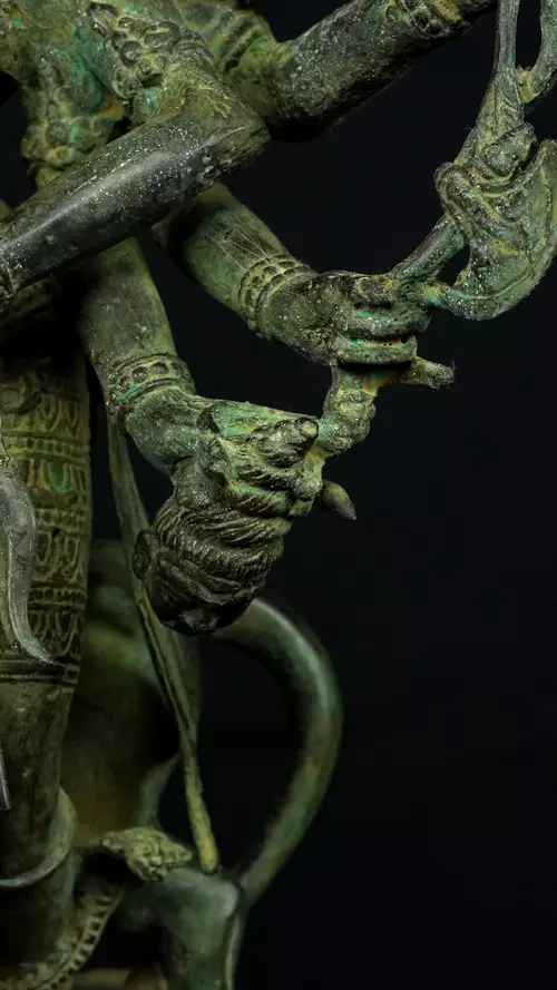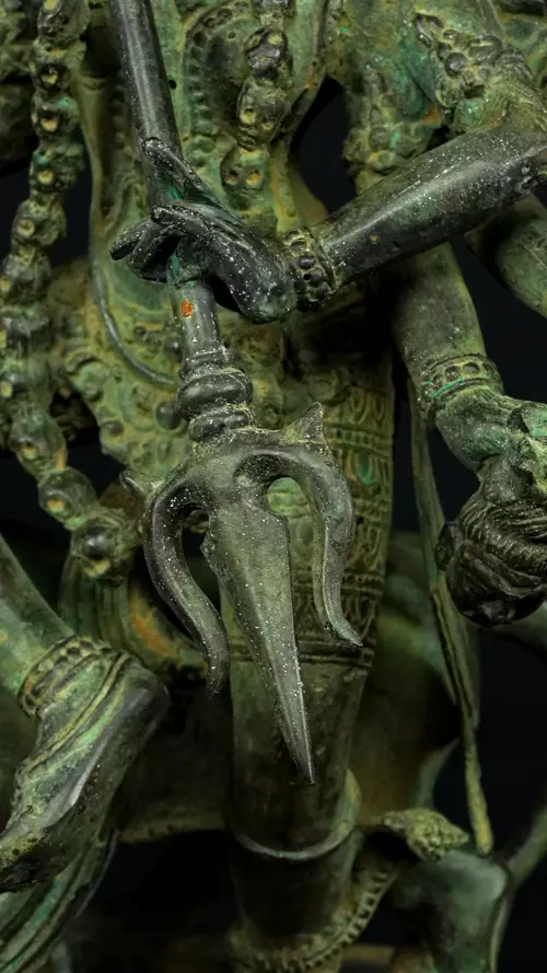 Son nom, « l’Invincible », renvoie à la maîtrise parfaite : celle qui transcende toute dualité et rayonne la paix au cœur du mouvement. Entourée de ses dix bras, elle manifeste la présence active de la conscience spirituelle à travers toutes les dimensions de la vie.
