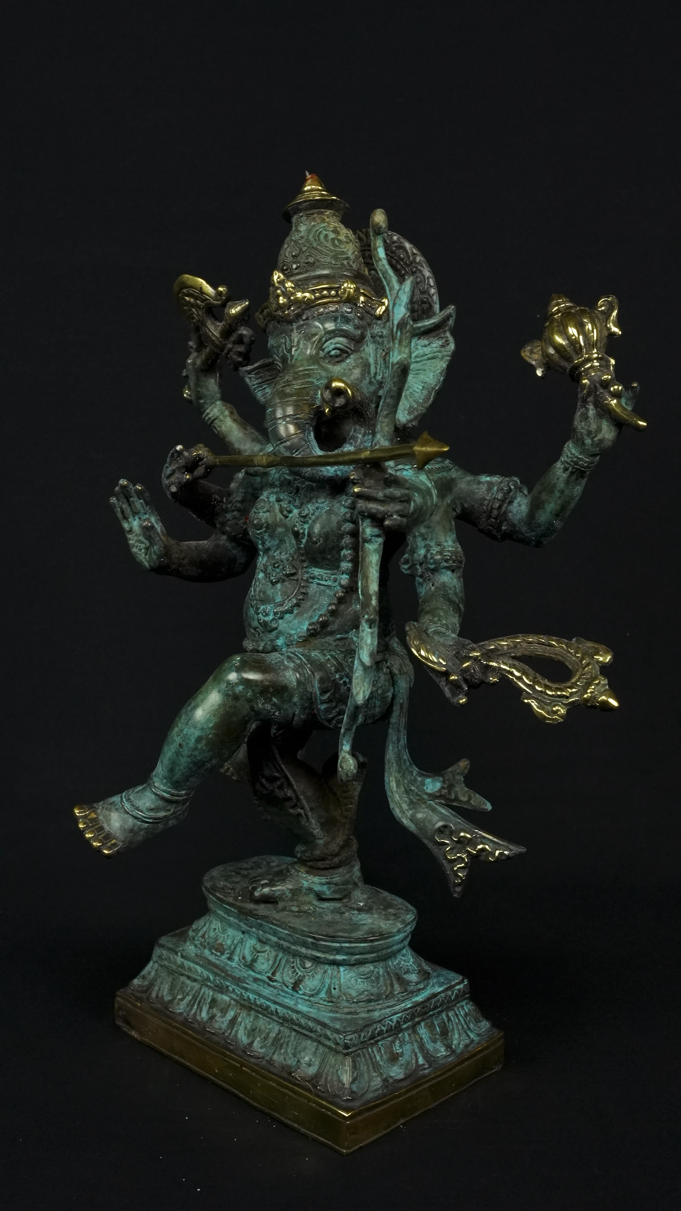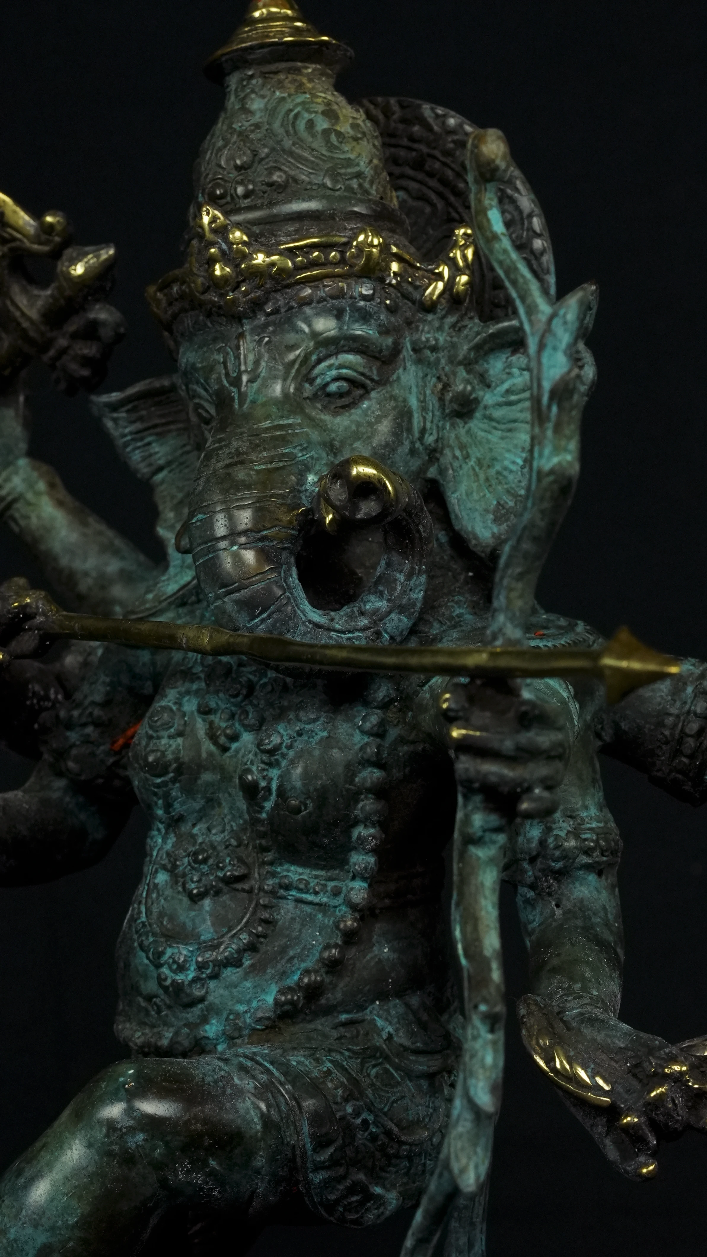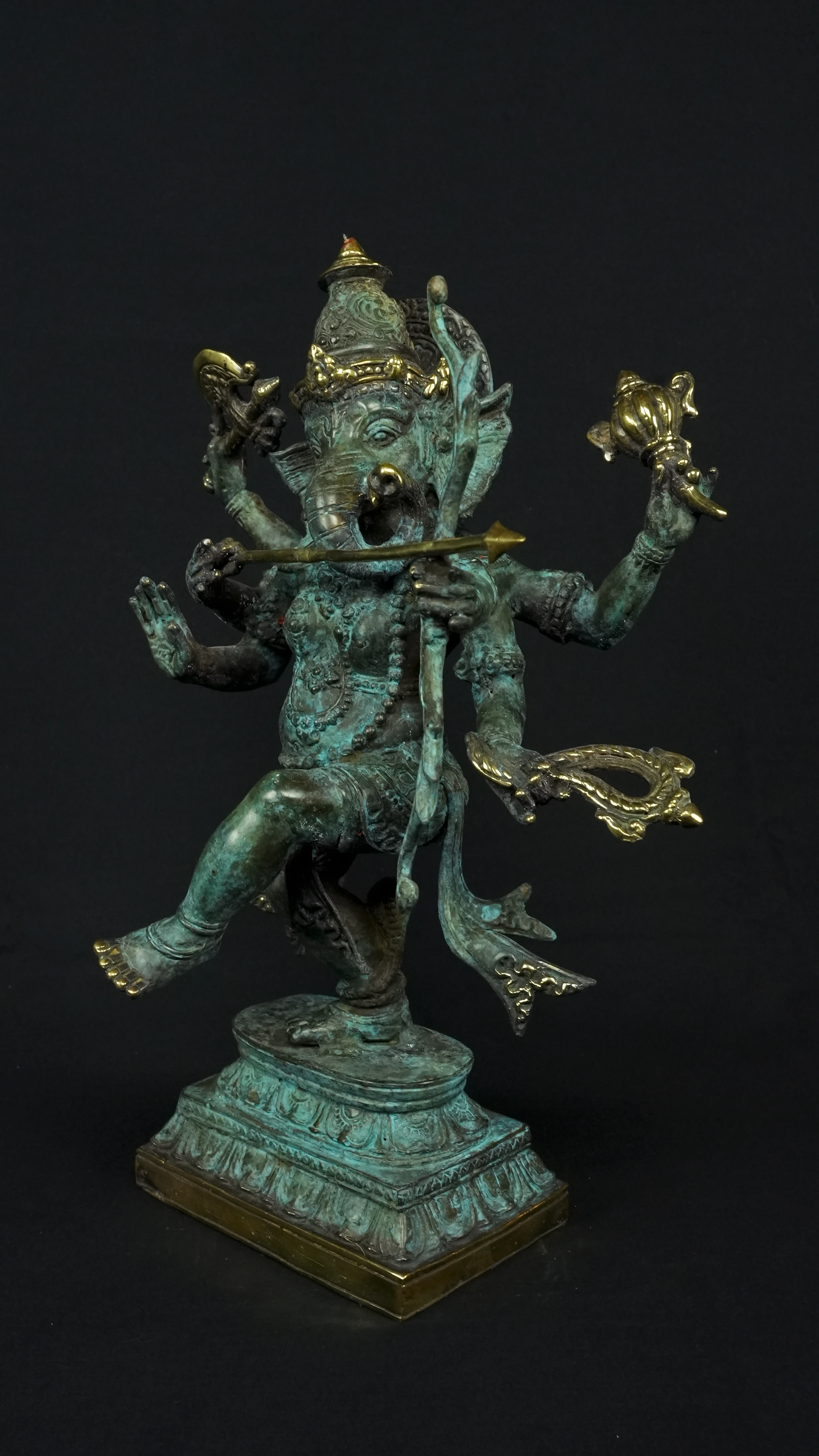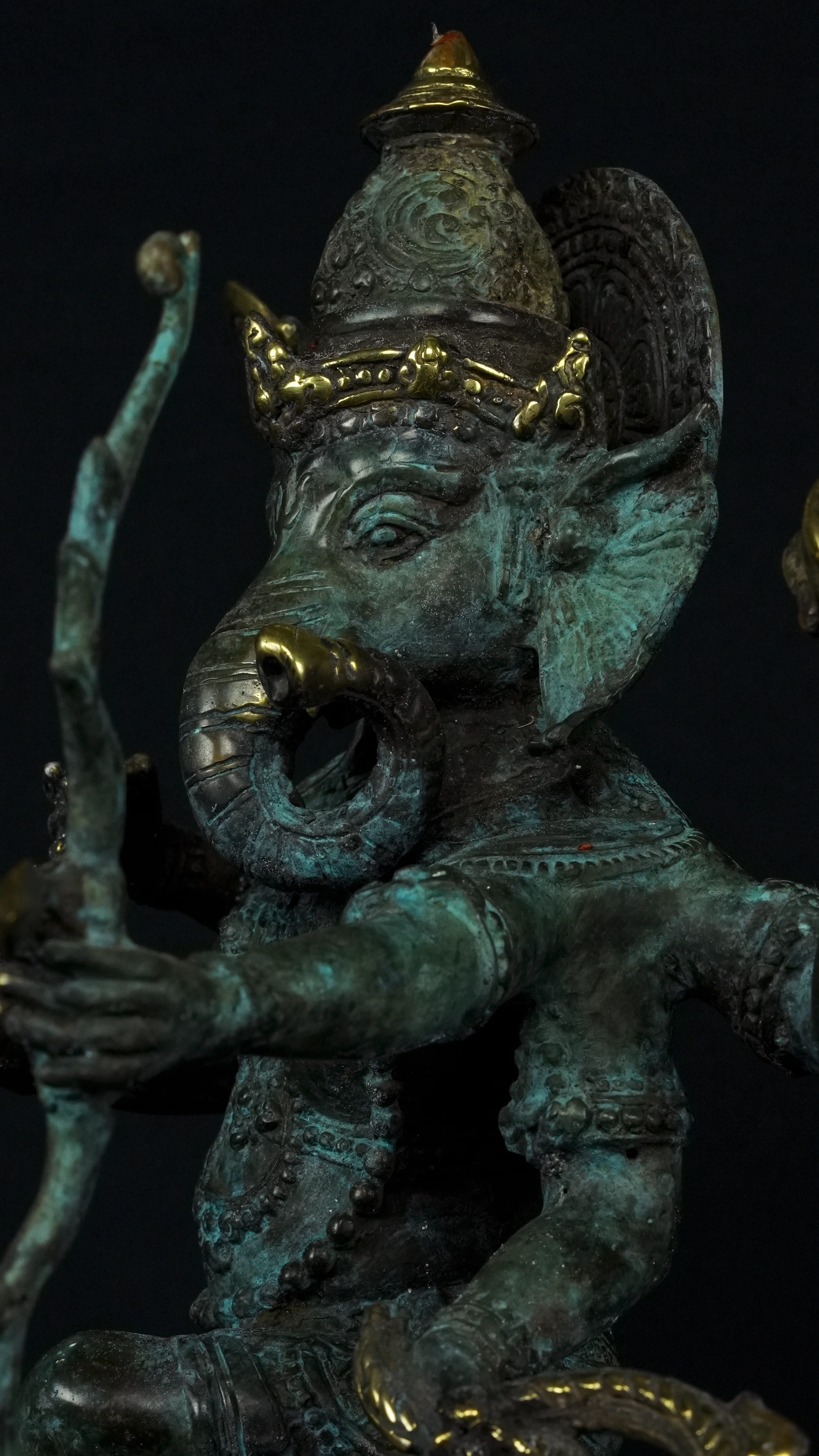- 1x Statue avatarisée de Ganesh : 3 kg, 39 cm de hauteur, 29 cm de diamètre. Méthode de la cire perdue en Laiton réalisé à Java, Indonésie.