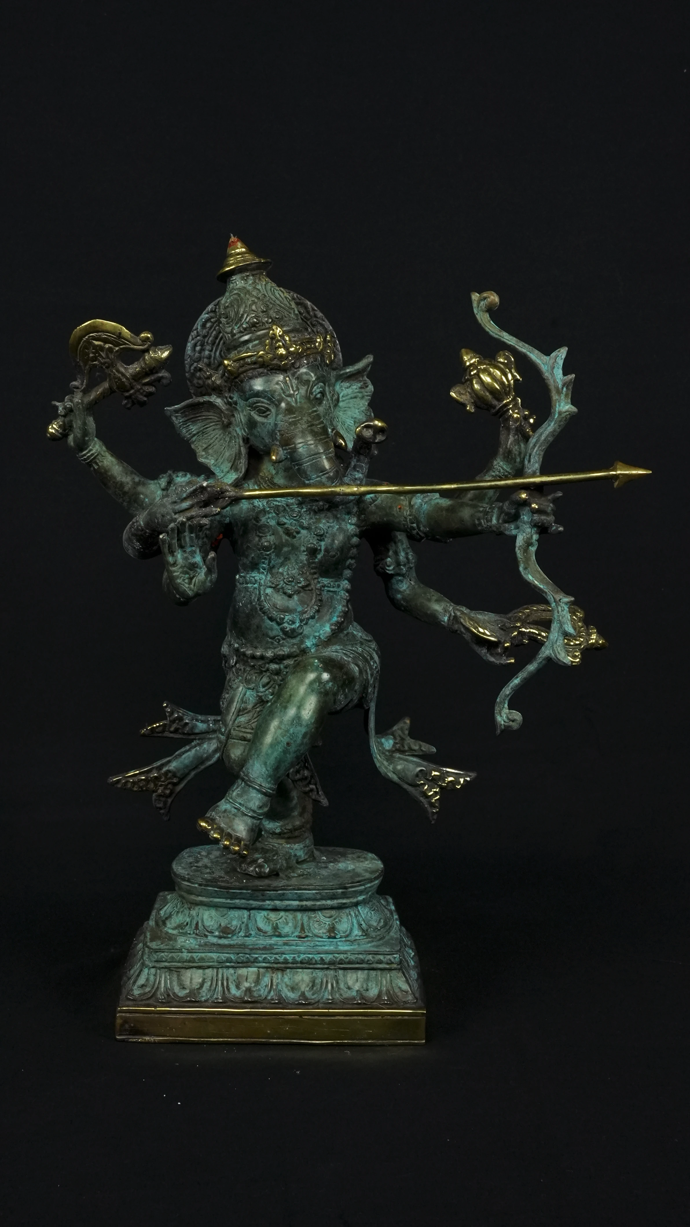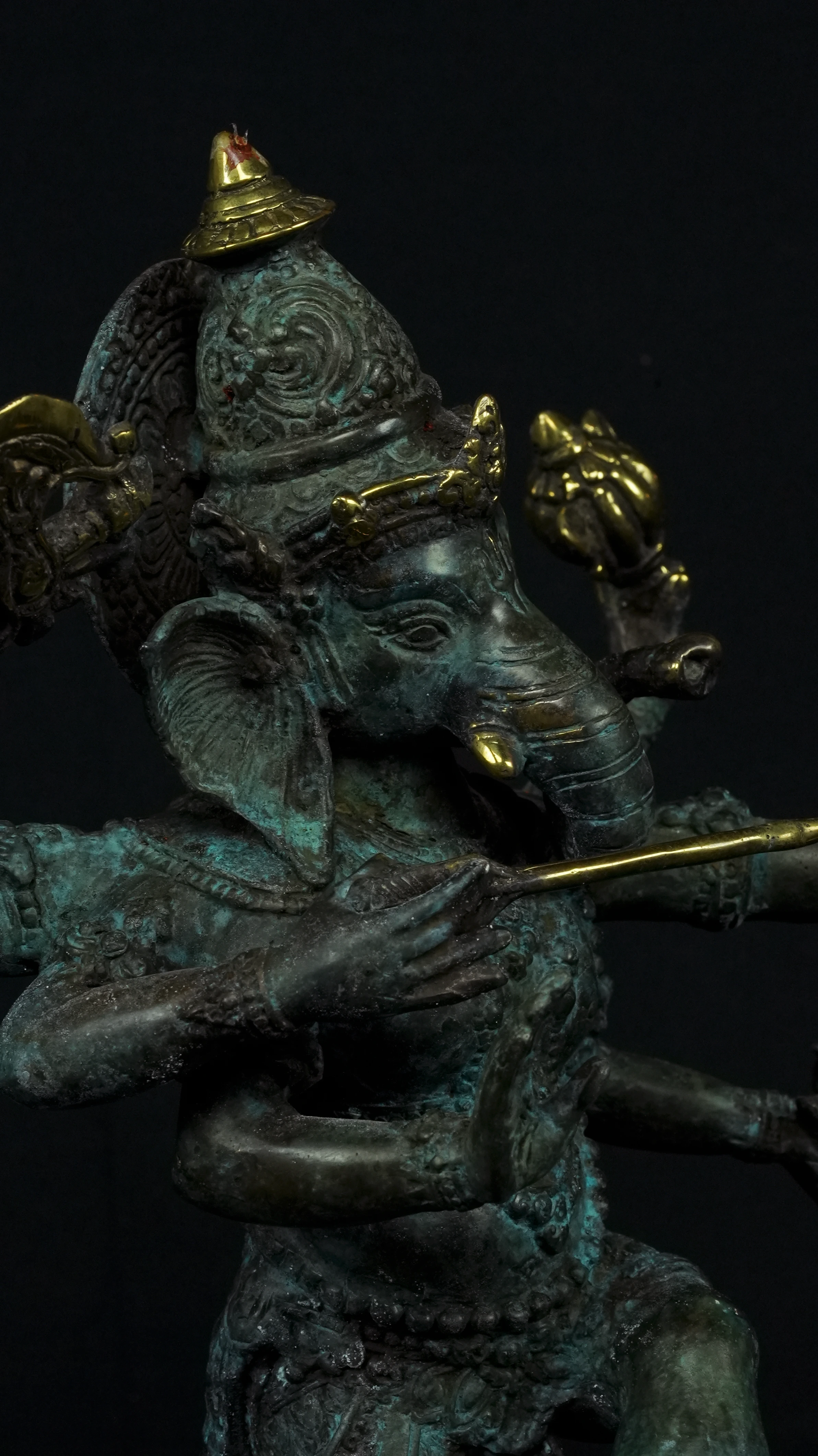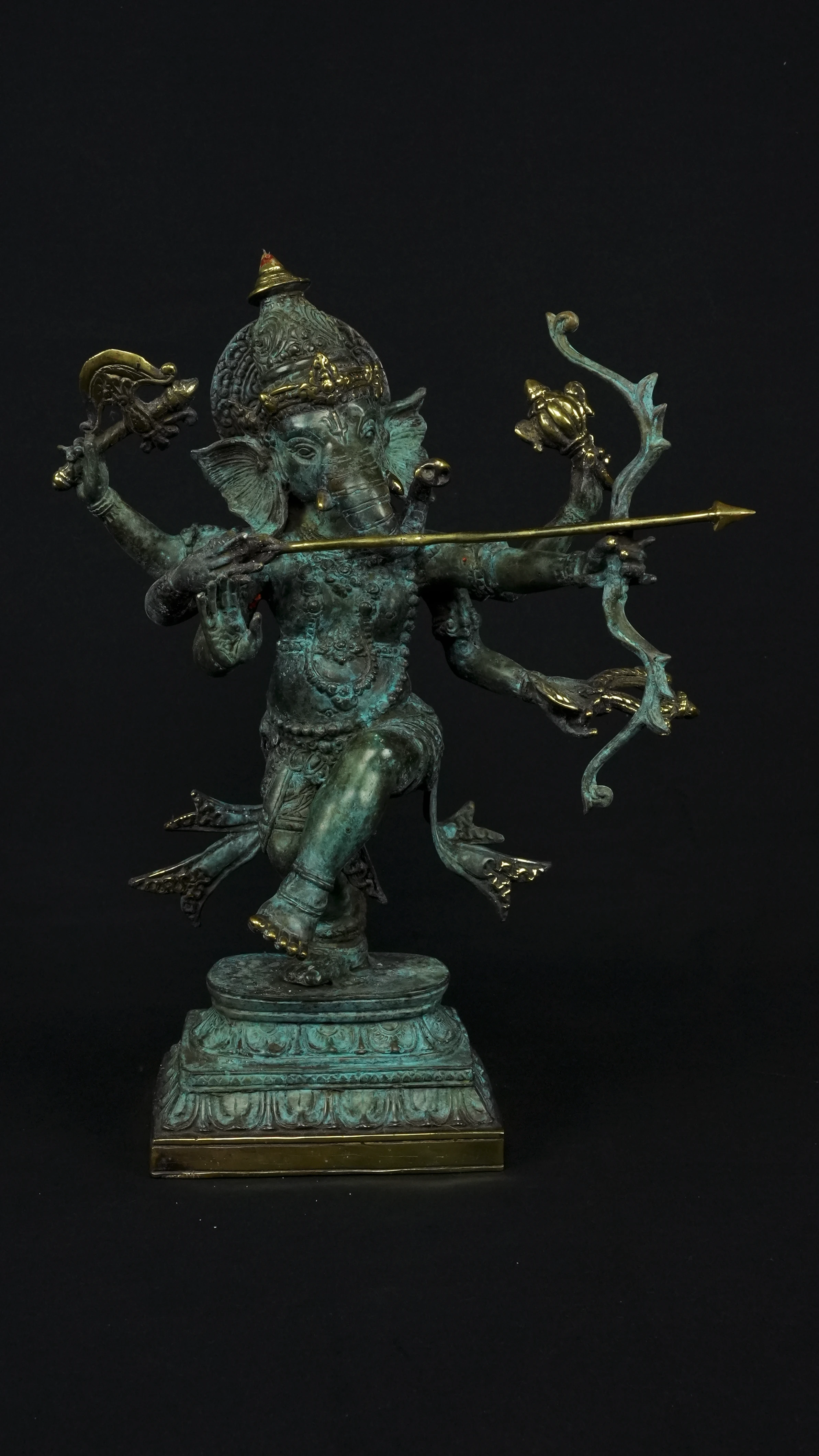 - 1x Statue avatarisée de Ganesh : 3 kg, 39 cm de hauteur, 29 cm de diamètre. Méthode de la cire perdue en Laiton réalisé à Java, Indonésie.