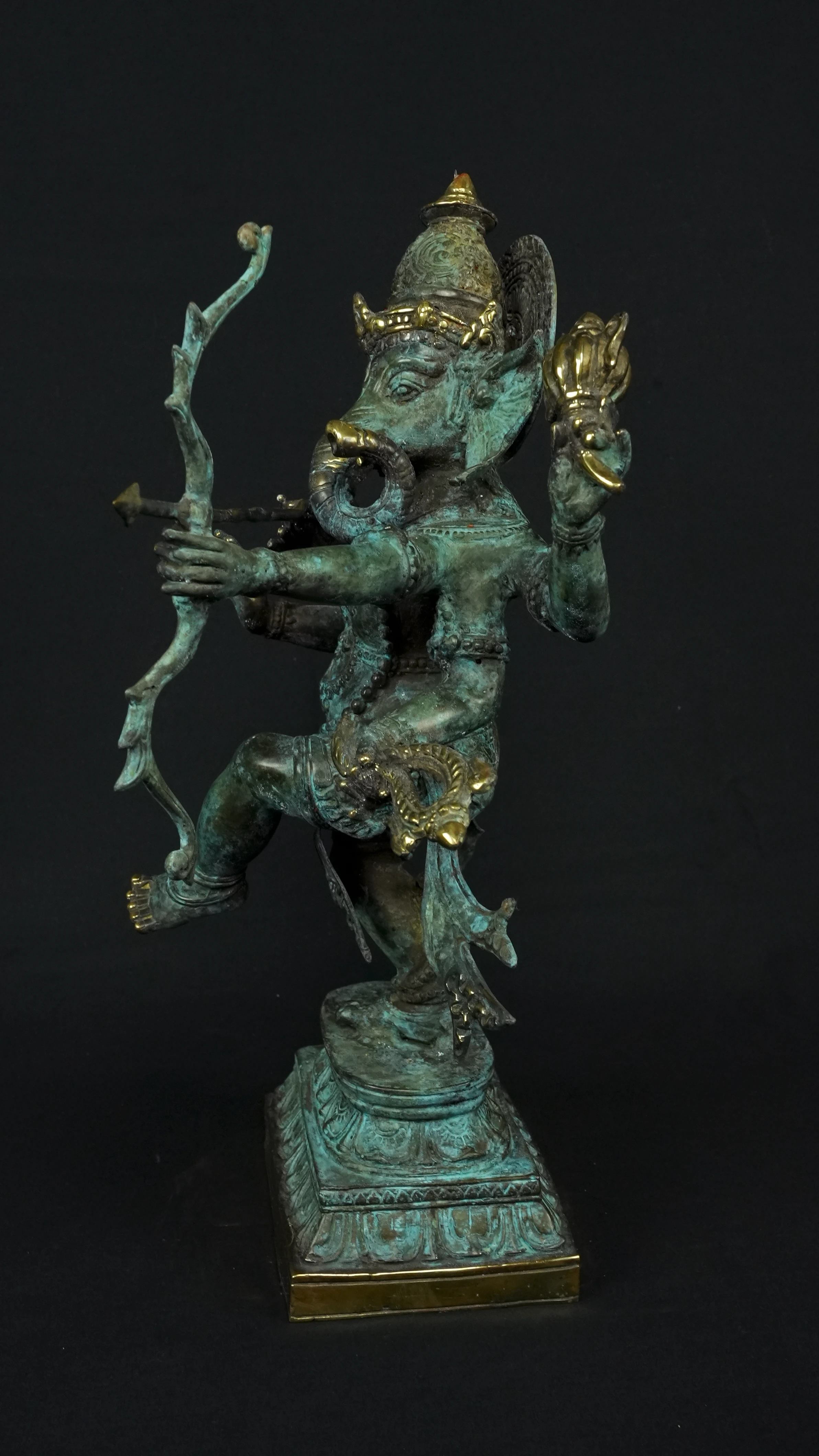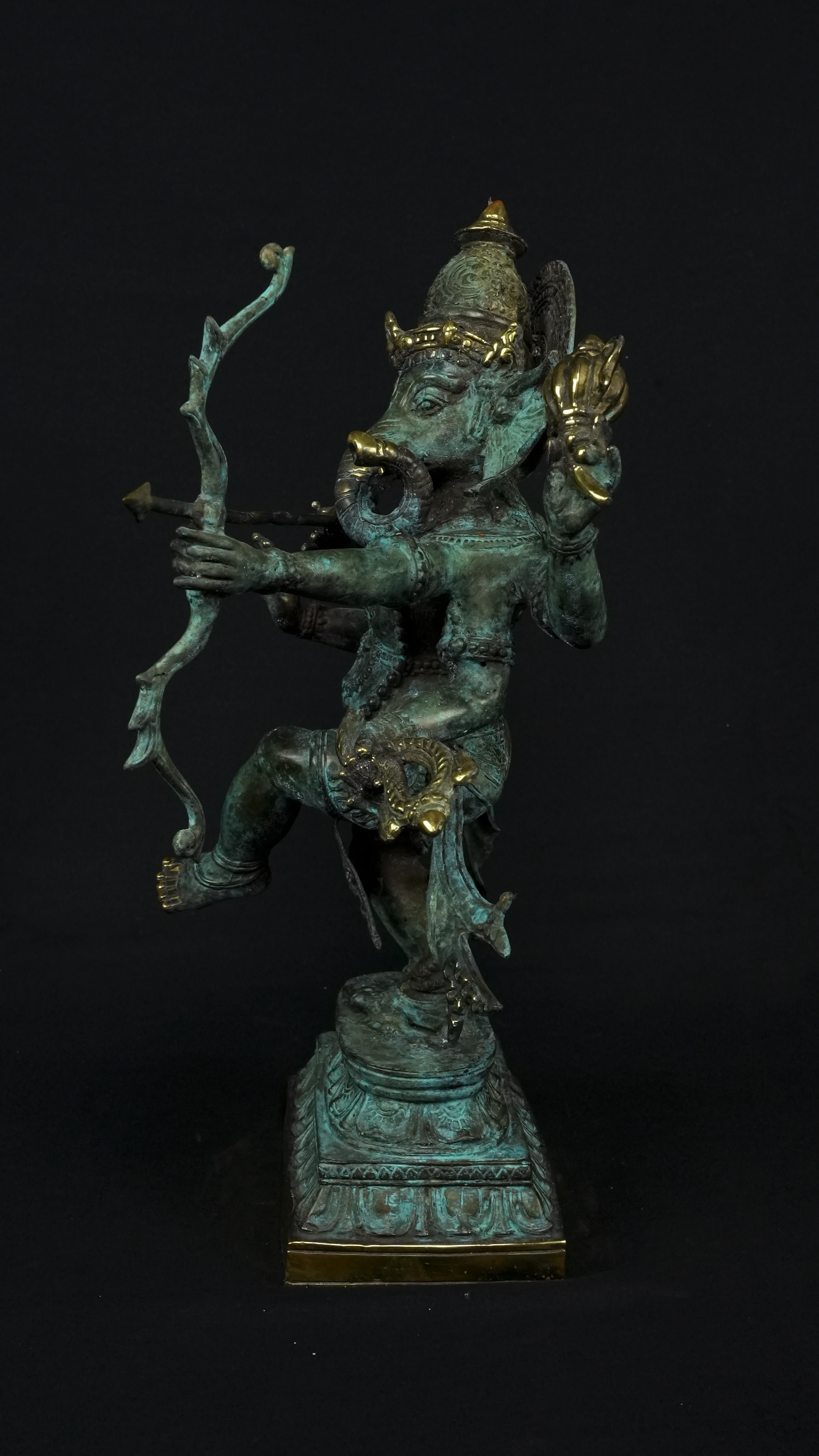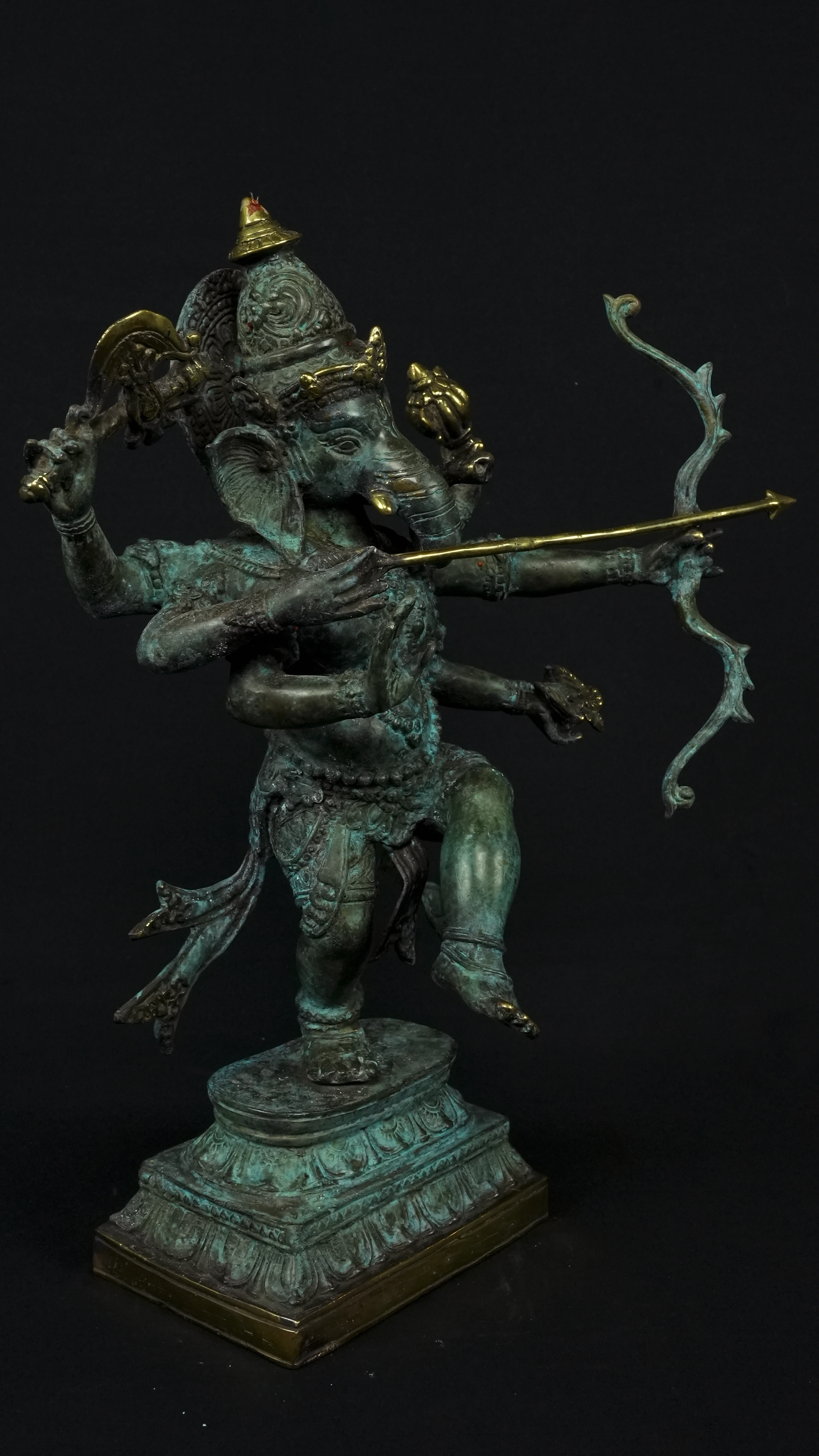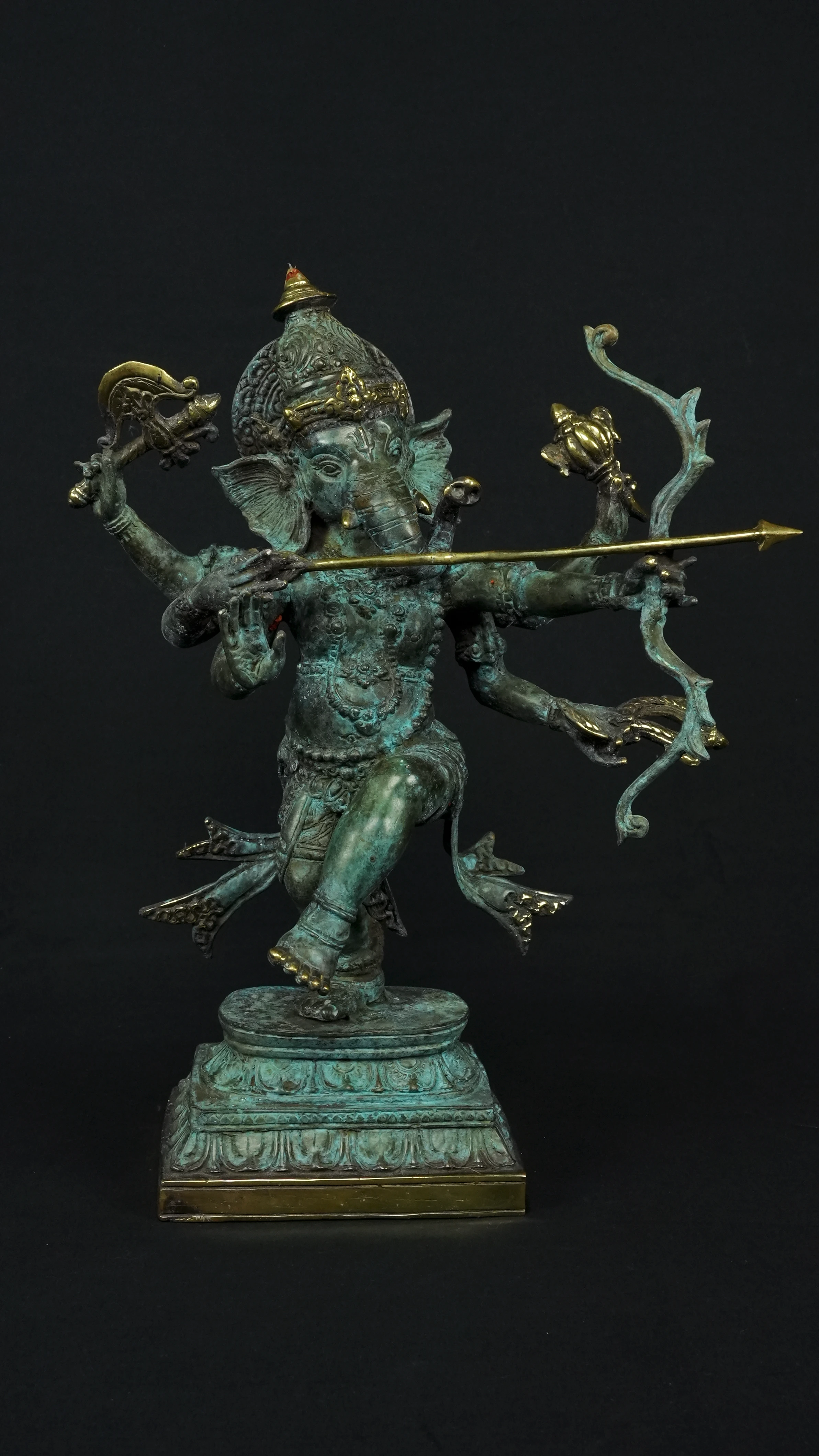 - 1x Statue avatarisée de Ganesh : 3 kg, 39 cm de hauteur, 29 cm de diamètre. Méthode de la cire perdue en Laiton réalisé à Java, Indonésie.