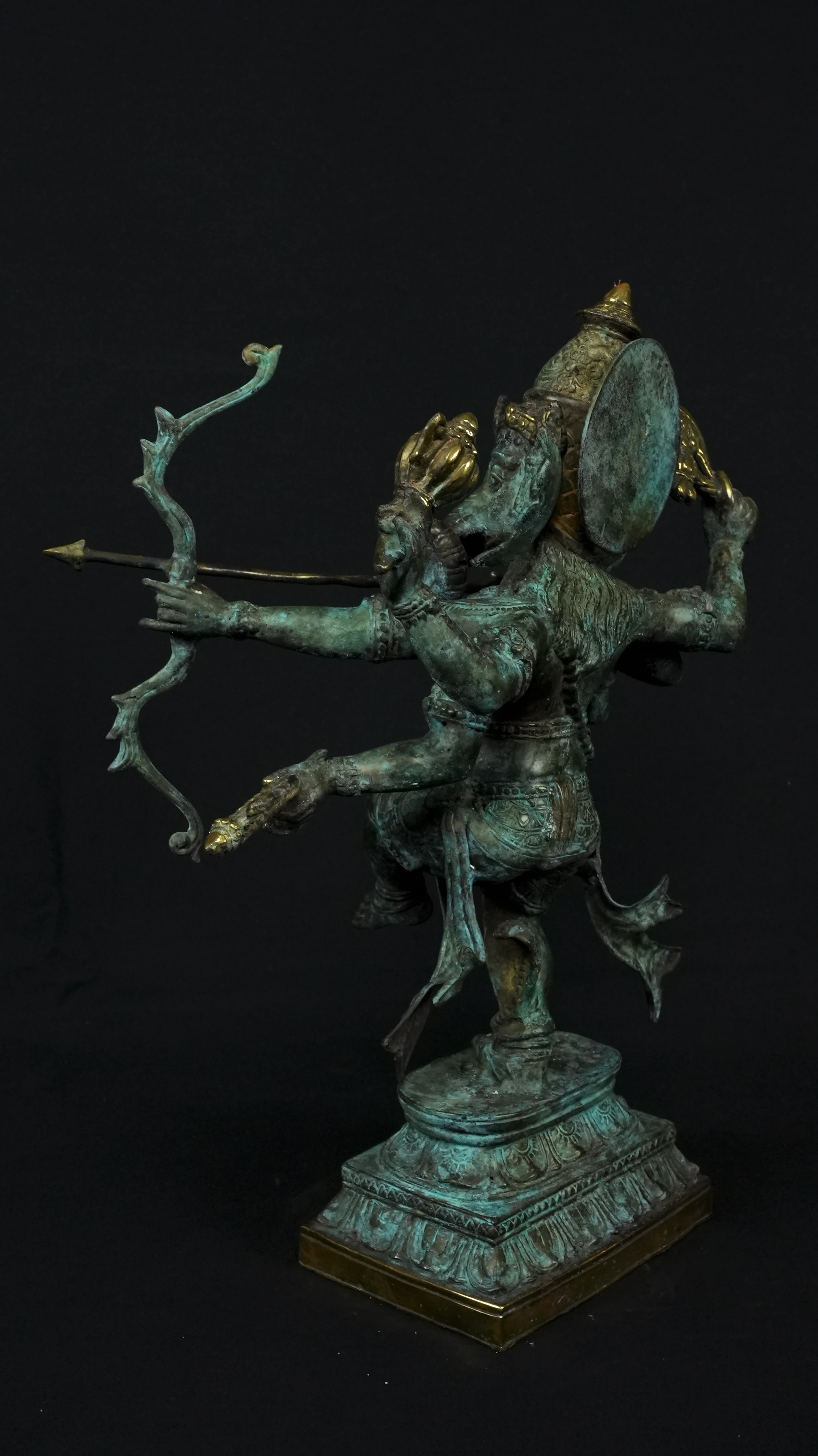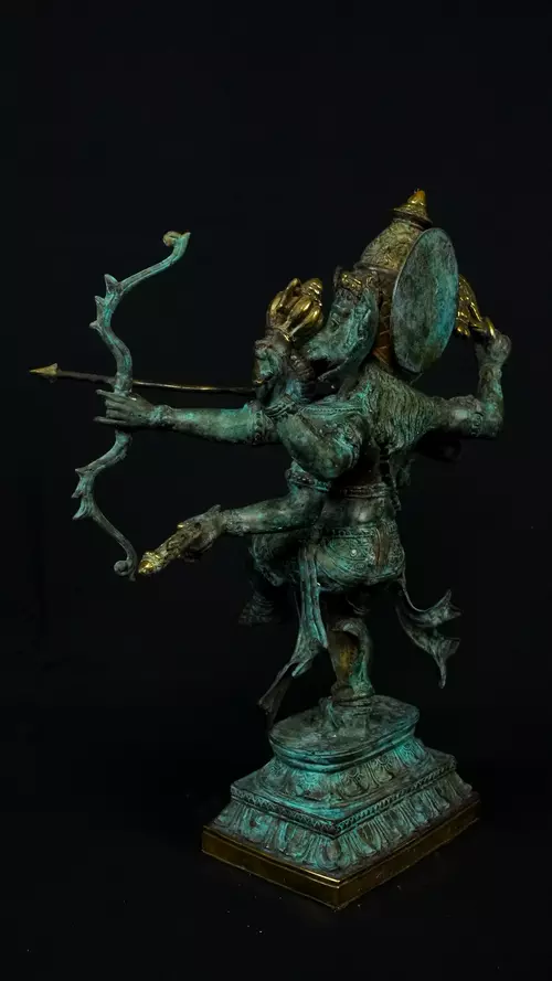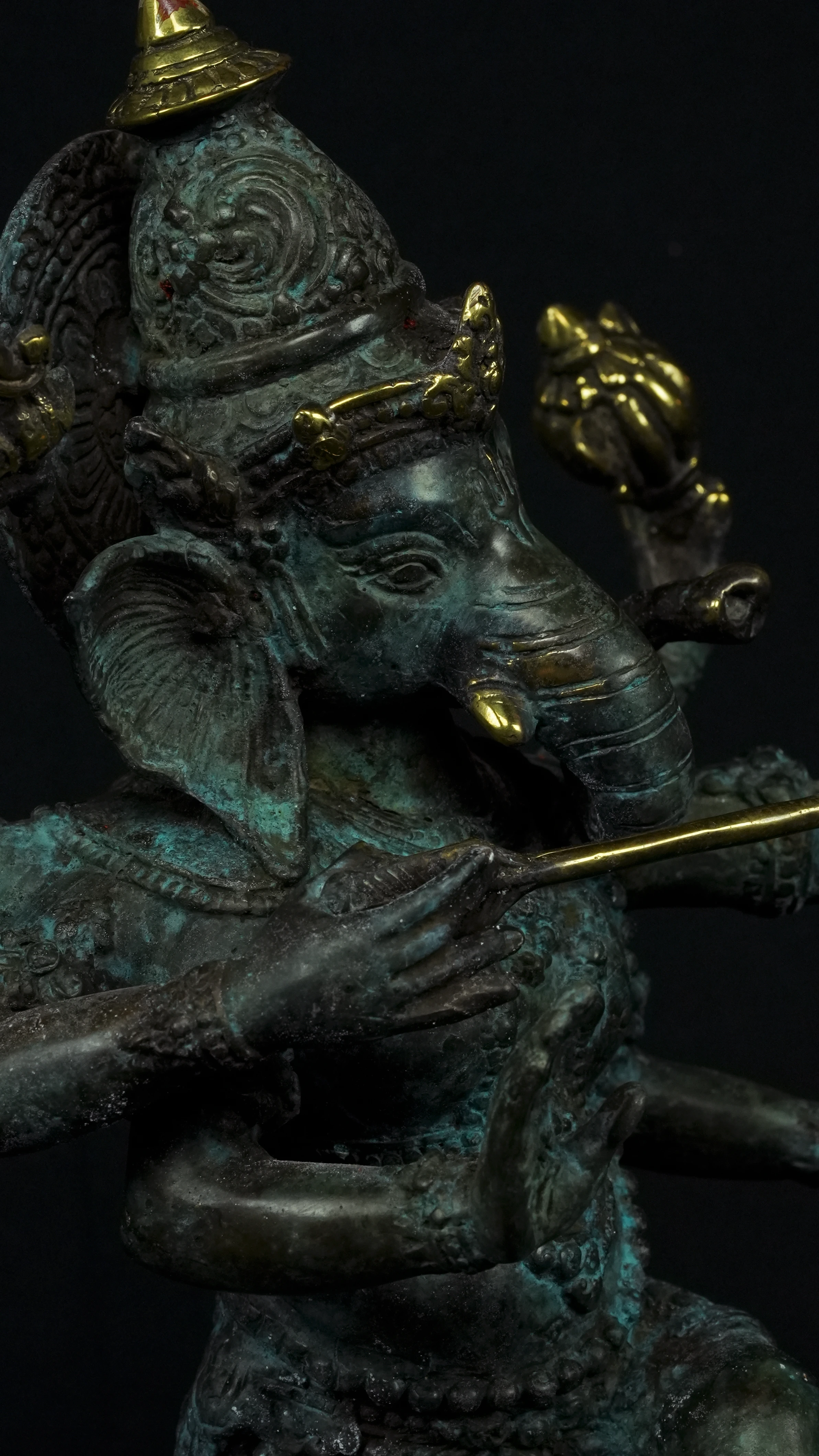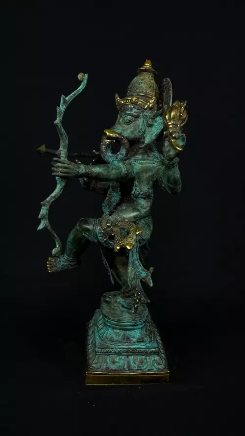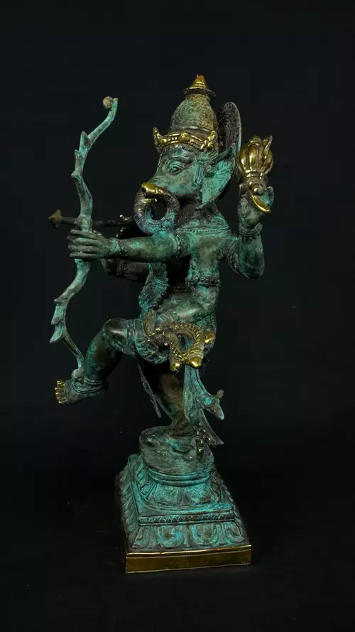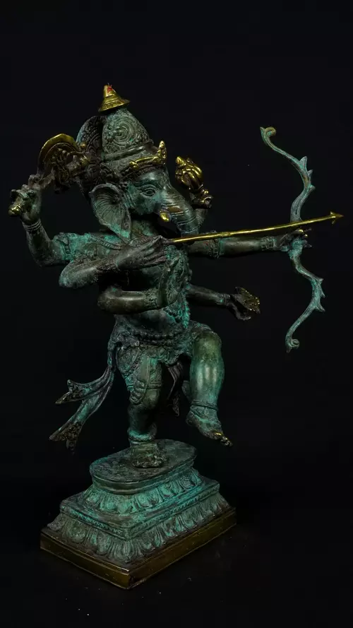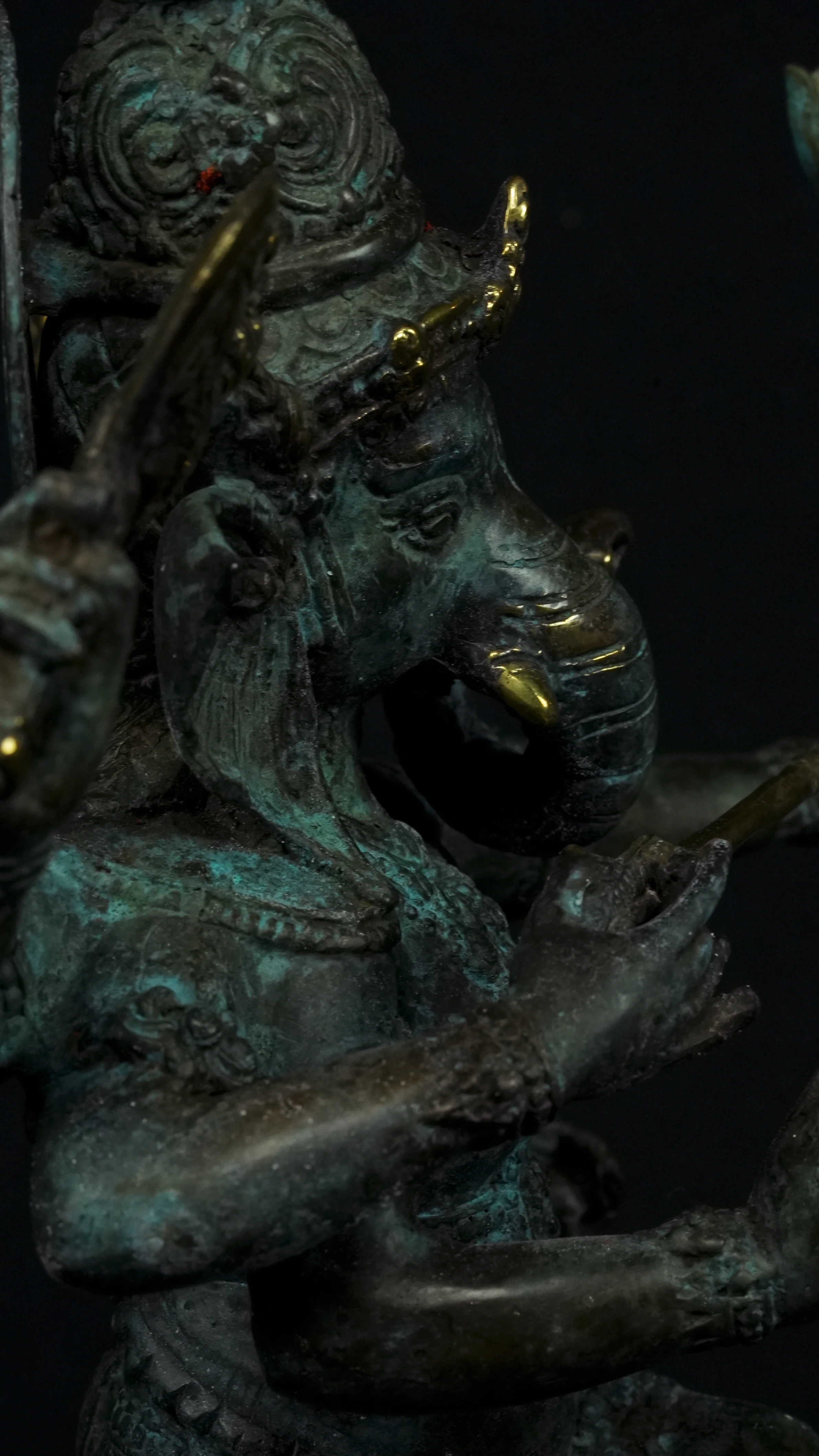 Ganesh incarne le courage et la détermination. Il affronte les entités malveillantes et repousse les ténèbres sur tous les plans d'existence. Ses actions héroïques garantissent la sécurité et la prospérité, que ce soit sur Terre ou dans les dimensions invisibles.
