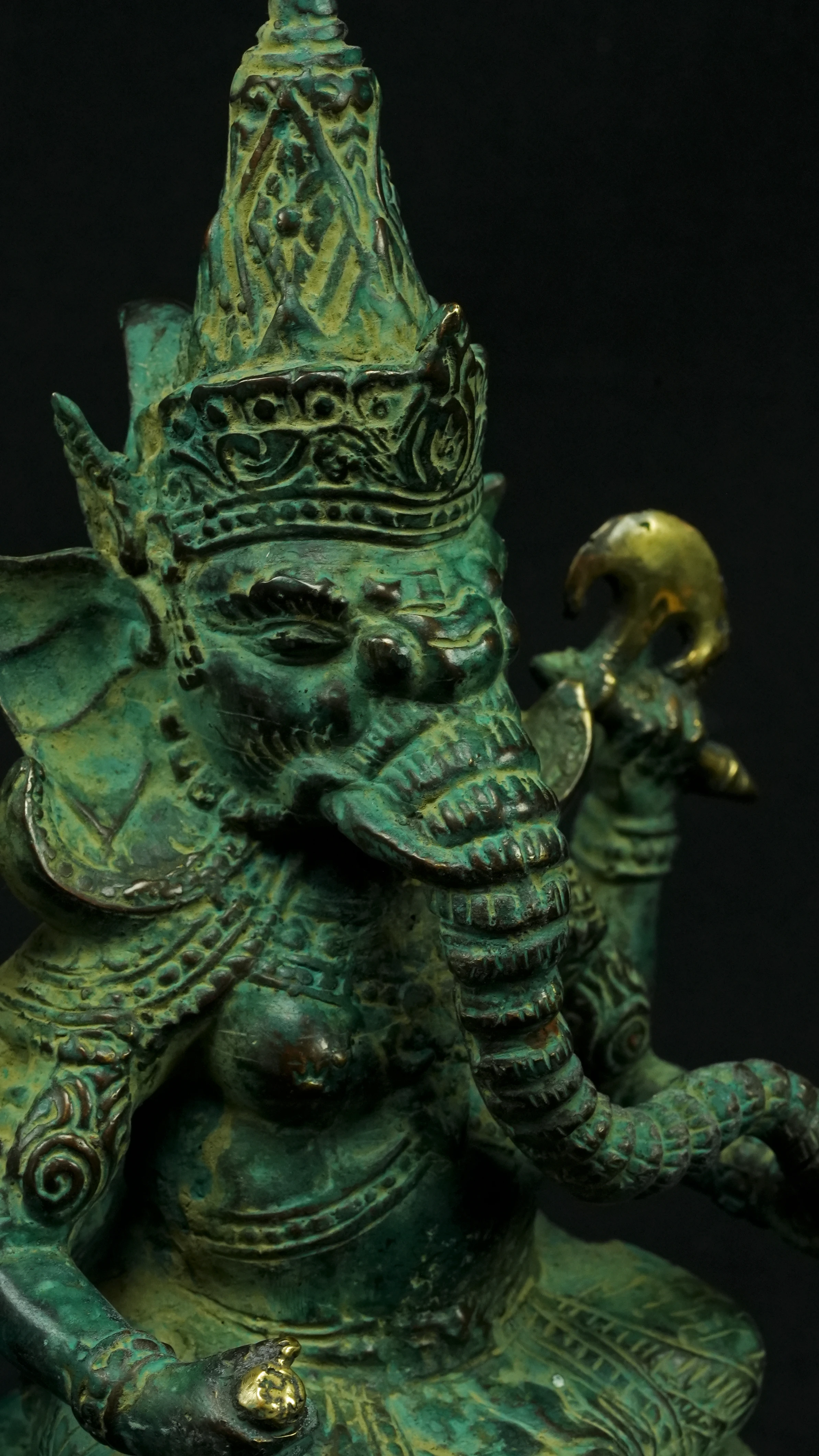 Découvrez Ganesh dans sa facette puissante de guerrier spirituel, porteur de justice divine et de lumière. Bien plus qu’un dieu de sagesse et de prospérité, il est un protecteur cosmique, se dressant contre les forces obscures pour rétablir l'équilibre universel.