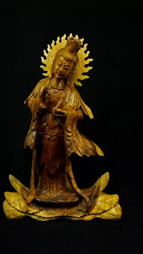 - Cette statue représente Guanyin ou Lakshmi selon les traditions et peut être avatarisée pour de nombreuses Présences à polarité féminine.
