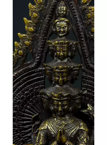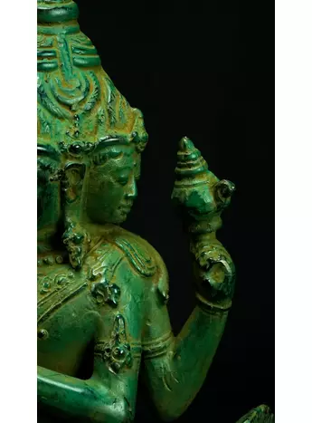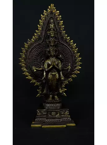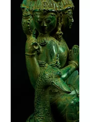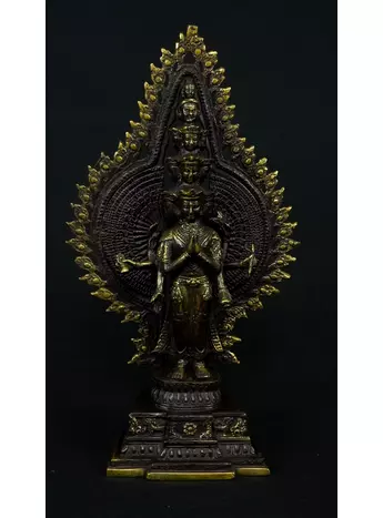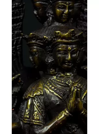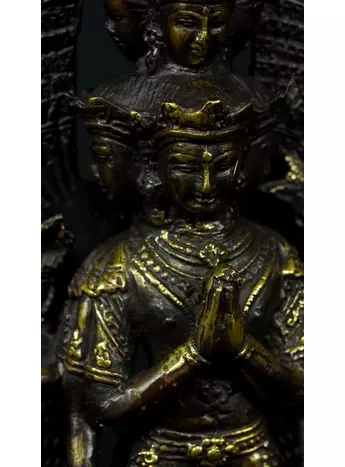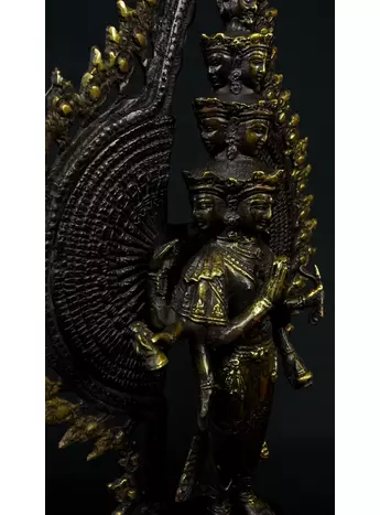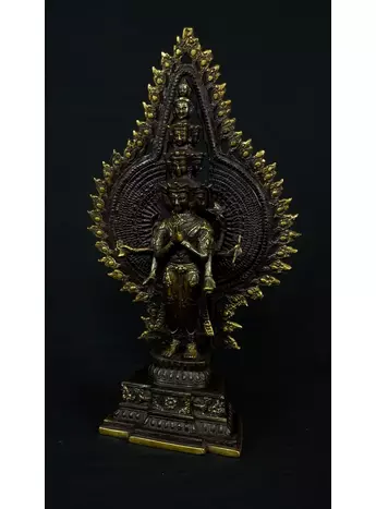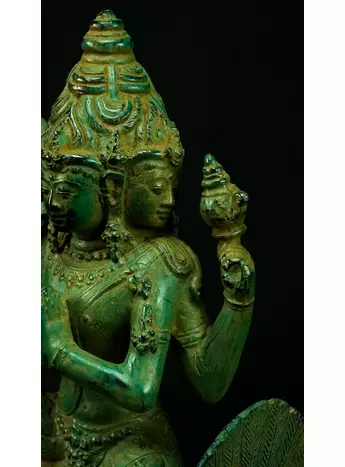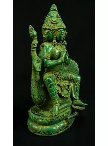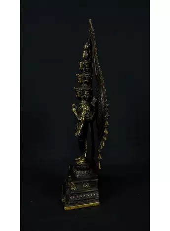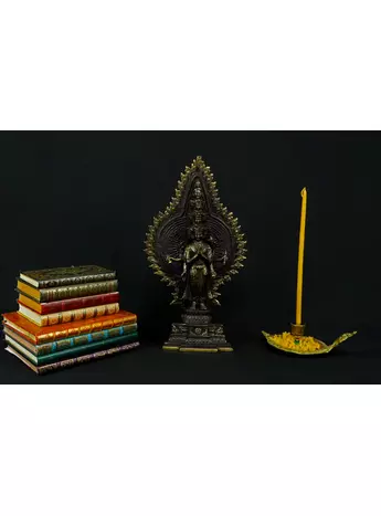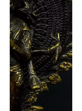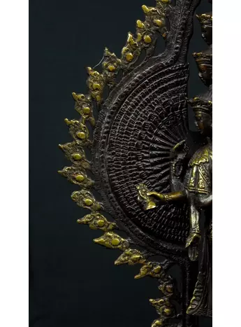 Cette statue de Shiva debout en laiton sacré représente la force purificatrice et régénératrice de cette divinité. Shiva, connue pour sa capacité à détruire les illusions et à révéler la vérité, est ici incarnée dans une posture puissante. Cette statue émet des énergies équilibrantes et protectrices, créant un environnement purifié et harmonieux. En tant que gardienne des mystères, Shiva aide à traverser les obstacles spirituels et à élever la conscience. Cette uvre d'art est un ancrage énergétique puissant pour ceux qui cherchent l'éveil et la transformation spirituelle.
