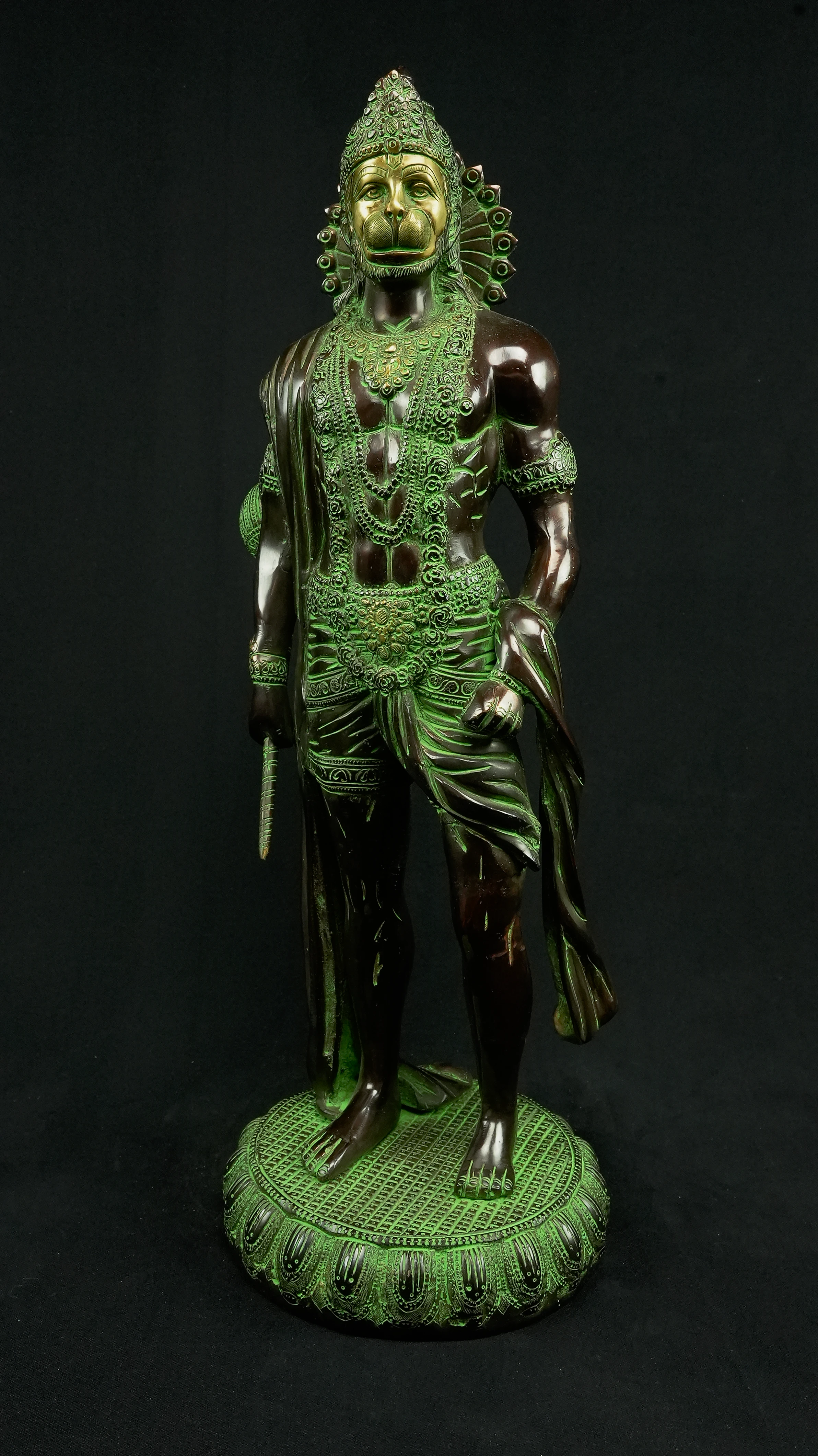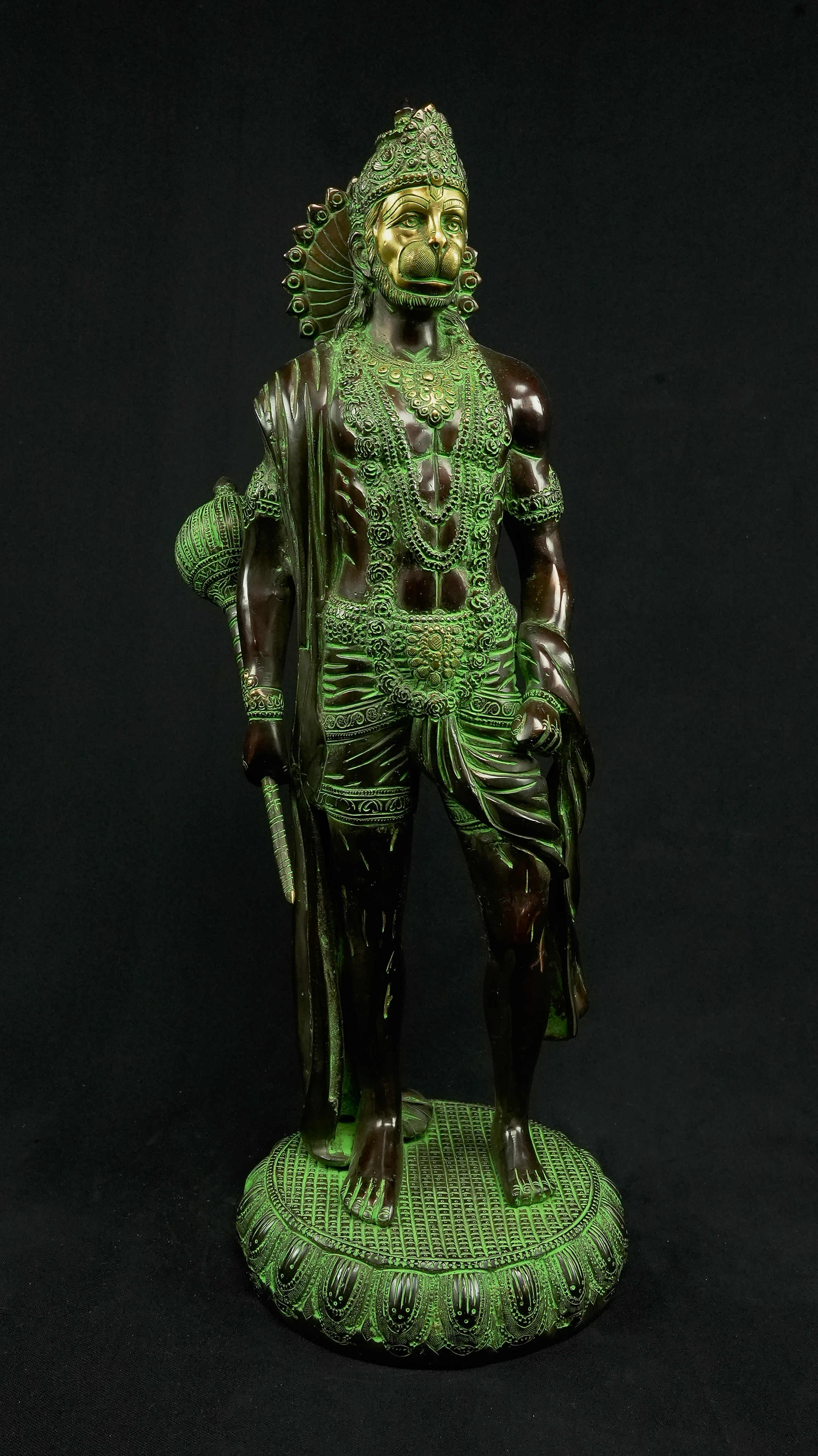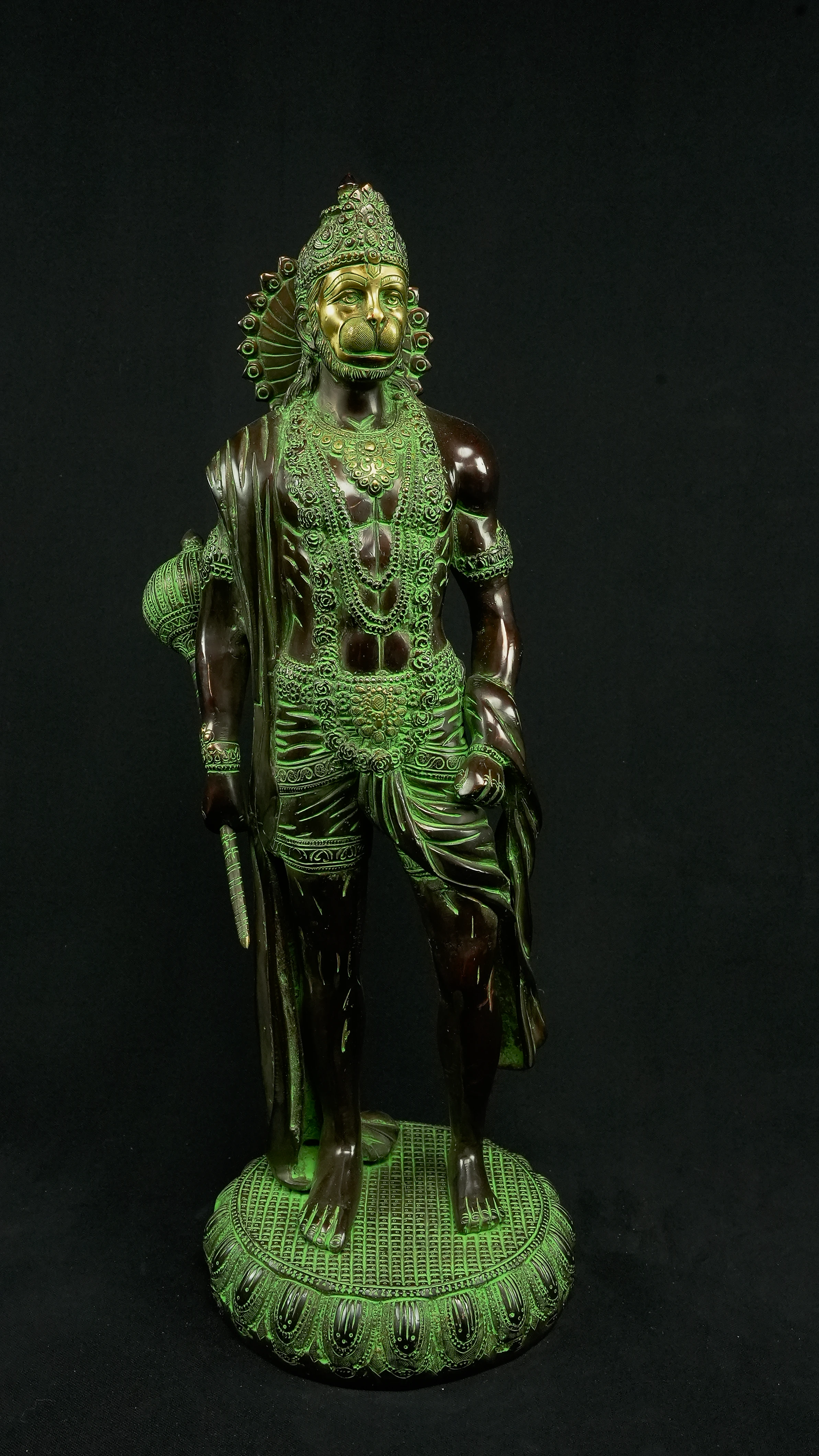 • 1x Statue avatarisée de Hanuman : 12 kg, 58 cm de hauteur, 20 cm de diamètre. Provenant de Delhi, Inde.