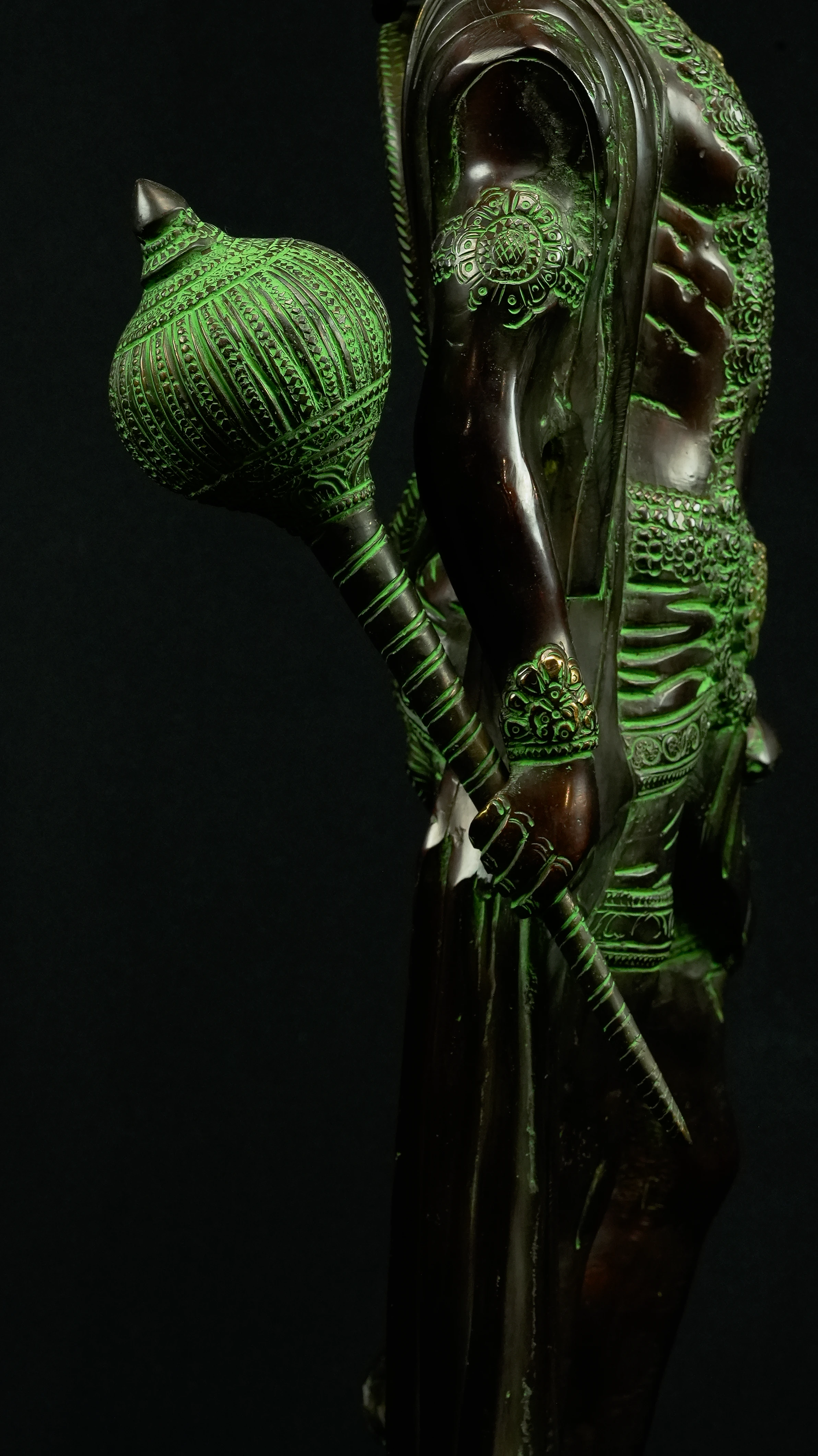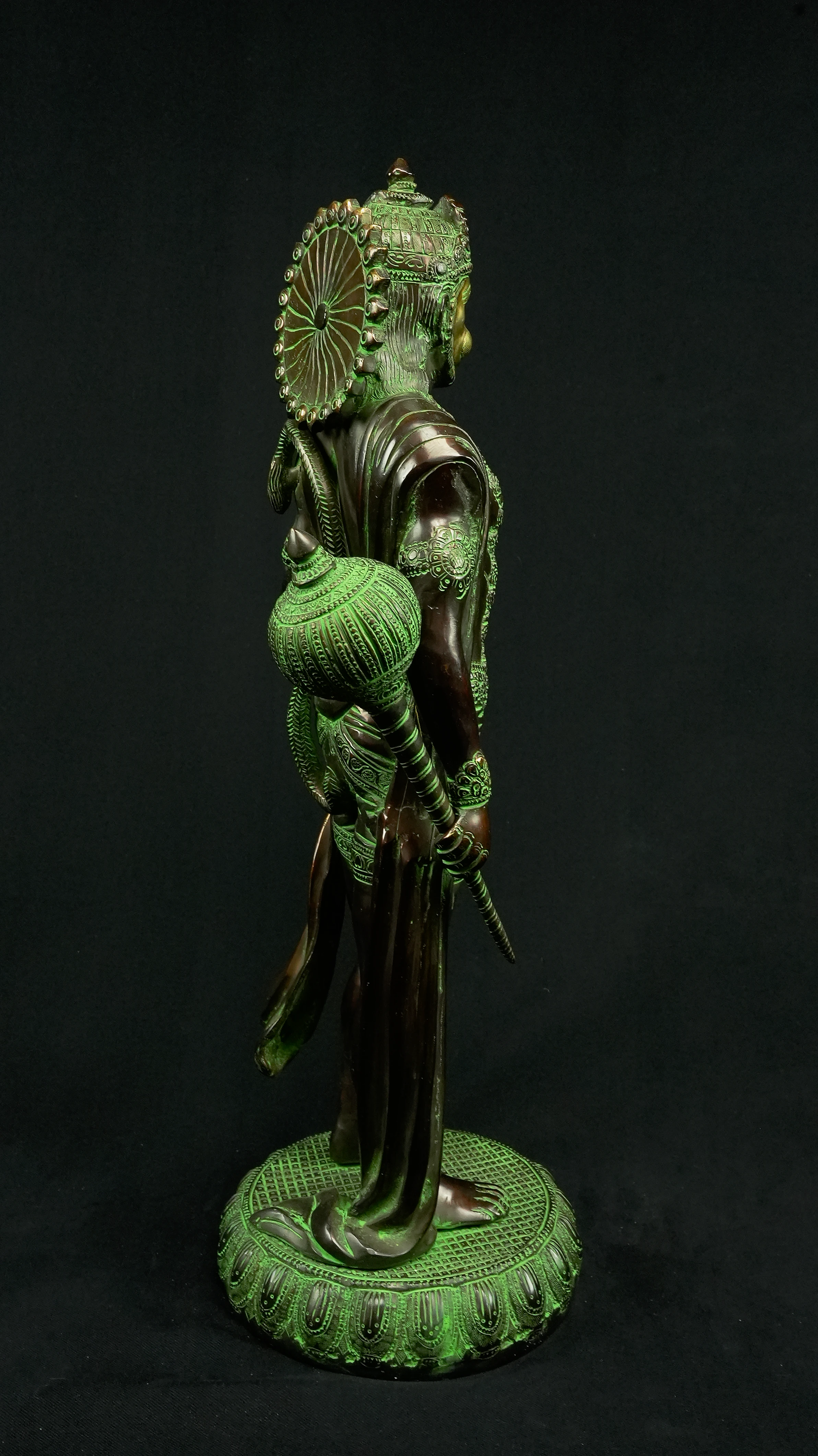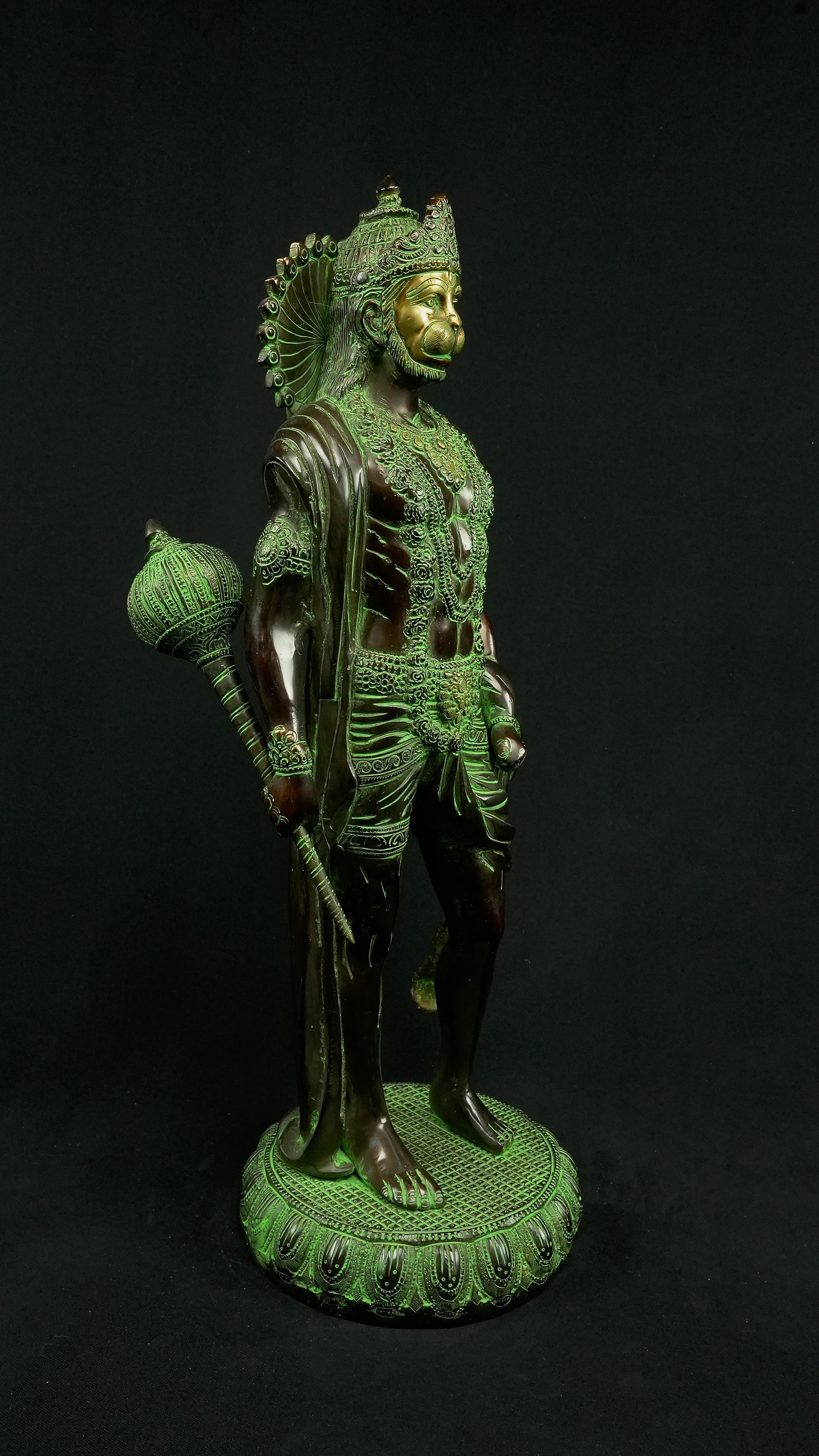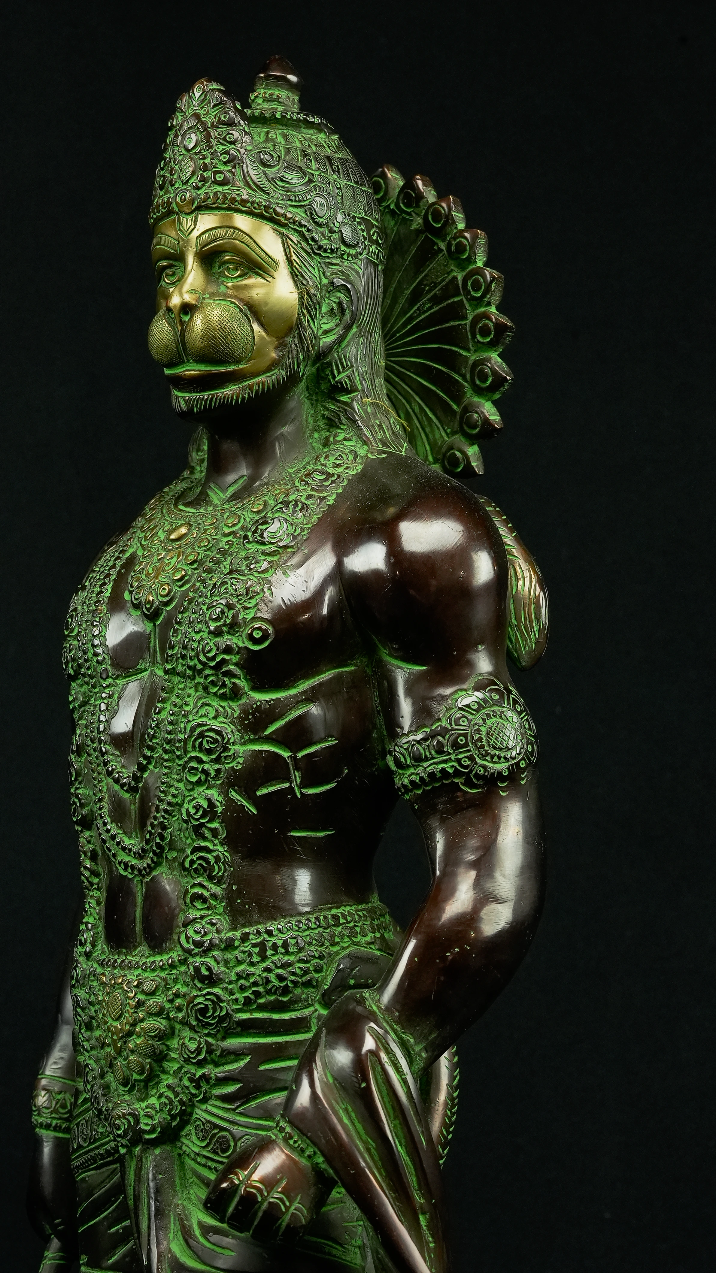 • 1x Statue avatarisée de Hanuman : 12 kg, 58 cm de hauteur, 20 cm de diamètre. Provenant de Delhi, Inde.