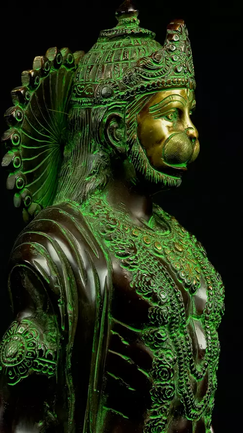 Symbole de puissance brute et de vigueur, Hanuman est connu sous le nom de "Grand Héros". Il a mérité ce titre par ses actions héroïques lors de moments critiques. Sa force titanesque est égale à son intelligence prodigieuse, et sa sagesse s'étend aussi vaste que les océans.