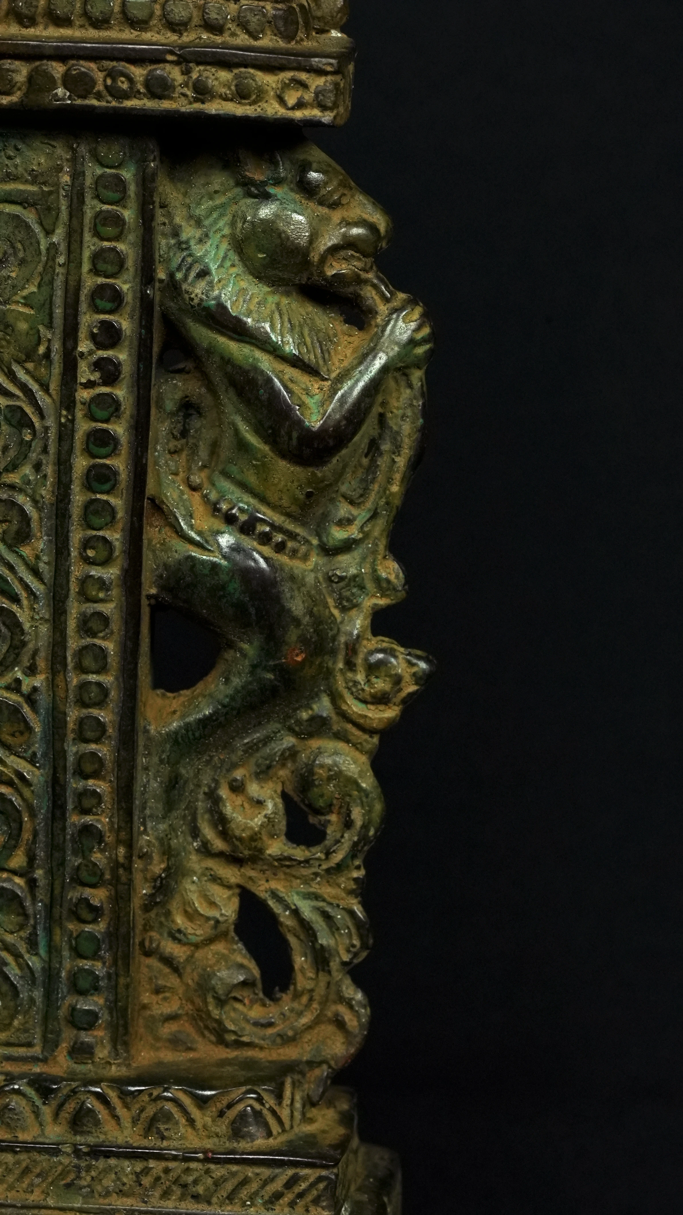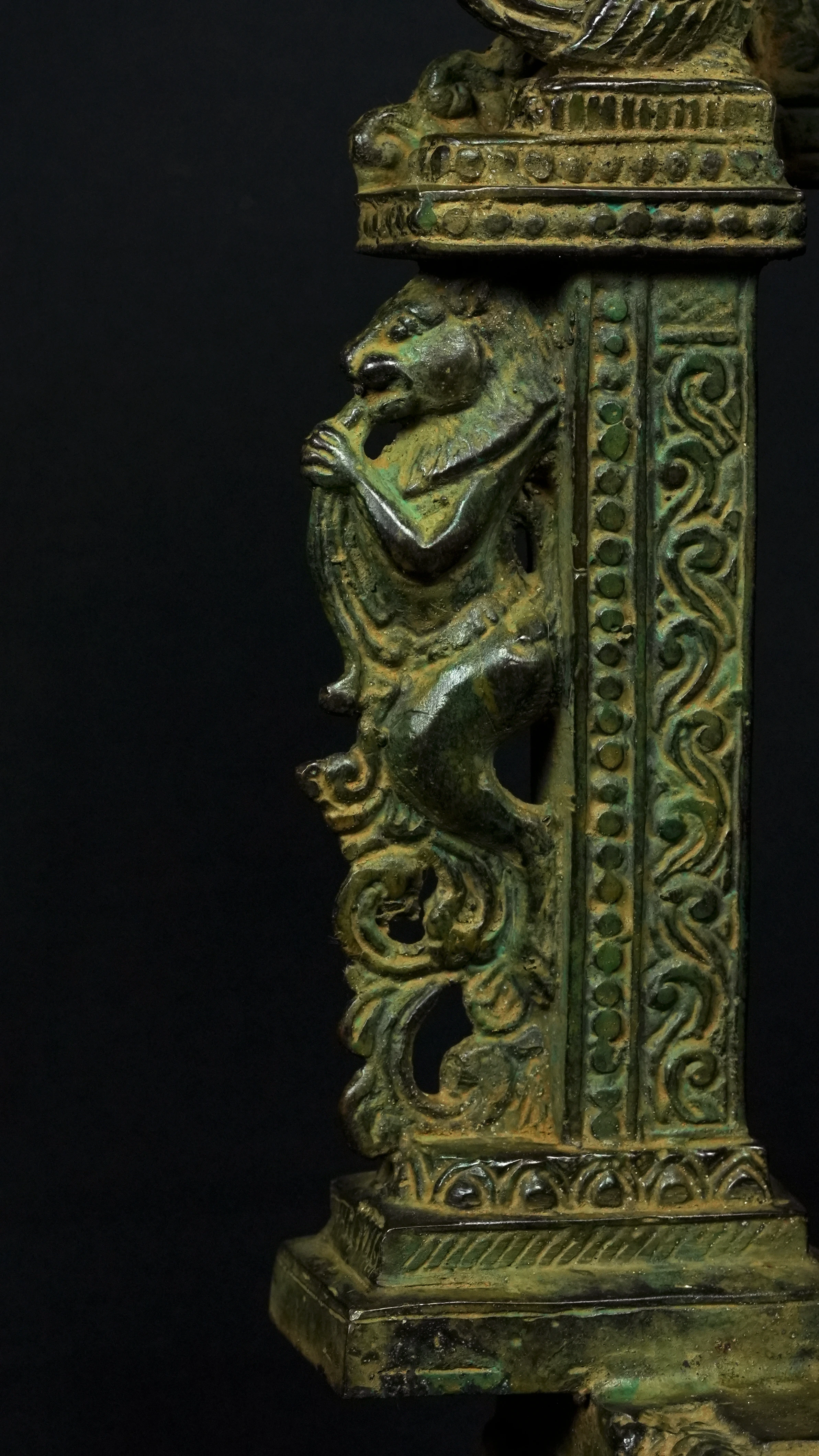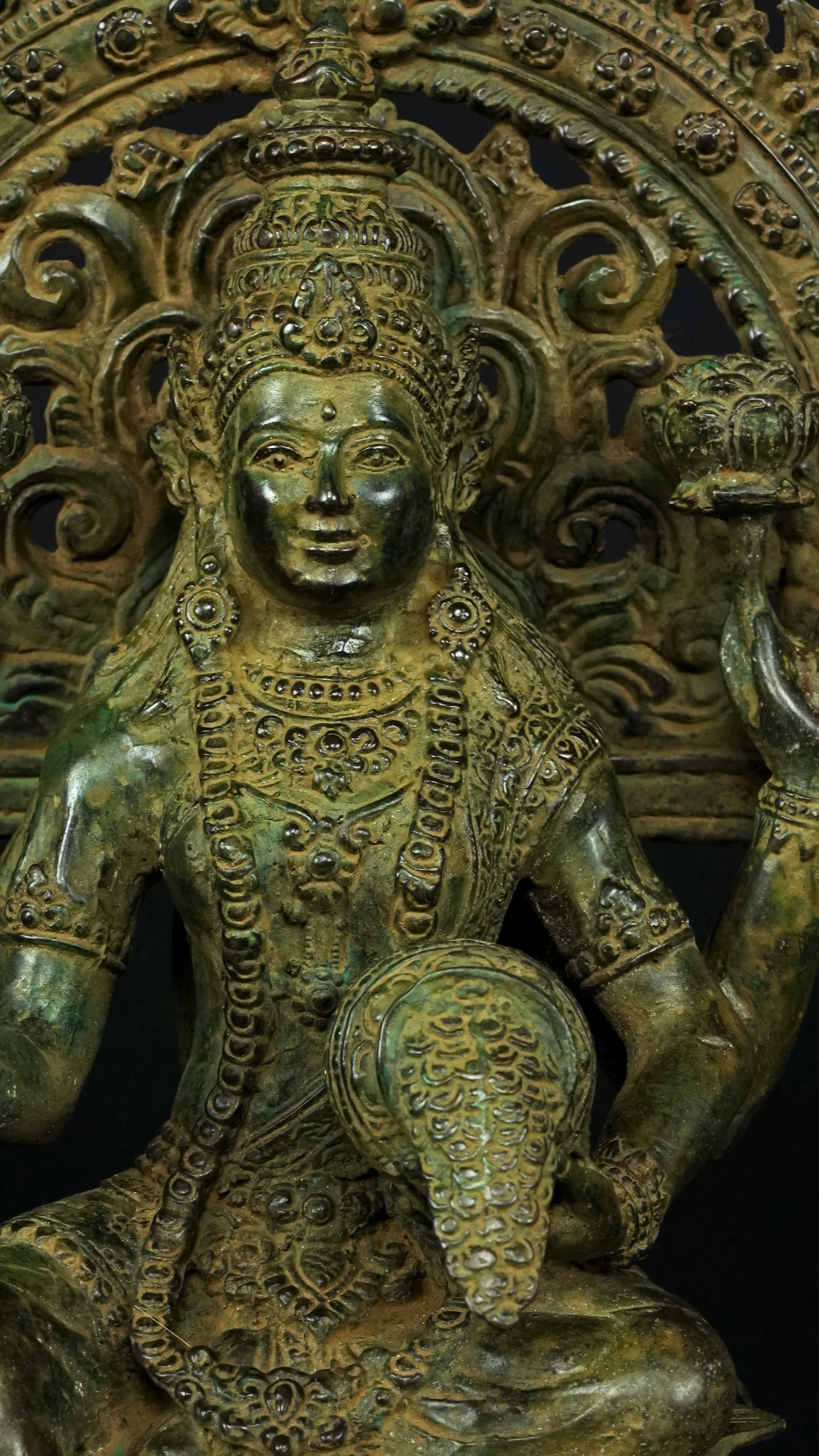 Le visage paisible de Kwan Yin reflète la pureté de l’esprit maîtrisé et la bienveillance sans condition. Ses ornements divins : diadème, collier, bijoux et lotus rappellent que la véritable richesse réside dans la lumière du discernement et non dans la possession. Son arc ornemental, couronné de flammes ascendantes, représente le rayonnement du feu intérieur, la clarté de l’âme libérée des illusions.