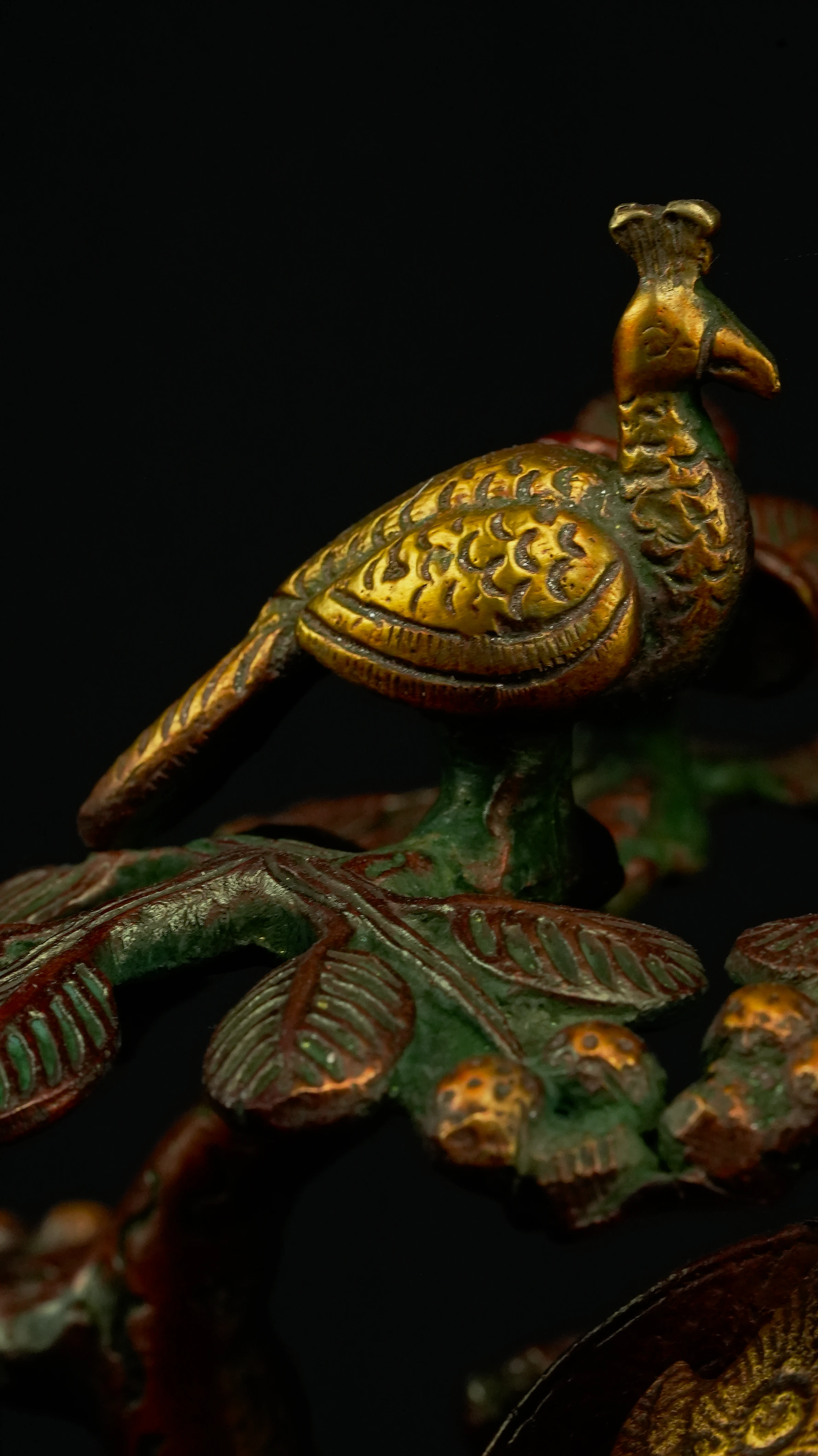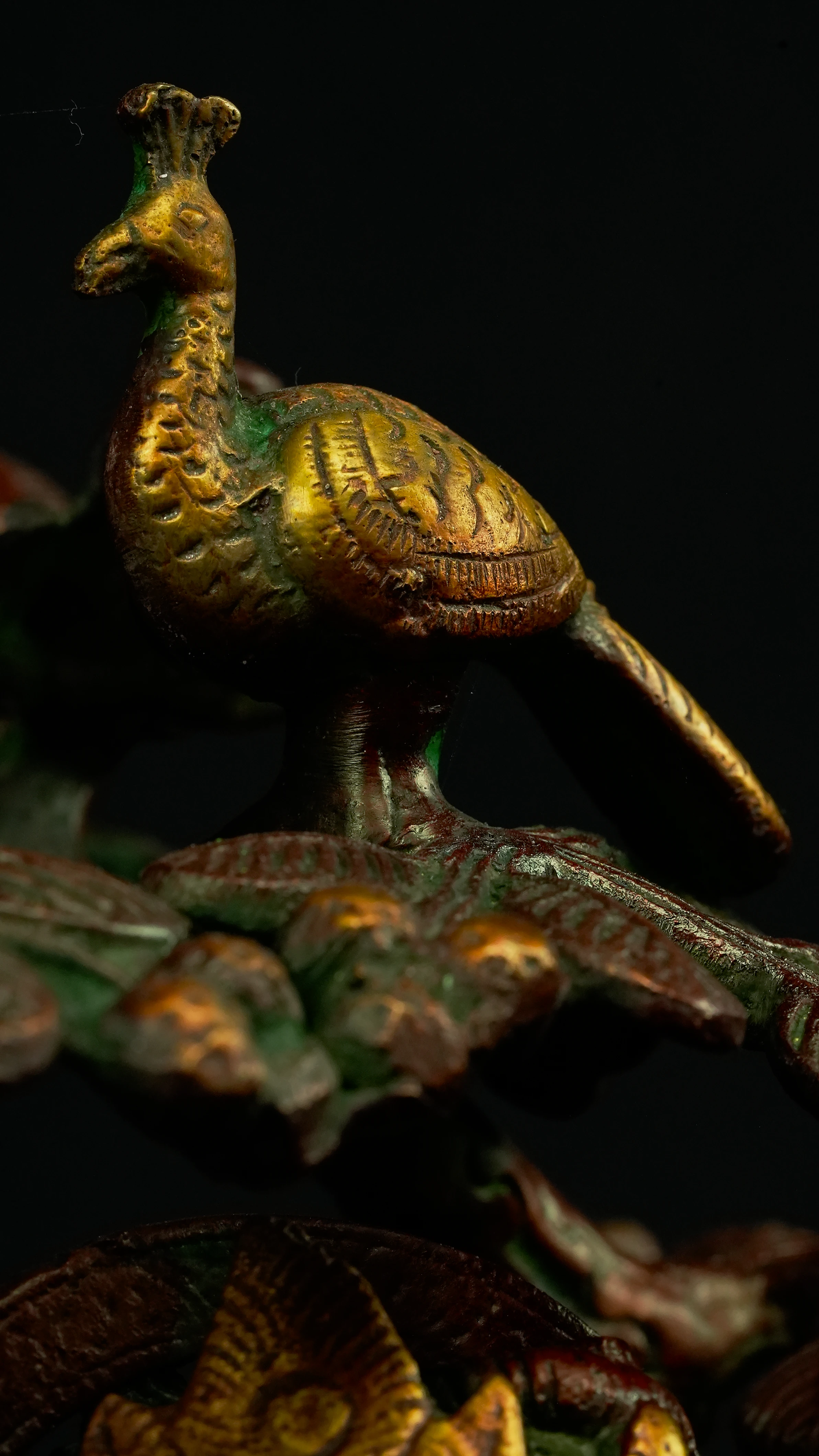 La plume de paon que Krishna porte sur sa couronne représente quant à elle l’harmonie cosmique, la grâce et la maîtrise des énergies subtiles. Associée aux 7 Rayons Sacrés, elle reflète l’équilibre spirituel que Krishna transmet à ses dévots, les guidant vers une compréhension plus profonde de leur propre lumière intérieure.