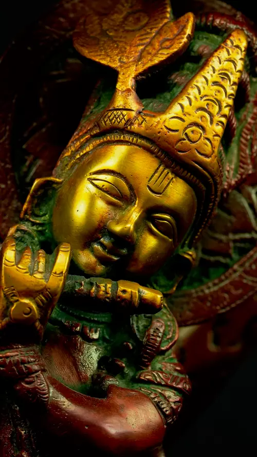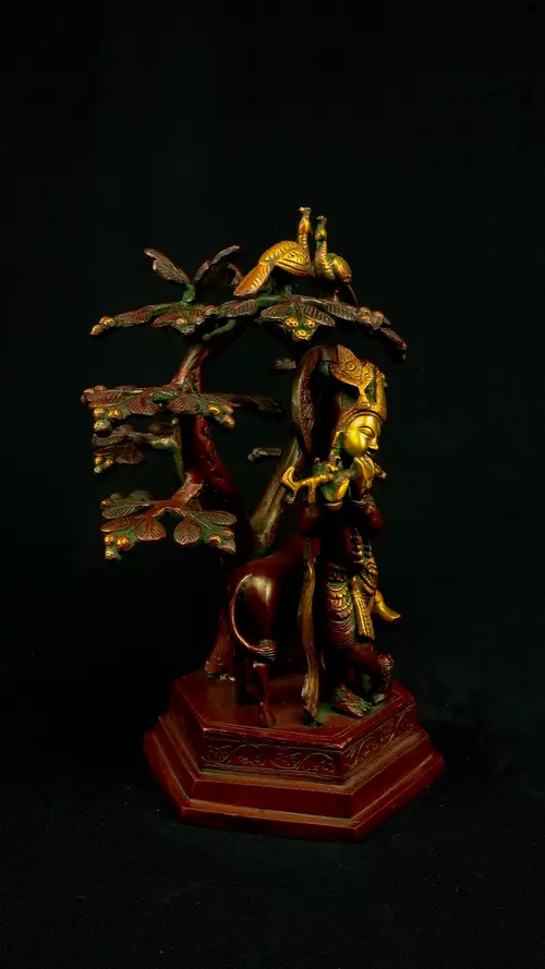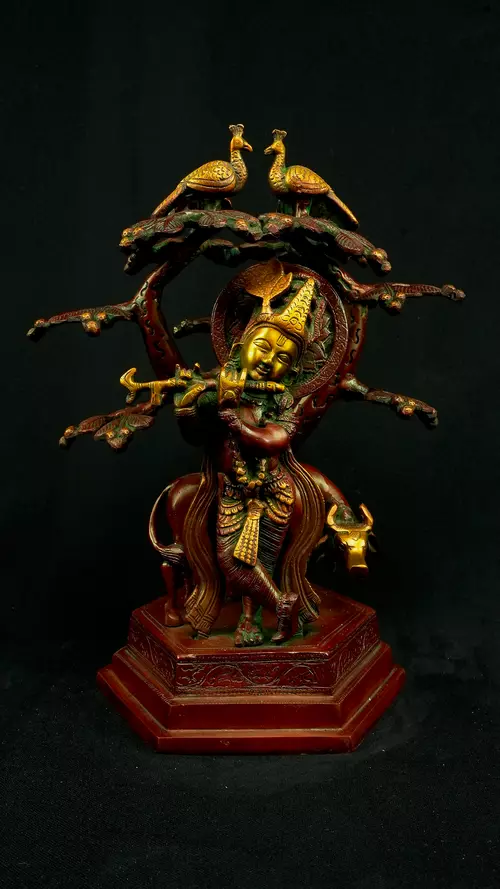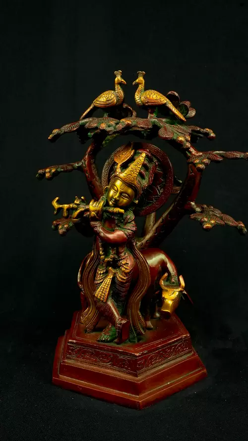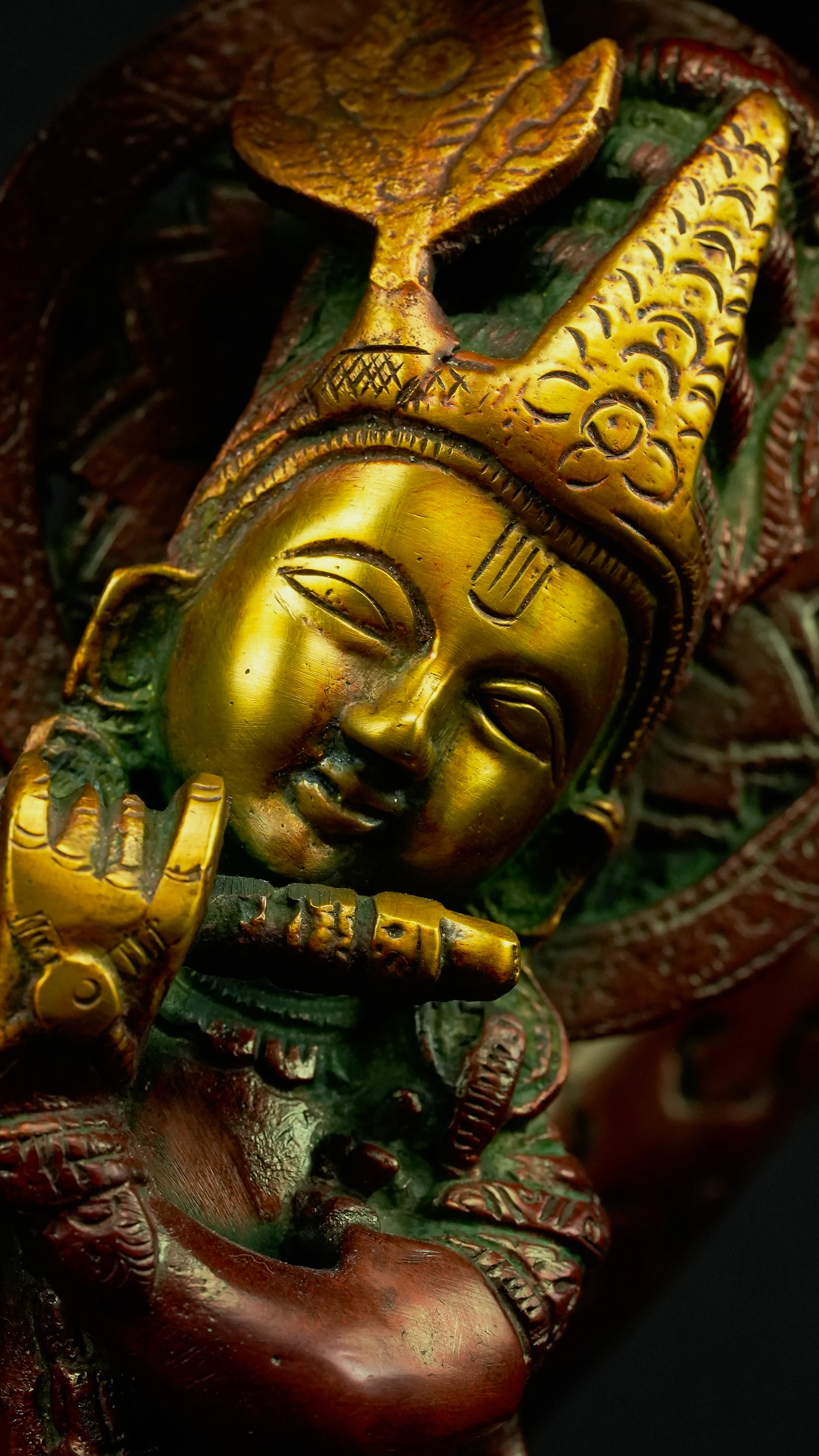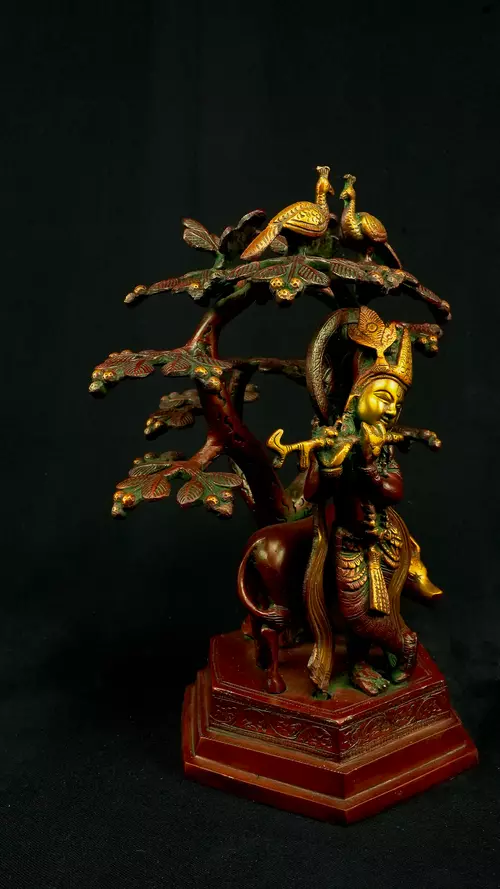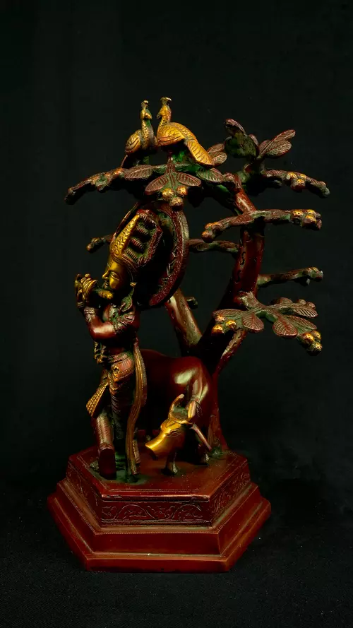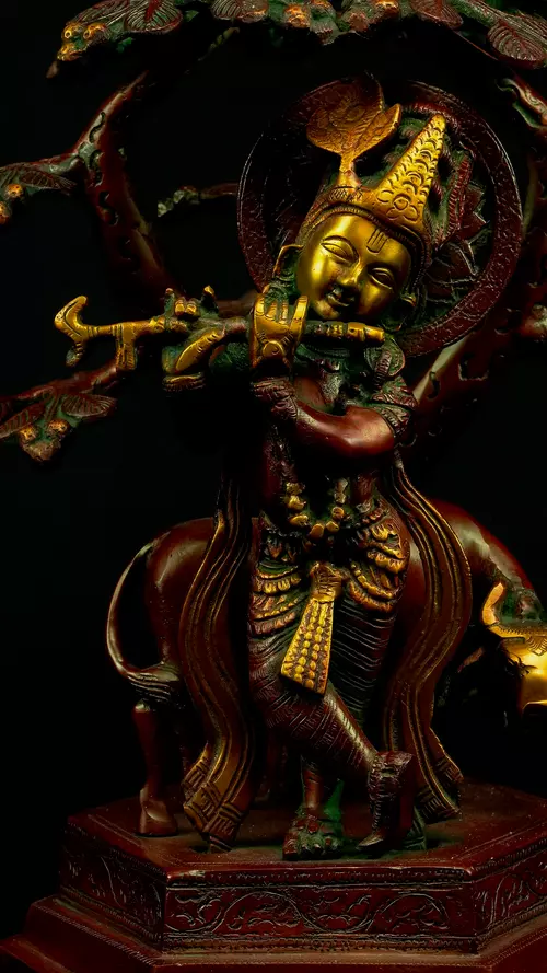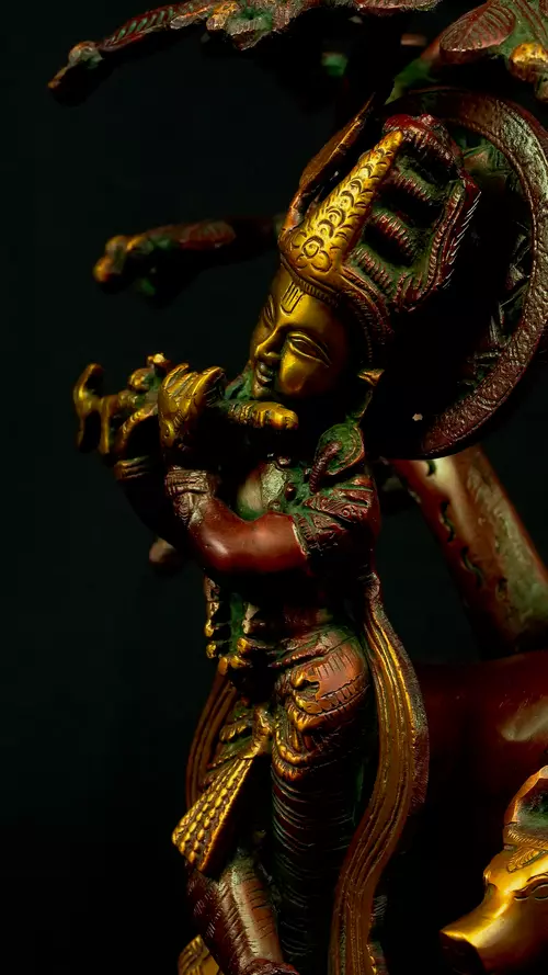 - La statue de Krishna aide à se stabiliser au plan bouddhique, favorise l'éveil spirituel et l'acquisition des vertus essentielles pour atteindre l'état d'être du saint.