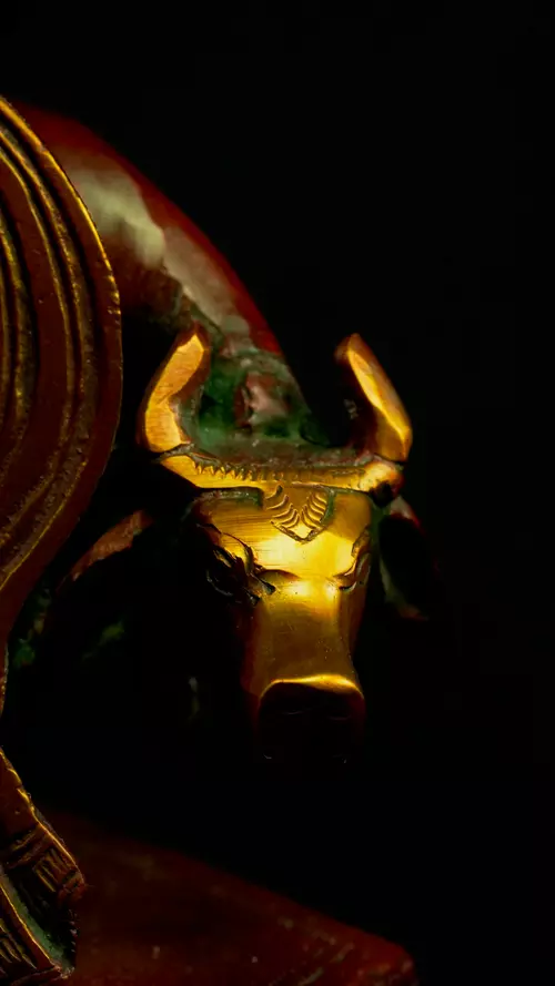 Kamadhenu, la vache céleste, est un symbole d'abondance et de bénédiction. Elle est associée à Krishna pour souligner sa capacité à pourvoir à tous les besoins matériels et spirituels de ses dévots. Kamadhenu exauce les souhaits de ceux qui l’honorent, tout comme Krishna offre son soutien inconditionnel à ceux qui recherchent son aide et sa protection.