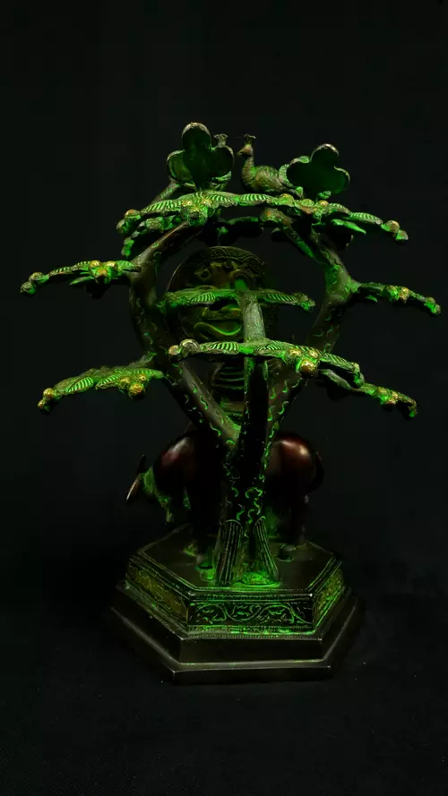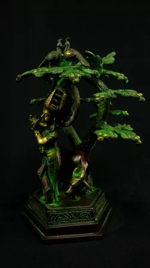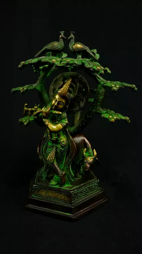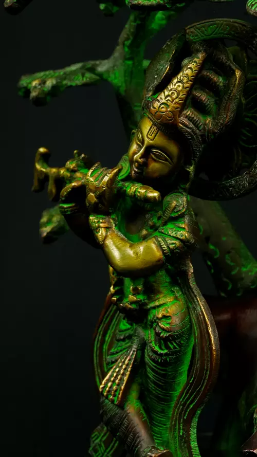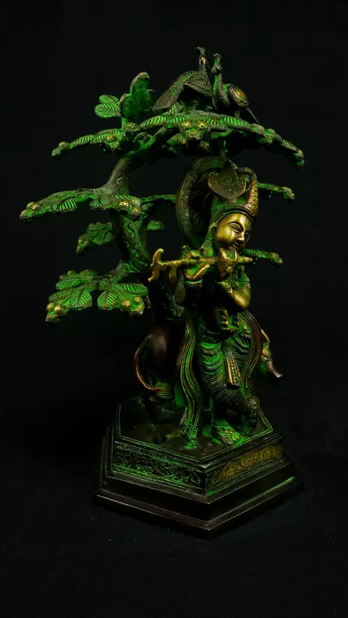 - La statue de Krishna aide à se stabiliser au plan bouddhique, favorise l'éveil spirituel et l'acquisition des vertus essentielles pour atteindre l'état d'être du saint.