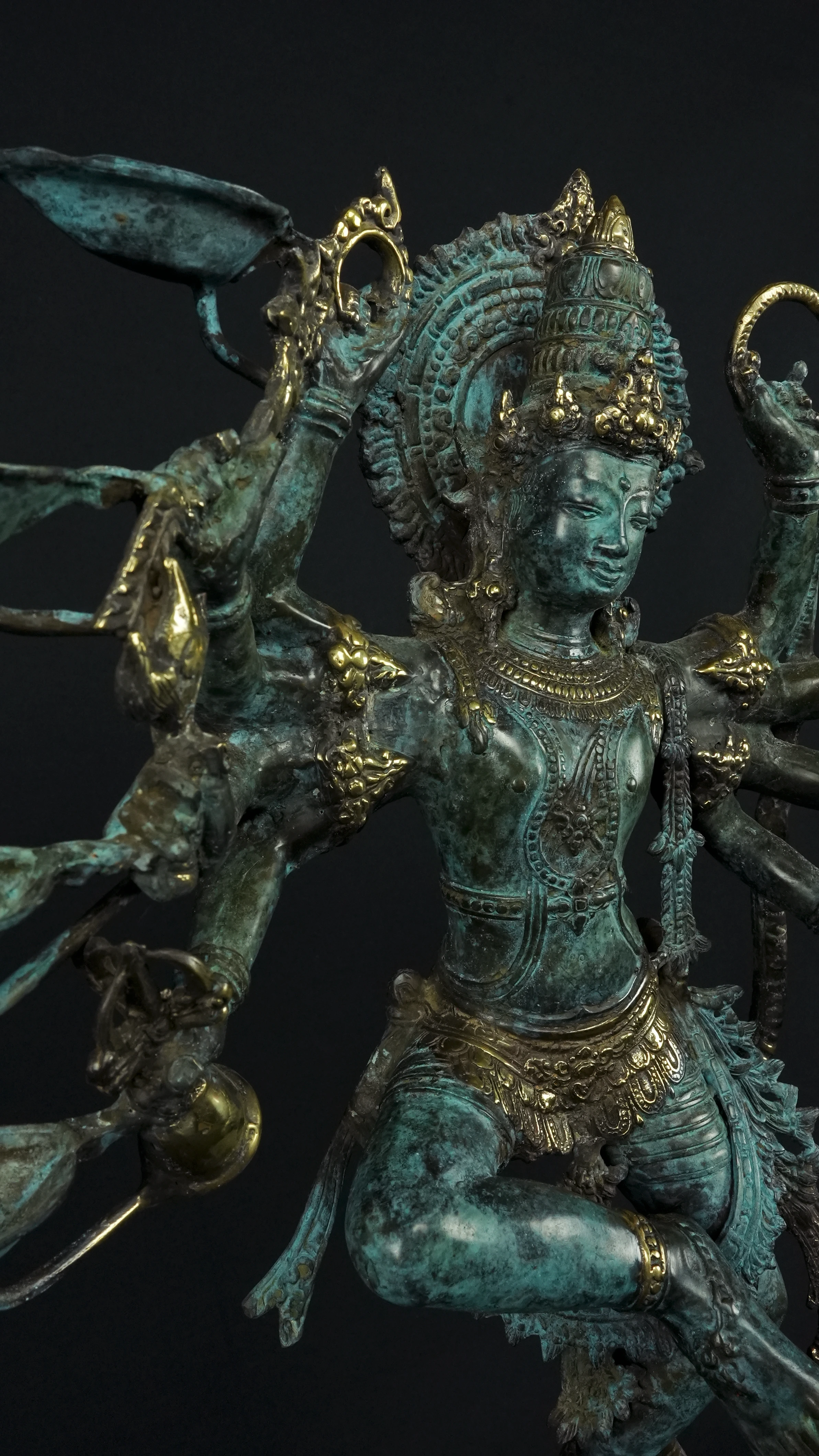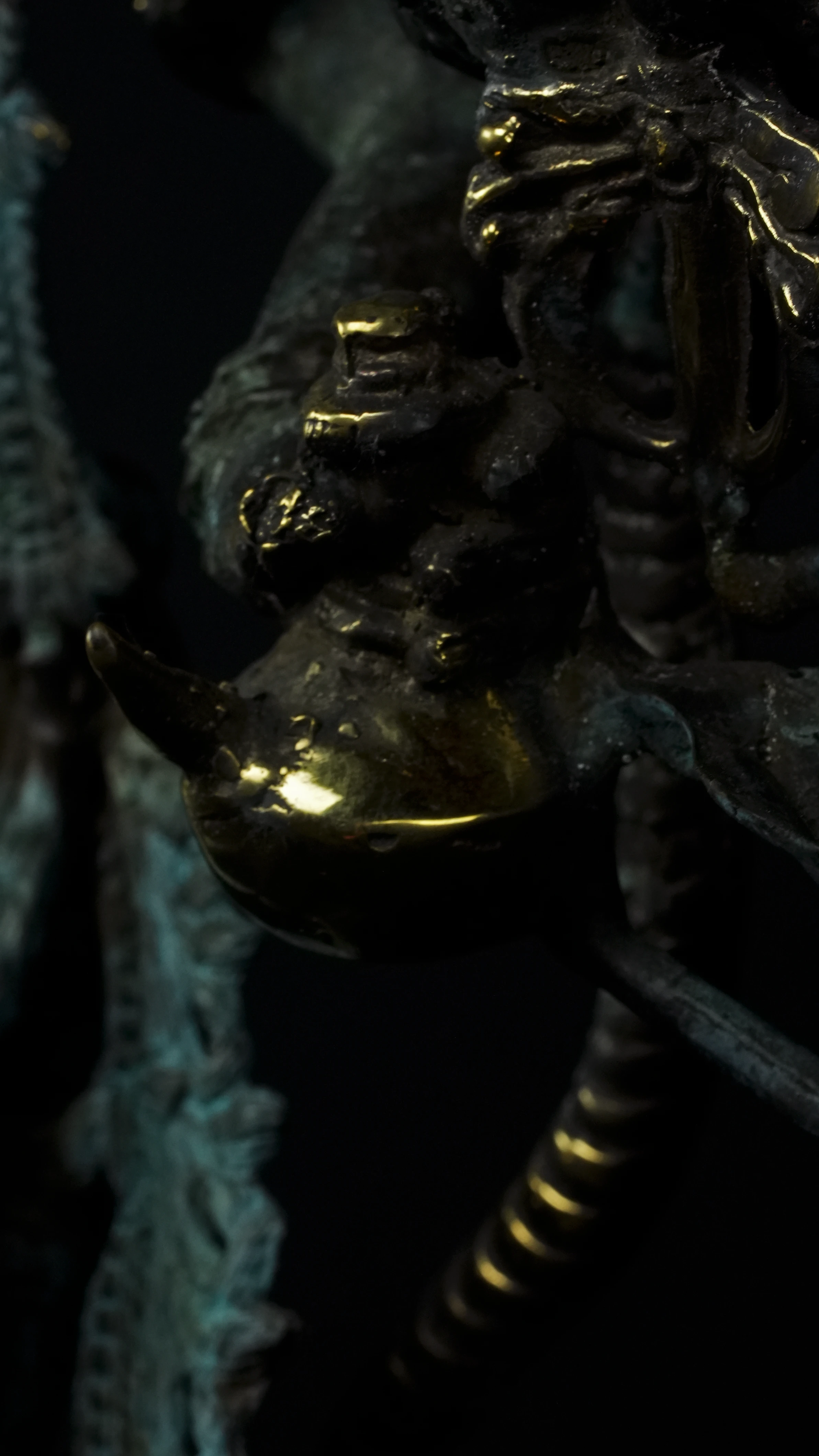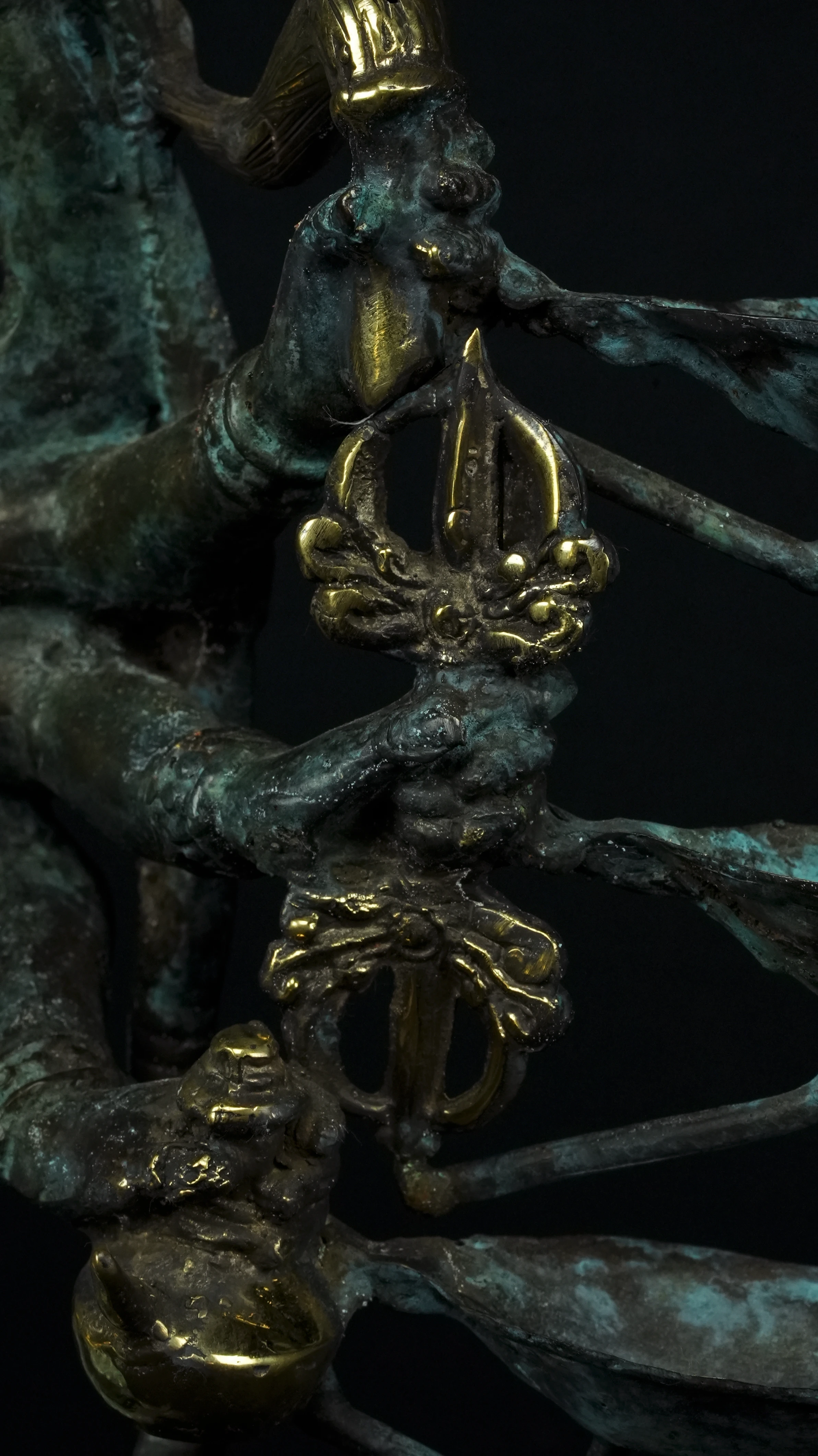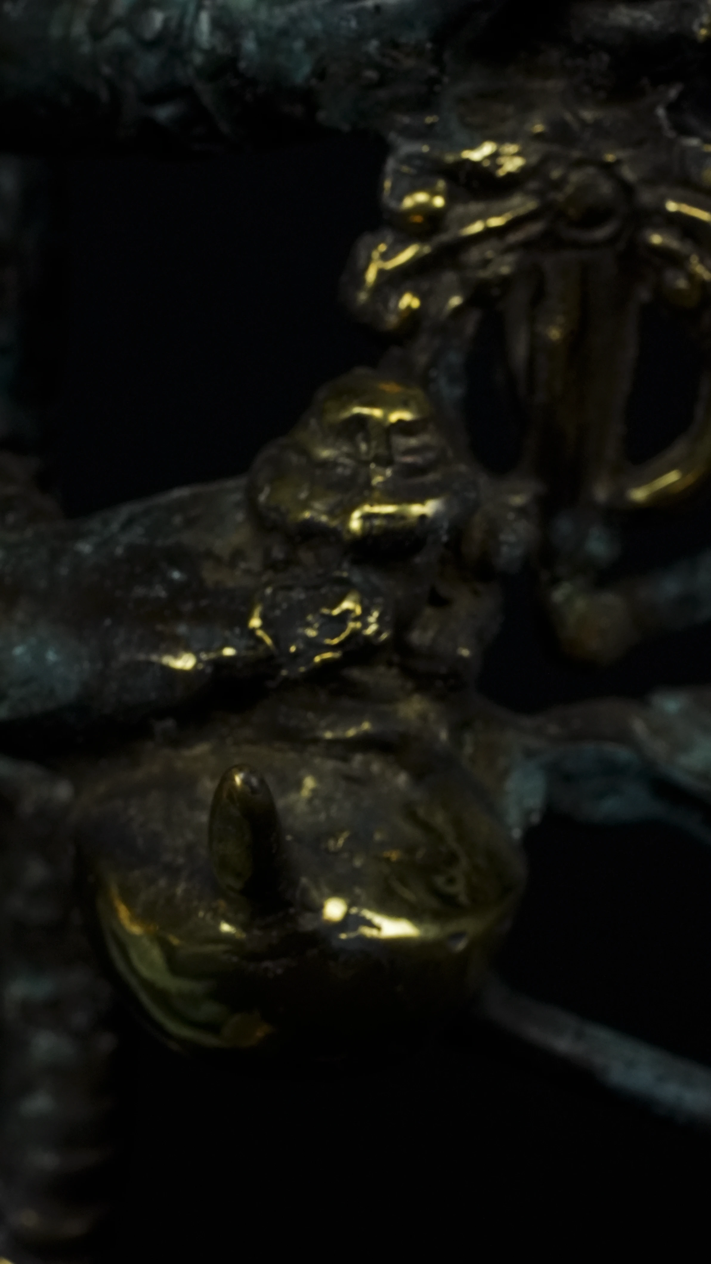 Sa danse sur le serpent sacré exprime l’union parfaite entre la matière et le divin, la transformation naturelle de l’énergie vitale en sagesse, abondance et harmonie universelle.