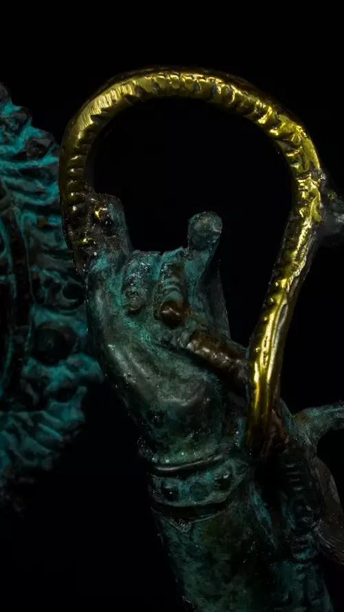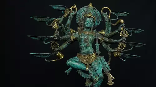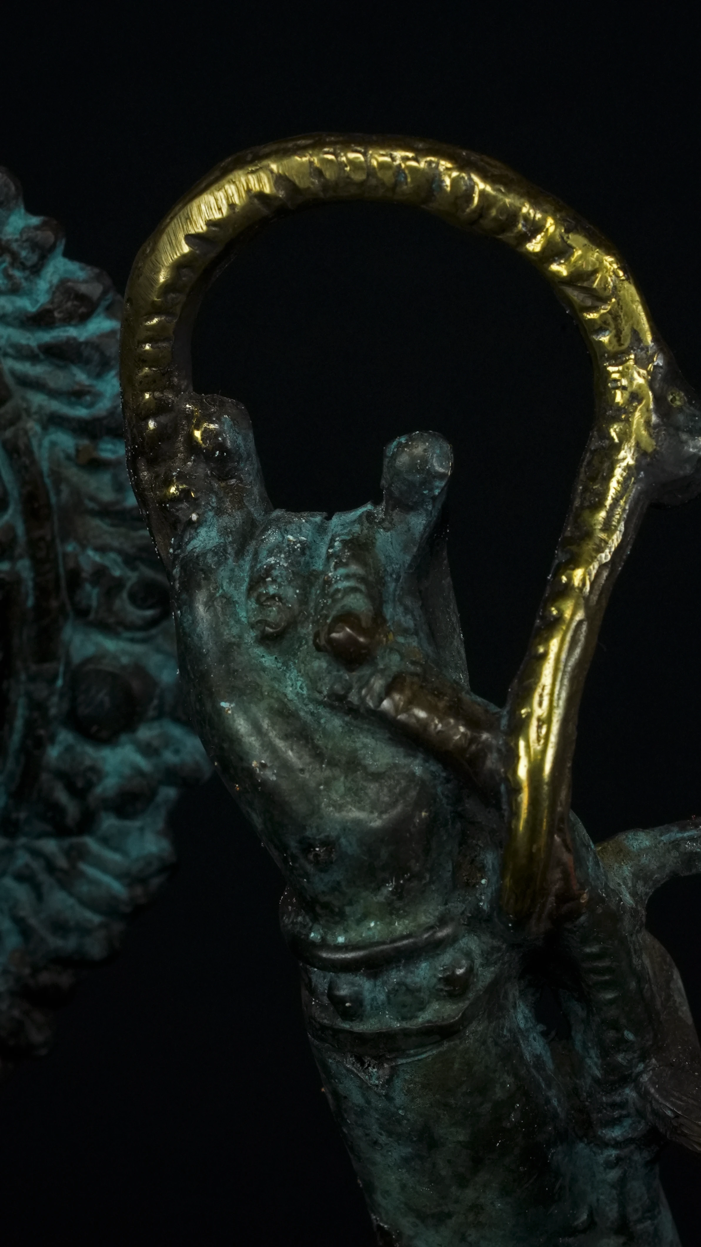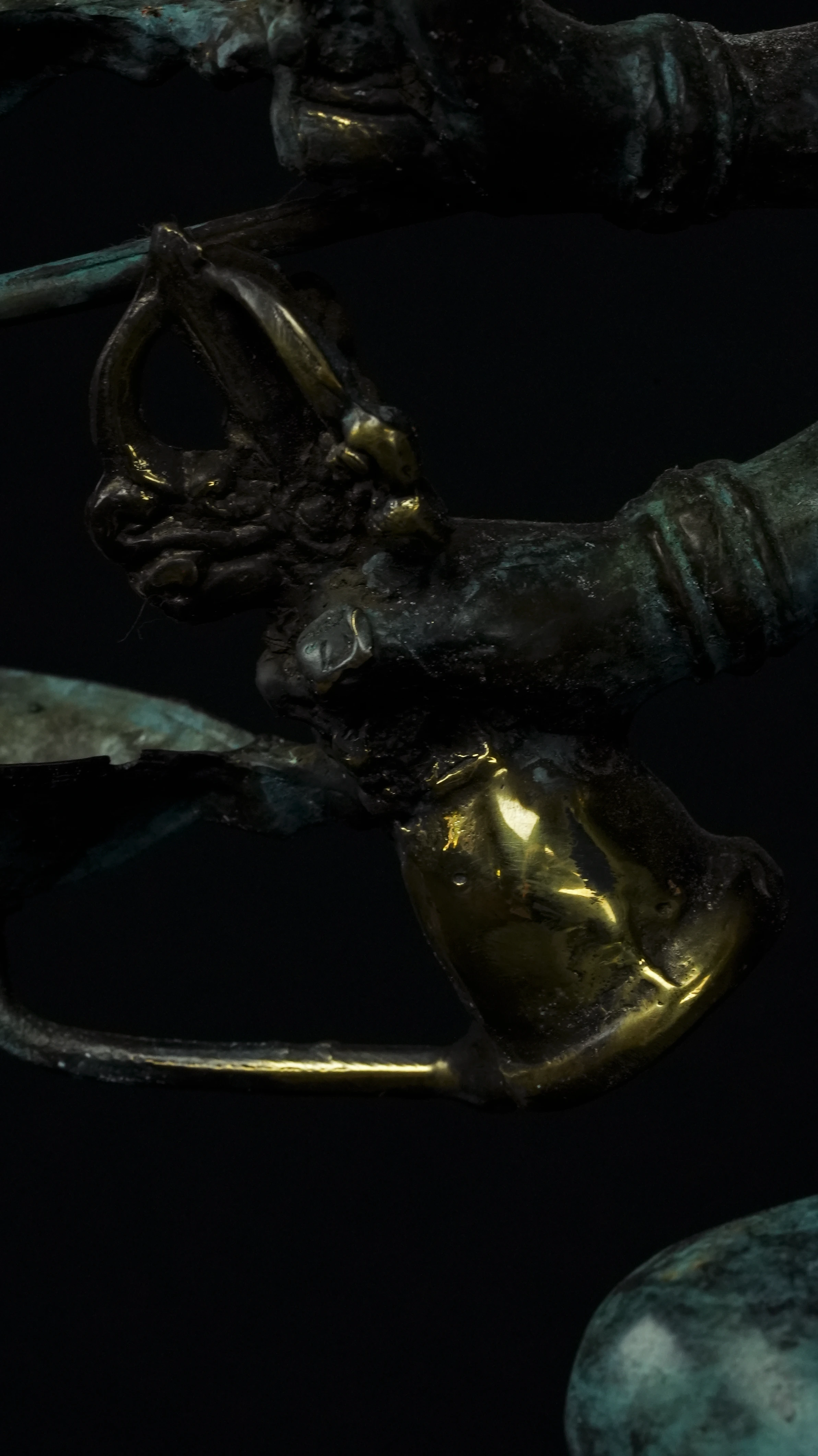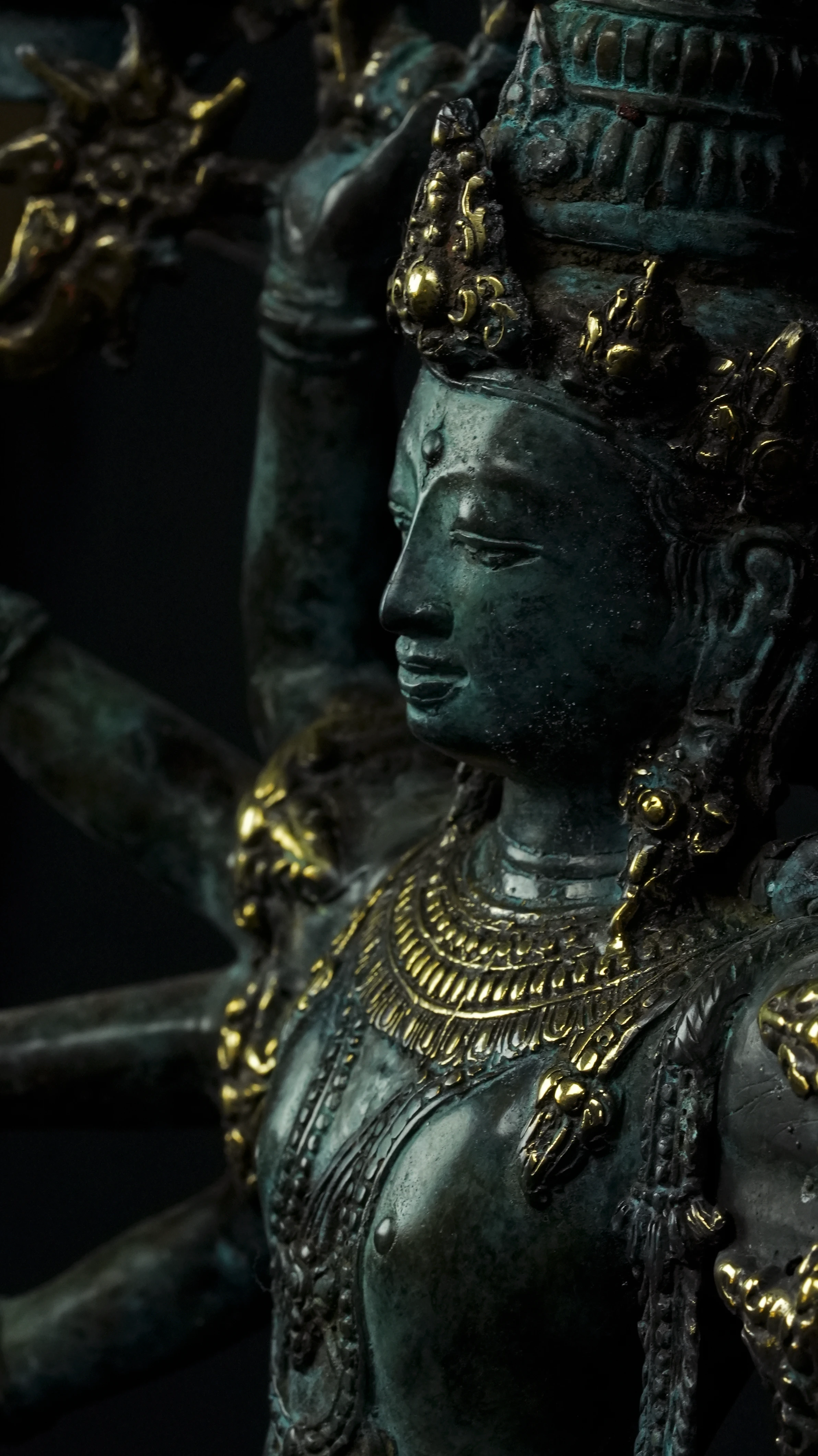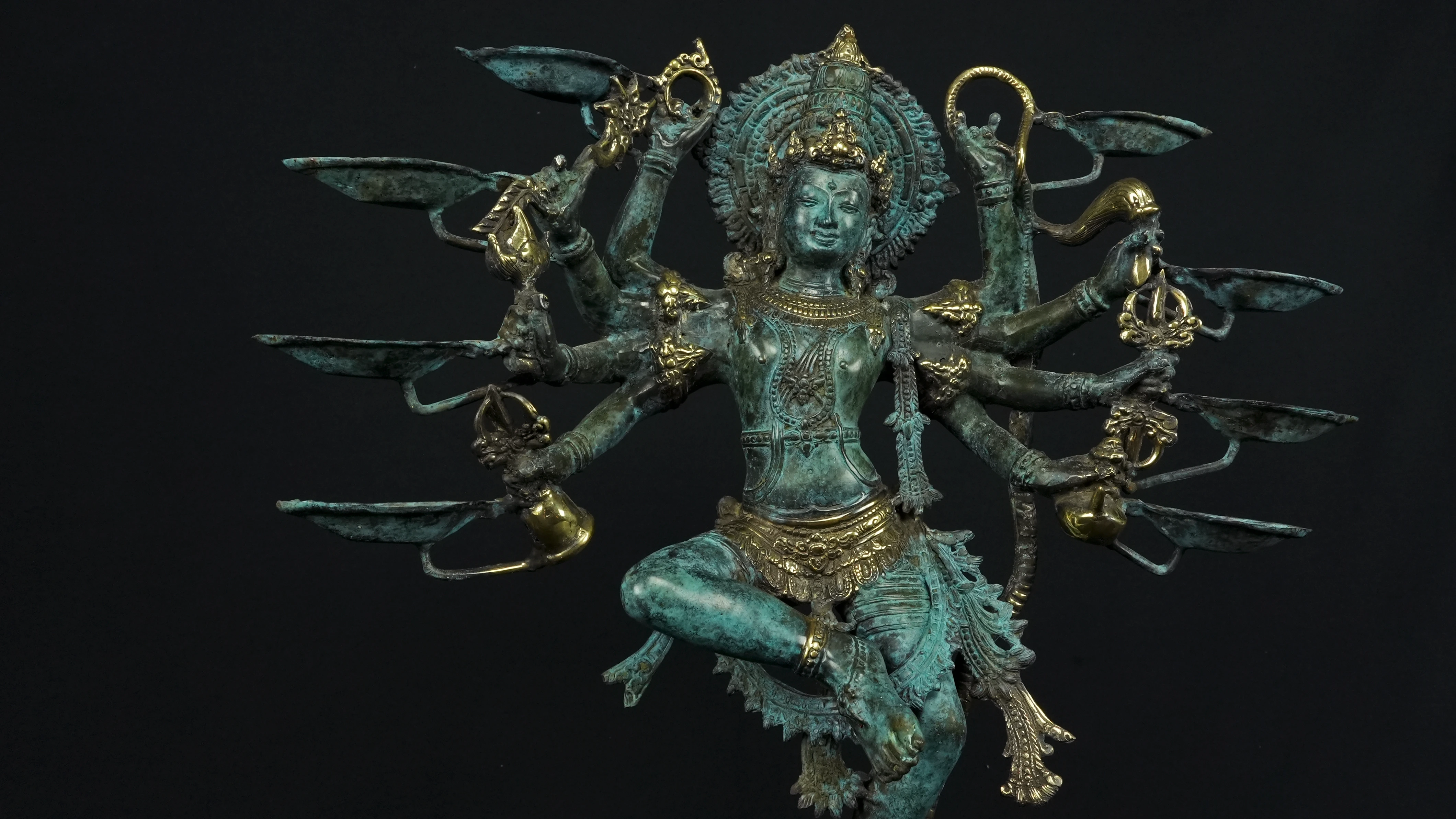 Sa danse sur le serpent sacré exprime l’union parfaite entre la matière et le divin, la transformation naturelle de l’énergie vitale en sagesse, abondance et harmonie universelle.
