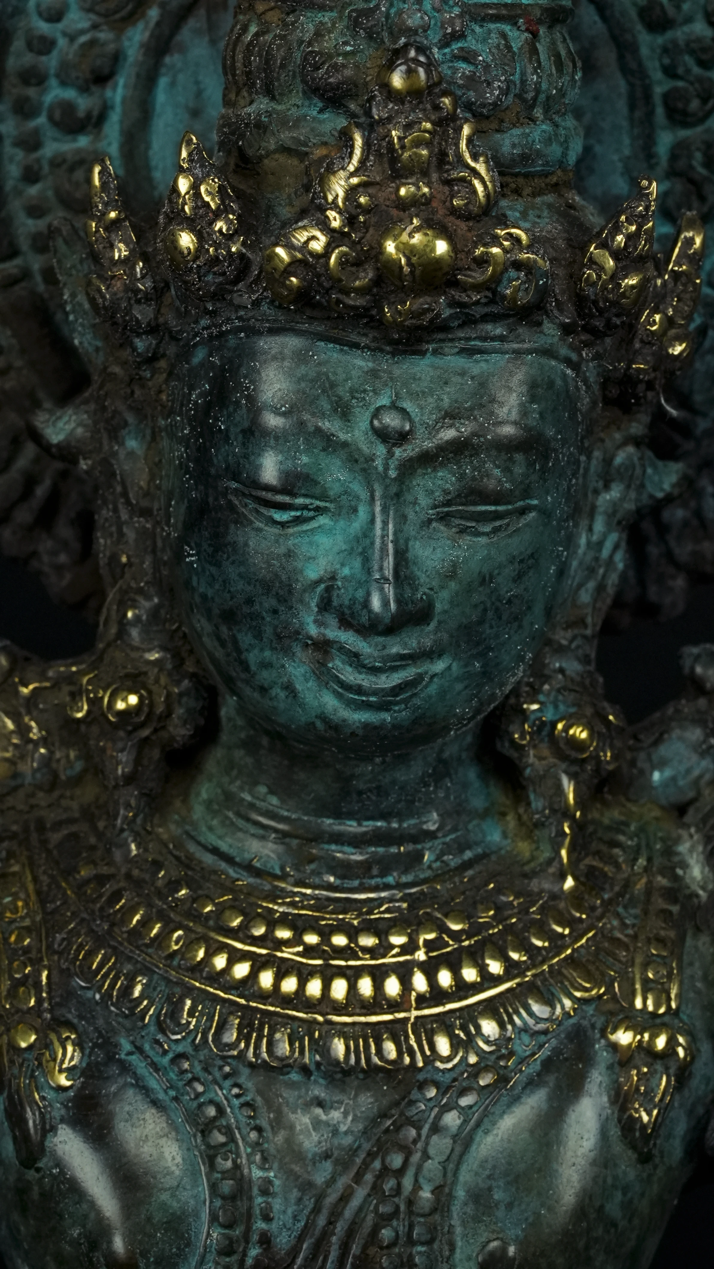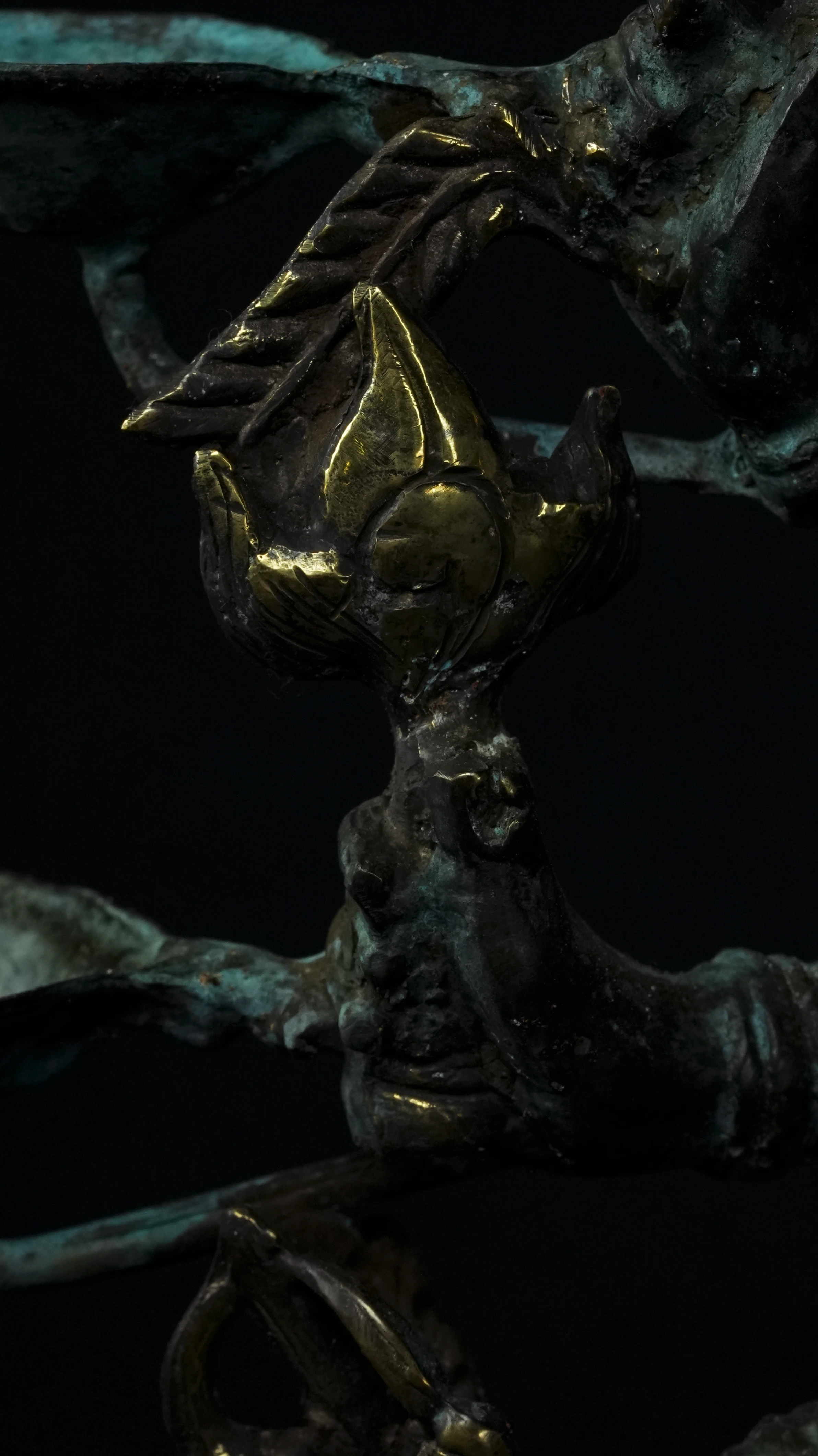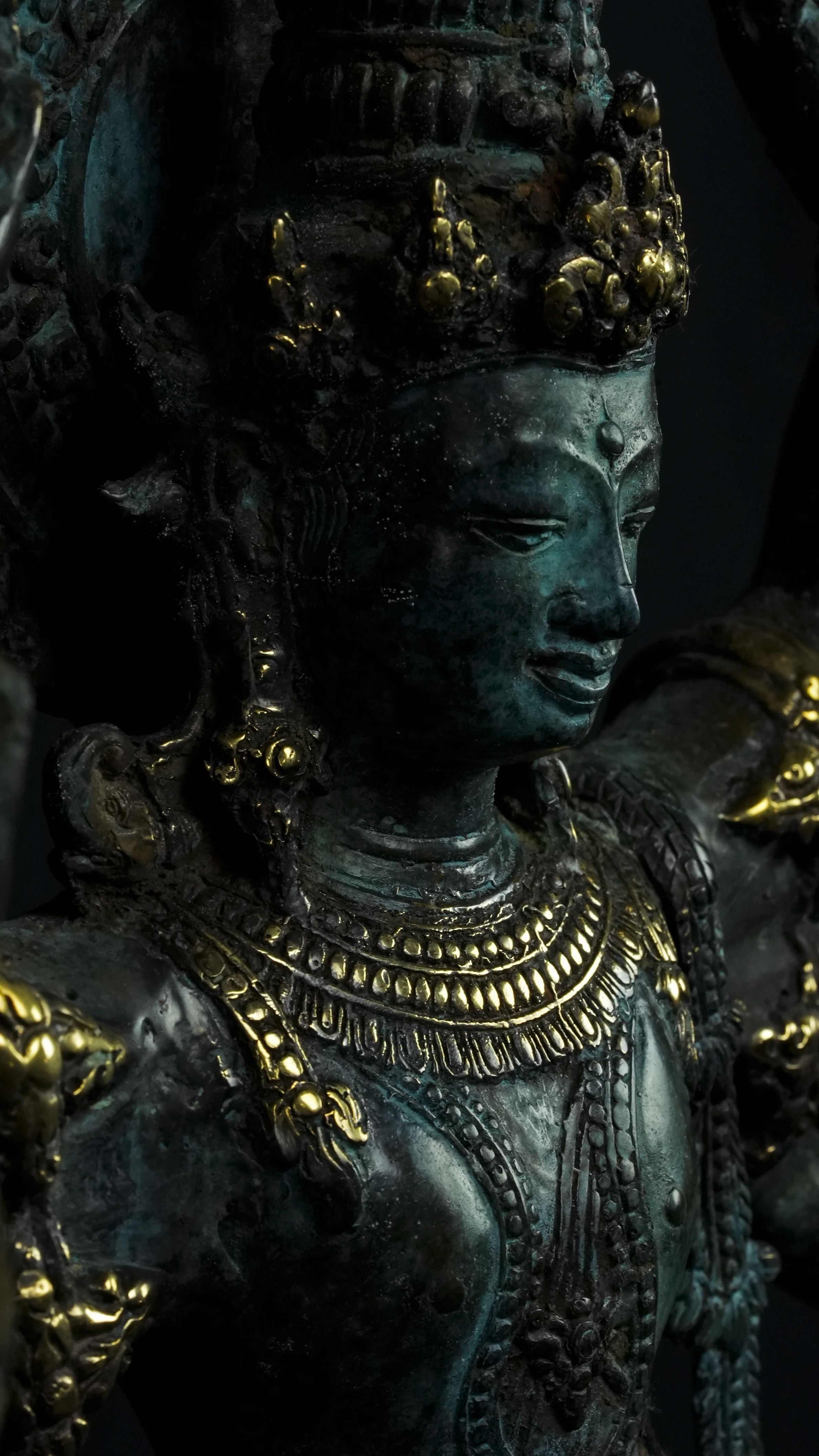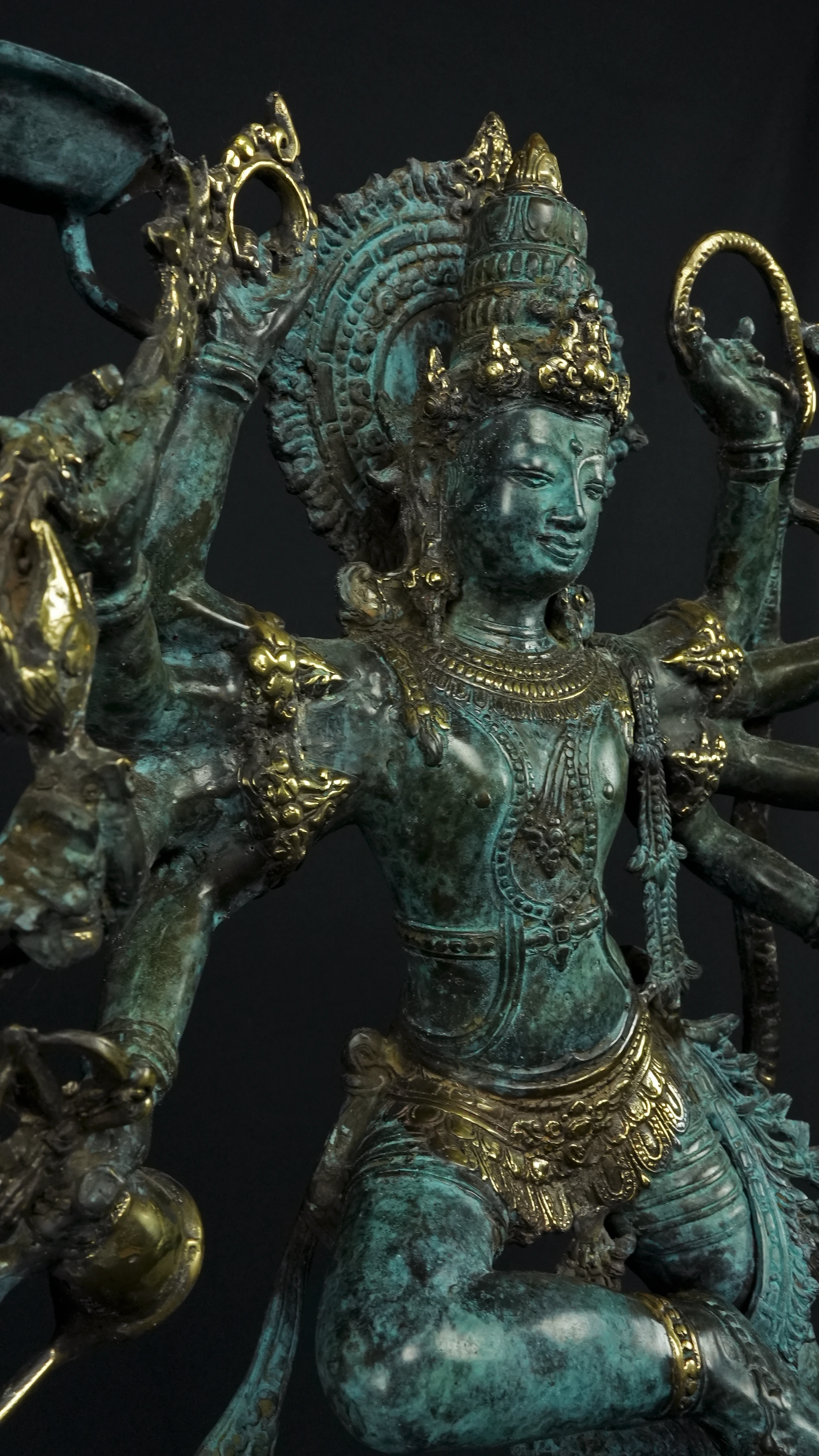 • 1x Statue avatarisée de Lakshmi, par Marie Jannin : 7 kg, 63 cm de hauteur, 50cm de largeur. Méthode de la cire perdue en Laiton réalisé à Java, Indonésie.