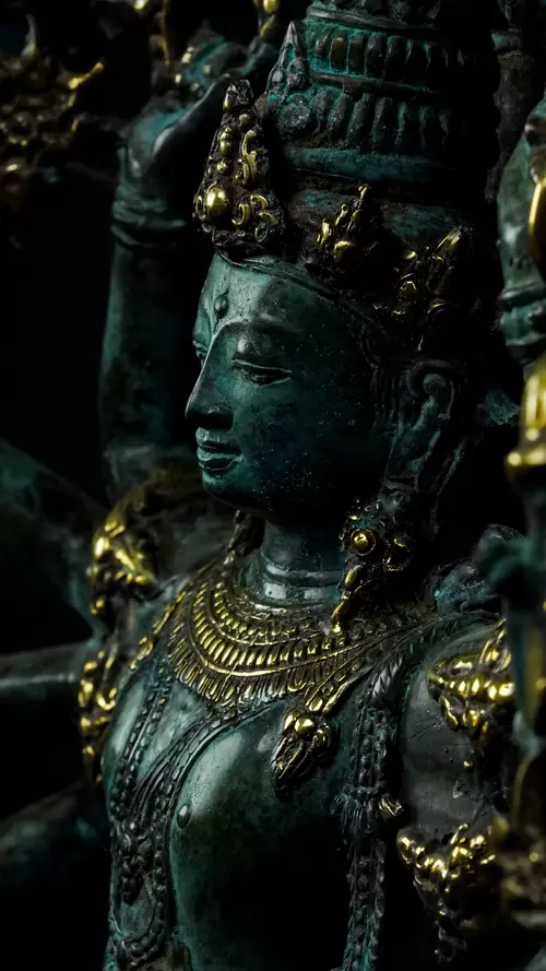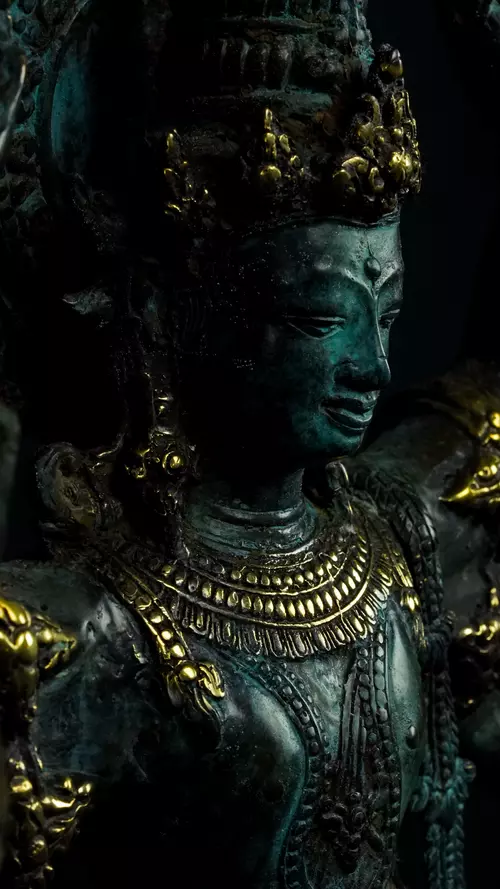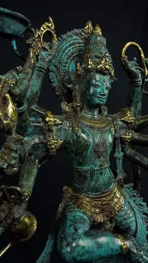 Ses huit bras expriment la plénitude de la prospérité : abondance, sagesse, stabilité, paix, fécondité, générosité, protection et lumière.