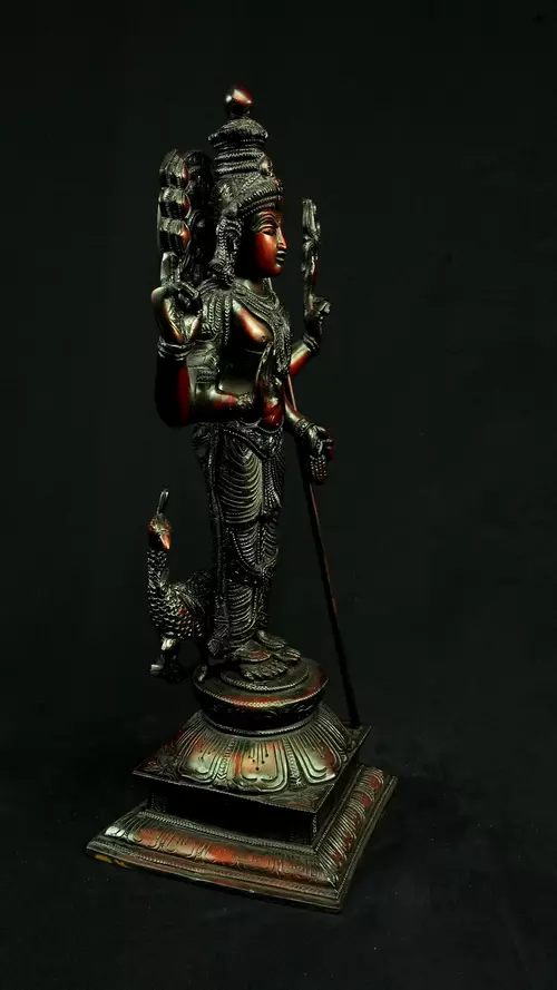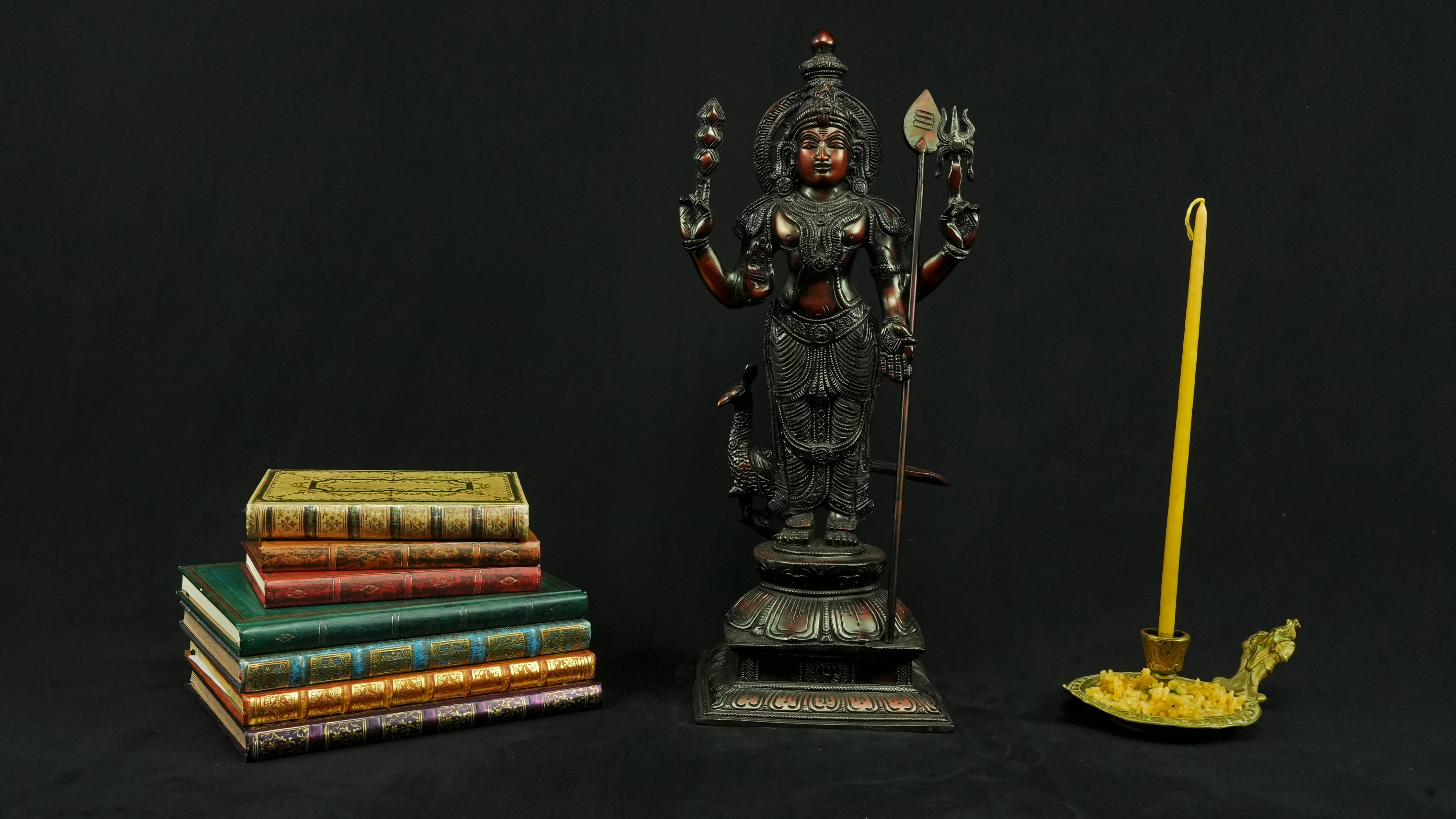 • 1x Statue avatarisée de Murugan : 7.4 kg, 46 cm de hauteur, 21cm de largeur. Provenant de Delhi, Inde.