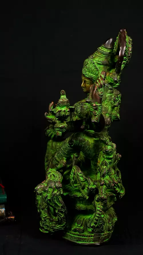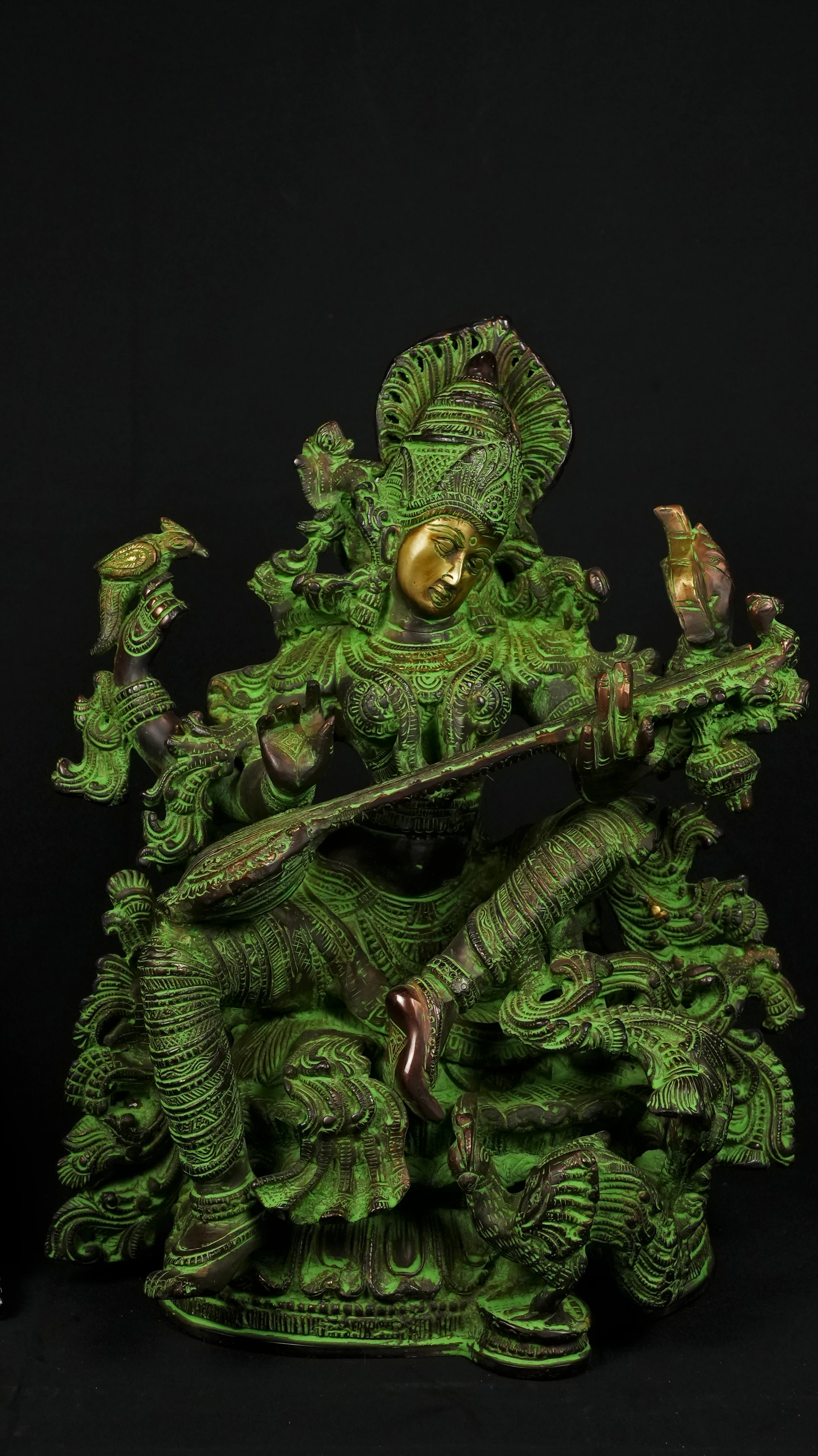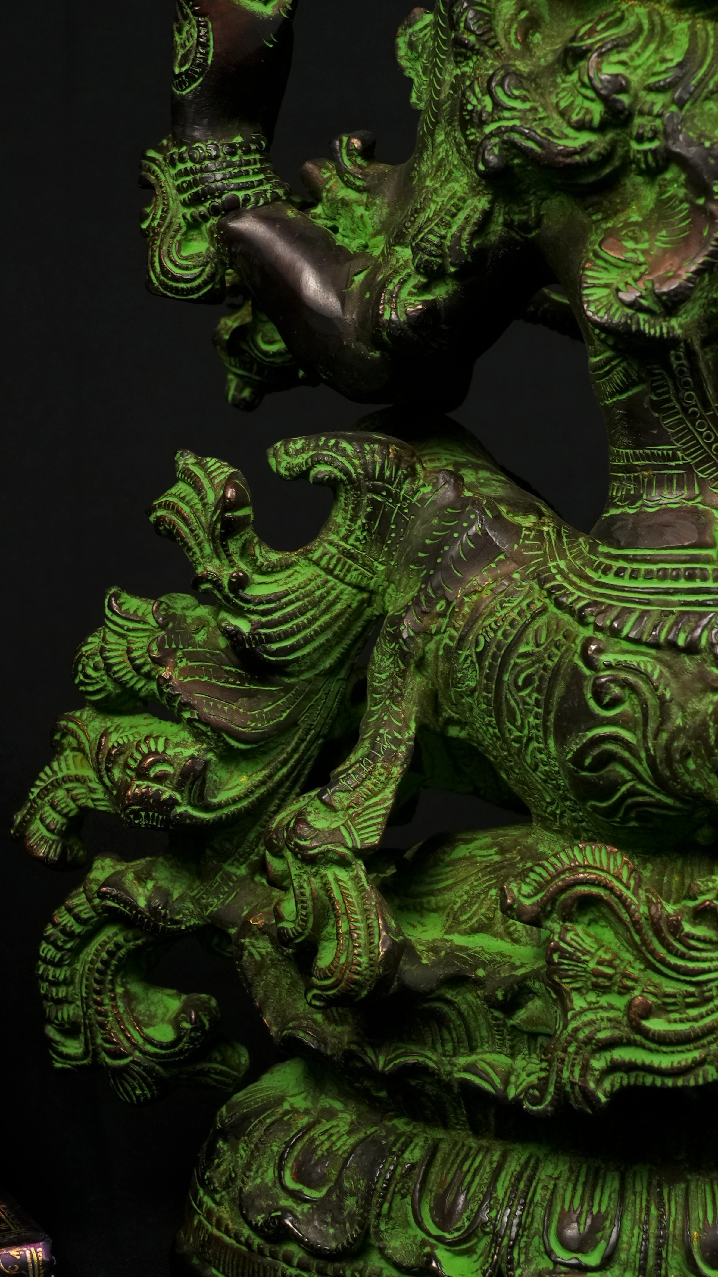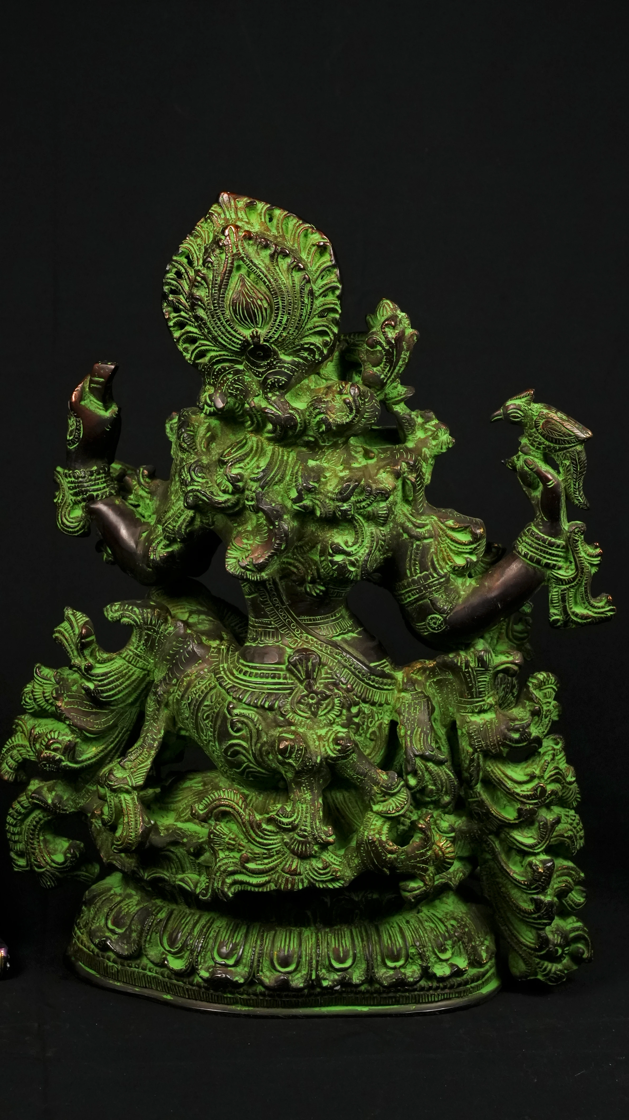 - 1x Statue avatarisée de Saraswati : 17 kg, 31 cm de hauteur, 36 cm de longueur. Origine : Delhi, Inde.