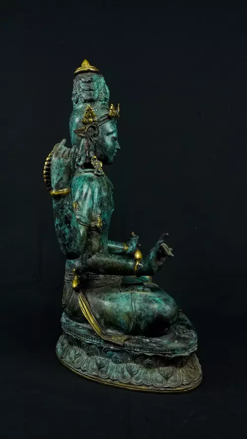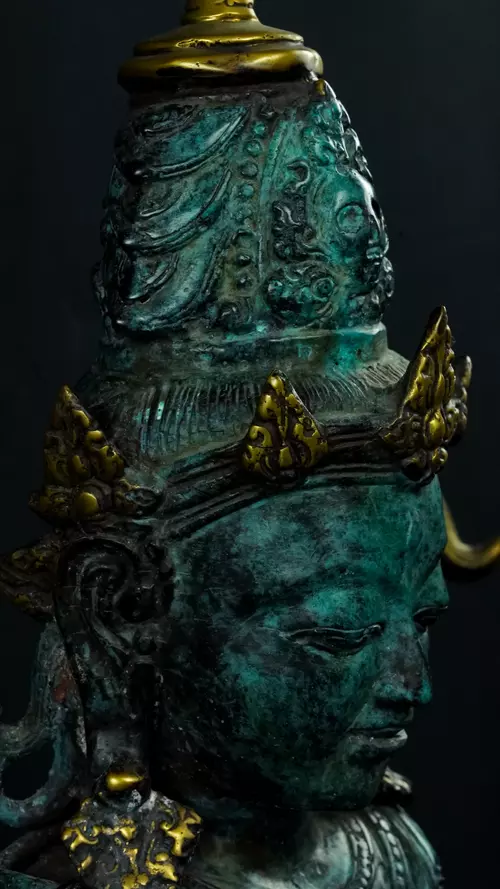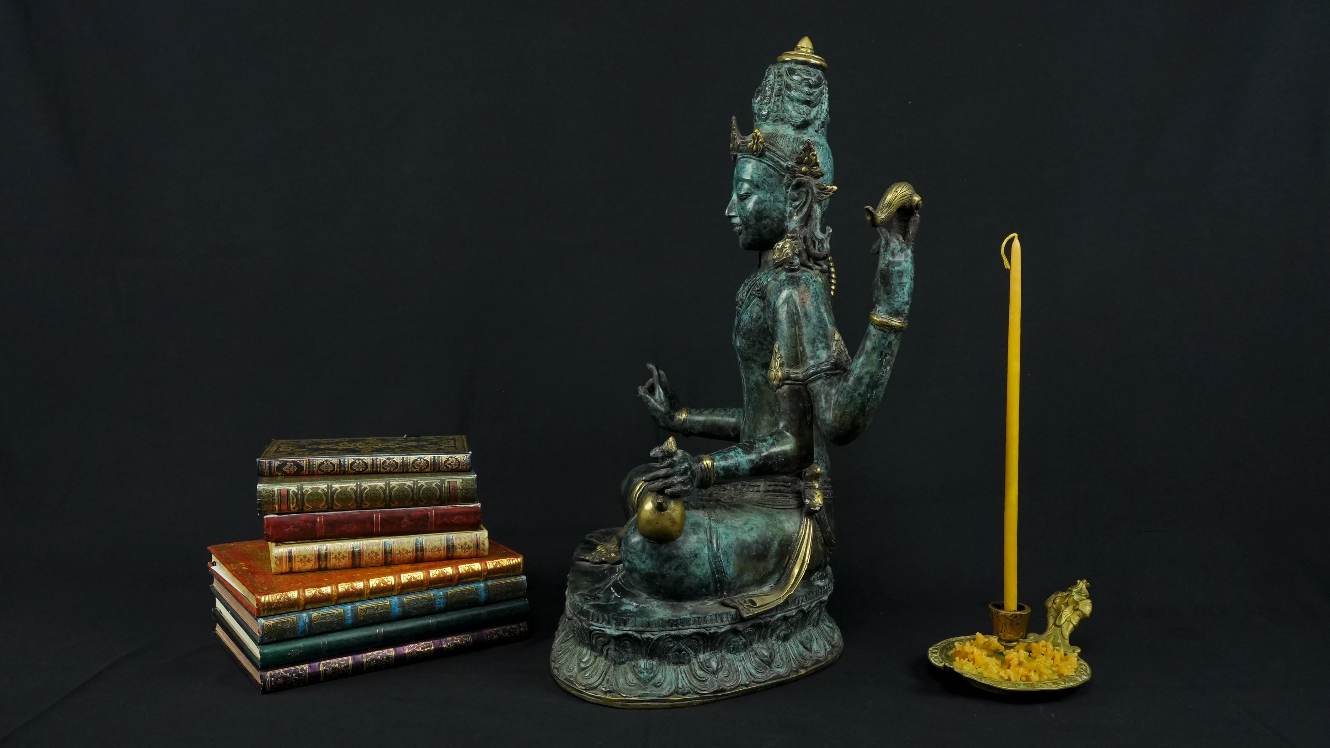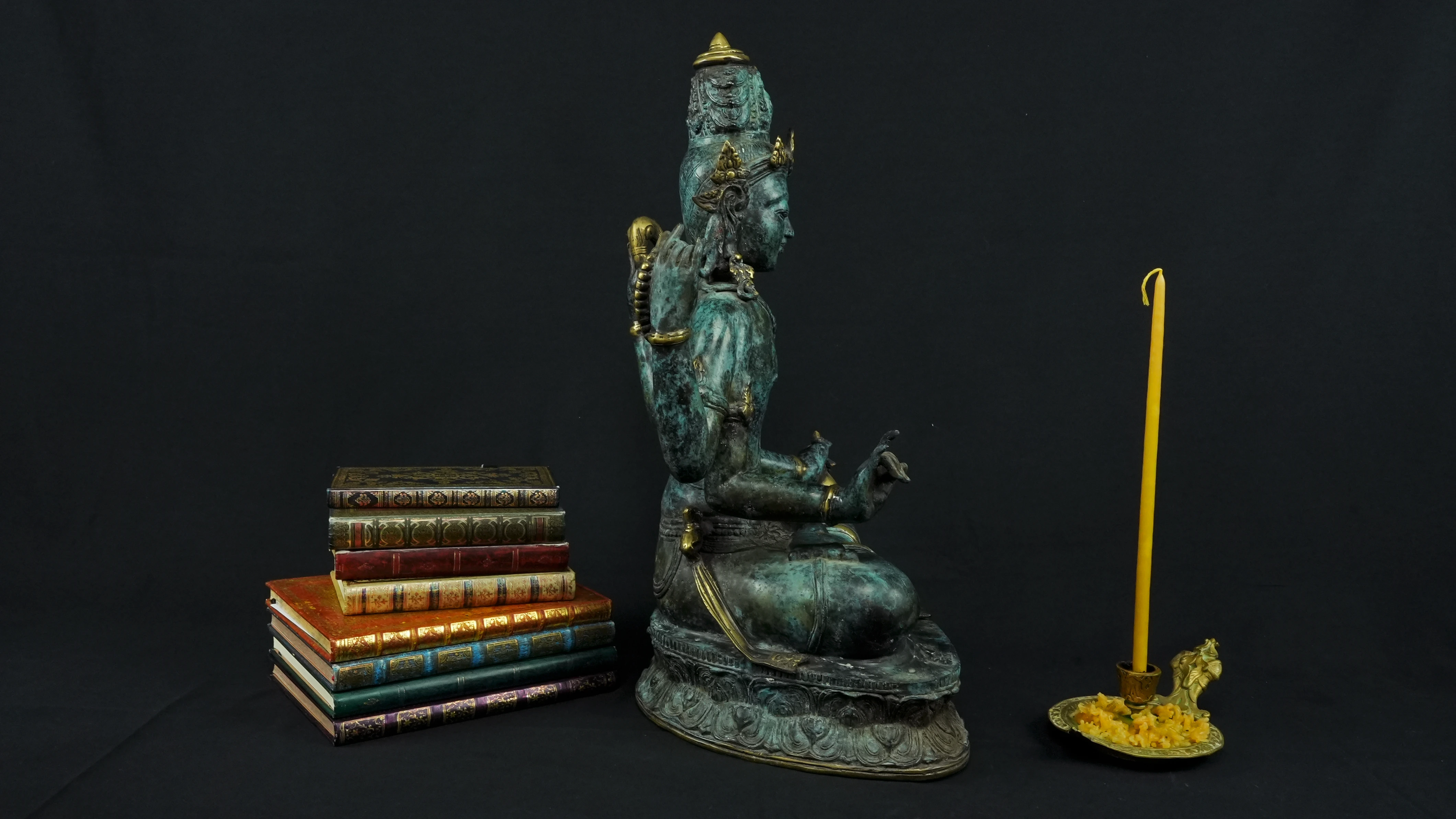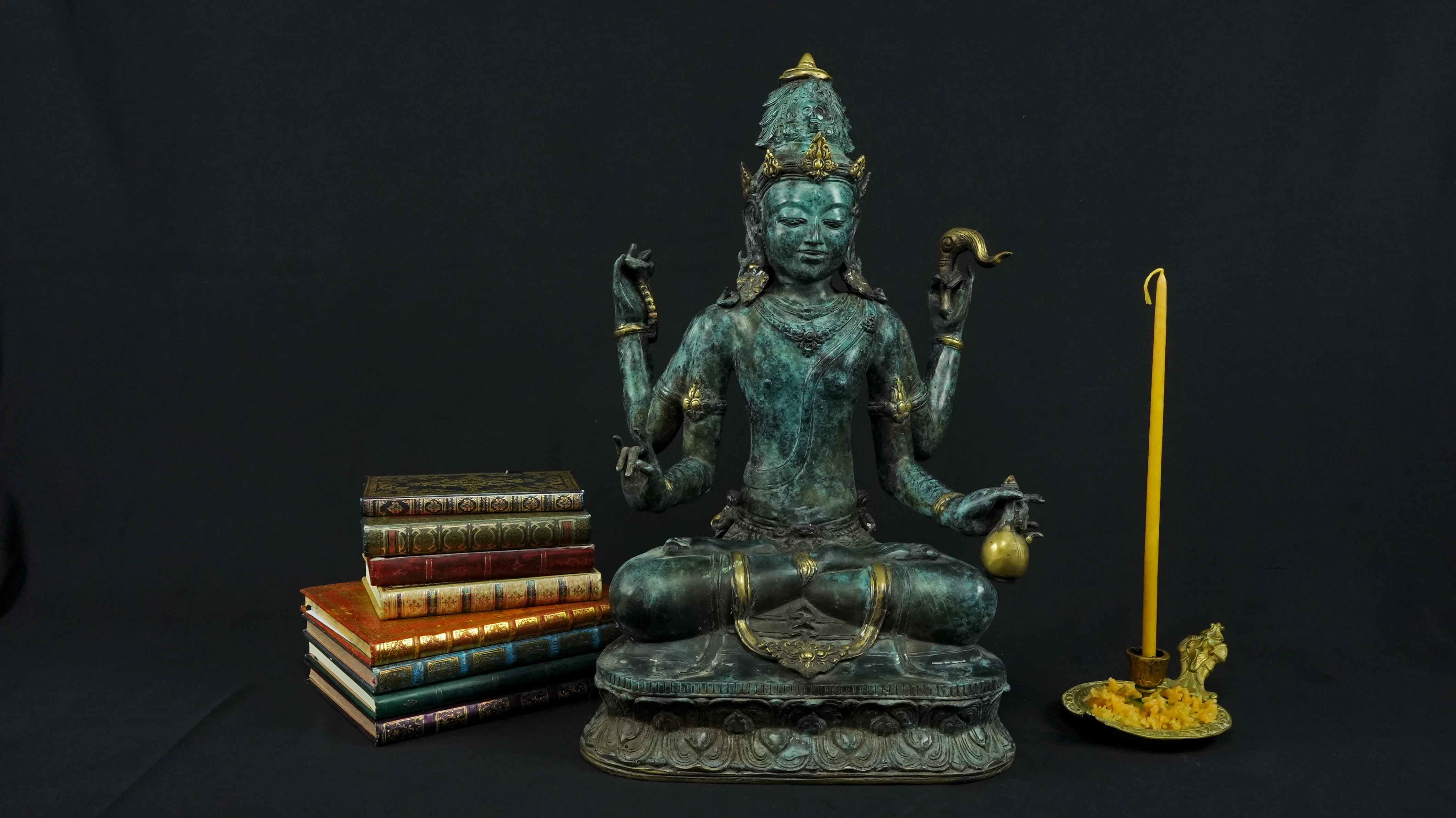 Cette statue représente Shiva ou Brahma selon les traditions. Shiva n’aime pas particulièrement cette représentation mais Brahma lui l’aime beaucoup. Elle pourrait être aussi avatarisée pour beaucoup d’autres Présences à forme humanoïde, que ce soit des maîtres ascensionnés ou des Présences extra-terrestres. Elle est idéale pour les guides de soin et les guides de développement spirituel.