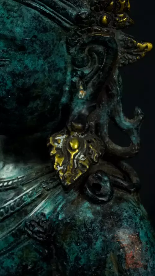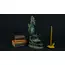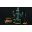 Parfaite pour les rituels d’offrande ou les pratiques méditatives, elle stabilise les lieux, harmonise les chakras, fluidifie les plans subtils et renforce la cohérence entre pensée, parole et action. Brahma y déploie une énergie ordonnée et sereine, propice à l’étude, à la contemplation et à l’équilibre énergétique. Son énergie verte et dorée soutient l’harmonisation des éléments subtils et la régénération intérieure. L’eau de vie qu’il porte symboliquement enseigne la guérison par la compréhension : connaître, est un étape vers la sublimation.