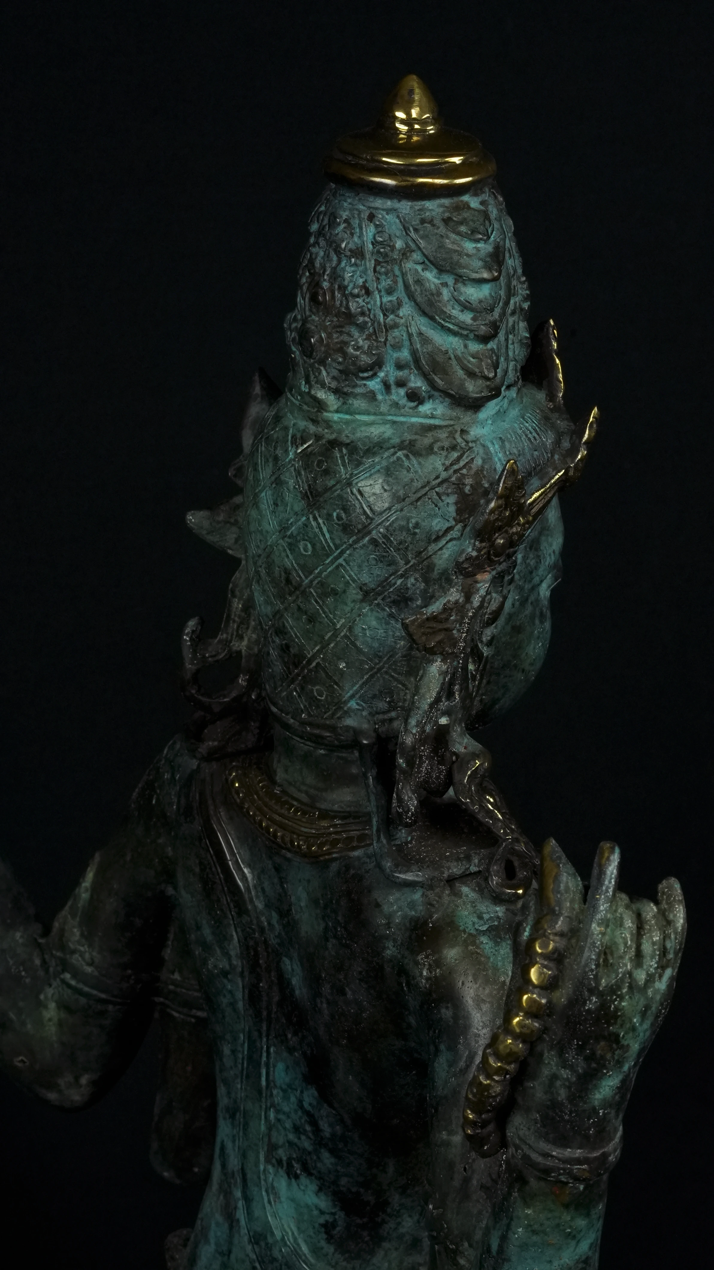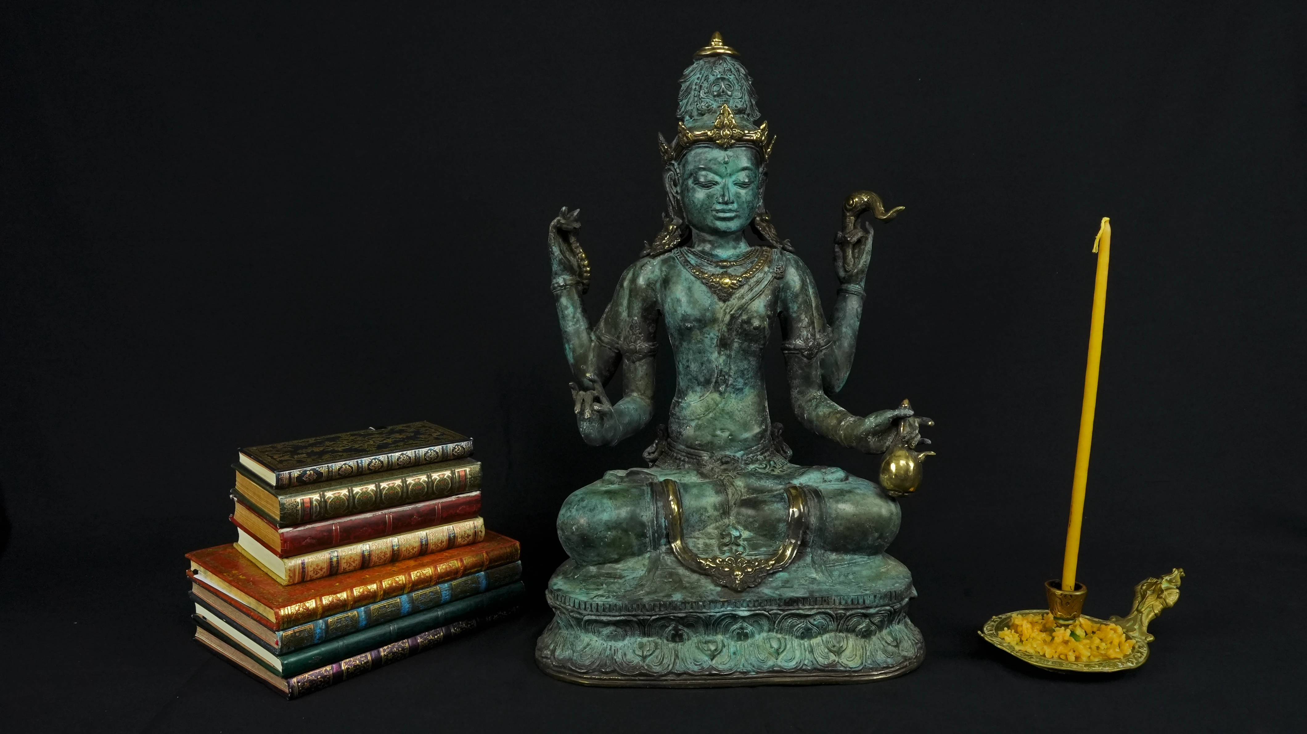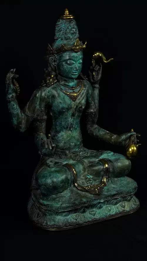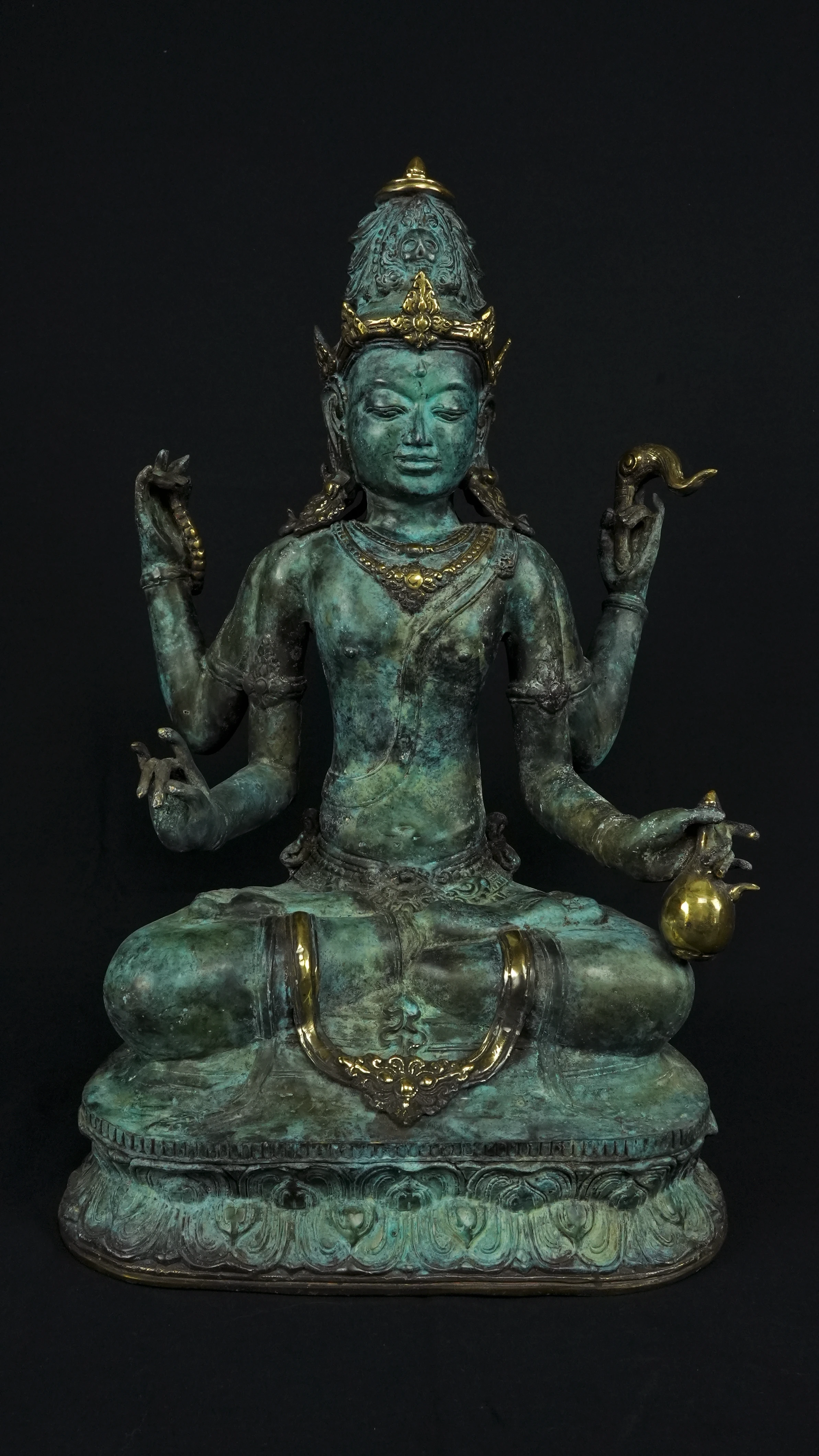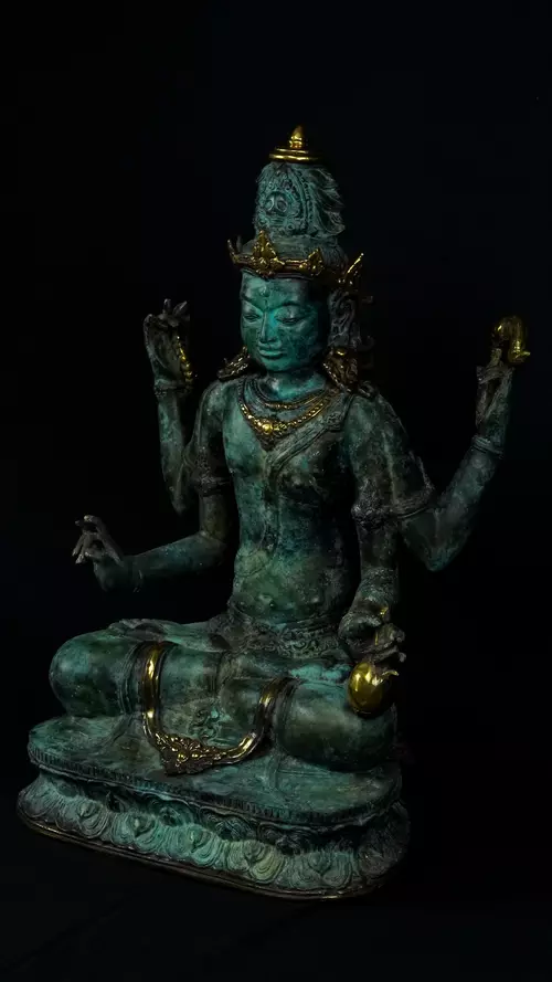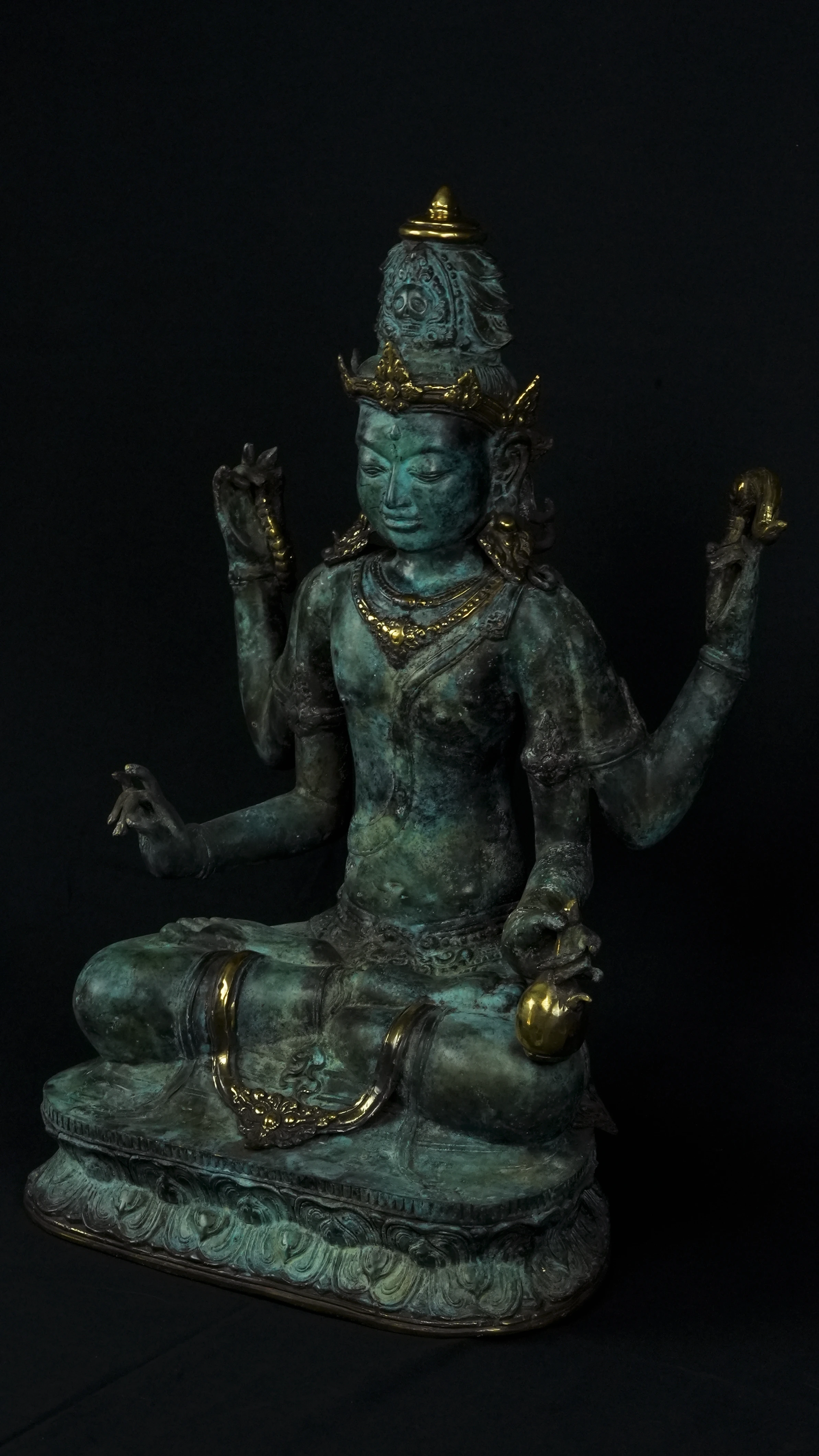 Cette statue représente Shiva ou Brahma selon les traditions. Shiva n’aime pas particulièrement cette représentation mais Brahma lui l’aime beaucoup. Elle pourrait être aussi avatarisée pour beaucoup d’autres Présences à forme humanoïde, que ce soit des maîtres ascensionnés ou des Présences extra-terrestres. Elle est idéale pour les guides de soin et les guides de développement spirituel.