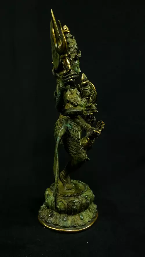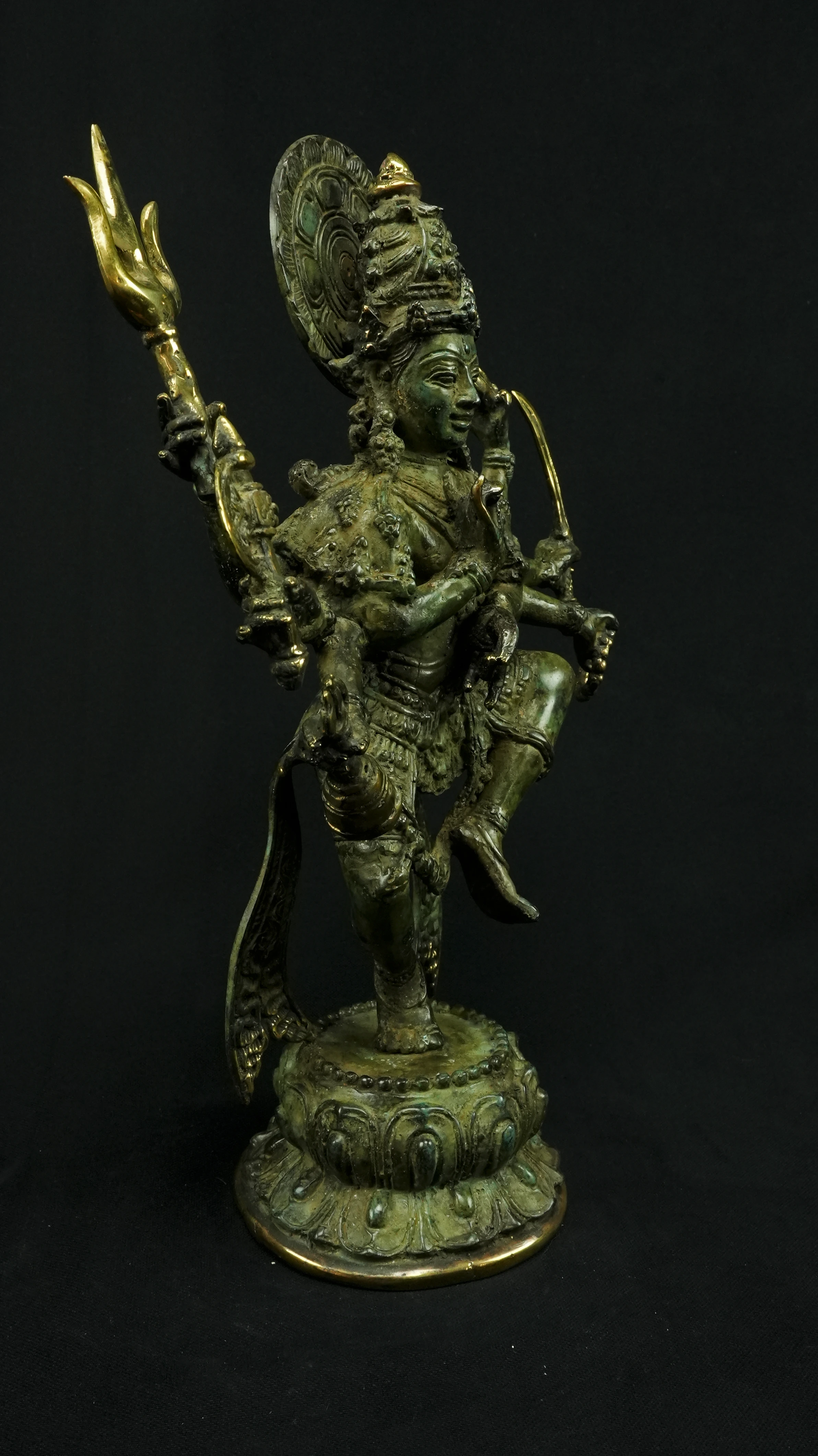 - 1x Statue avatarisée de Shiva : 10 kg, 66 cm de hauteur, 20 cm de diamètre. Méthode de la cire perdue en Laiton réalisé à Java, Indonésie.