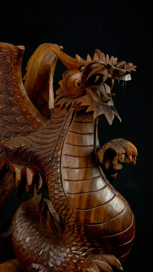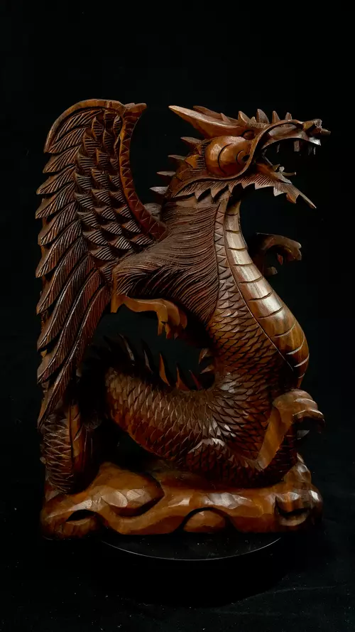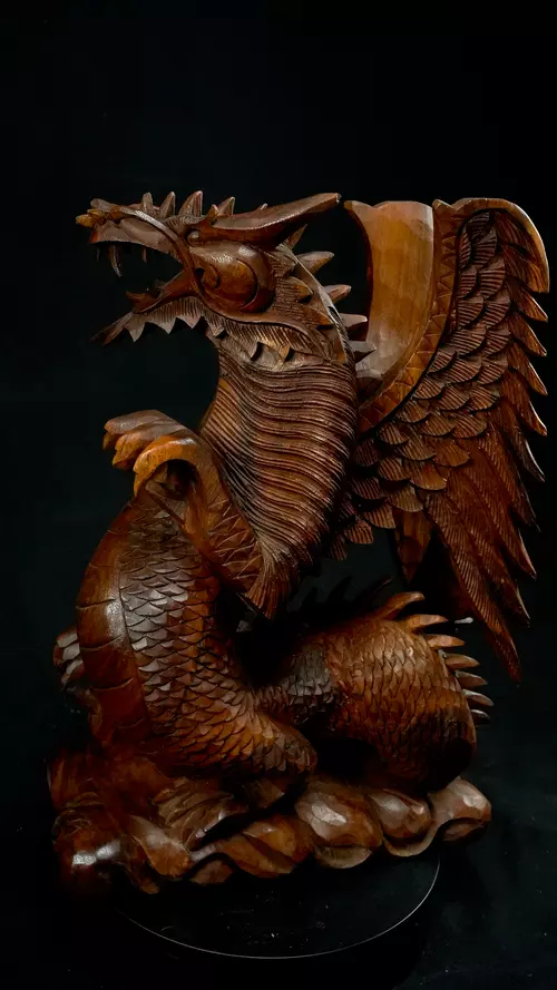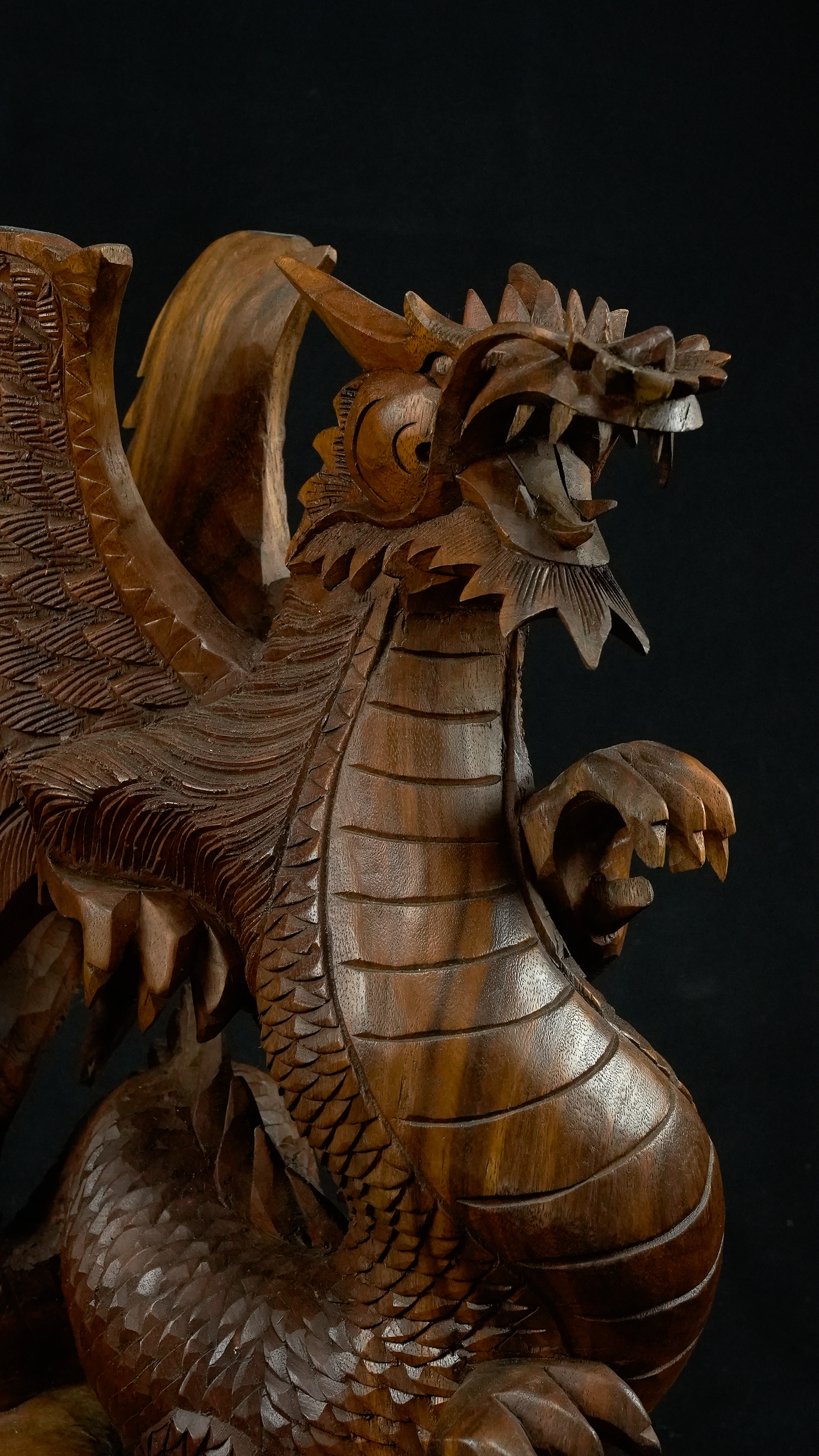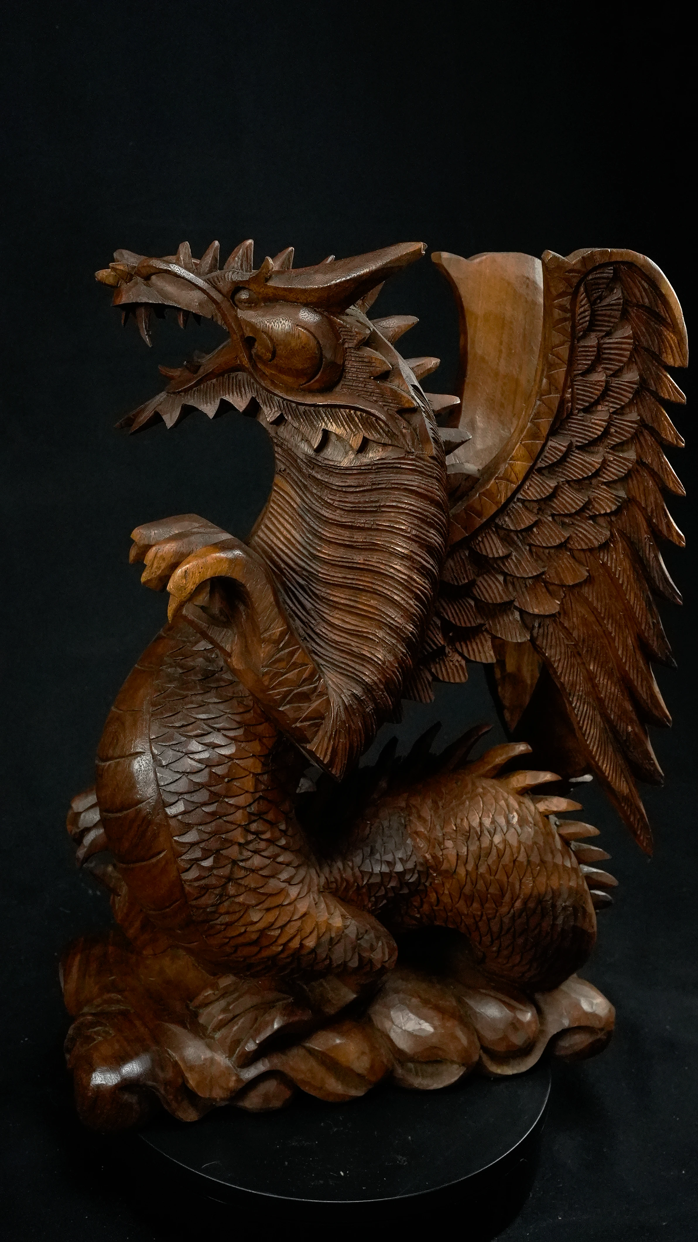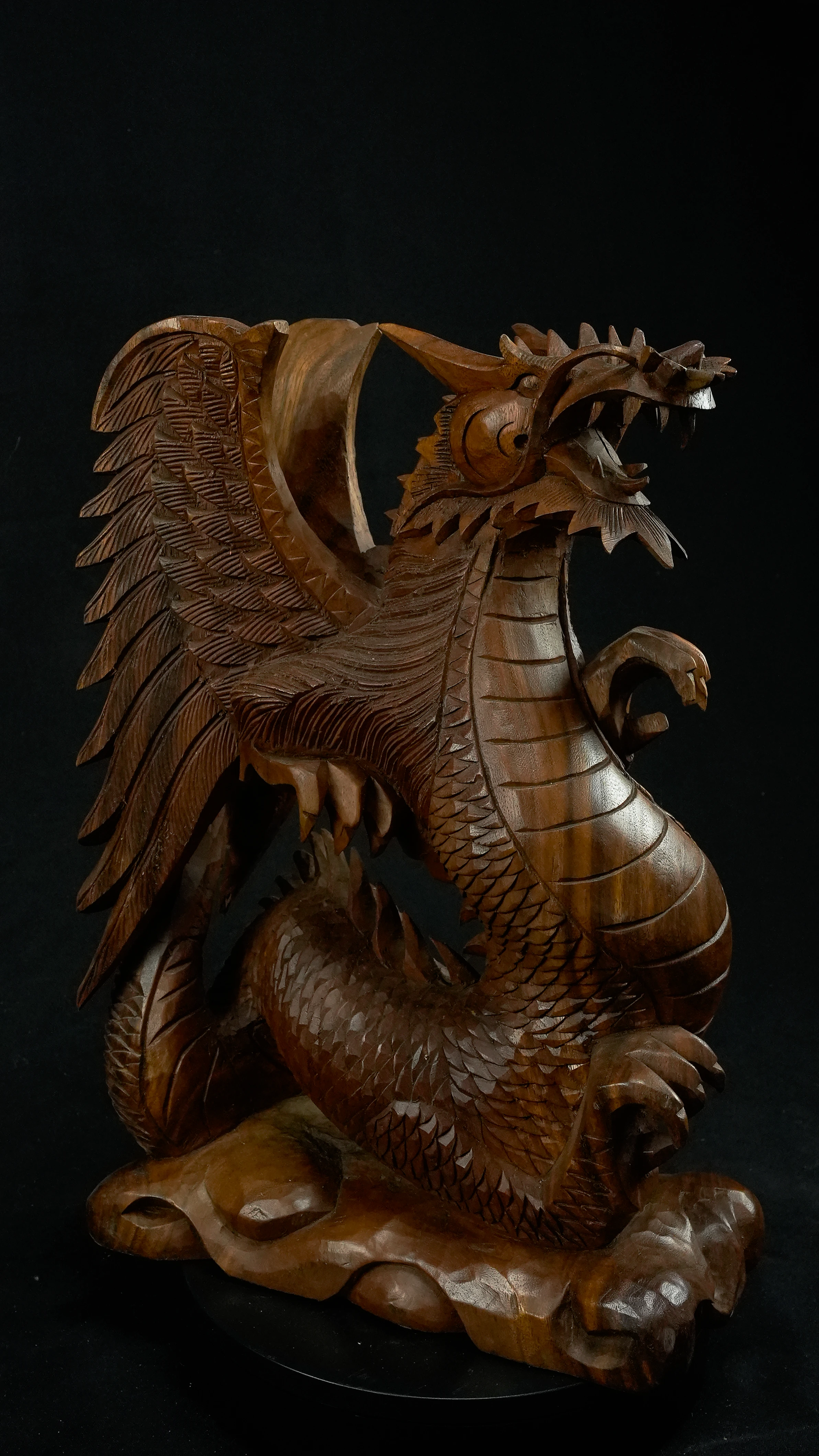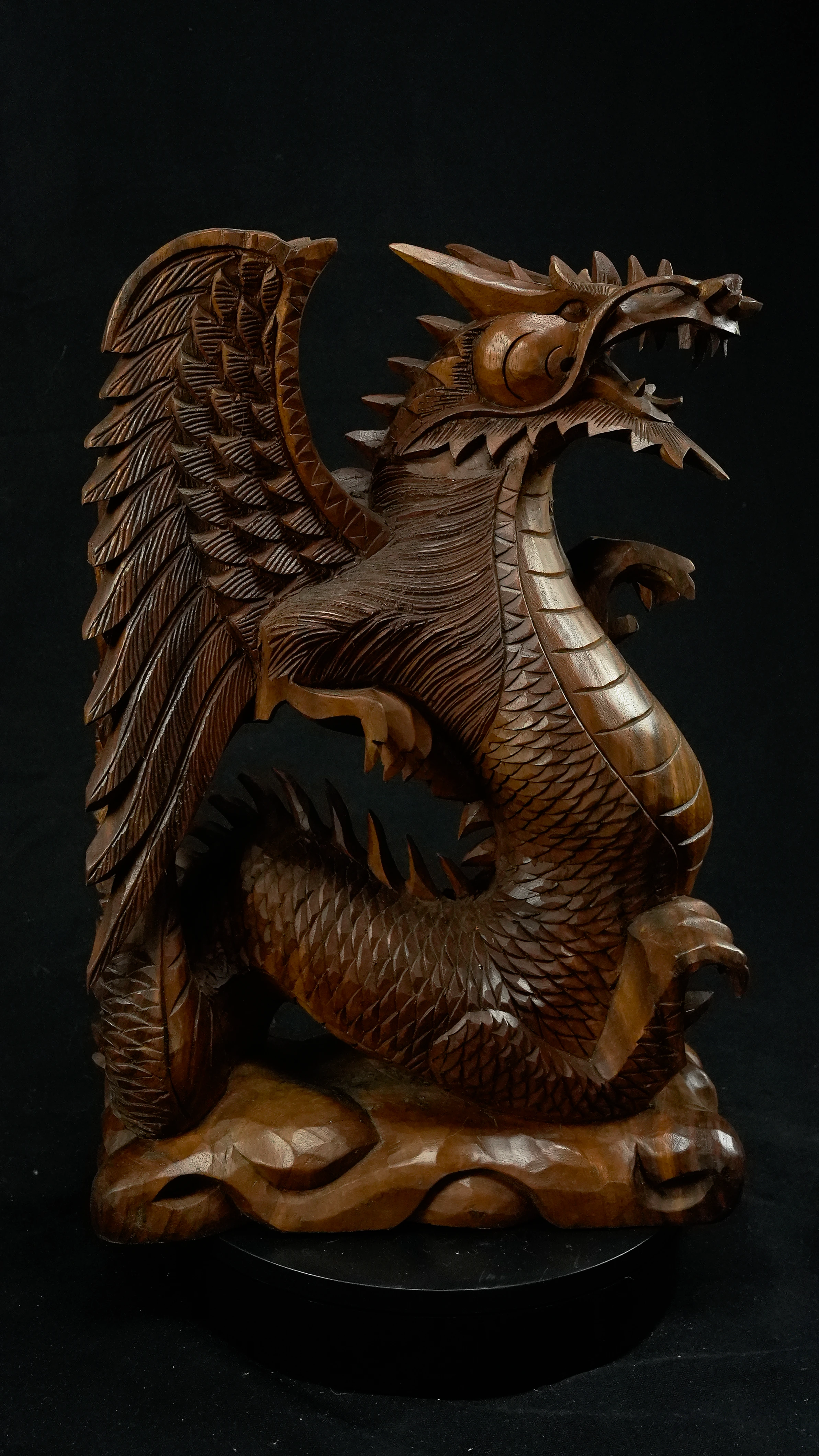 Statue Sacrée et Avatarisée - Dragon 50cm n°3 - en Bois de Suar