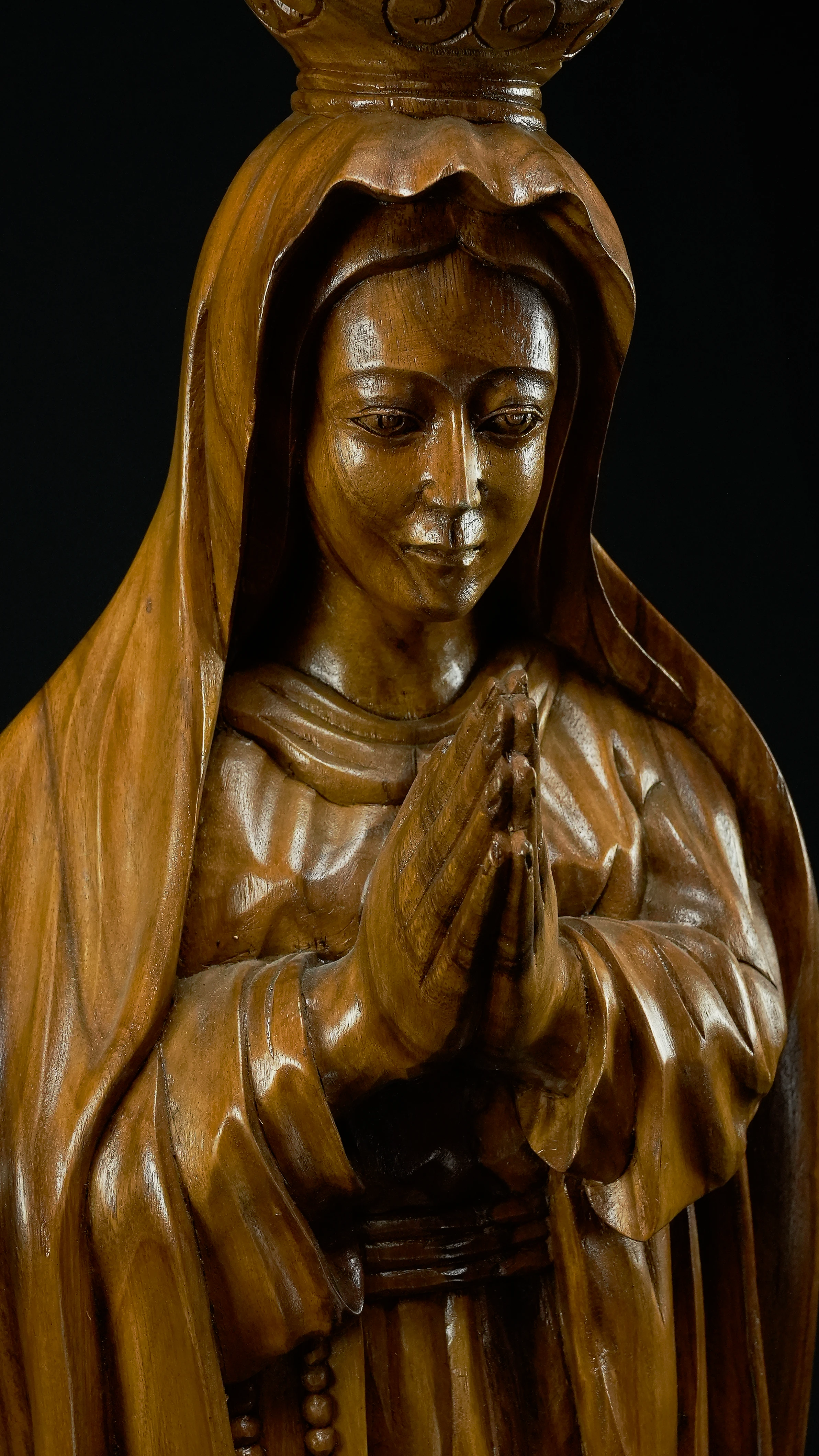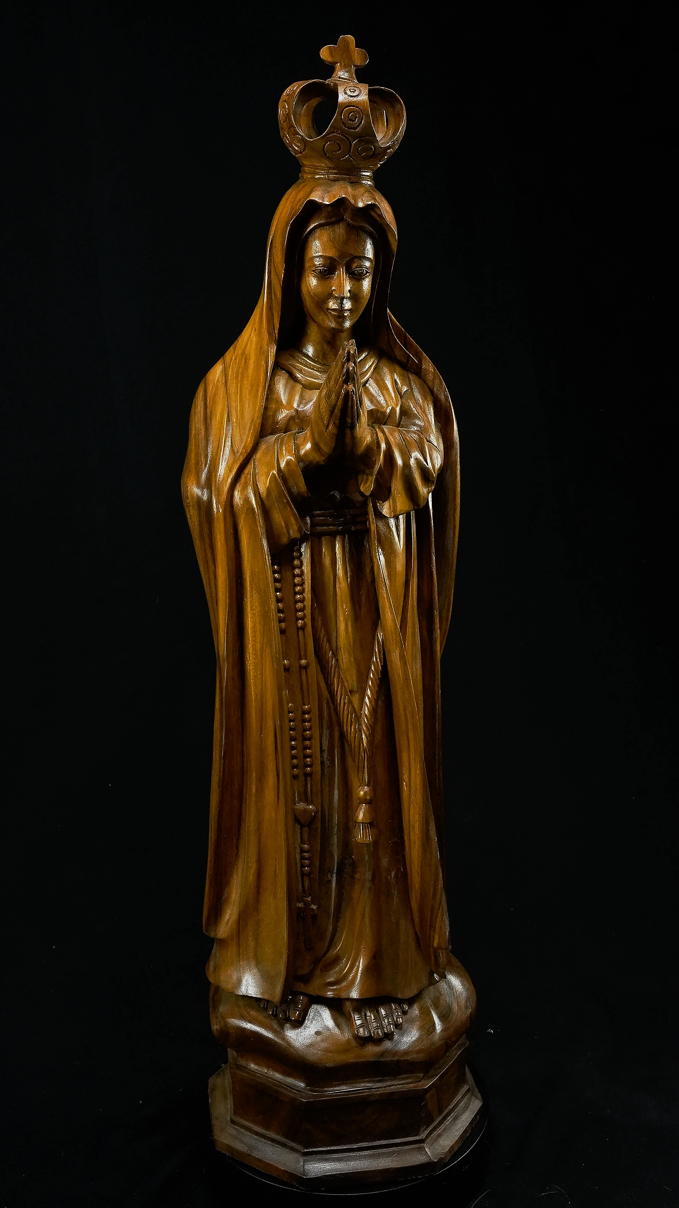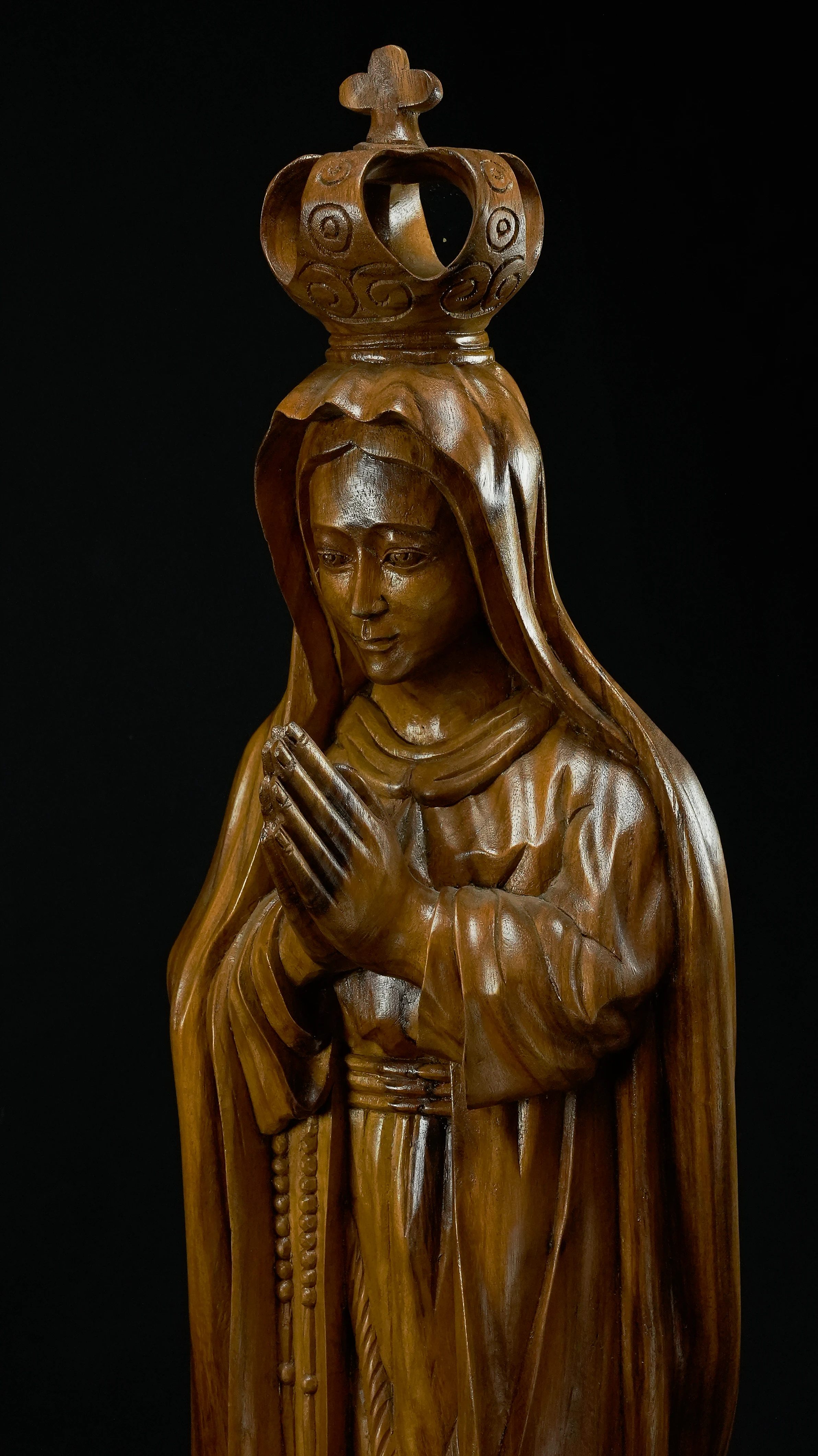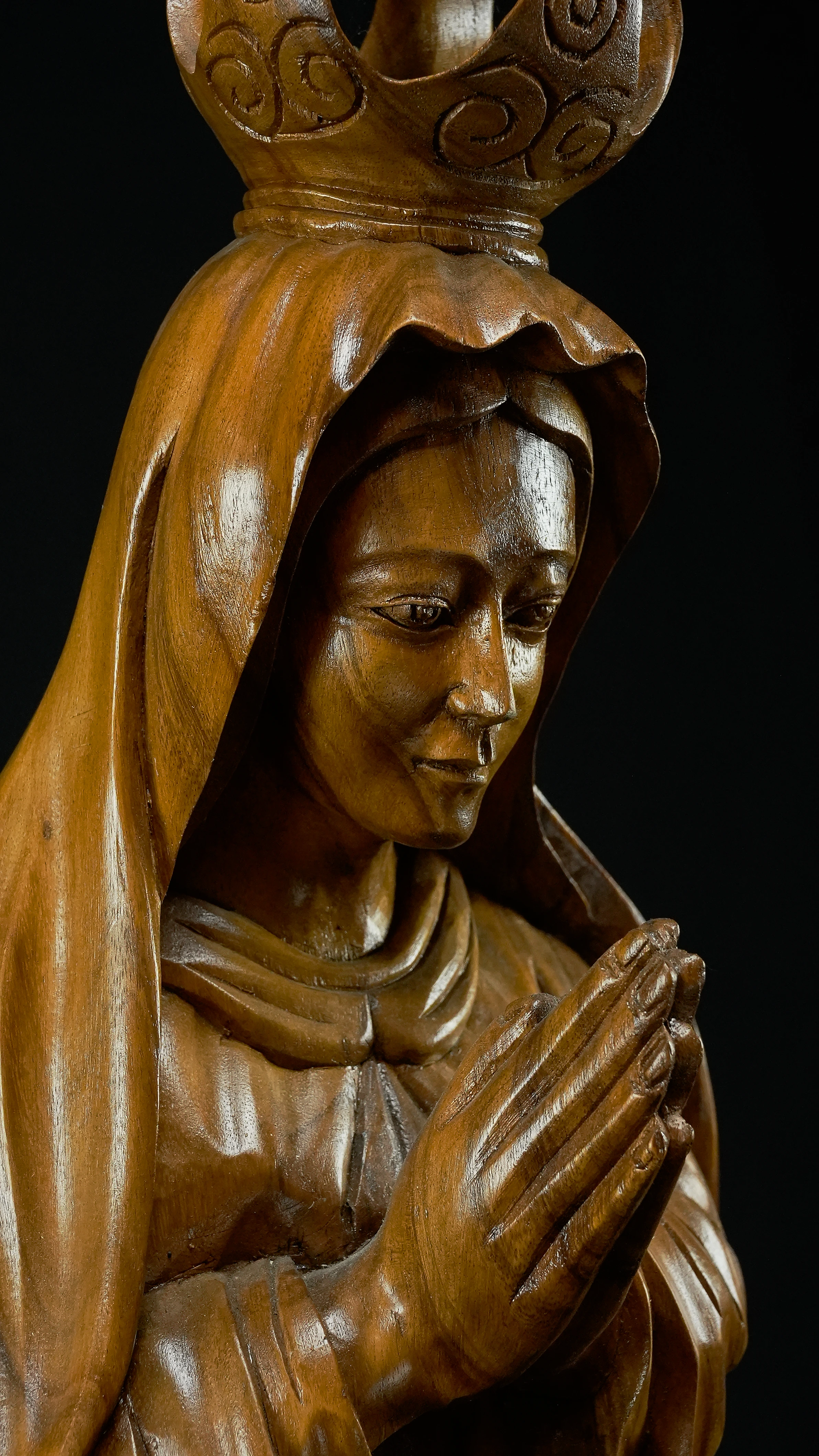 Grande Statue Sacrée et Avatarisée - Vierge Couronnée n°1 - En bois de Suar