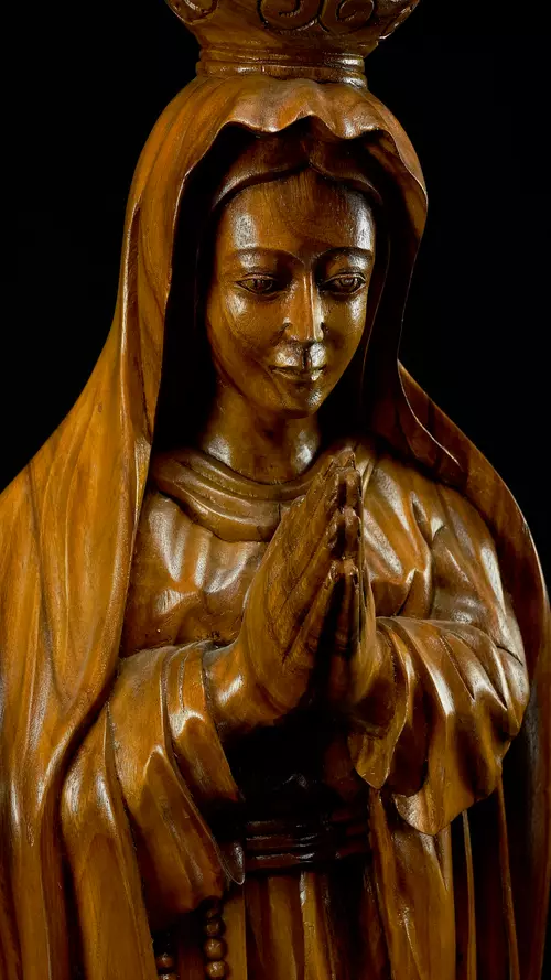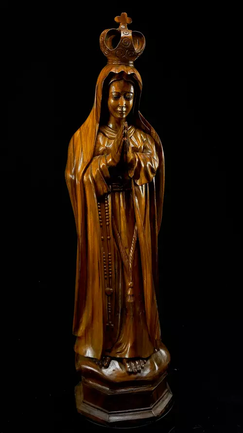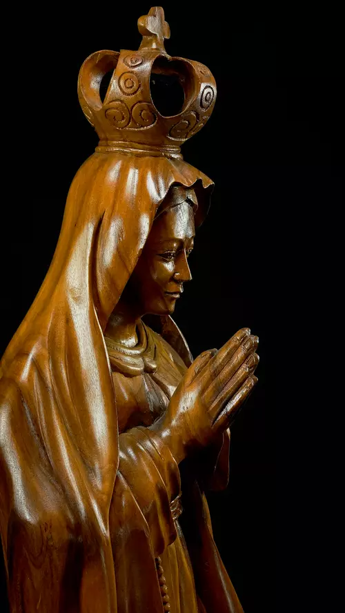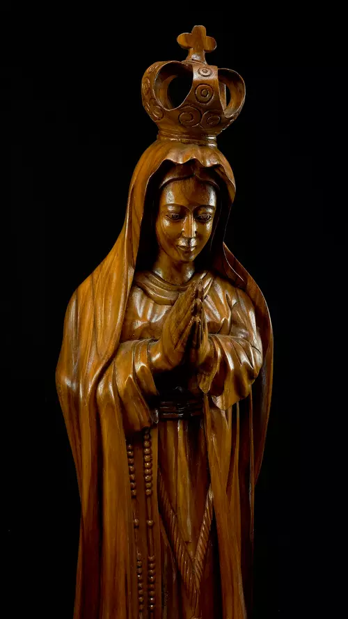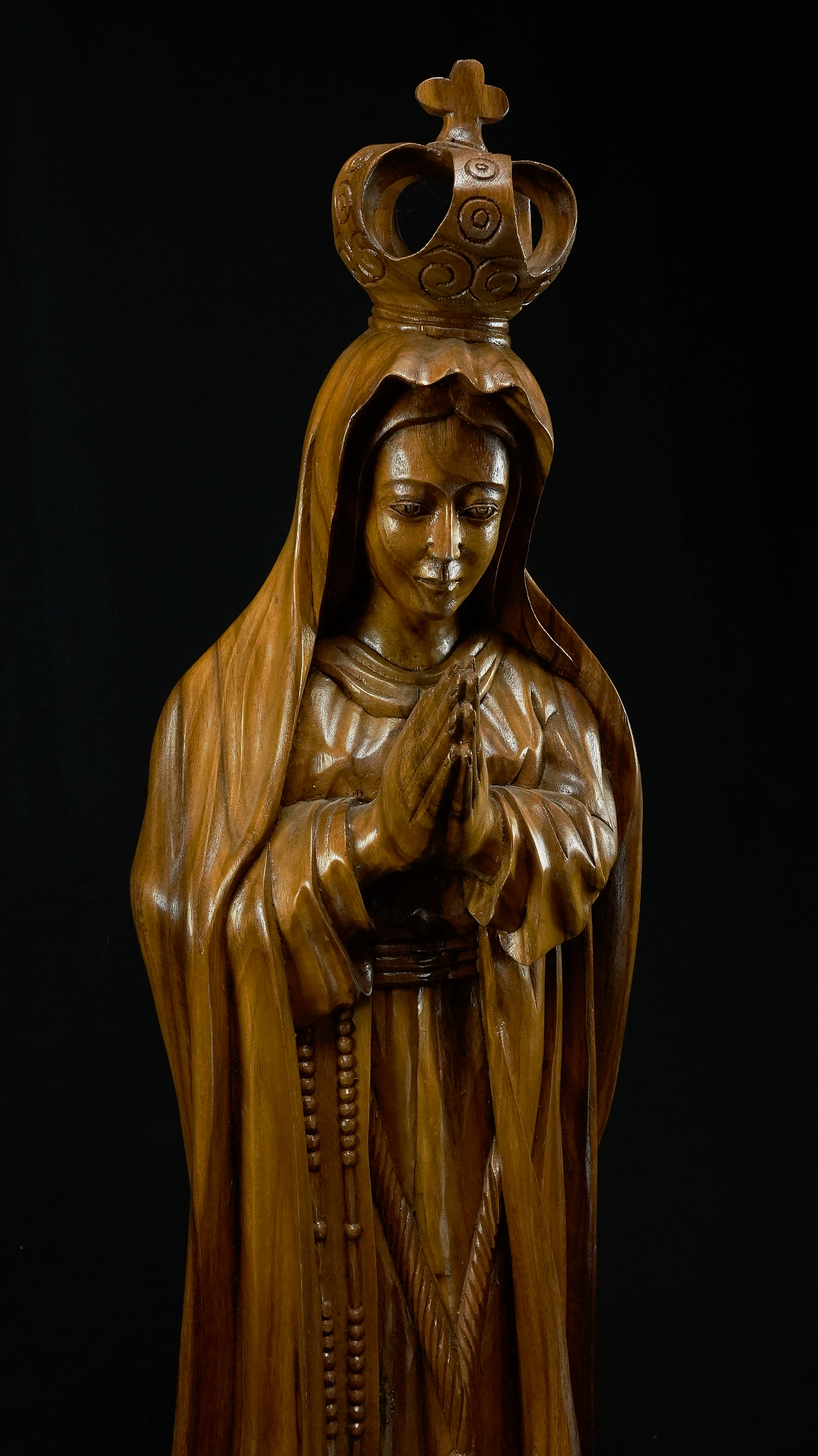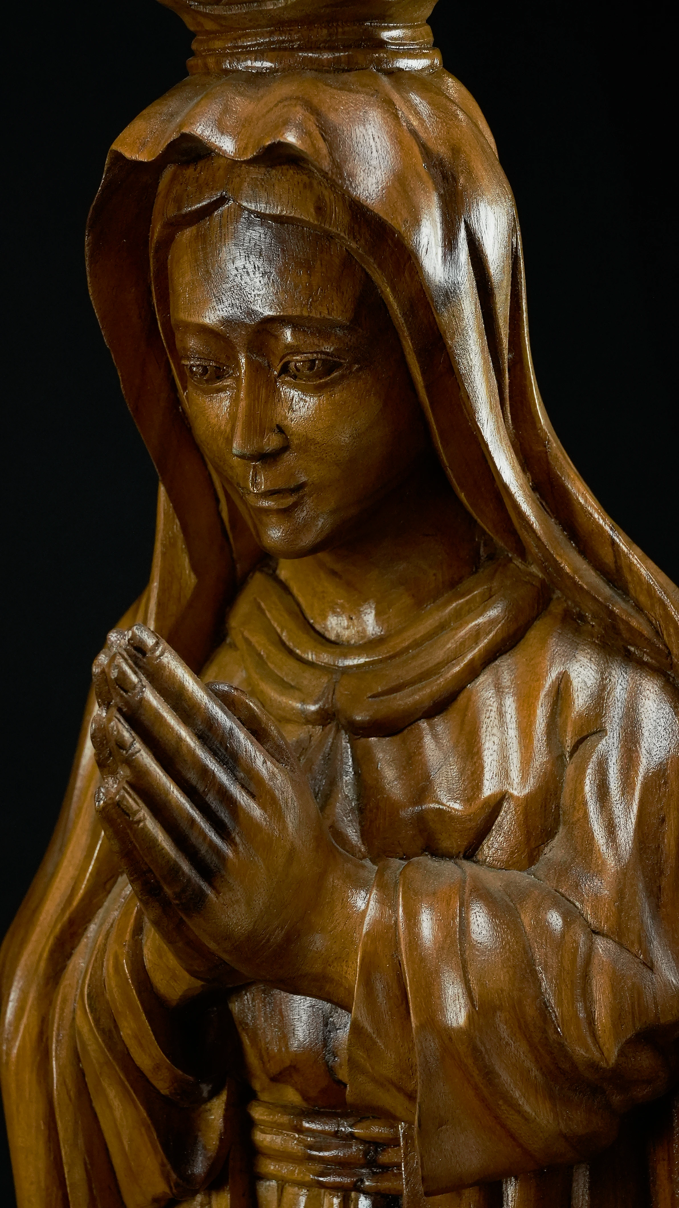 Grande Statue Sacrée et Avatarisée - Vierge Couronnée n°1 - En bois de Suar