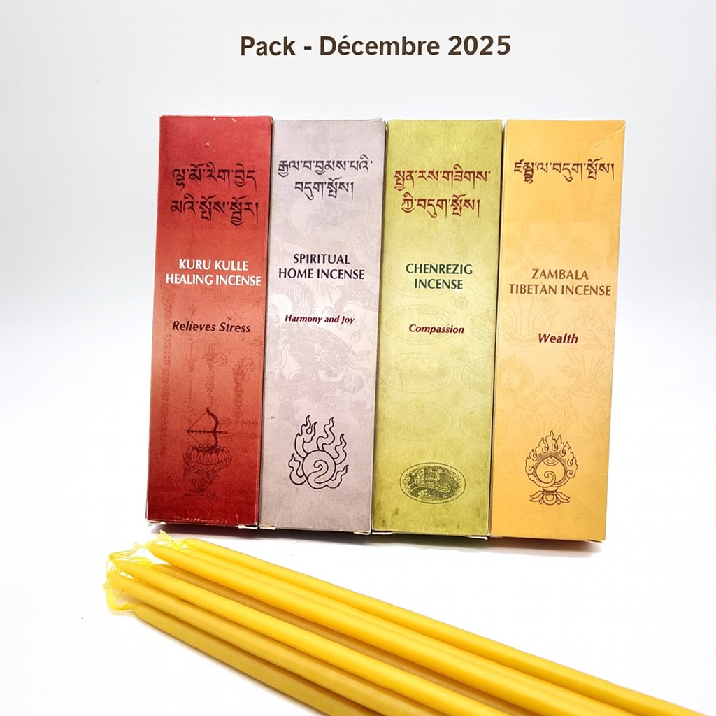 Pack disponible jusqu’au 2 décembre au-delà de cette date, vous n’aurez pas le temps de recevoir les encens pour les dates importantes.